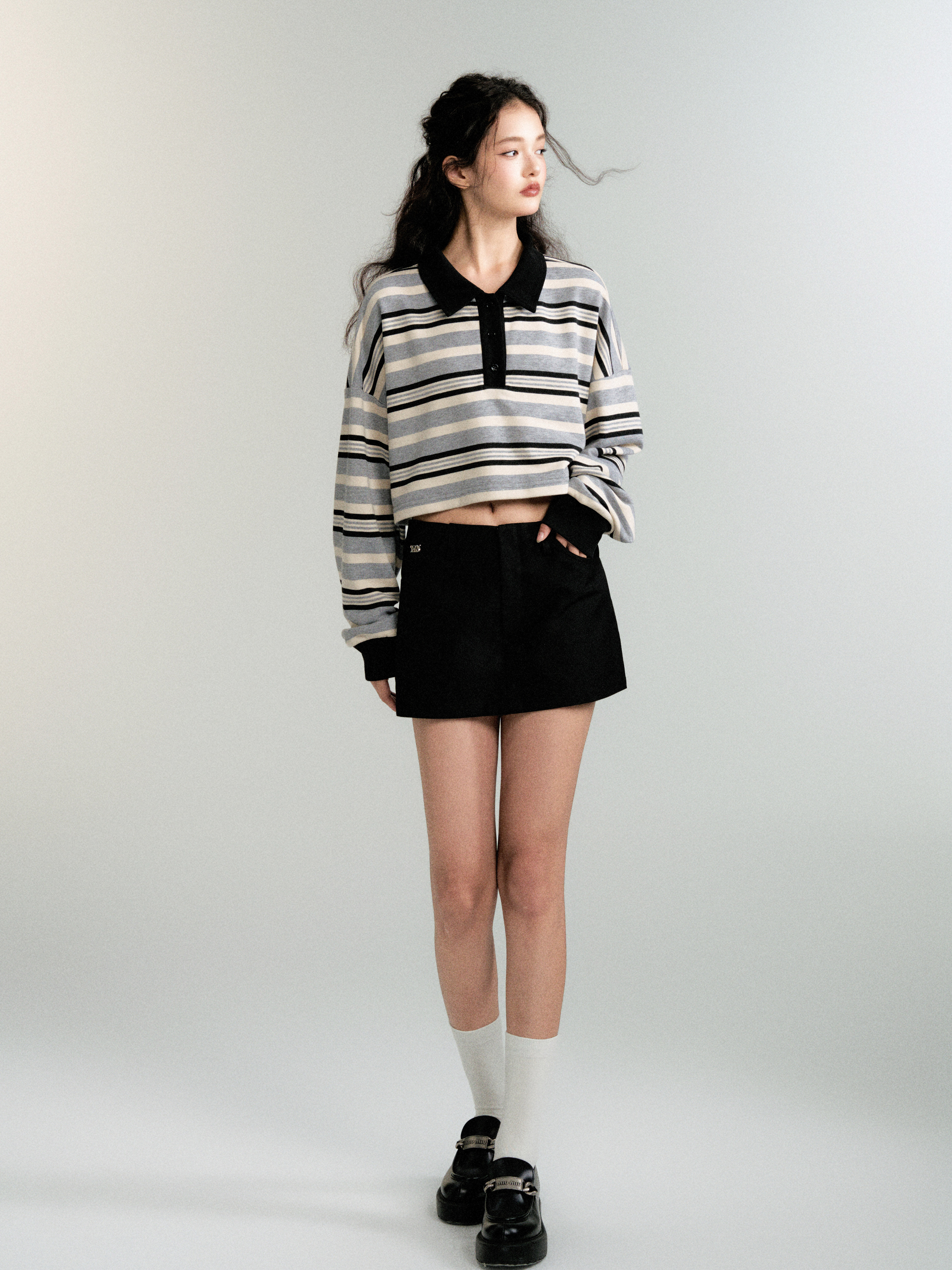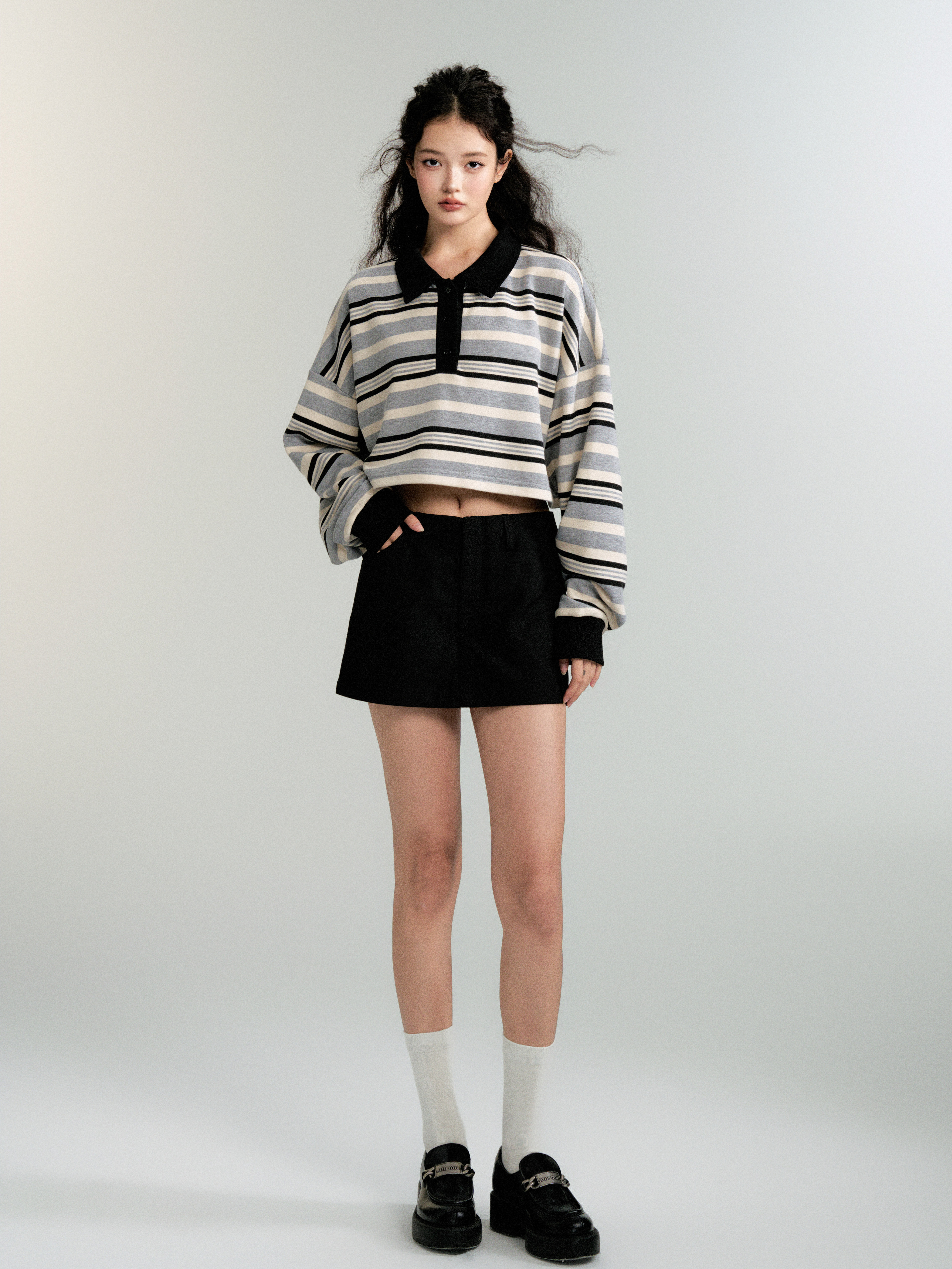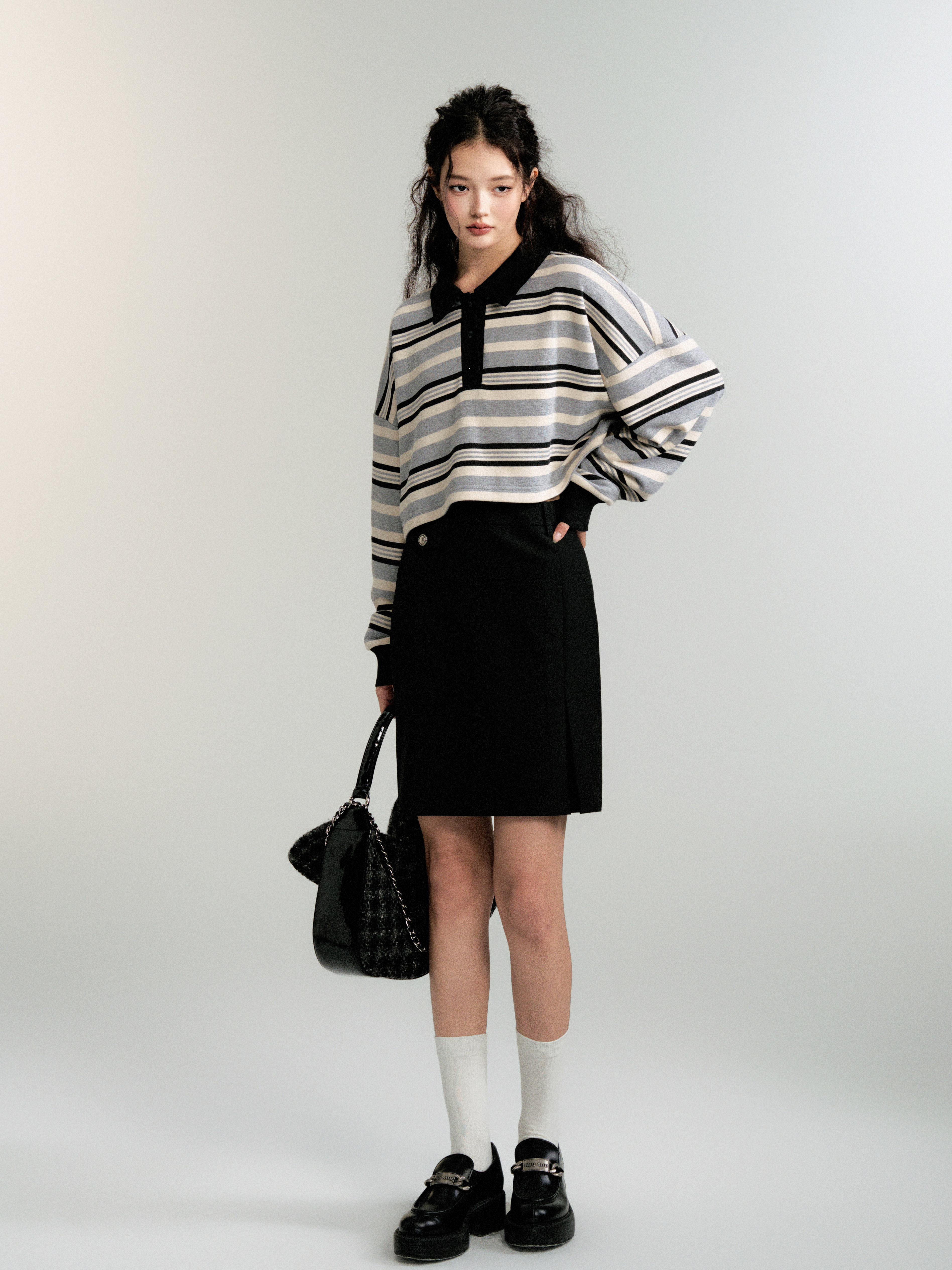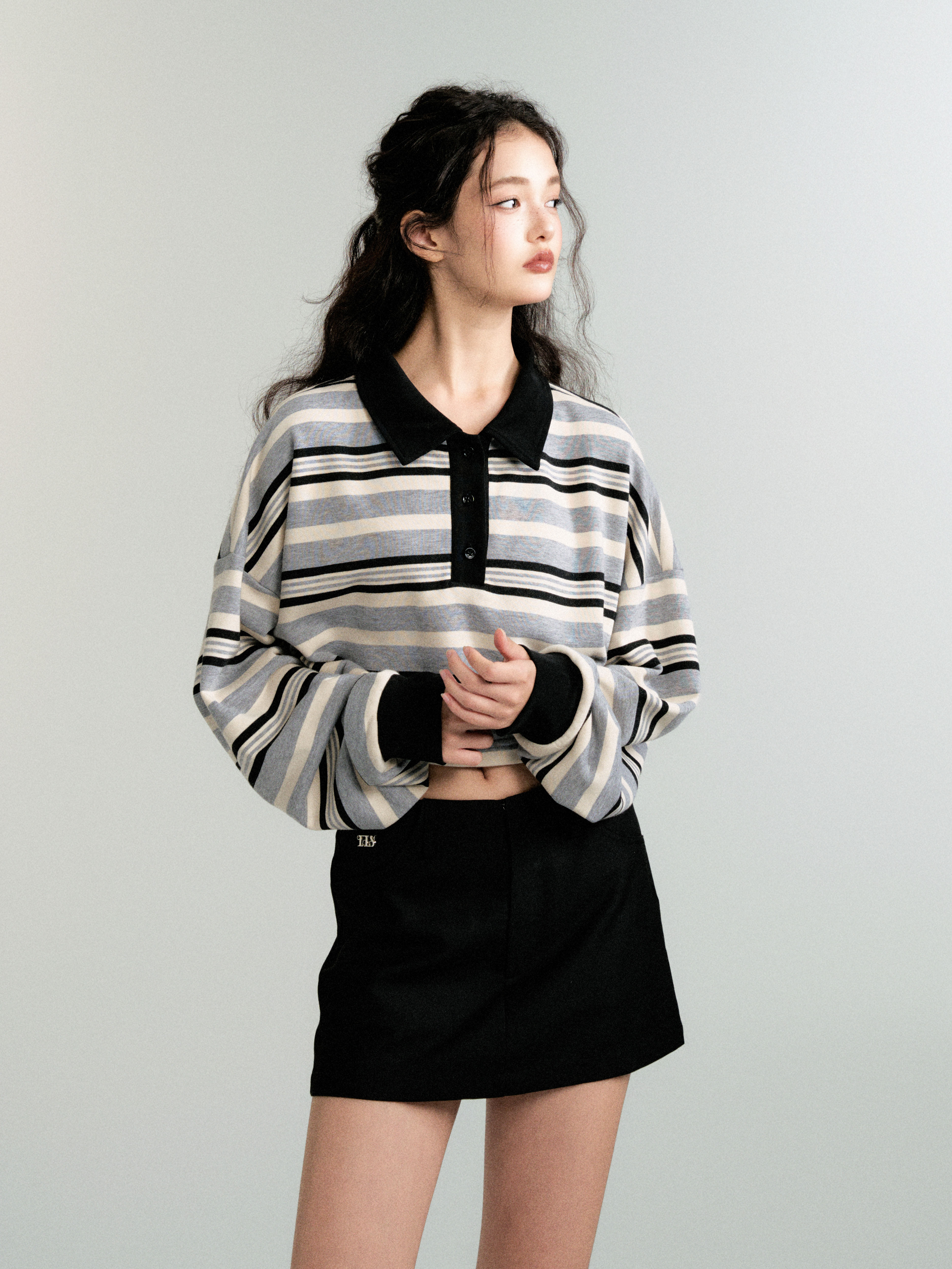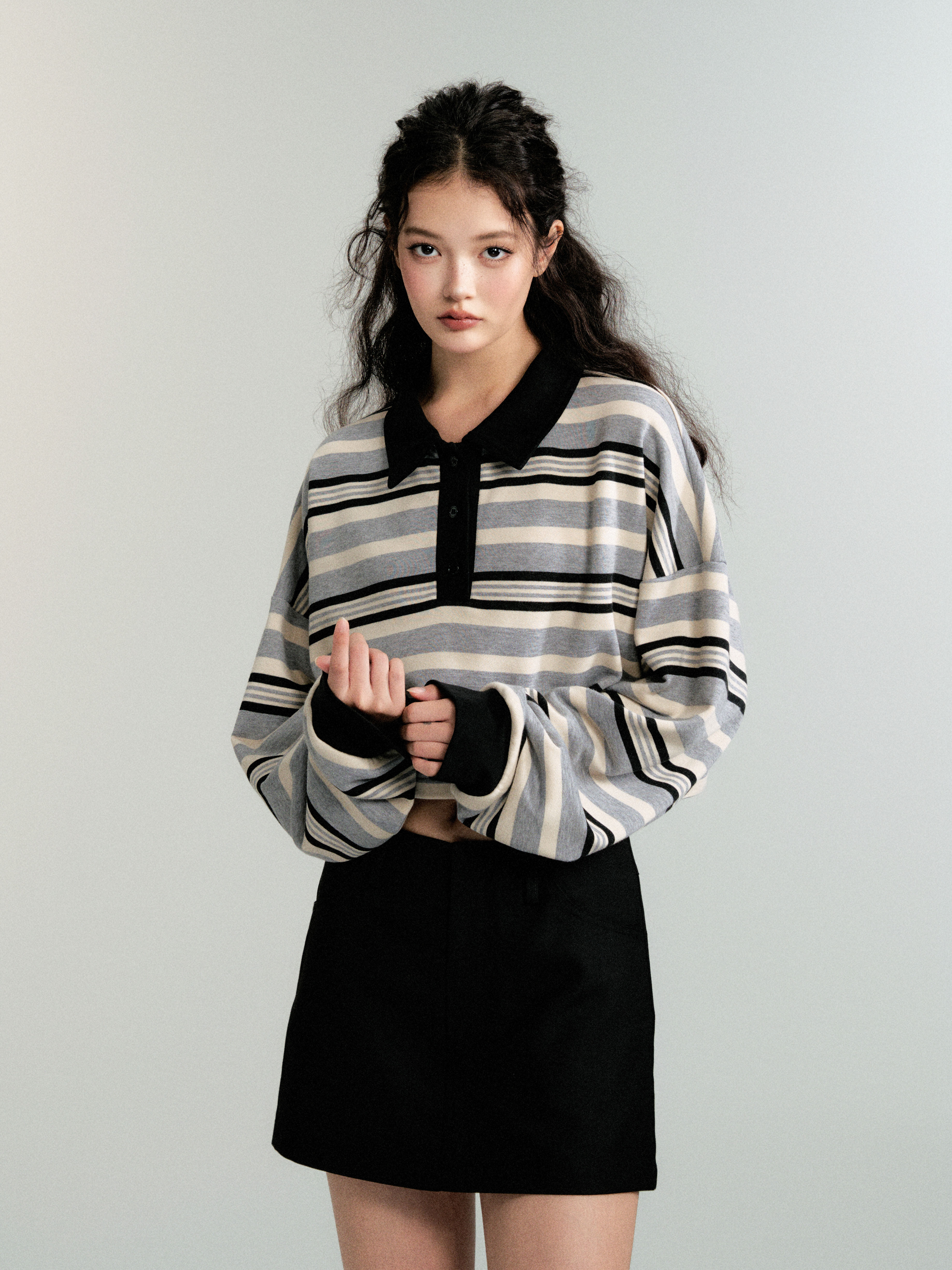 Contrasting Striped Sweatshirt Polo Shirt (Sporty Casual Fit)
