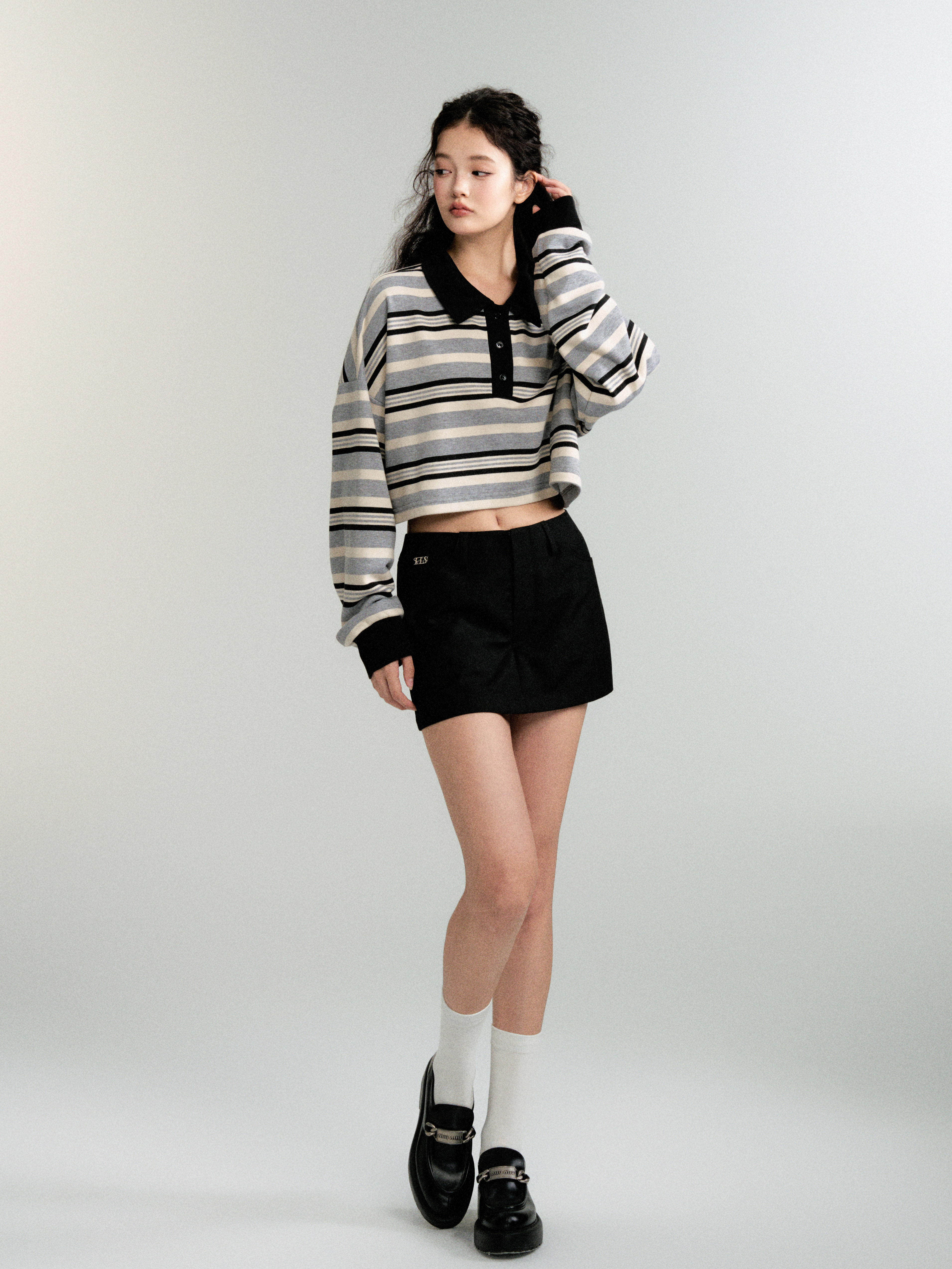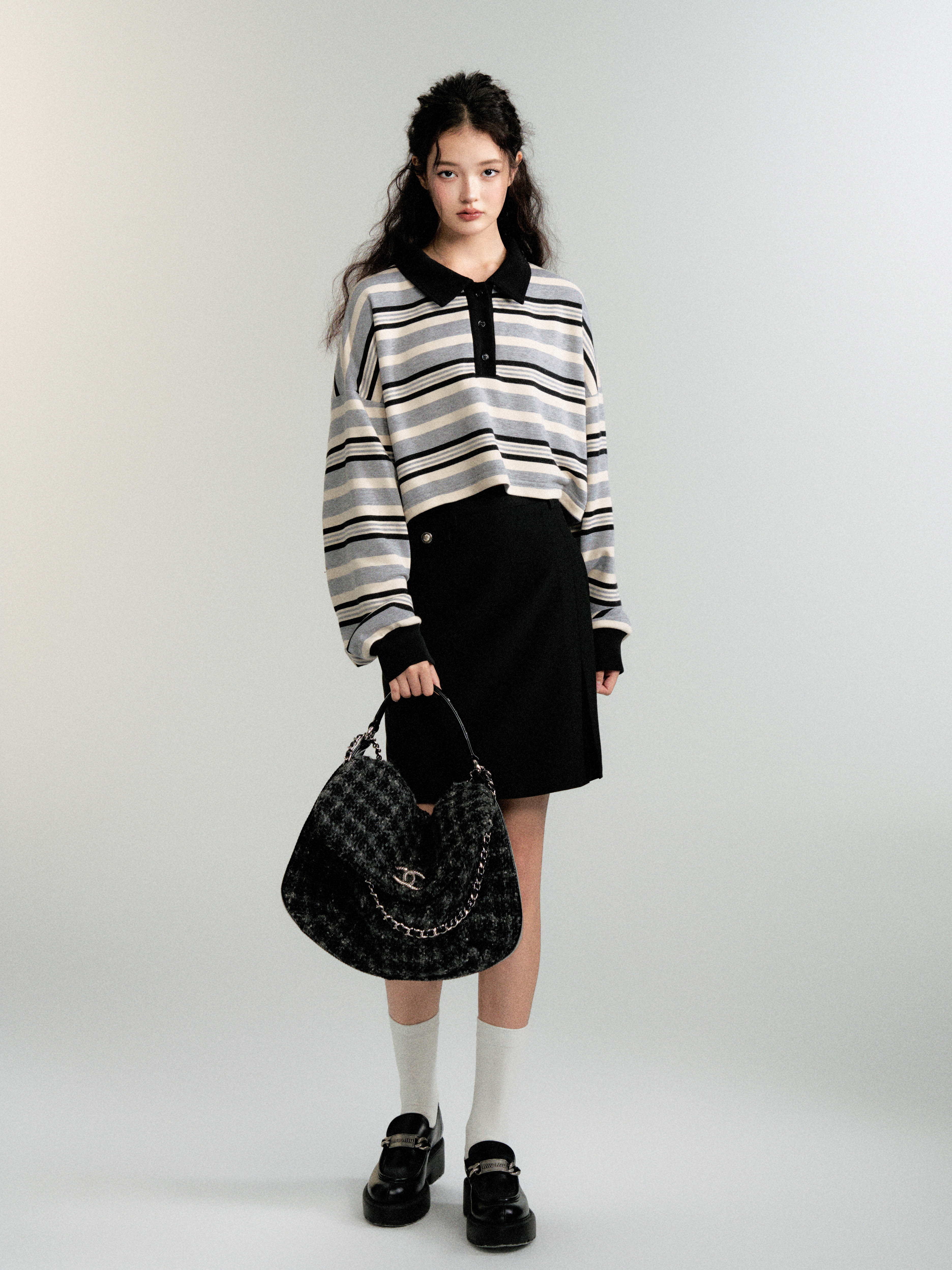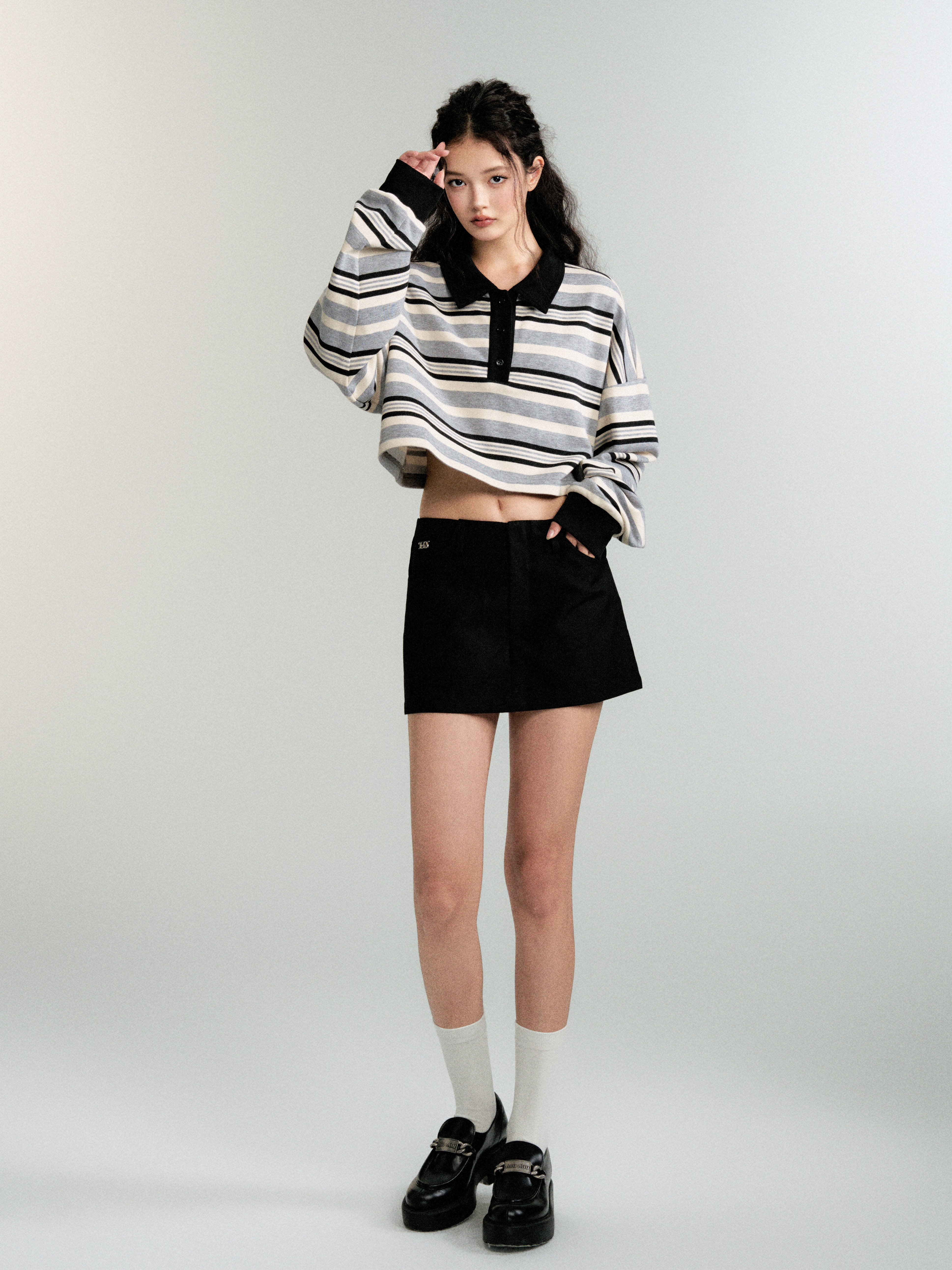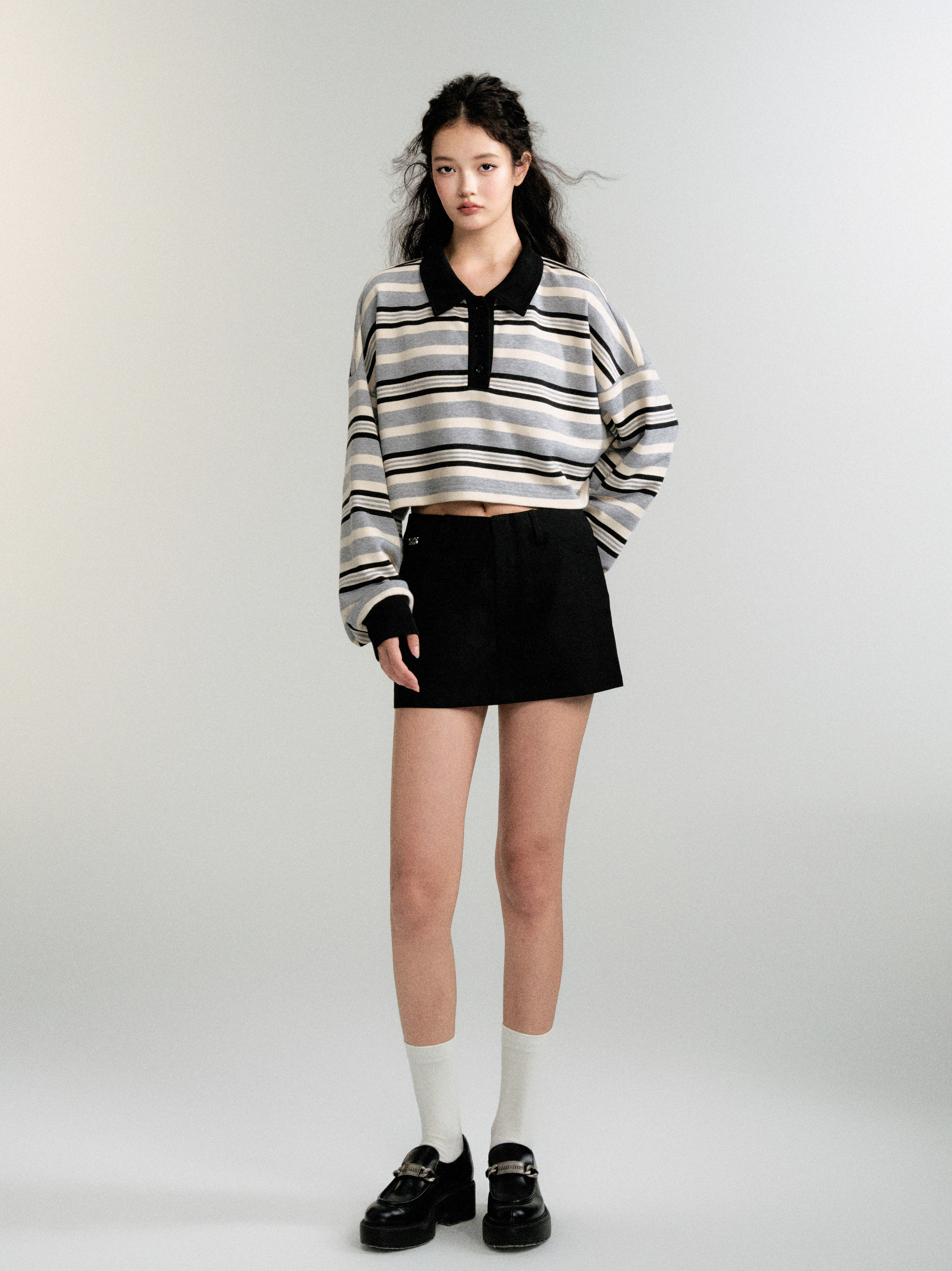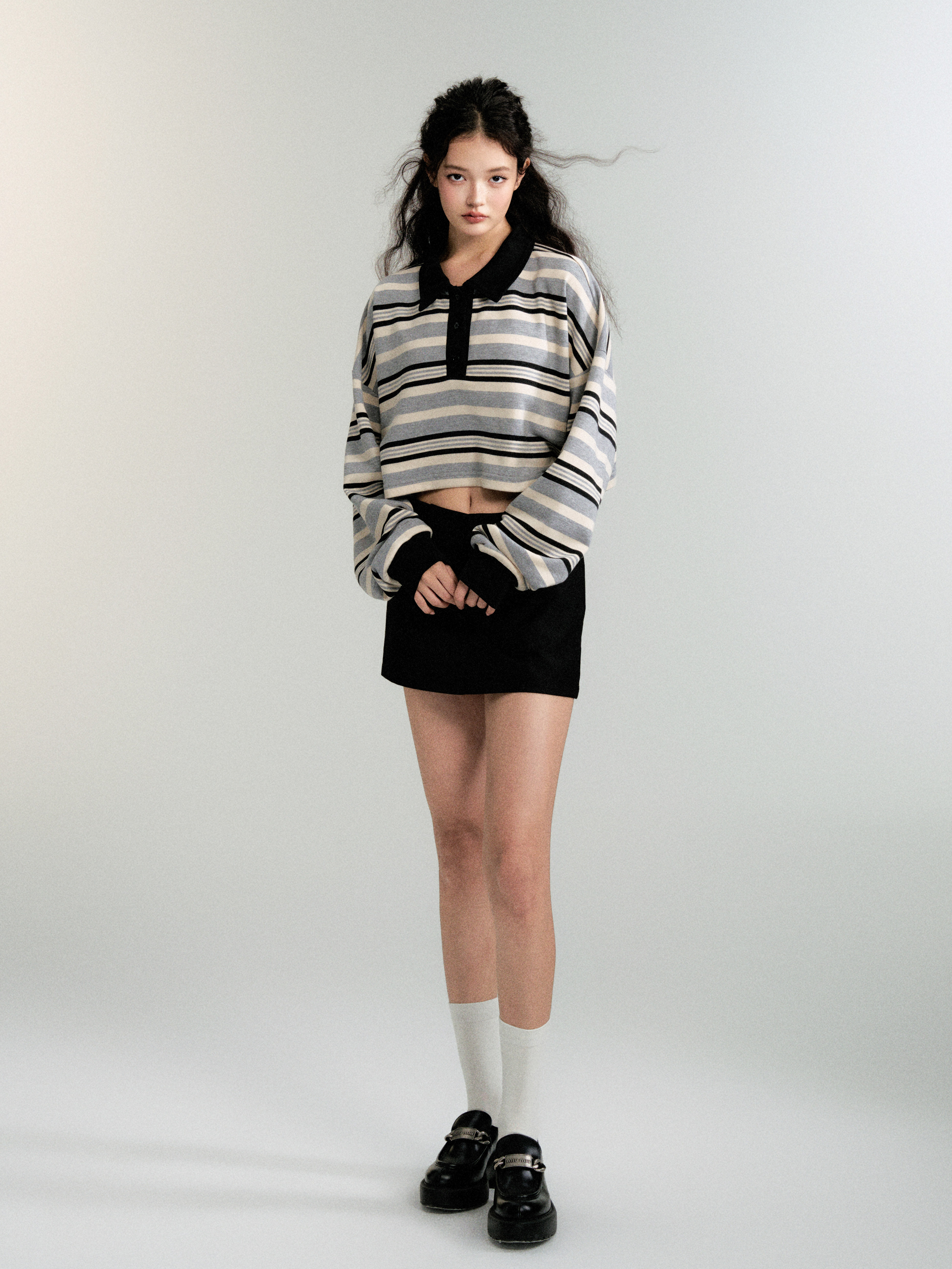 Contrasting Striped Sweatshirt Polo Shirt (Sporty Casual Fit)