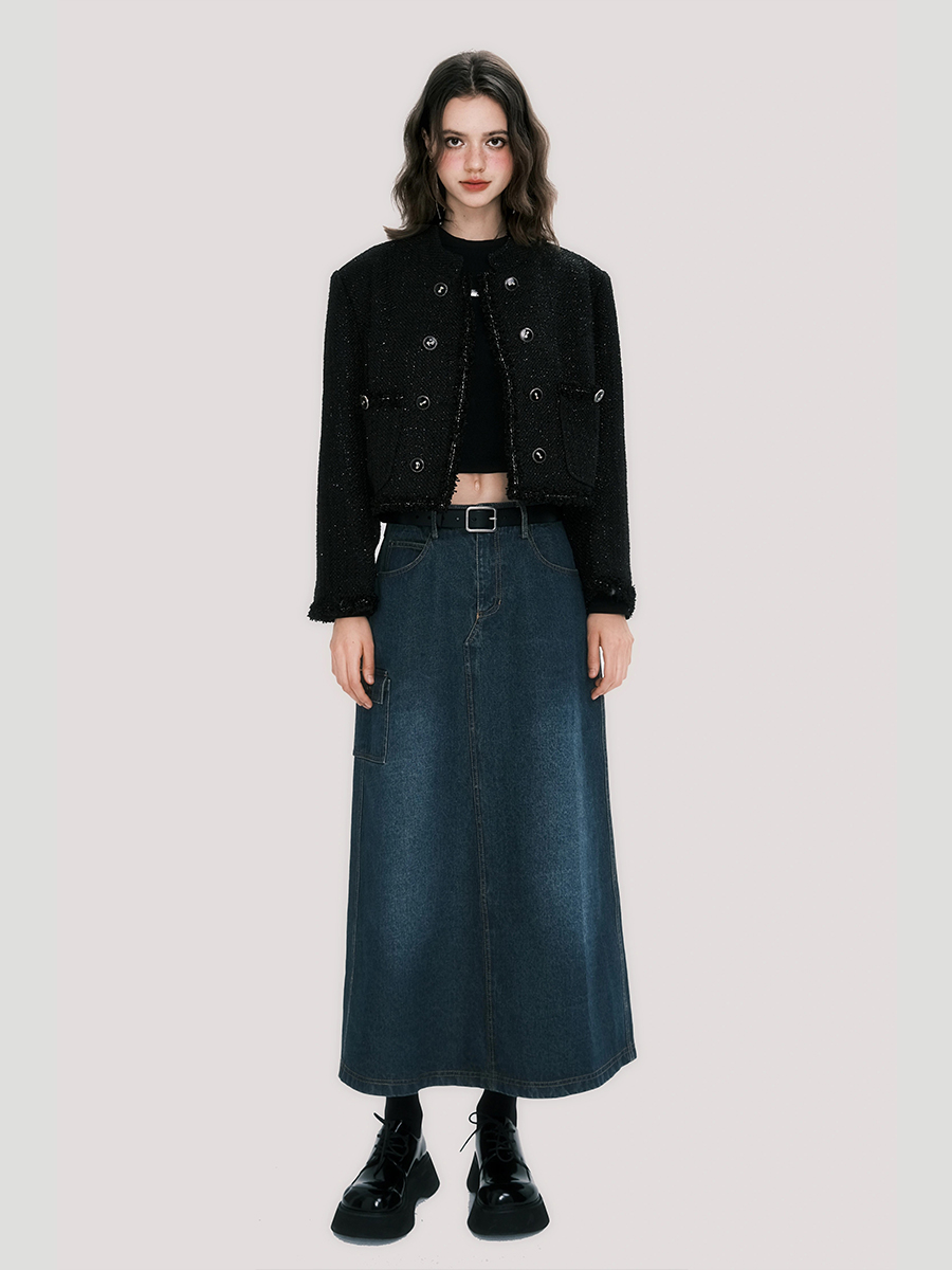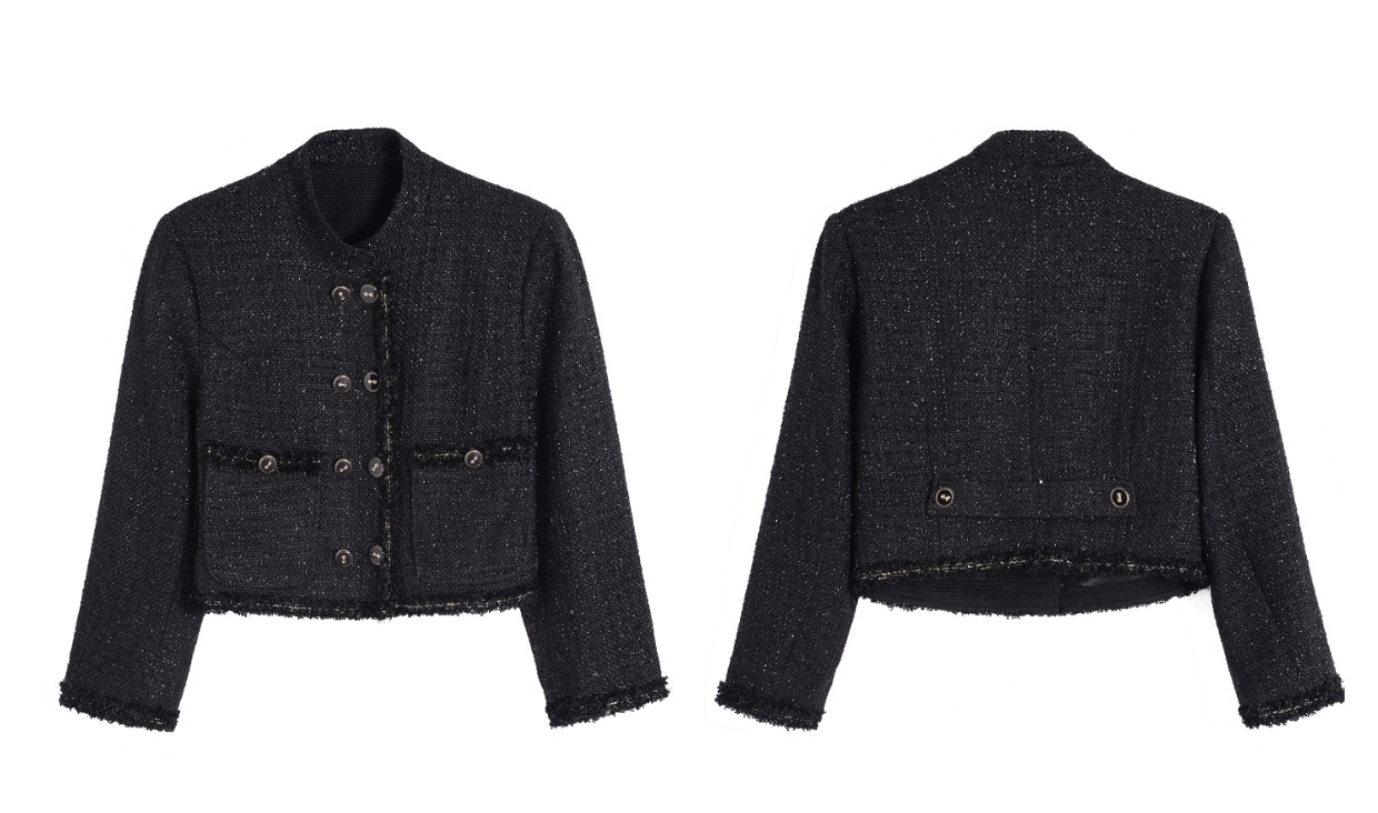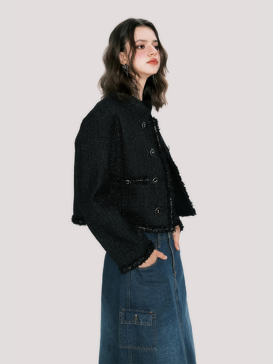 Abrigo corto con cuello dorado negro de Sassy Miss