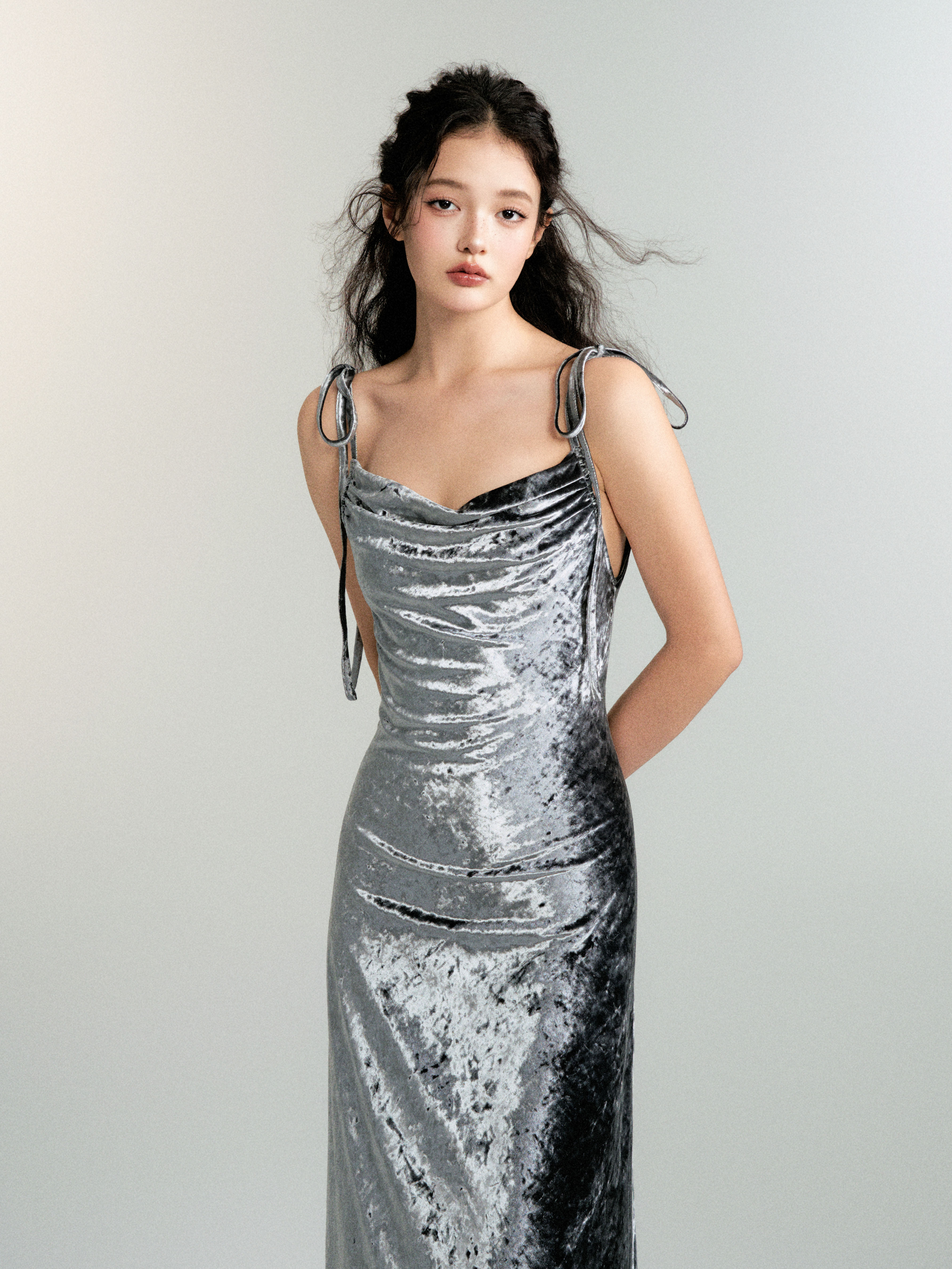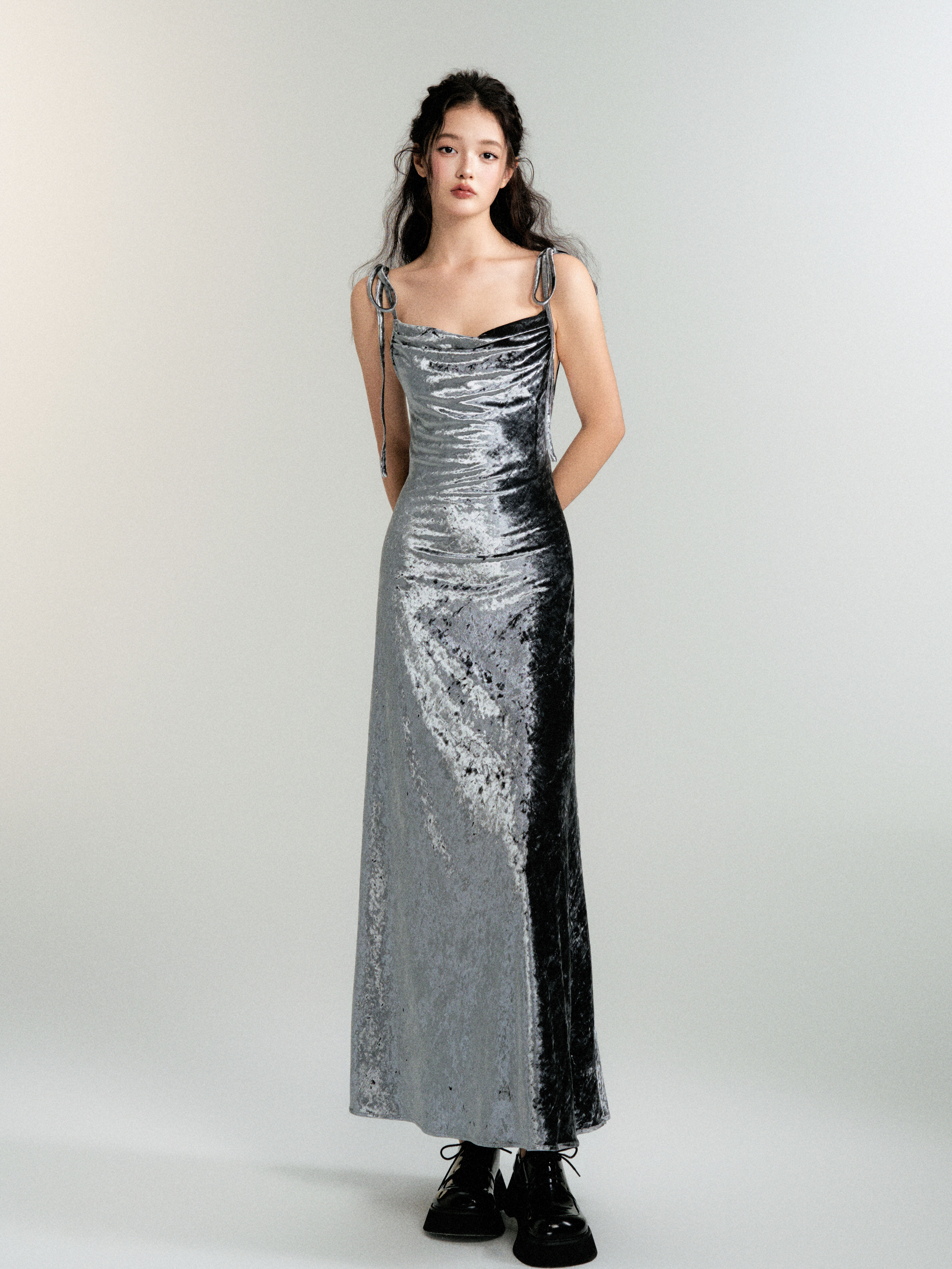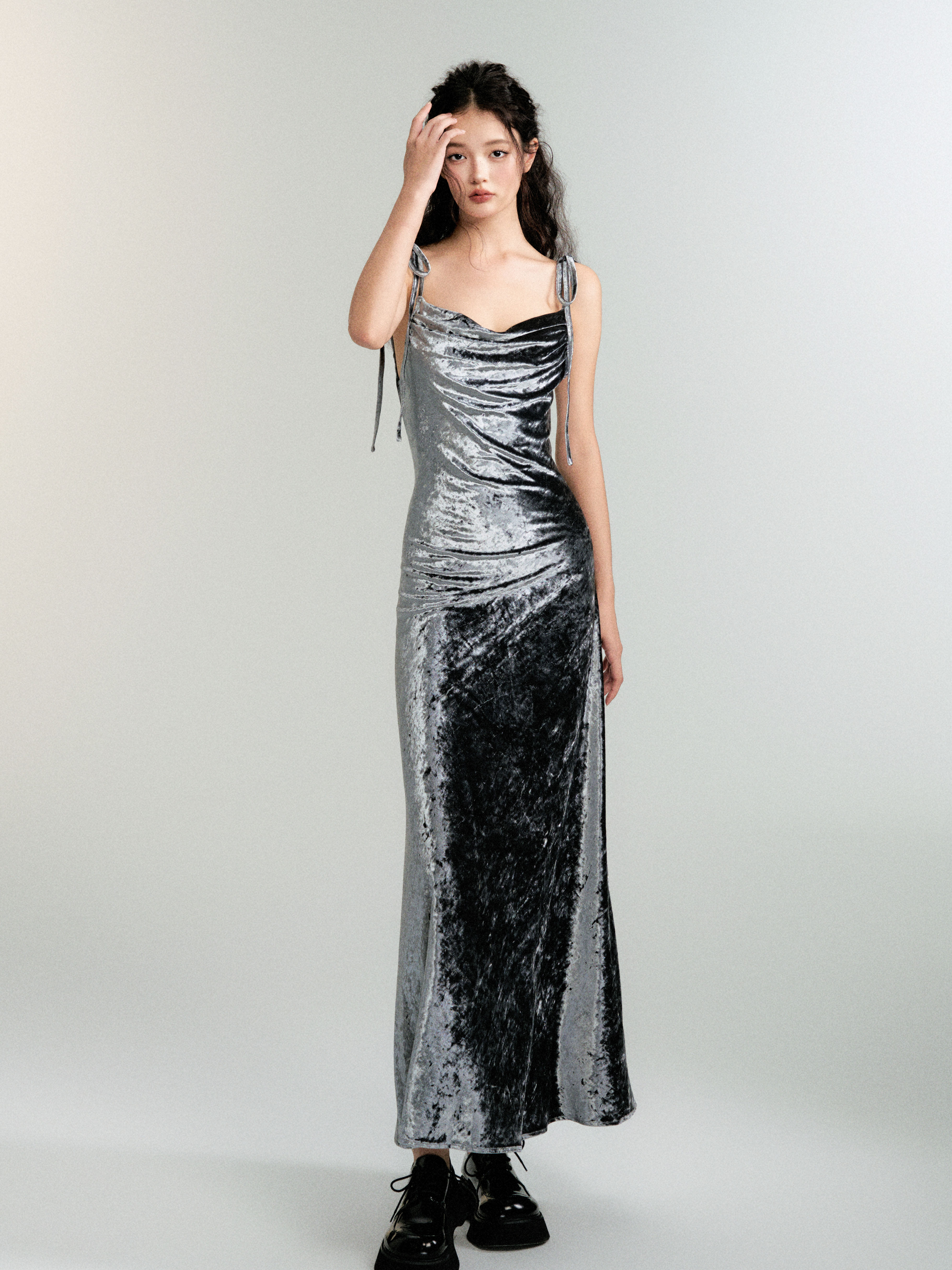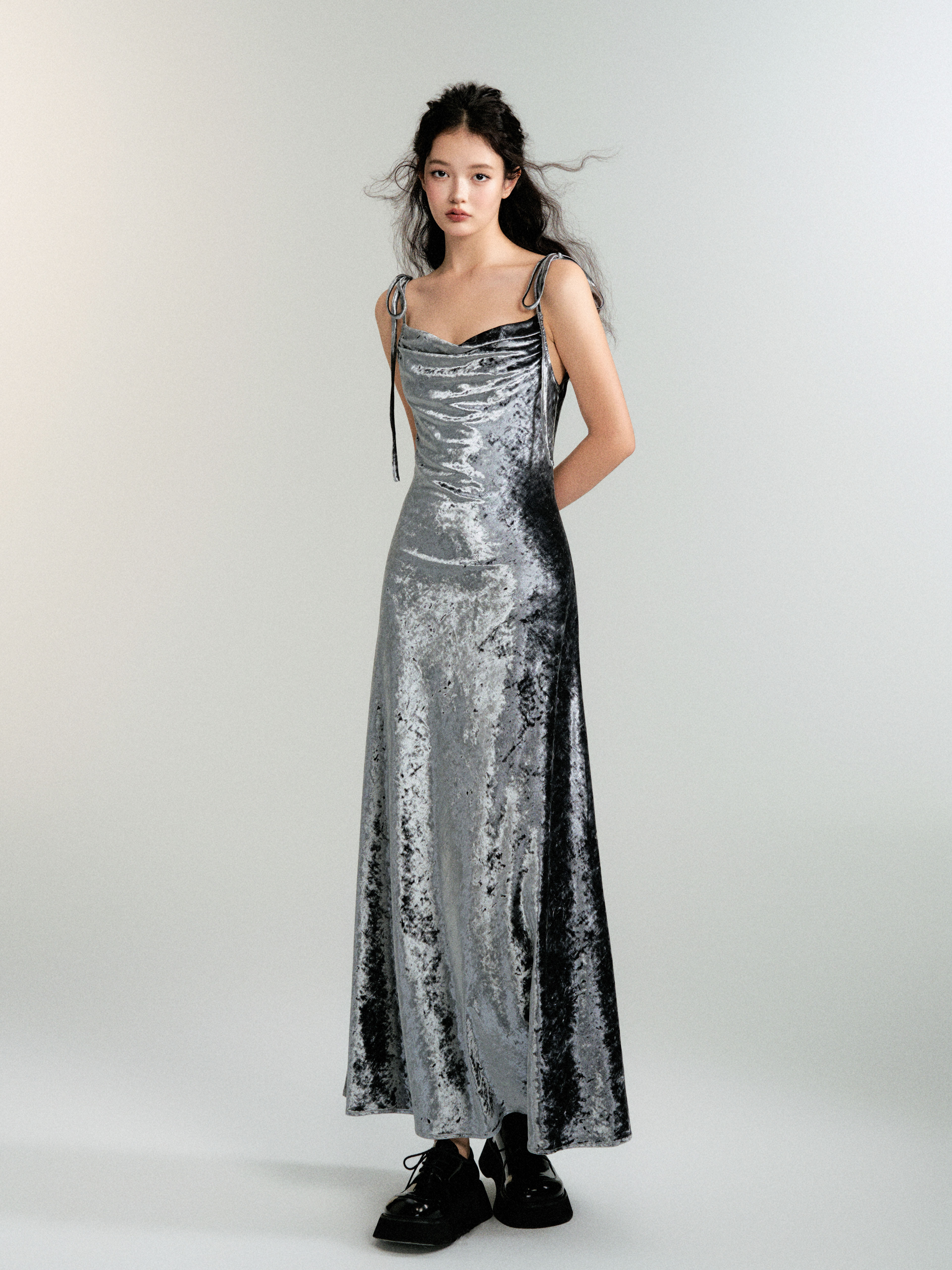 Velvet Swing Neck Sexy Slip Dress for Dinner Events