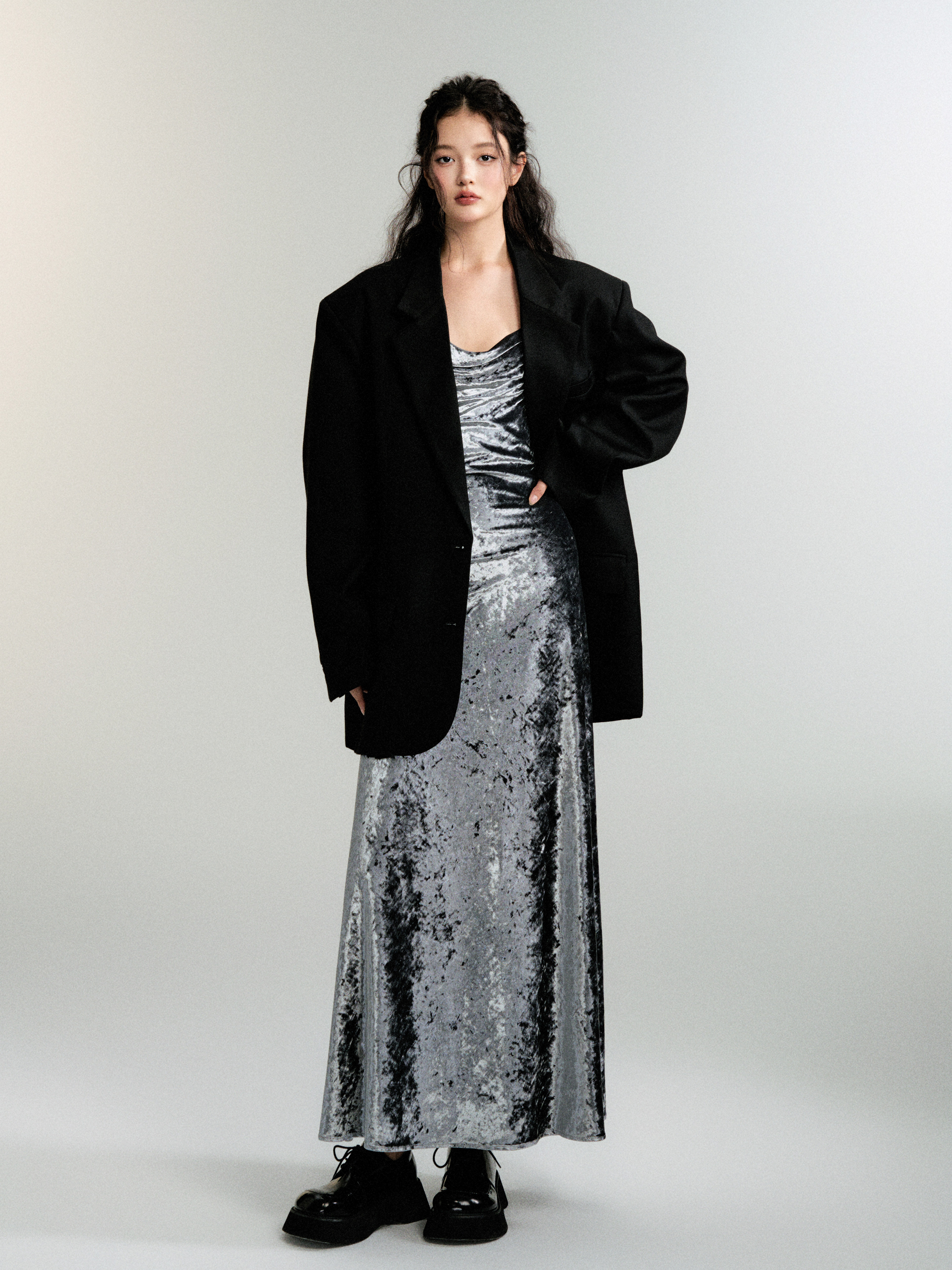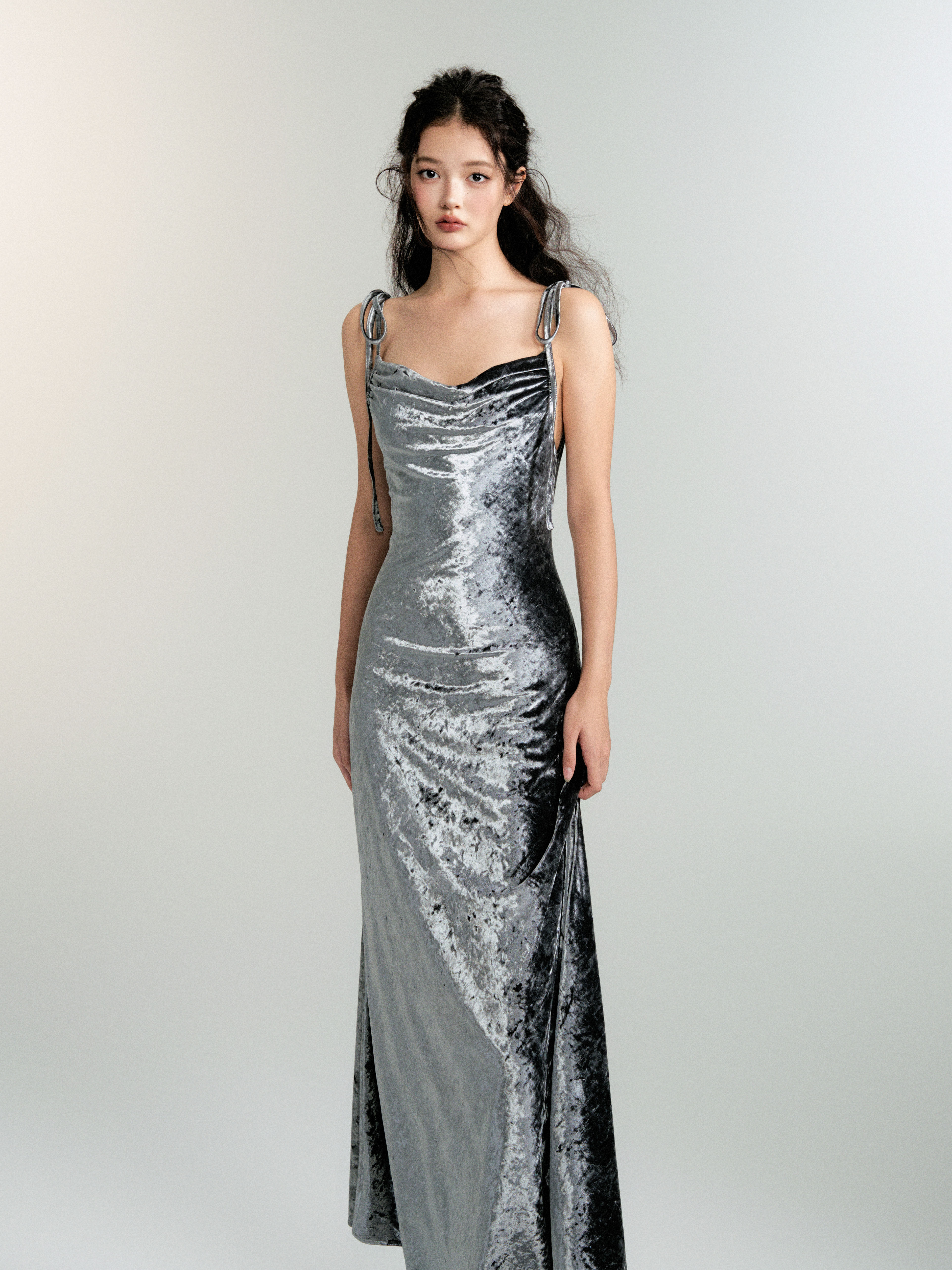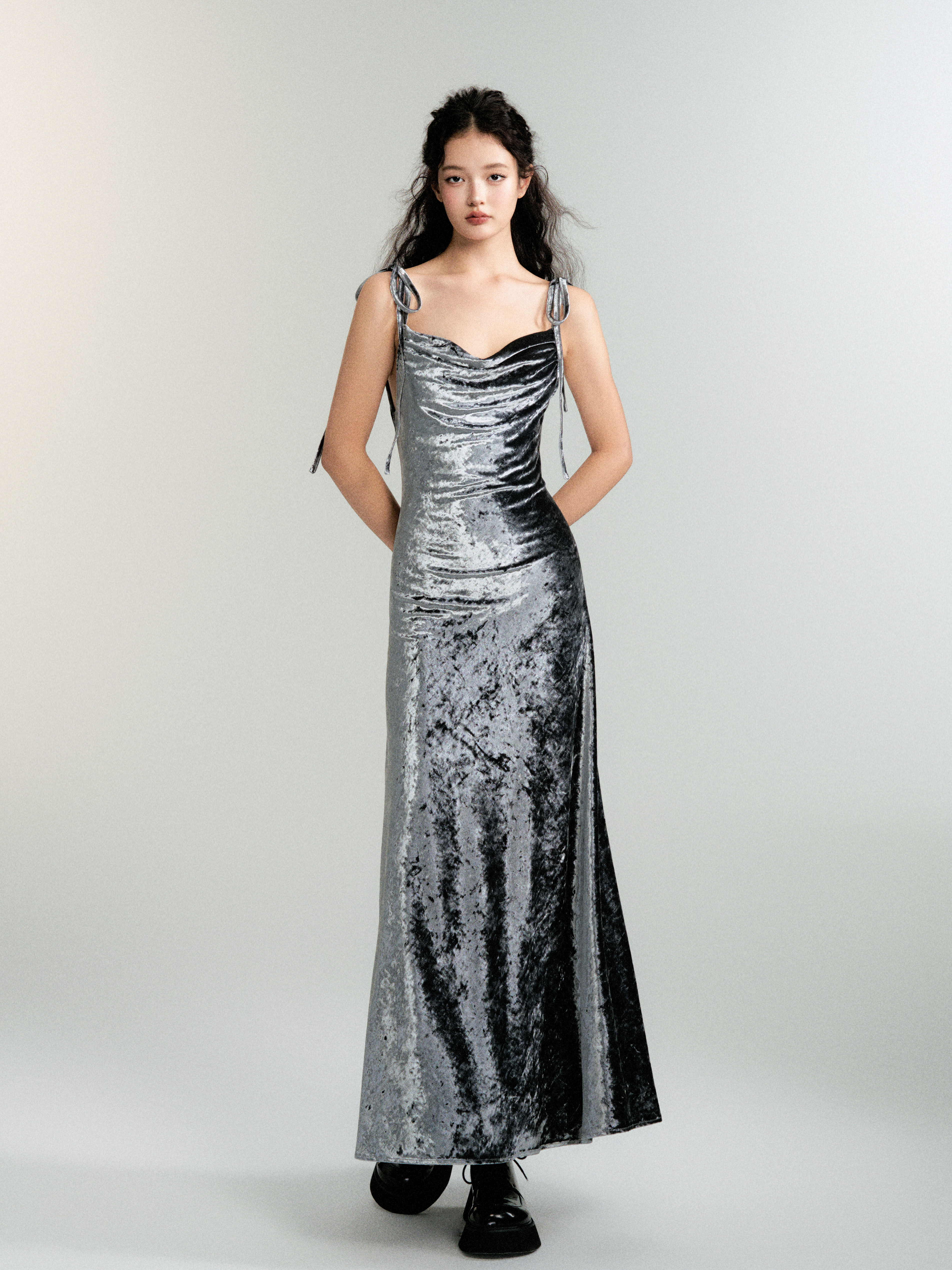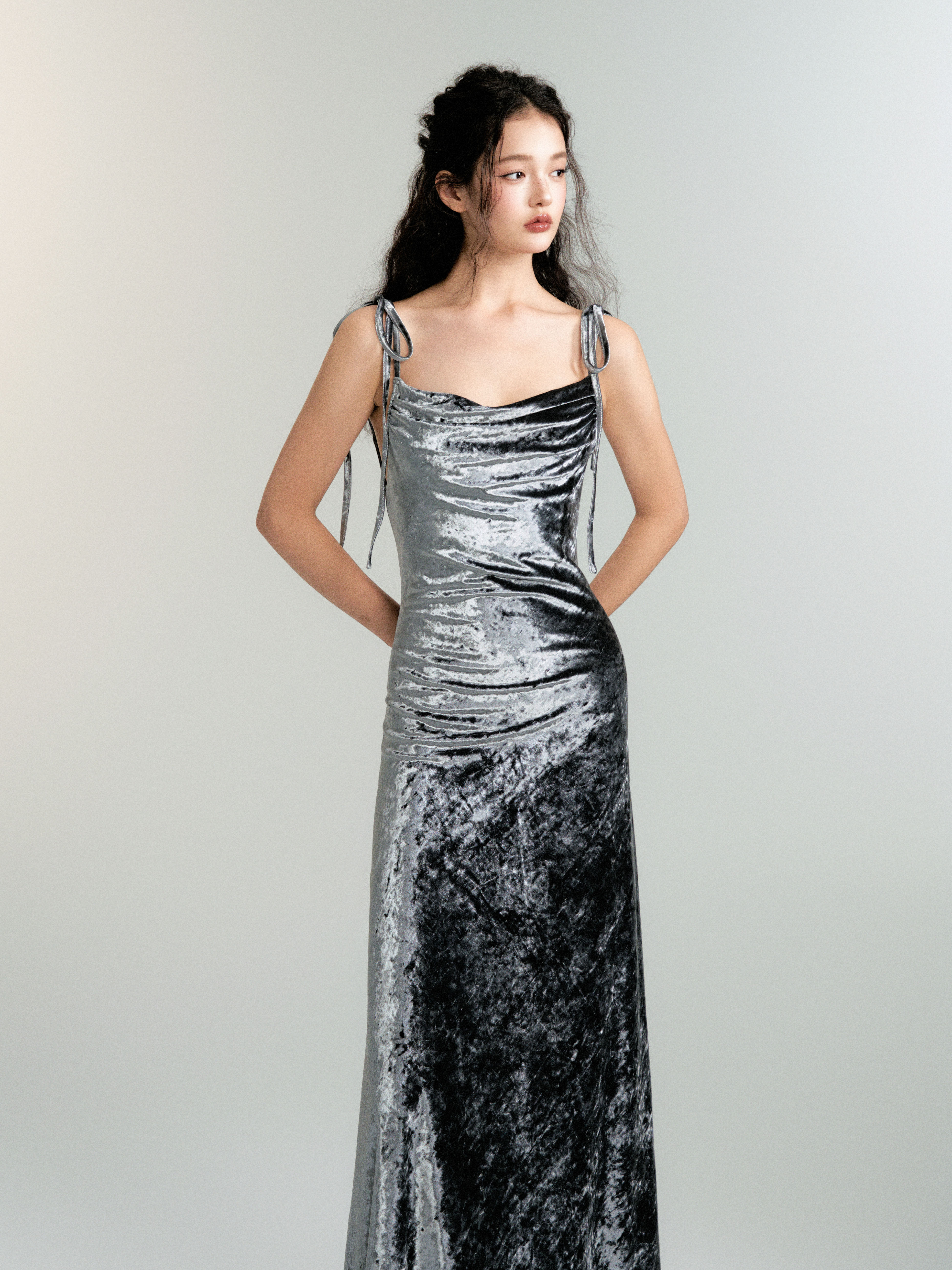 Velvet Swing Neck Sexy Slip Dress for Dinner Events