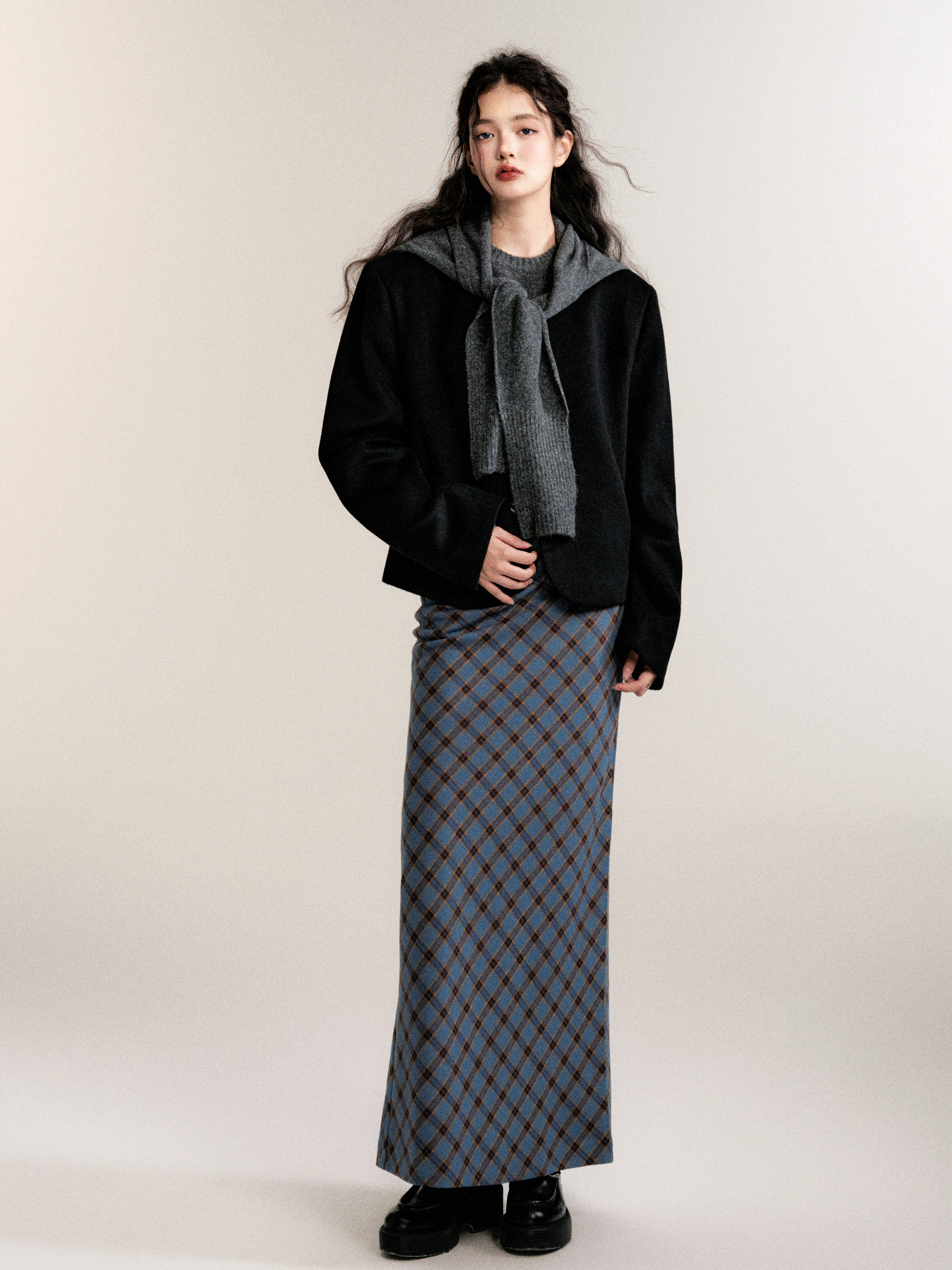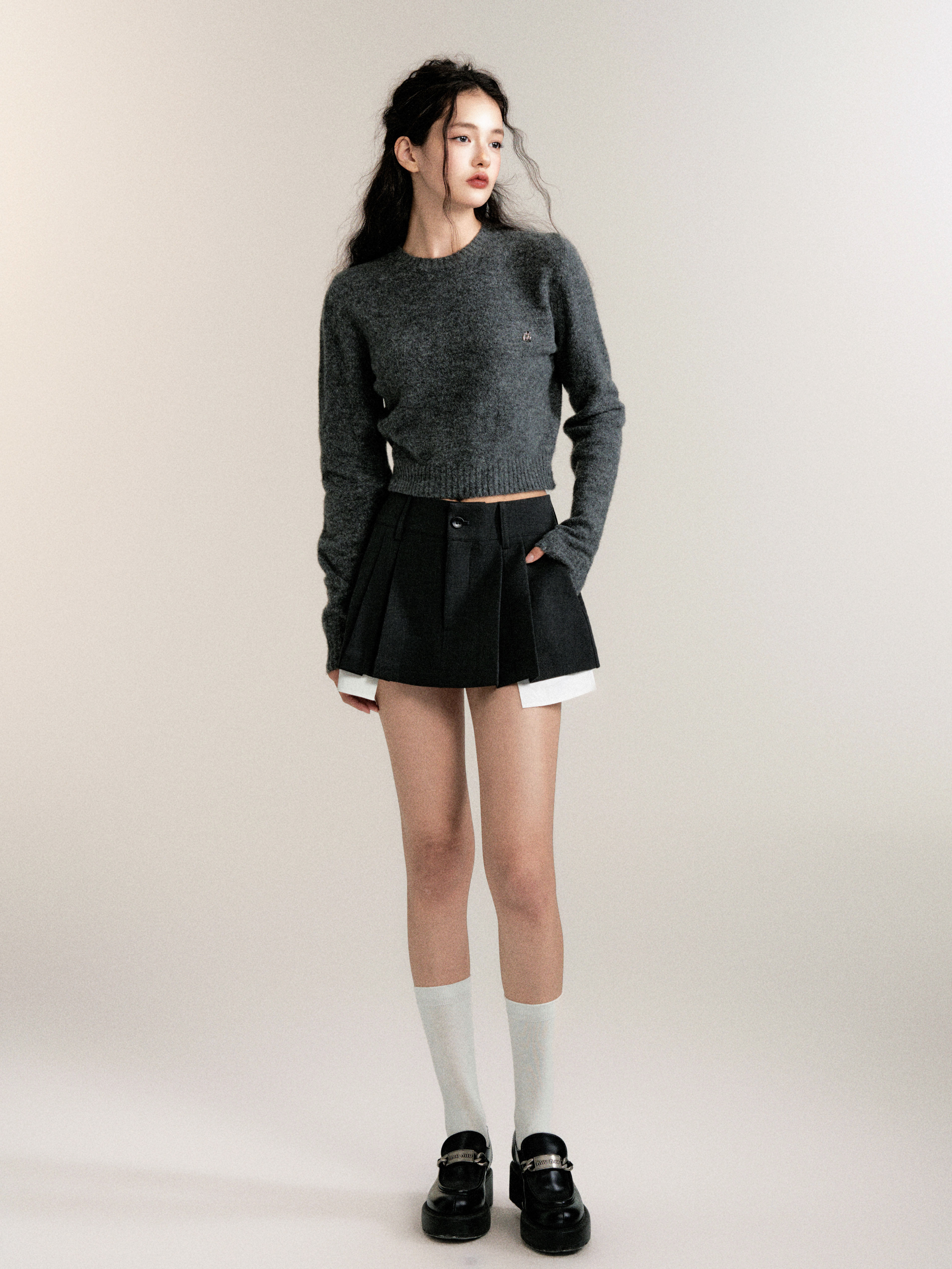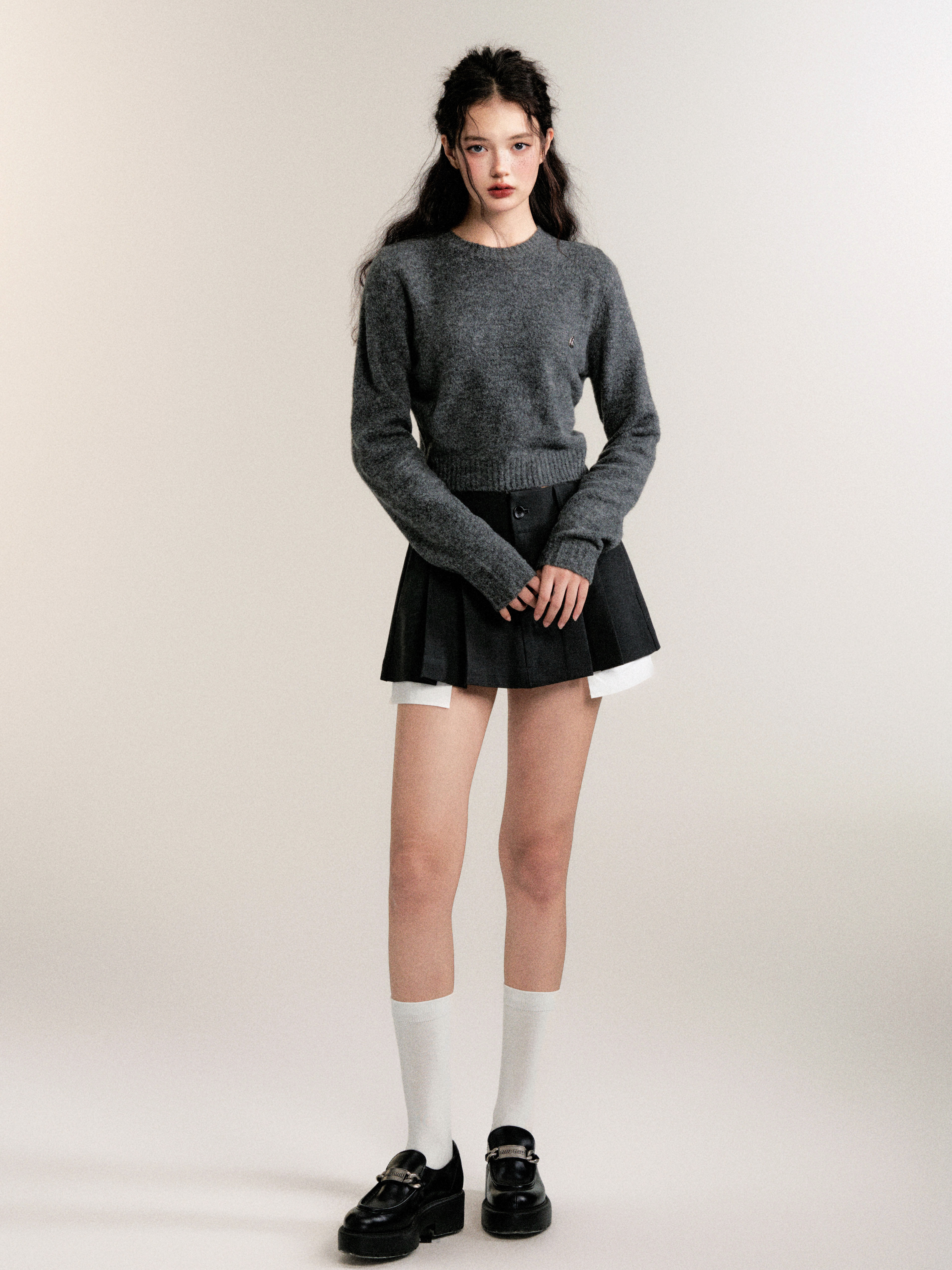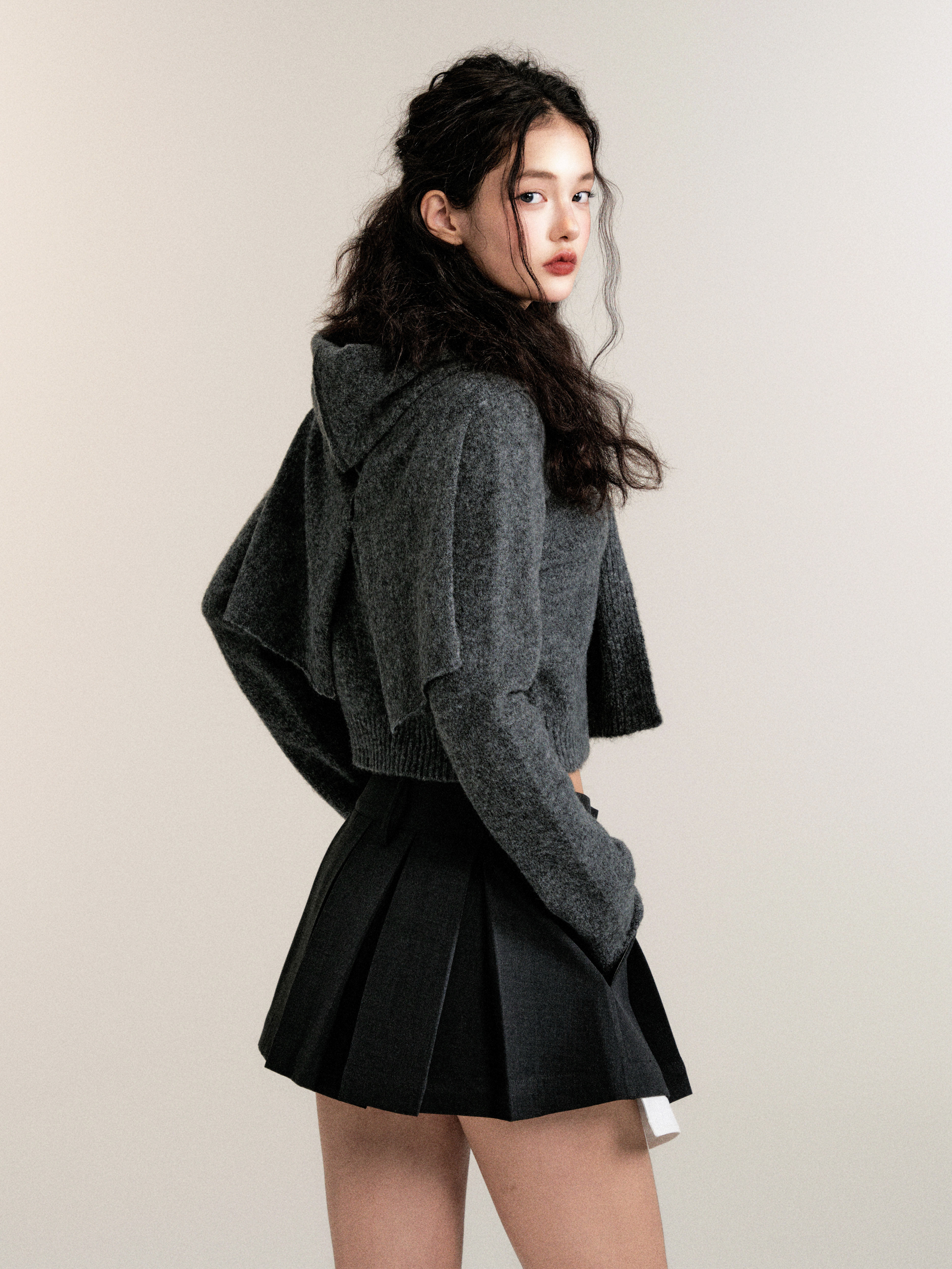 Premium Gray Belt Scarf Wool Sweater with Elegant Design