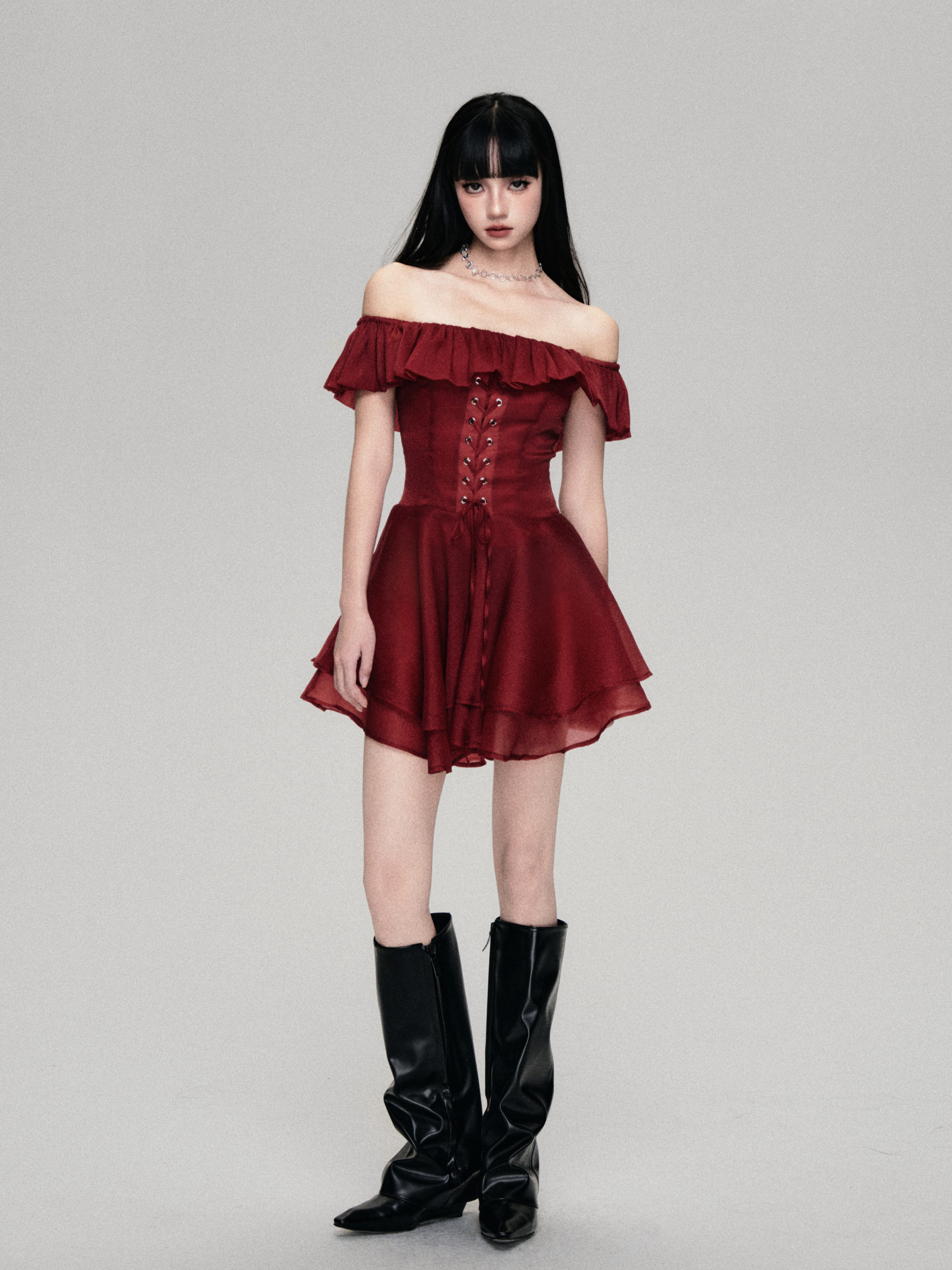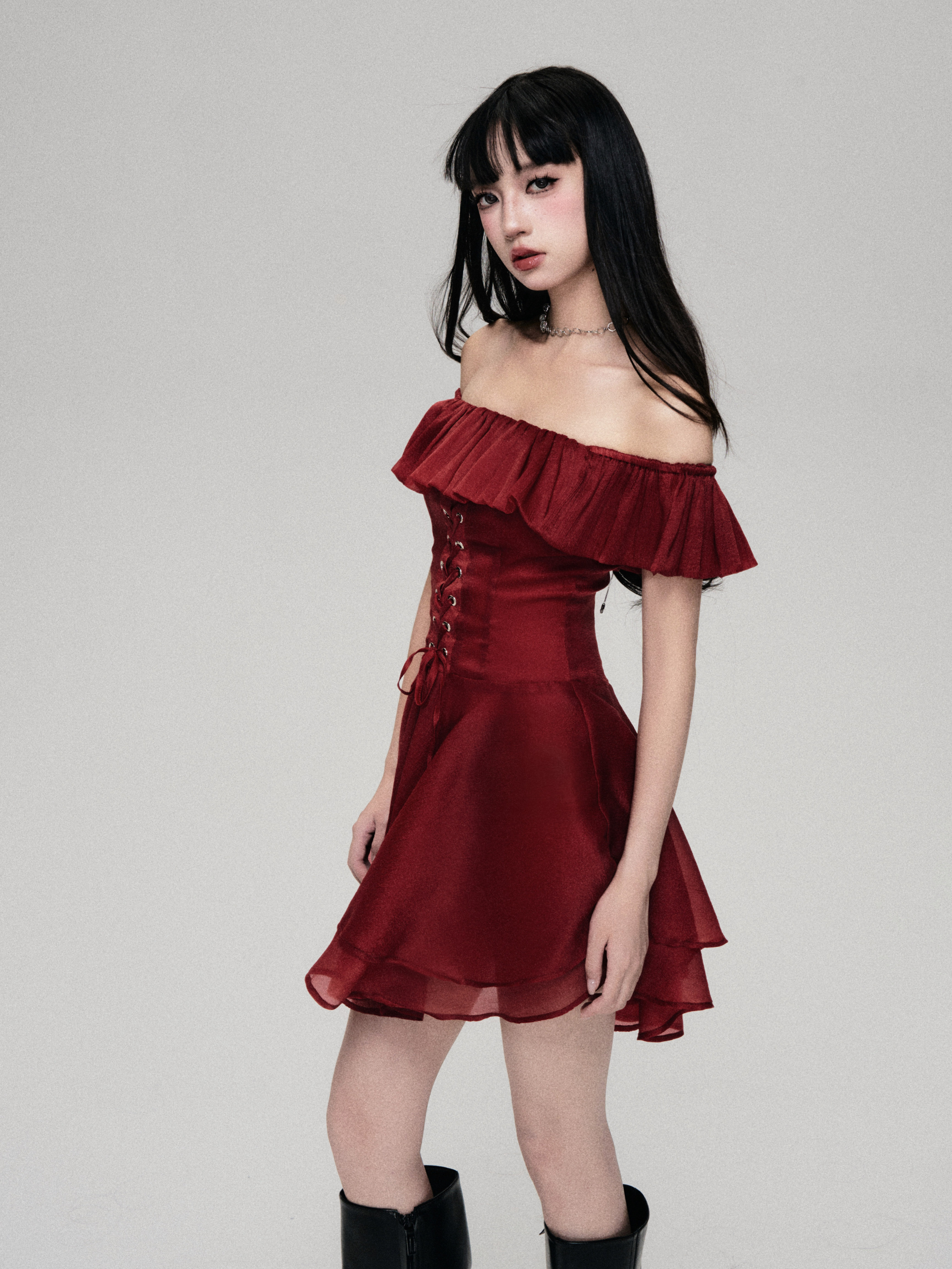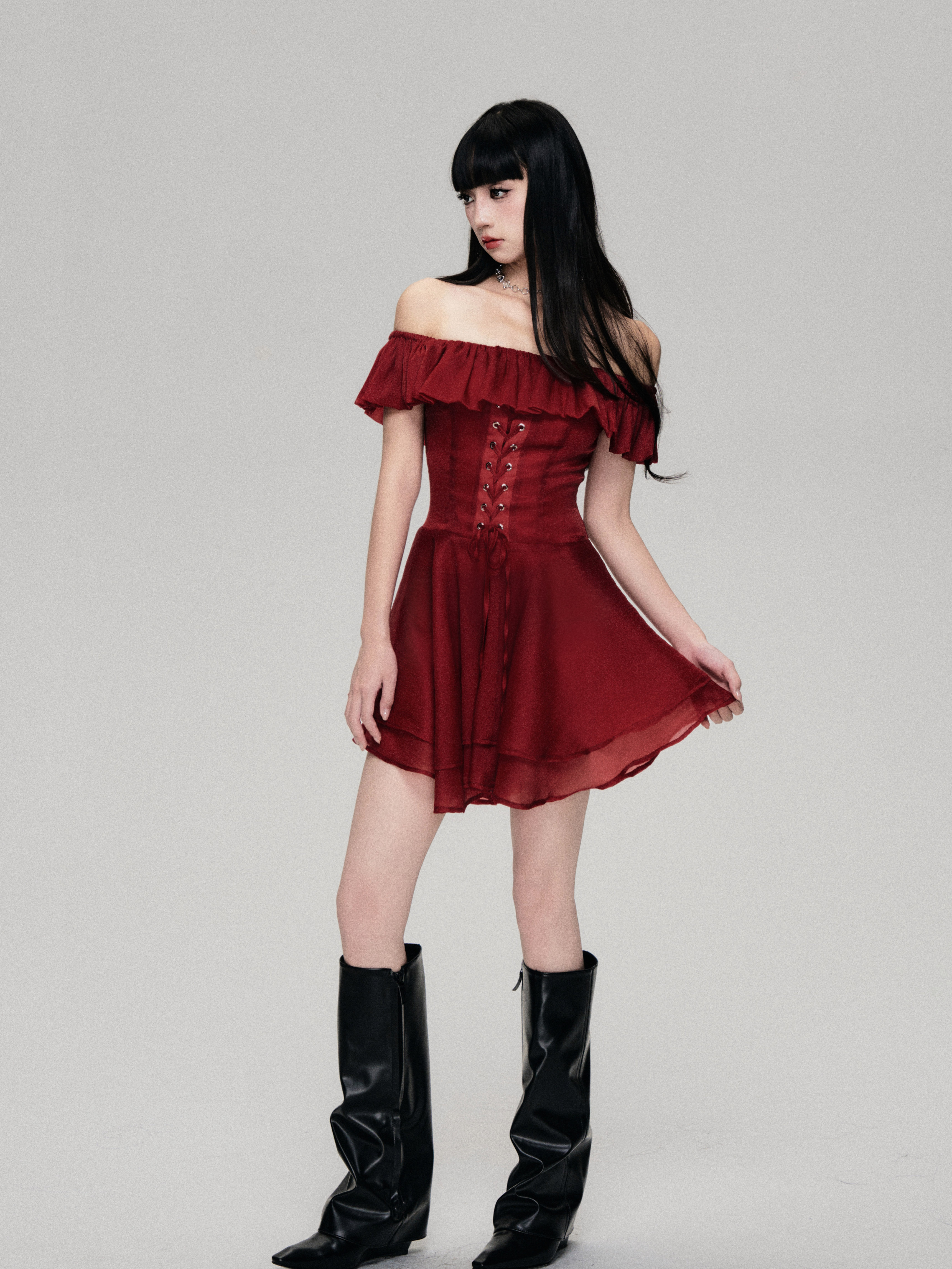 Red Rose Lace-Up Waist One-Shoulder Haute Couture Dress