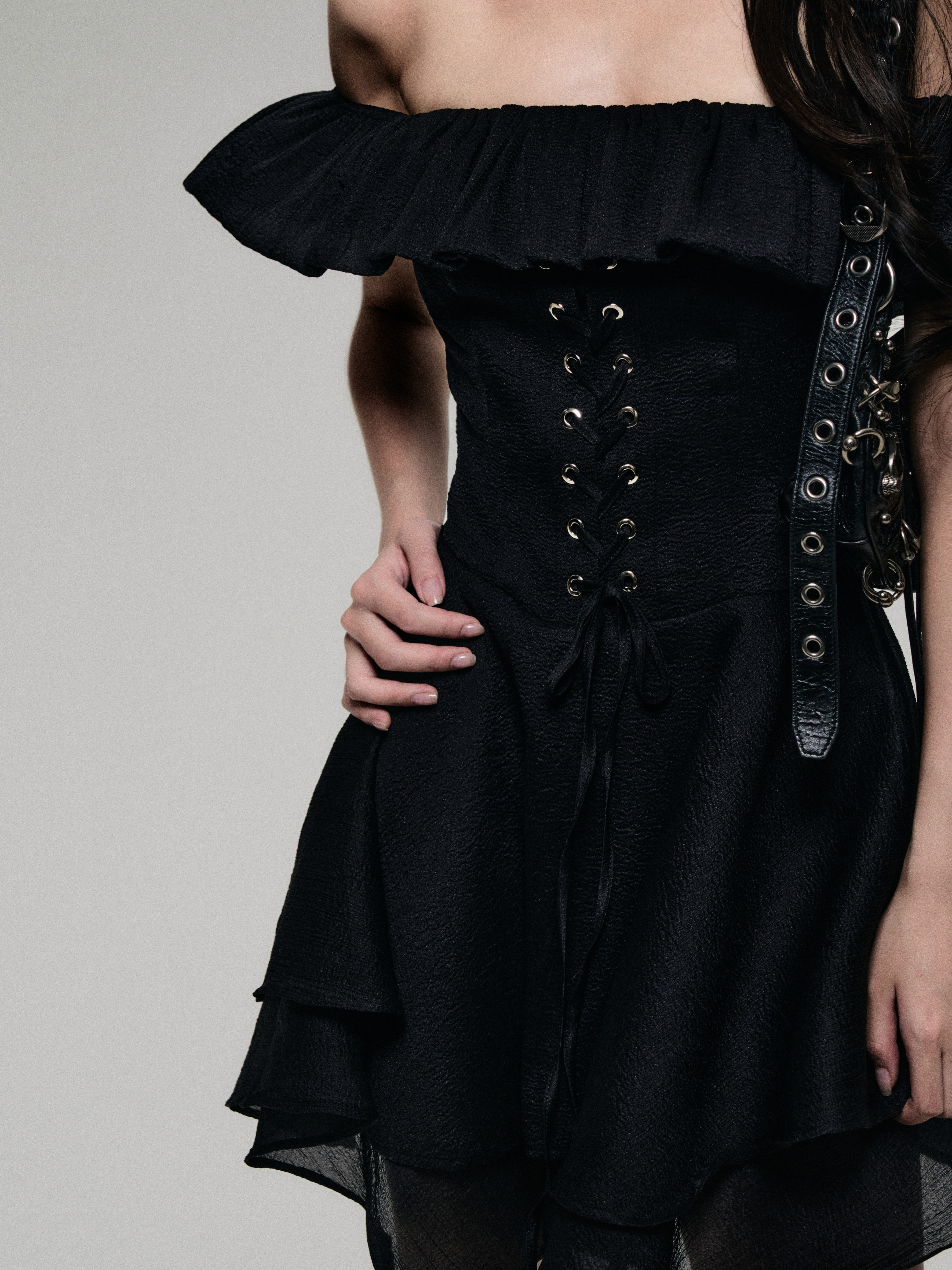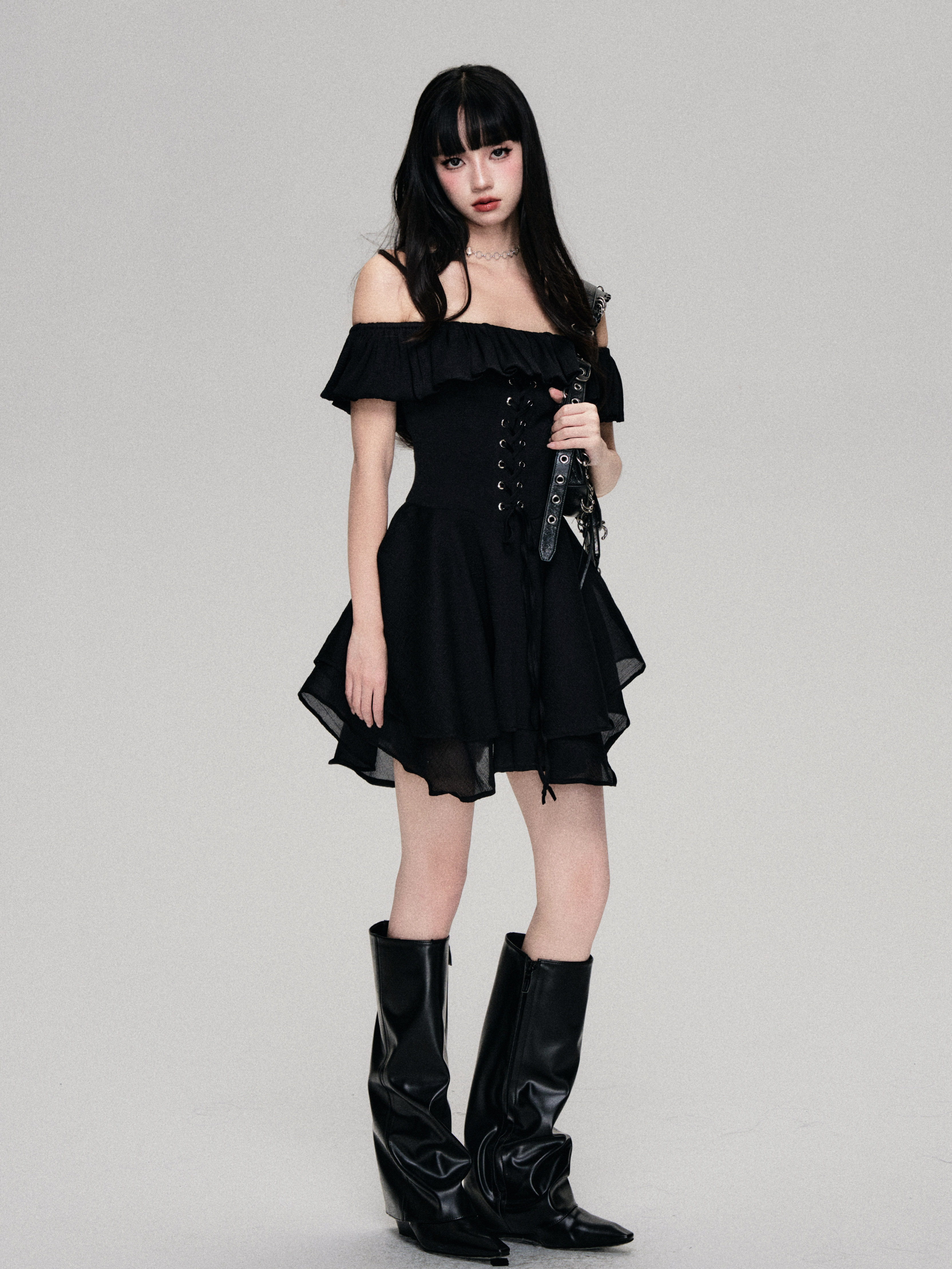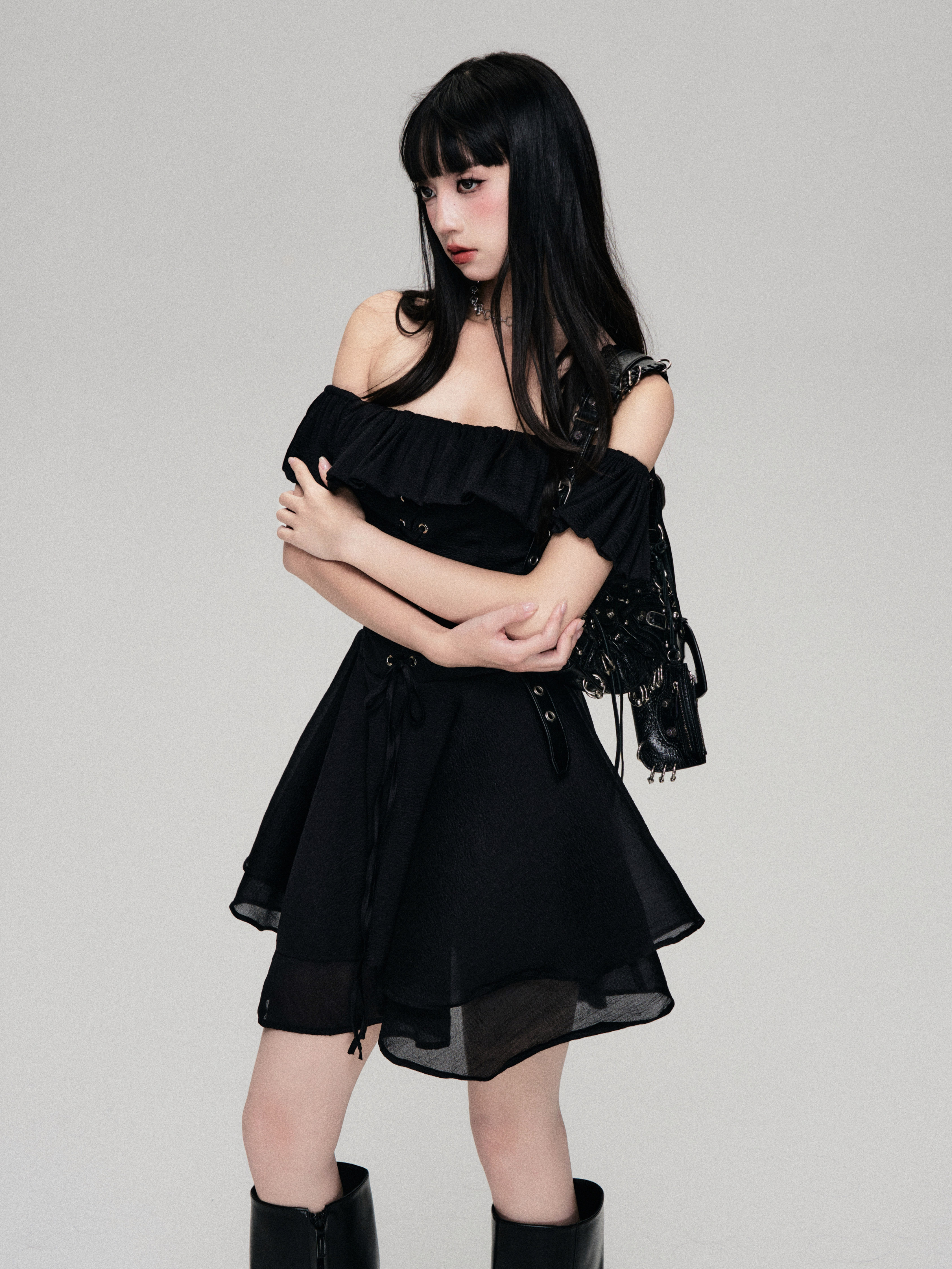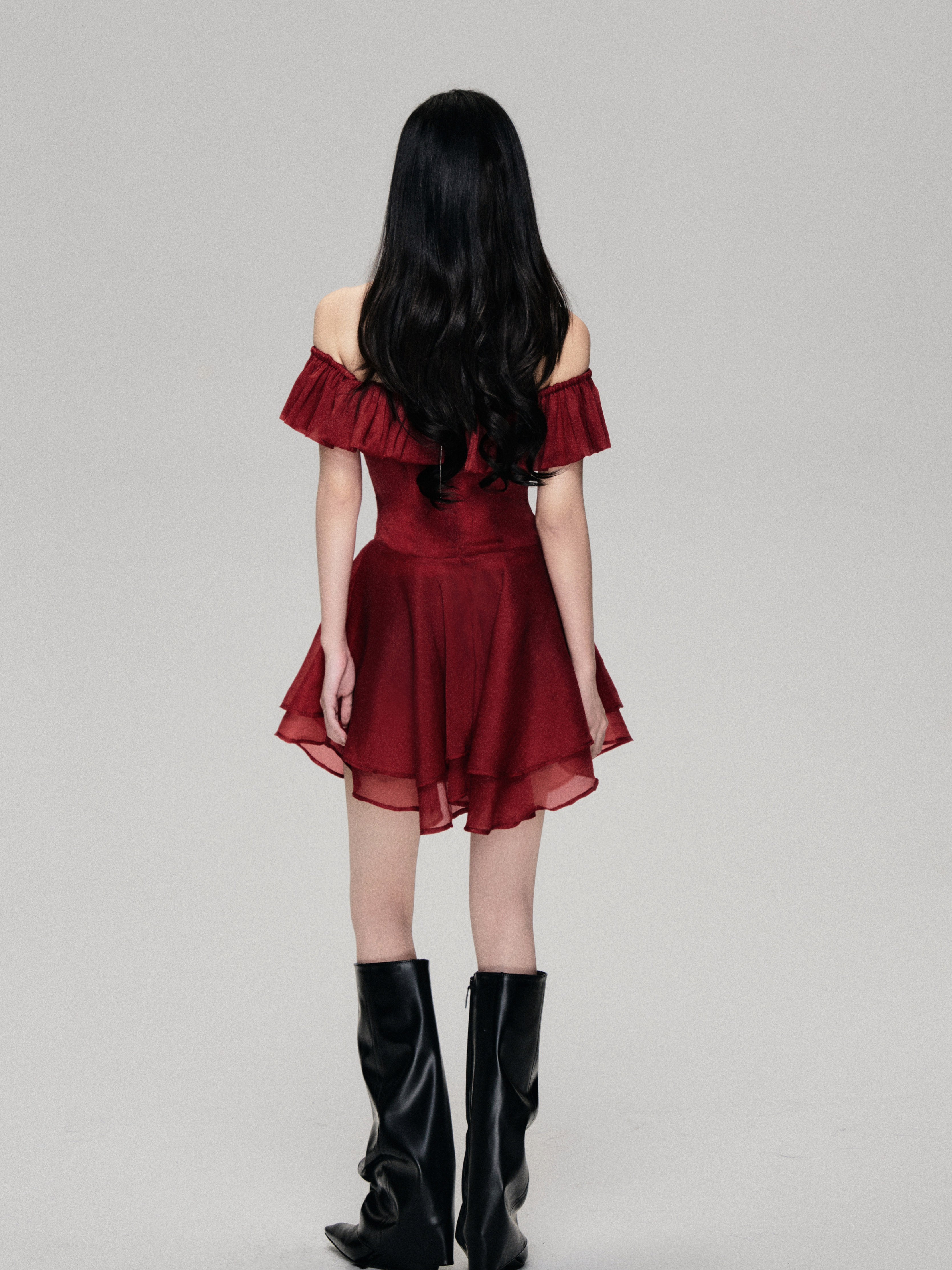 Red Rose Lace-Up Waist One-Shoulder Haute Couture Dress