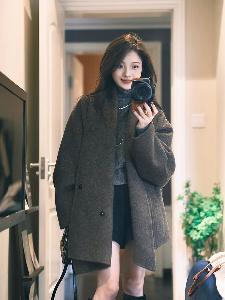 Reversible Cashmere Cape – Korean-Inspired Scarf Shawl Coat