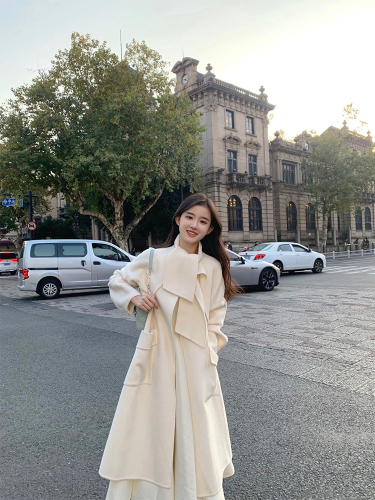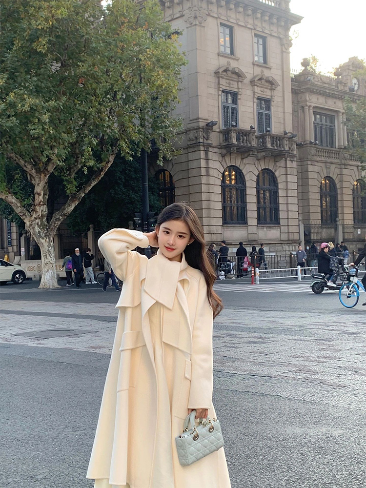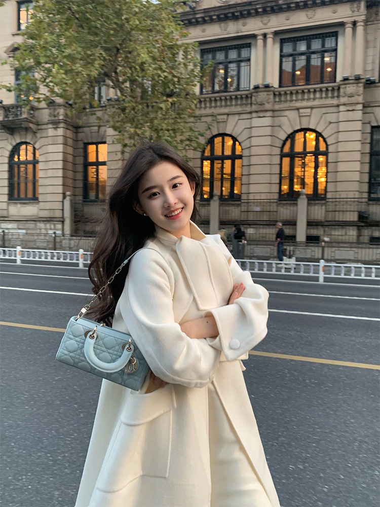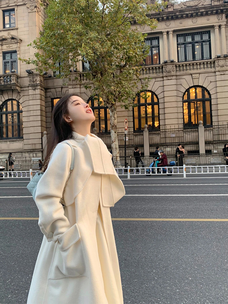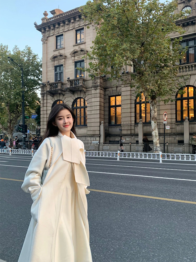 Cream White Reversible Cloak – Hepburn-Style Petite Wool Jacket