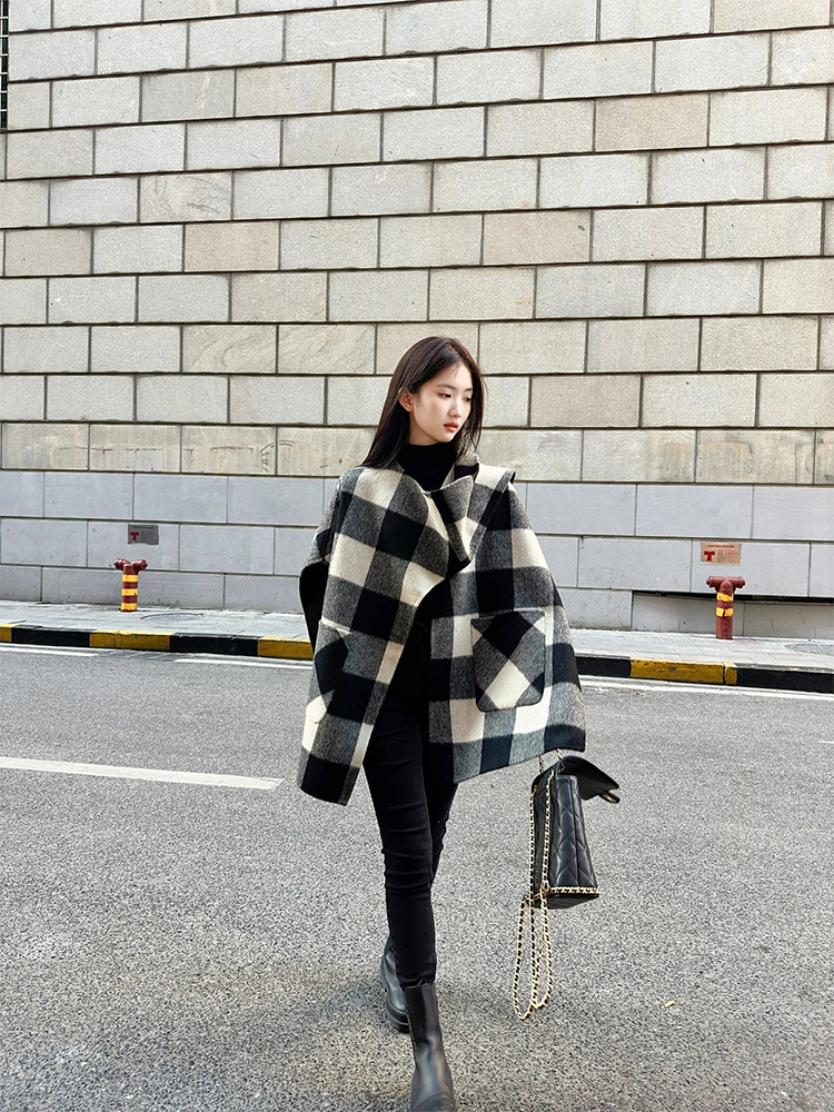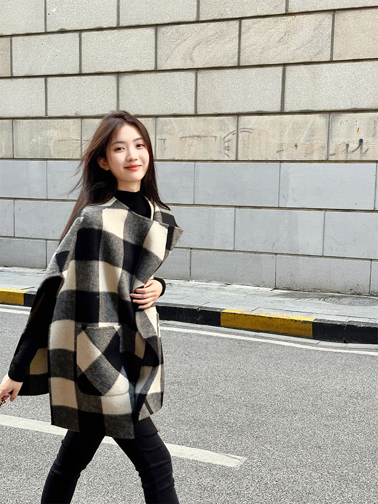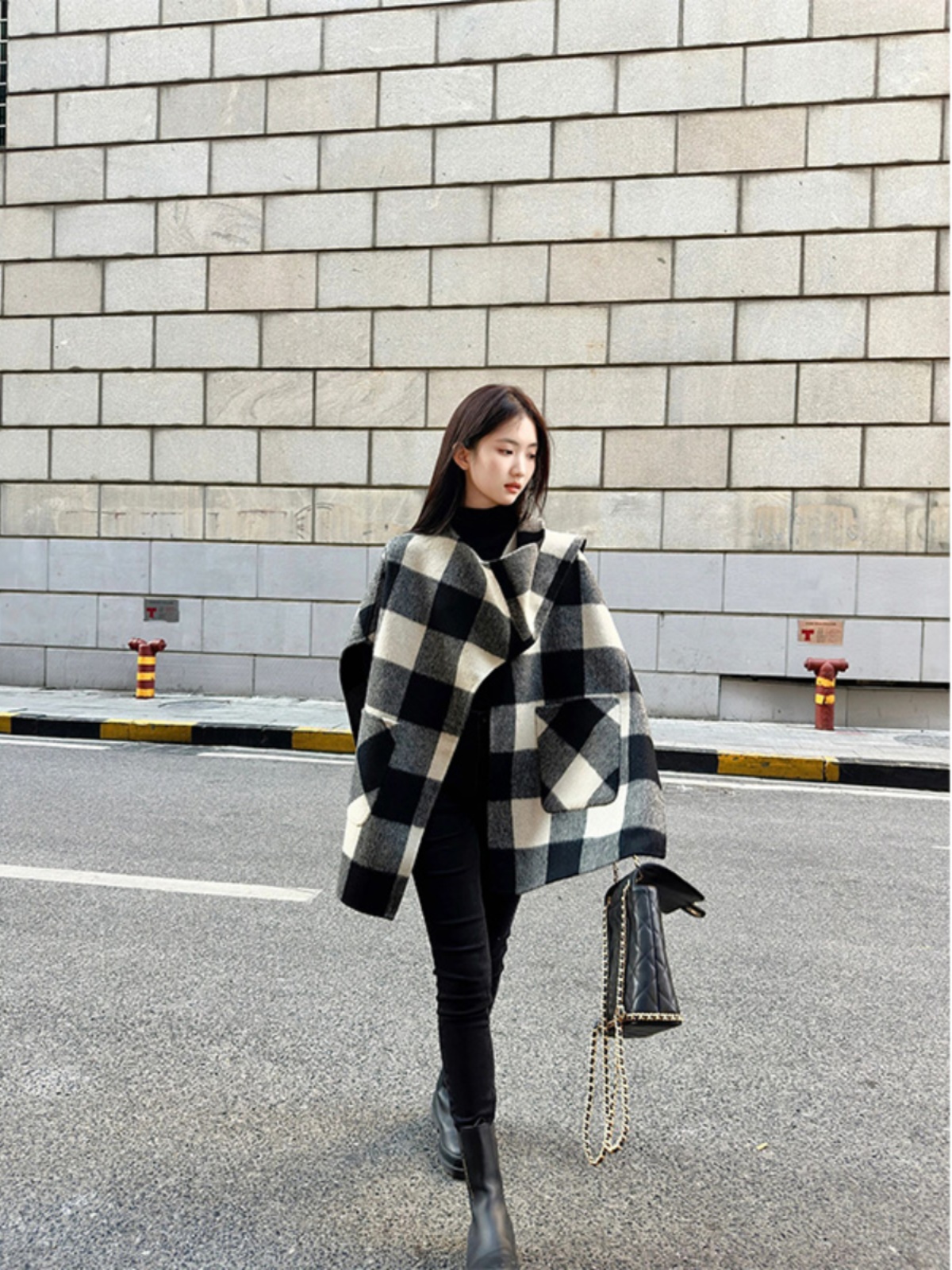 Reversible Cashmere Cape – Hepburn-Style Short Checkered Wool Jacket