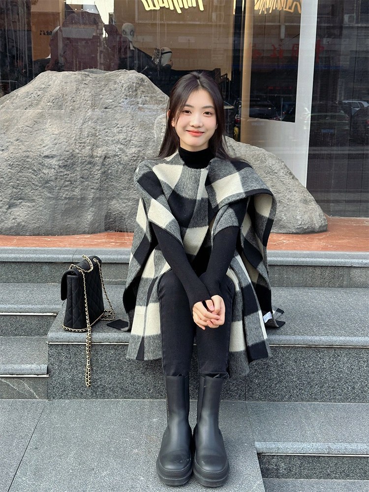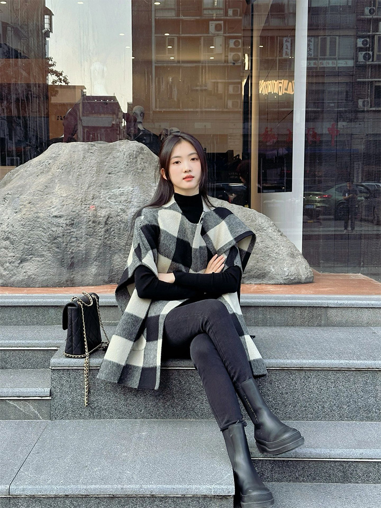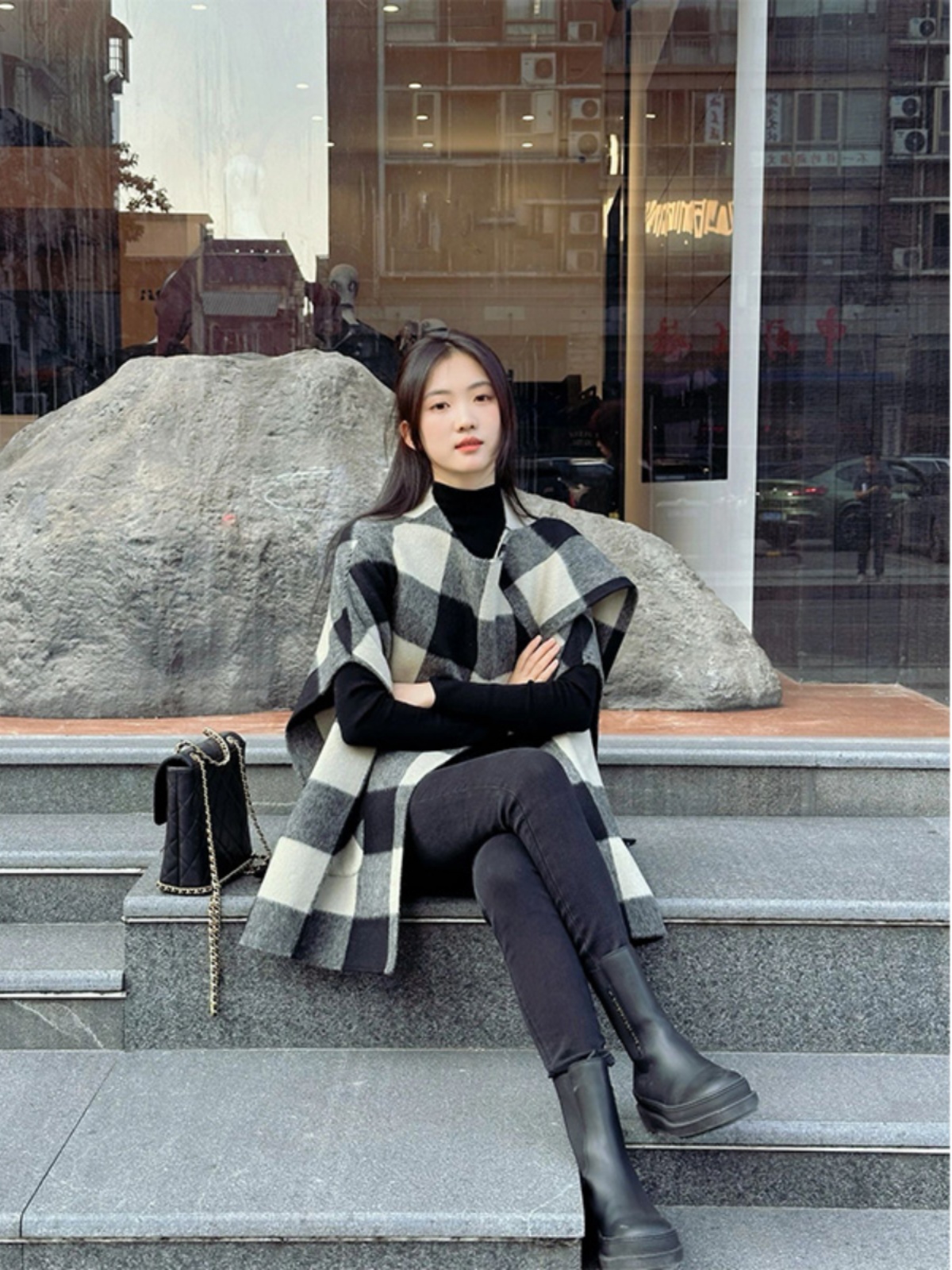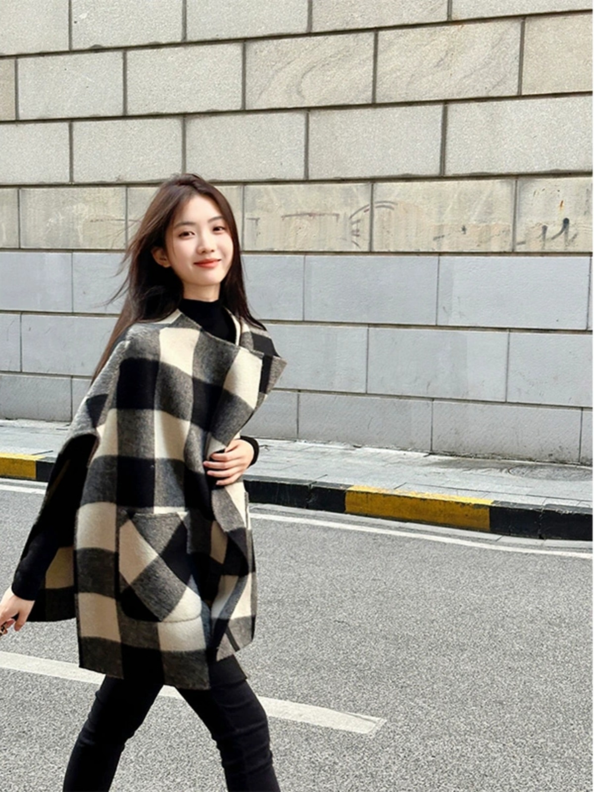 Reversible Cashmere Cape – Hepburn-Style Short Checkered Wool Jacket