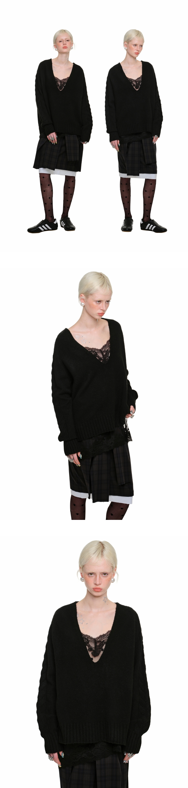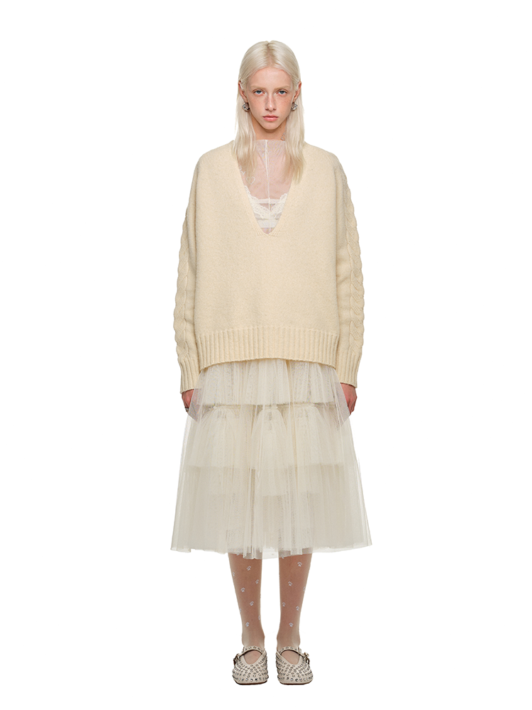 Slouchy Velvet Deep V-Neck Sweater – Layered Long Sleeve Knitwear