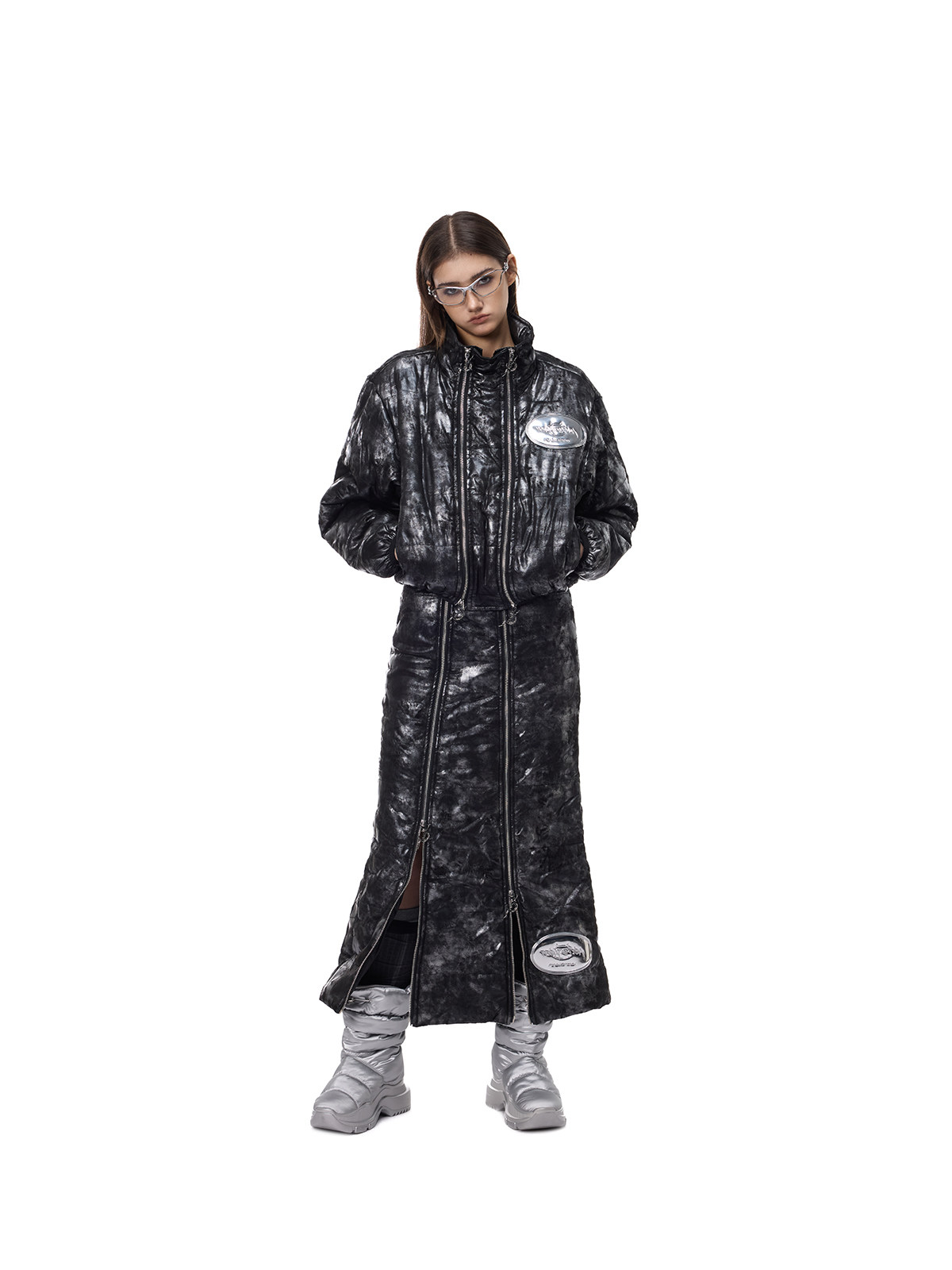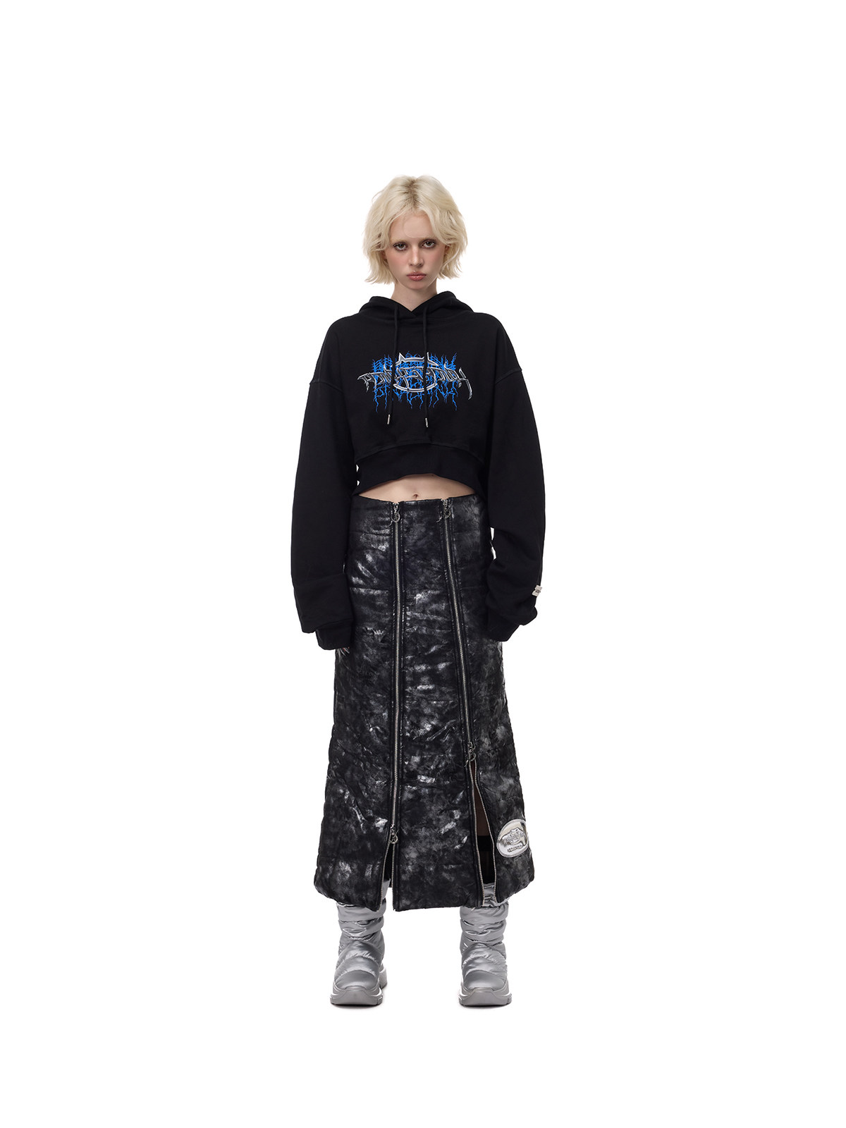 Electric Moon Double-Zip Quilted A-Line Y2K Unisex Skirt
