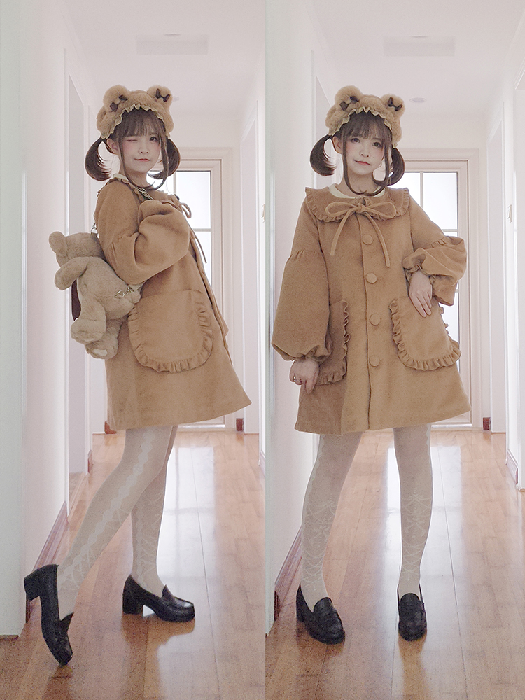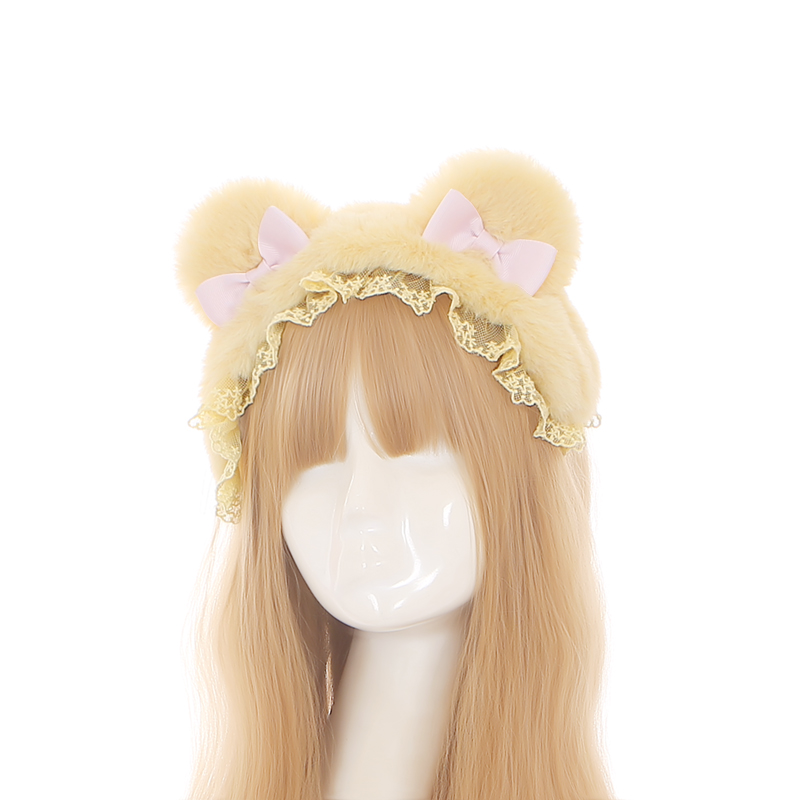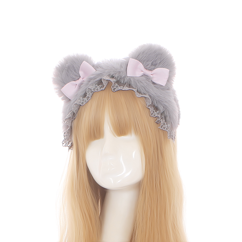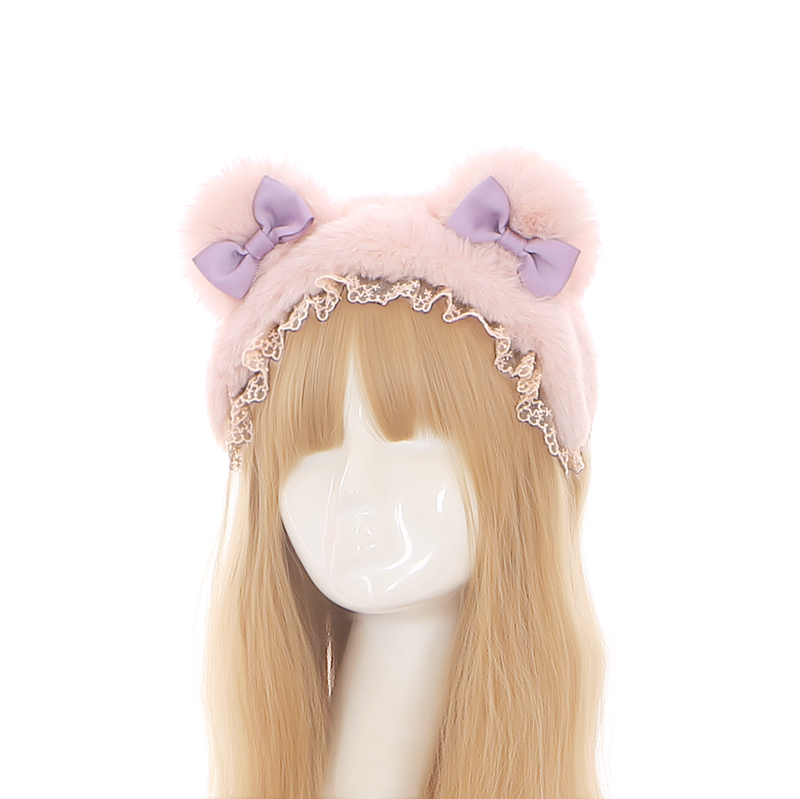 S388 Lolita Winter Furry Bear Bow Headband