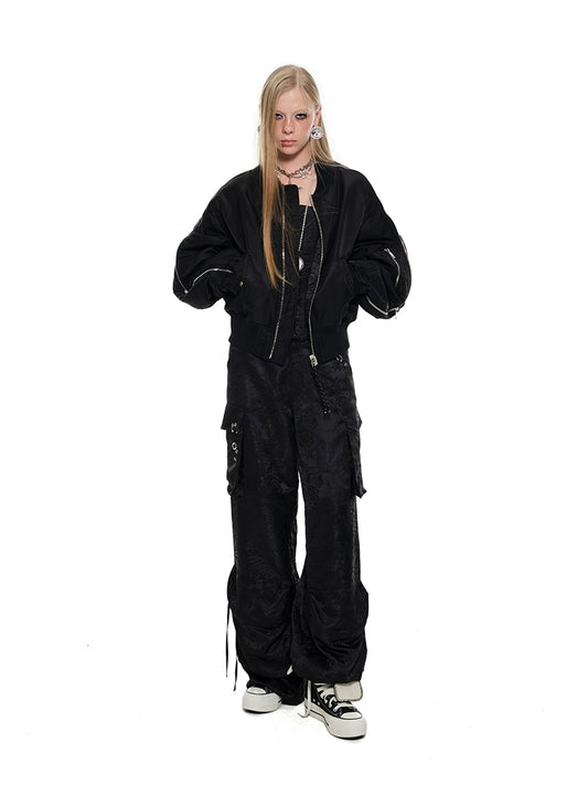 Metal Accent Letter P Jacket with Fur Shoulder Padding (Unisex)