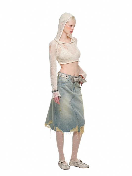Denim Print Raw Edge Skirt – Tinted Washed Look