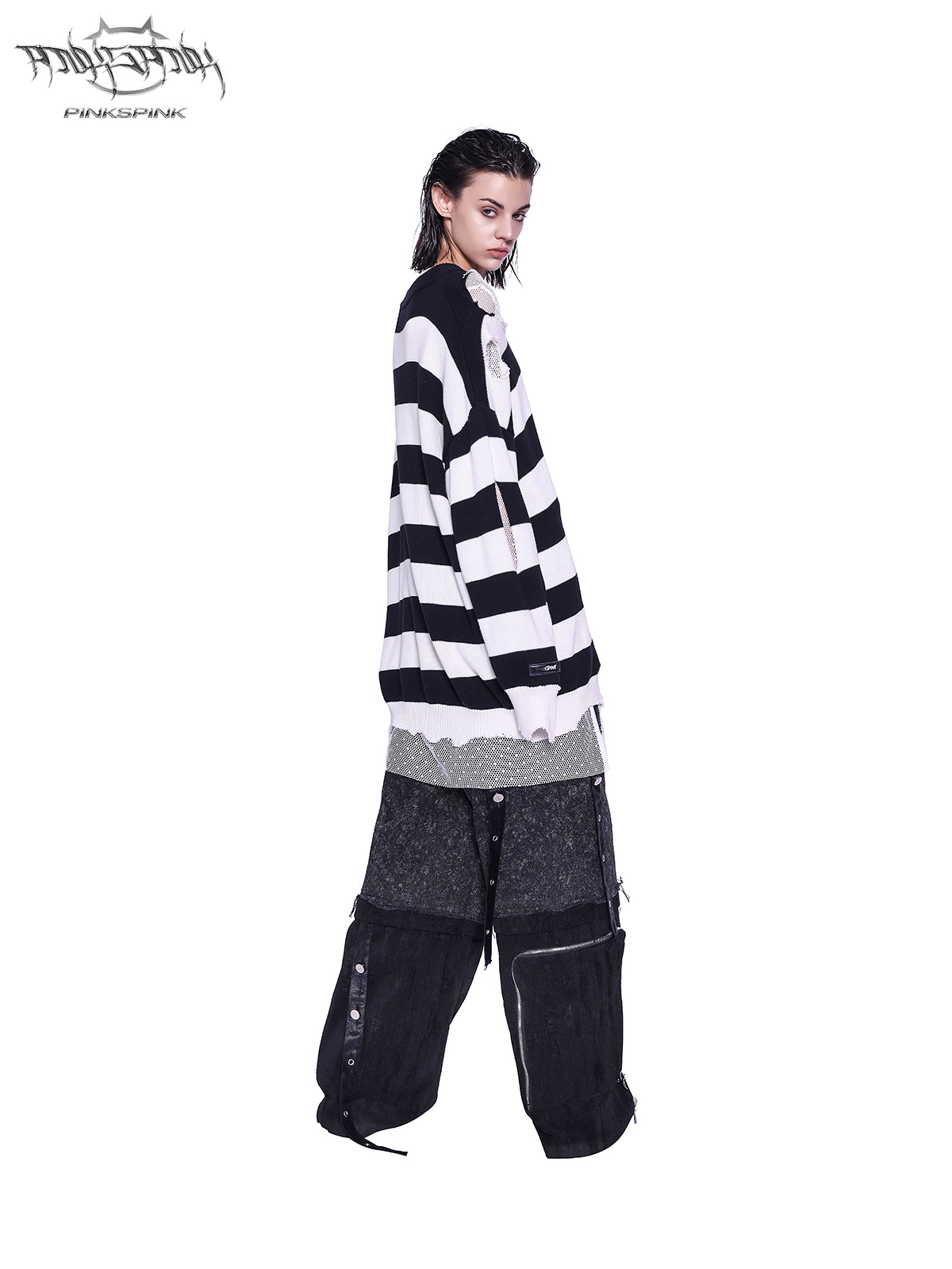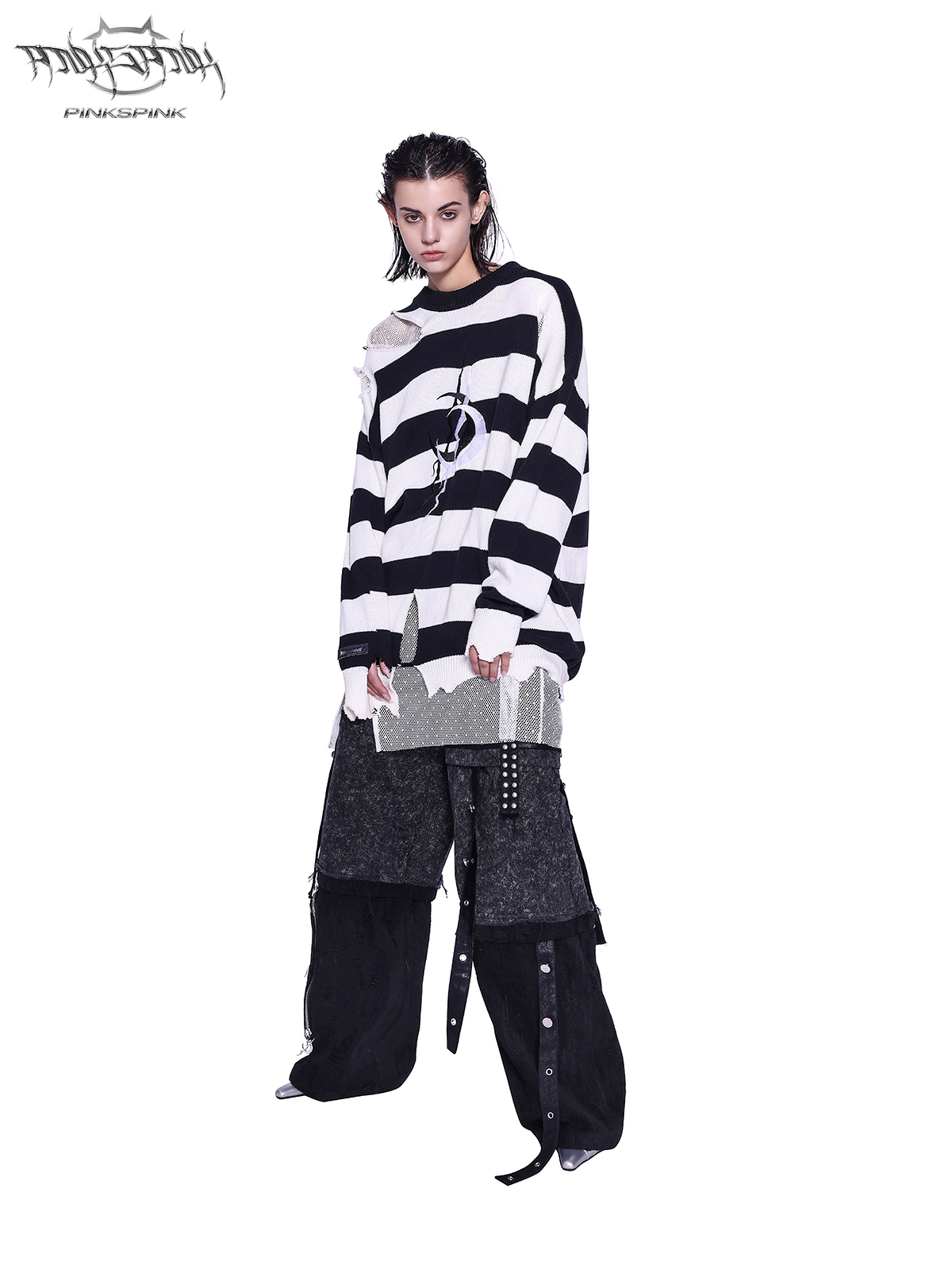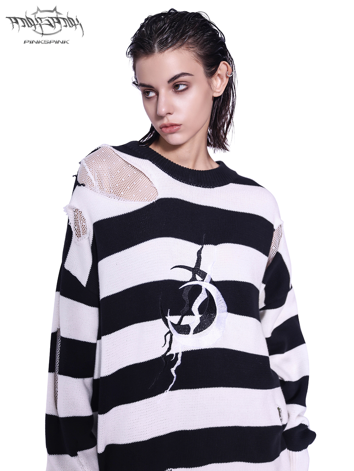 Destruction Striped Sweater – Electric Moon Punk Aesthetic