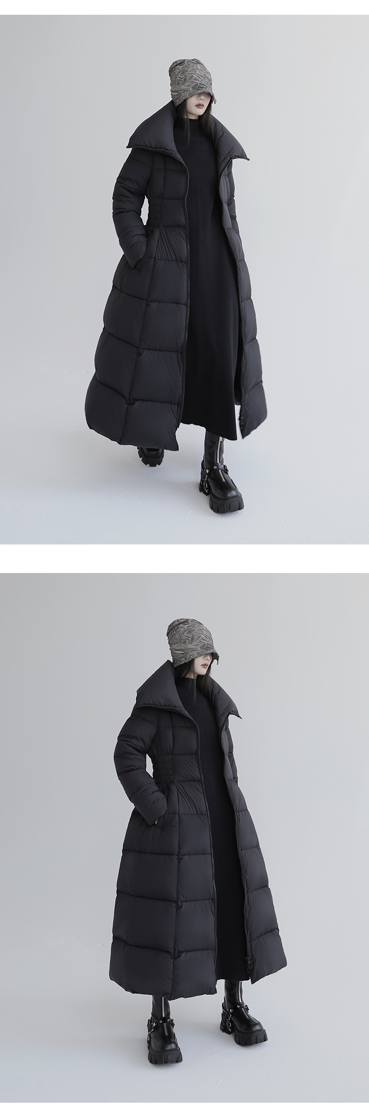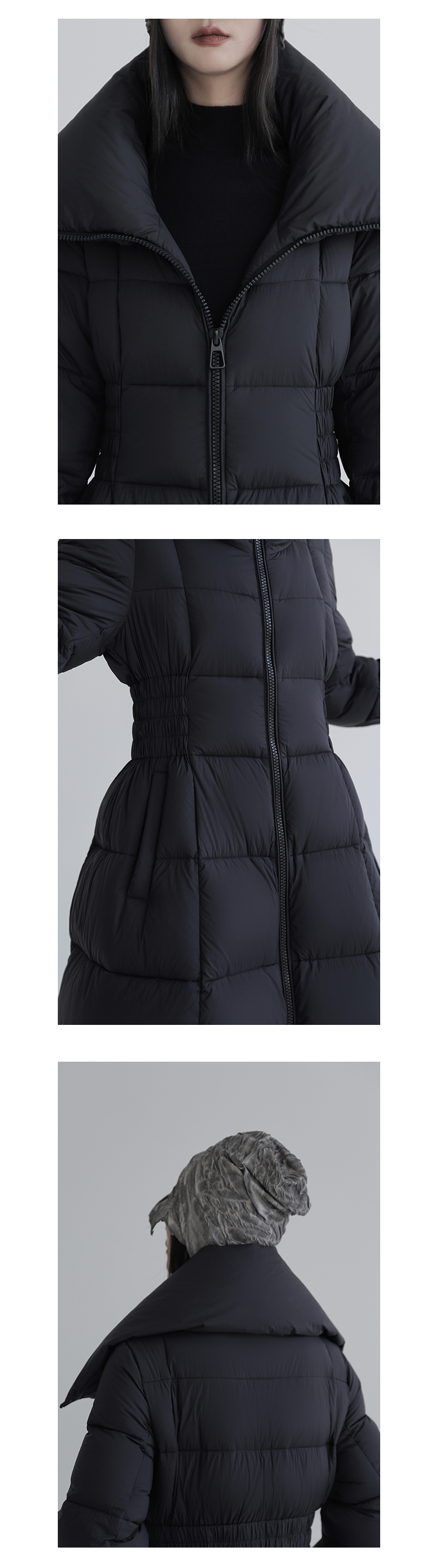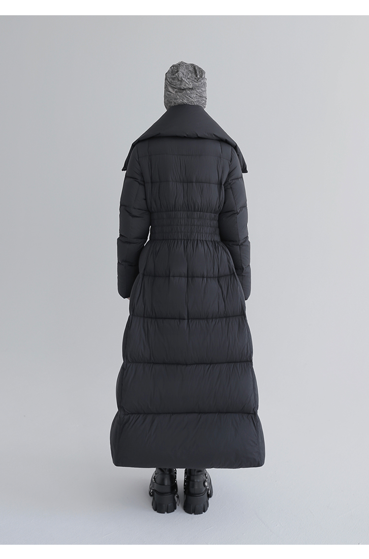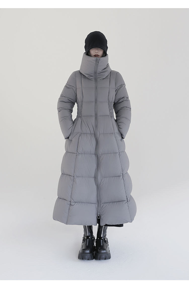 Over-The-Knee White Goose Down Jacket with Waist Design