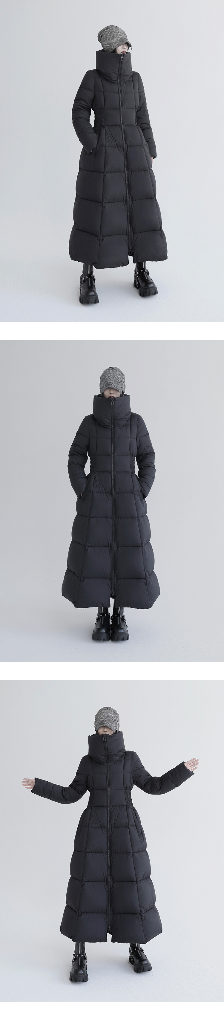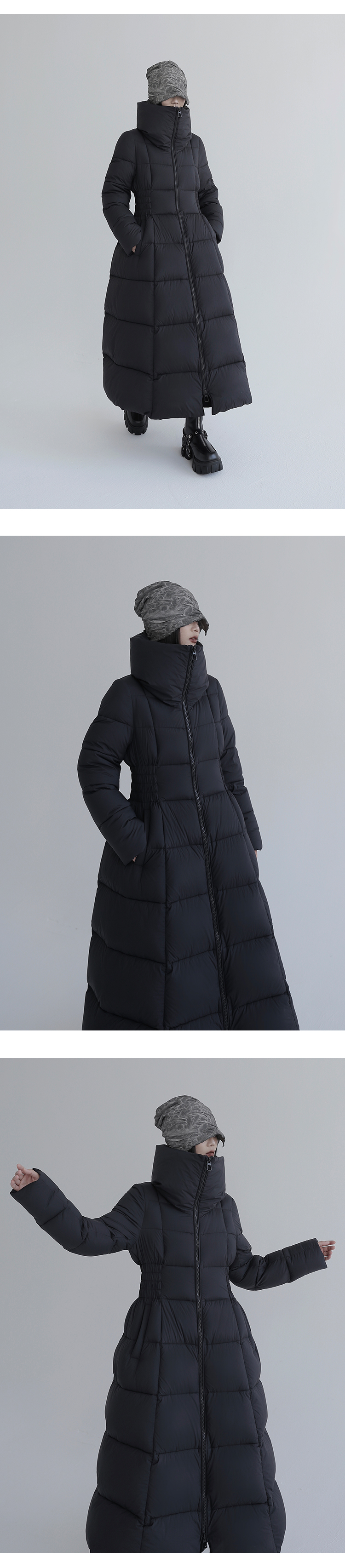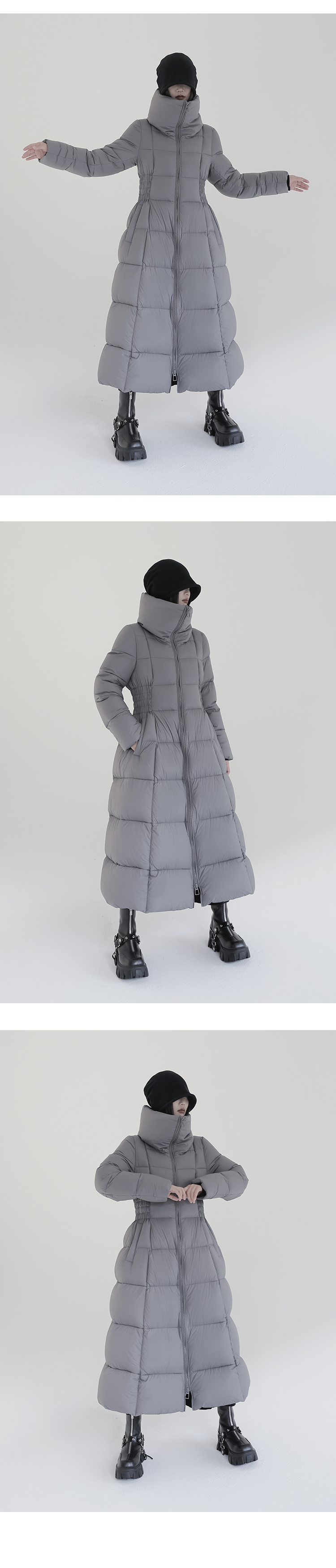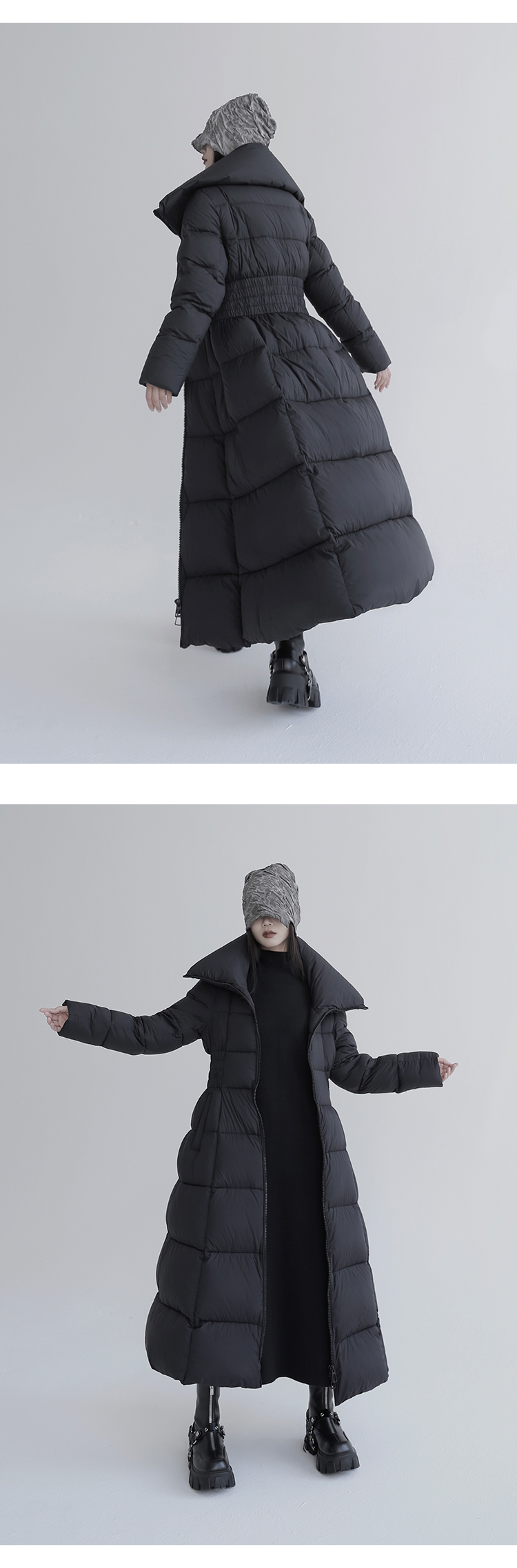 Over-The-Knee White Goose Down Jacket with Waist Design