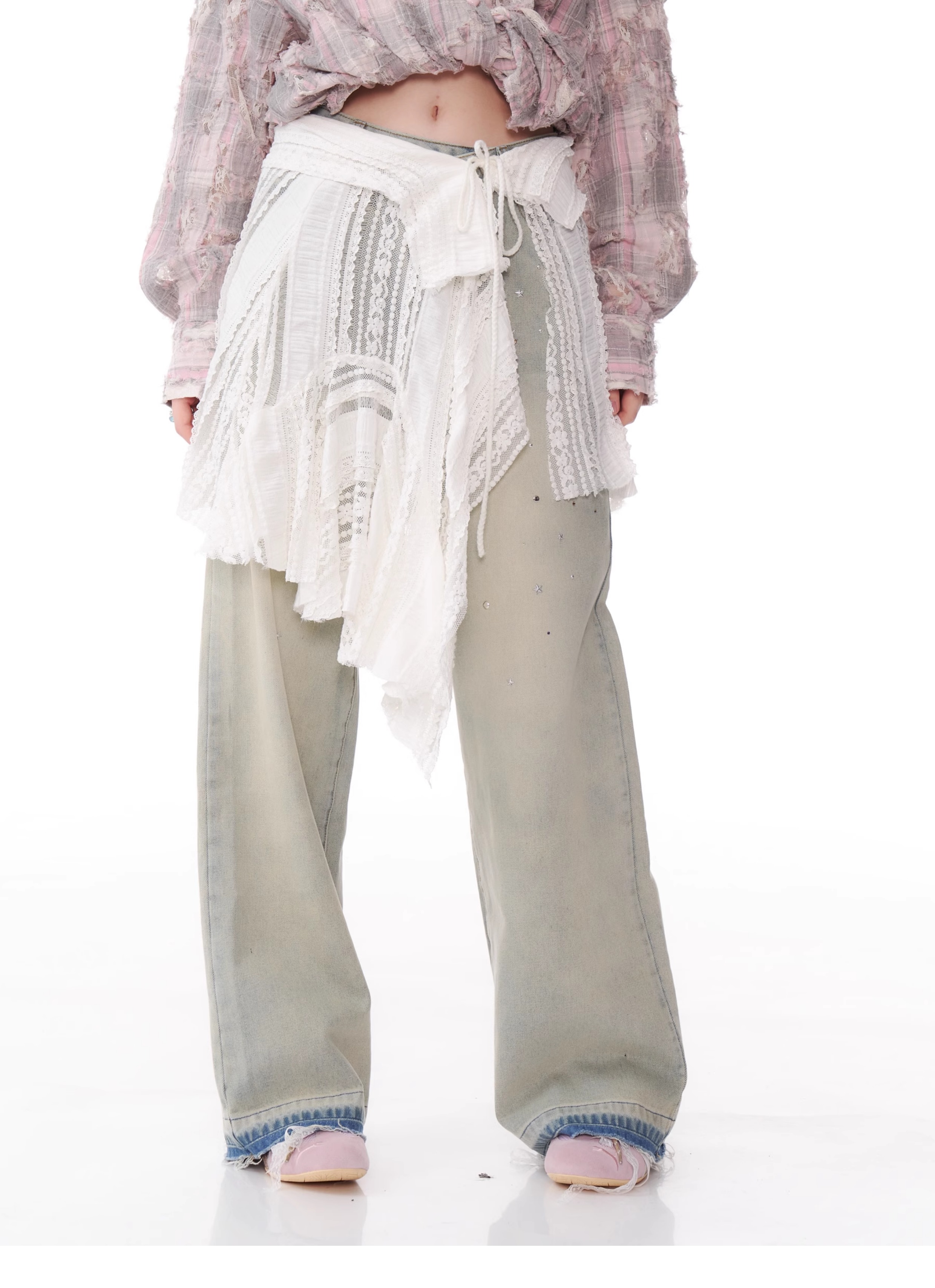 Jupe en dentelle blanche avec ourlet irrégulier | Conception de sangle rétro pour femmes