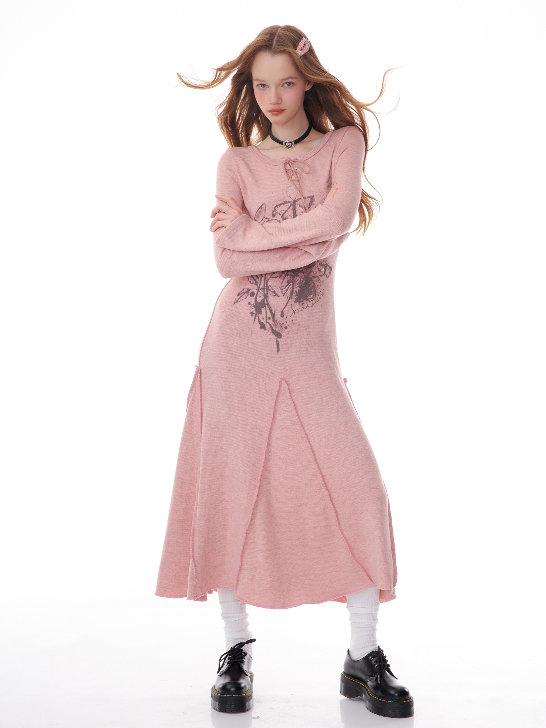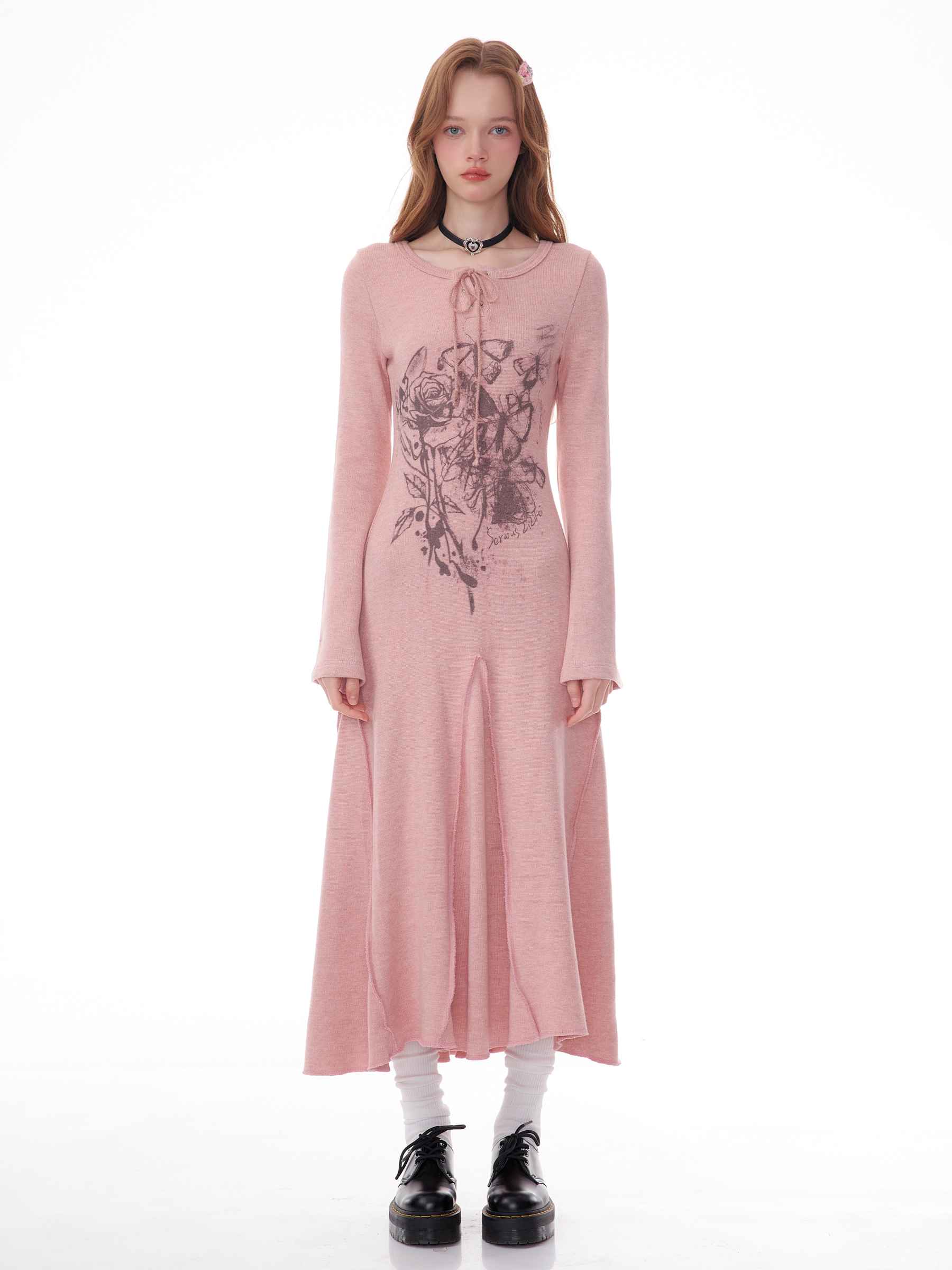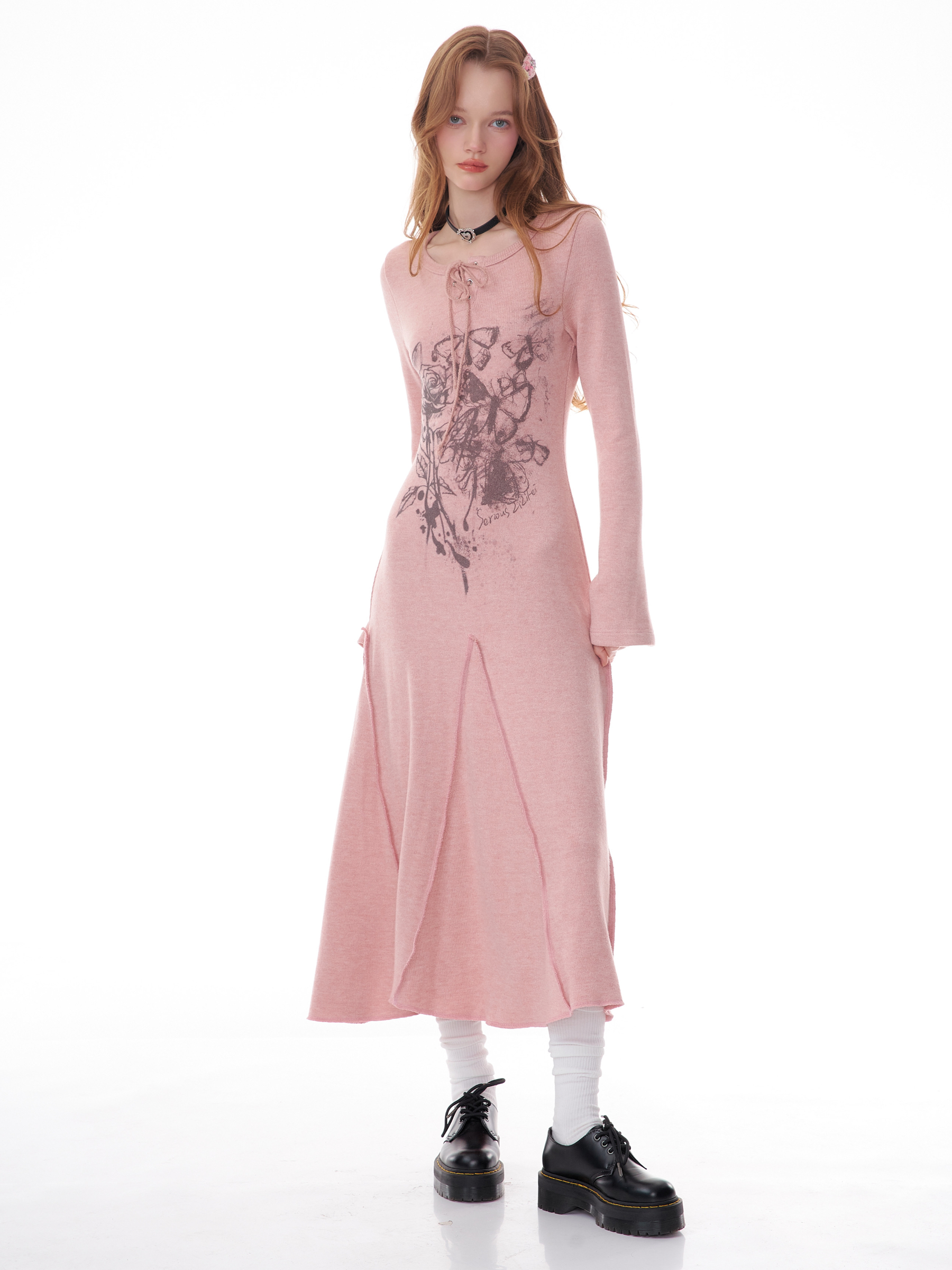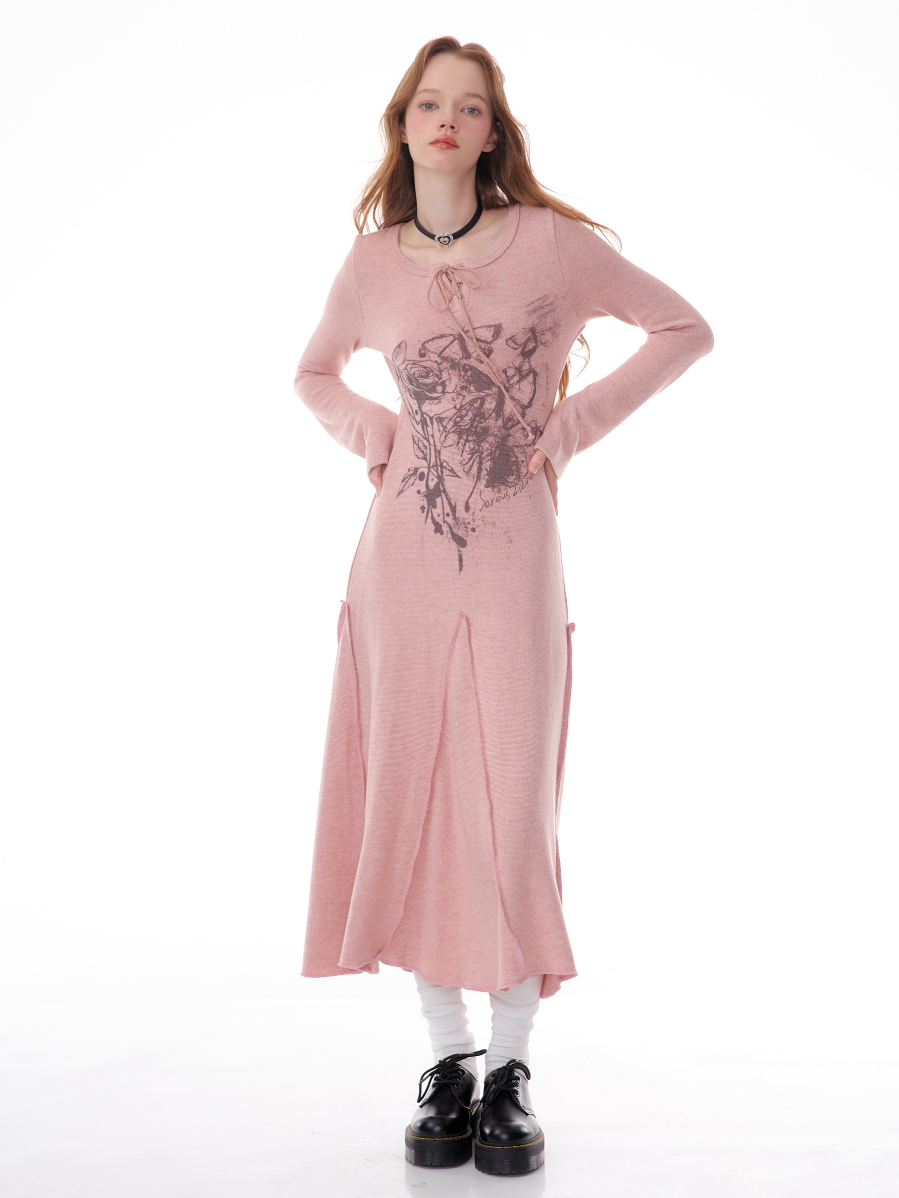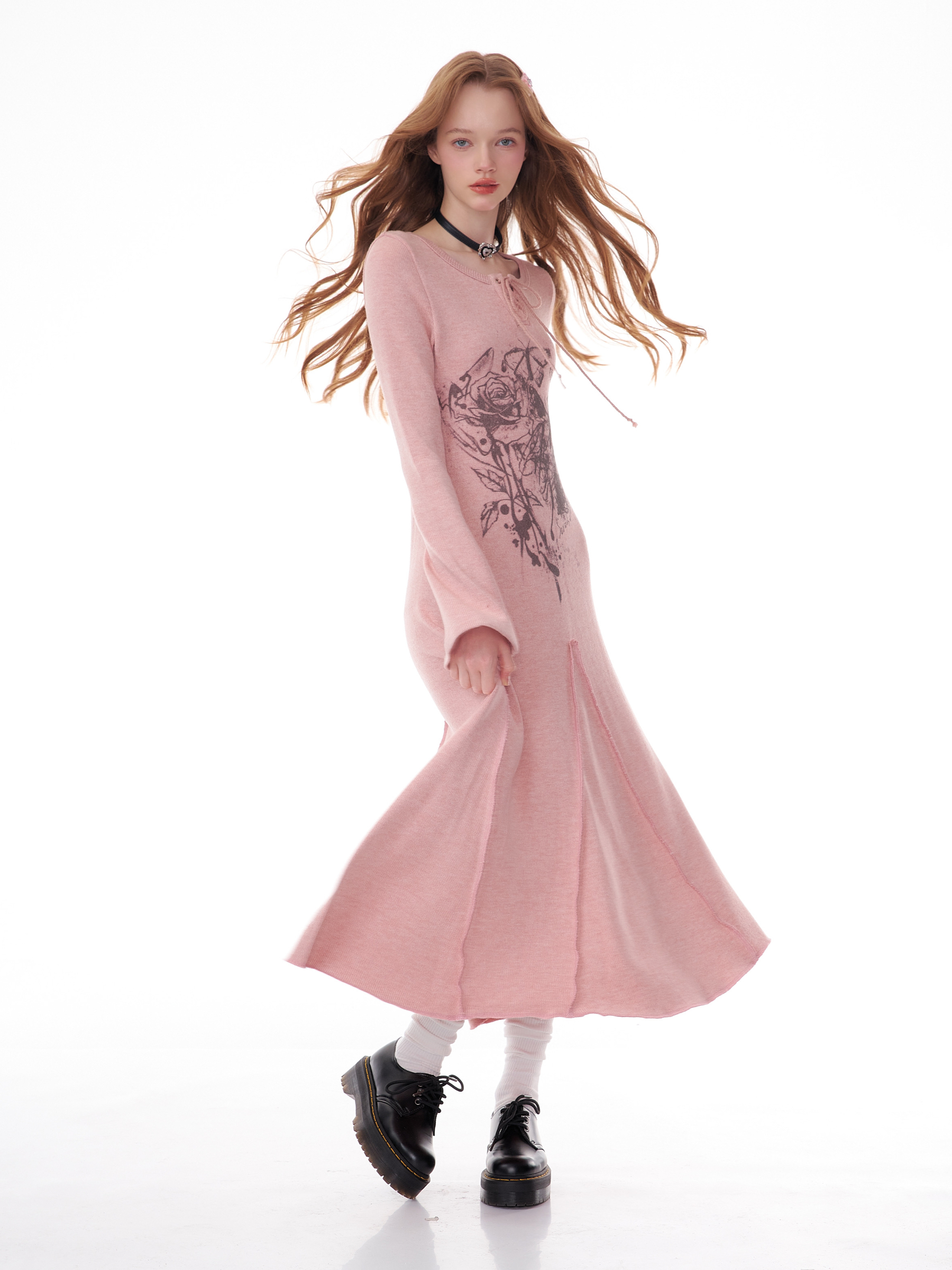 Robe veste slim à imprimé rose | Tricot de laine à manches longues, style automne/hiver