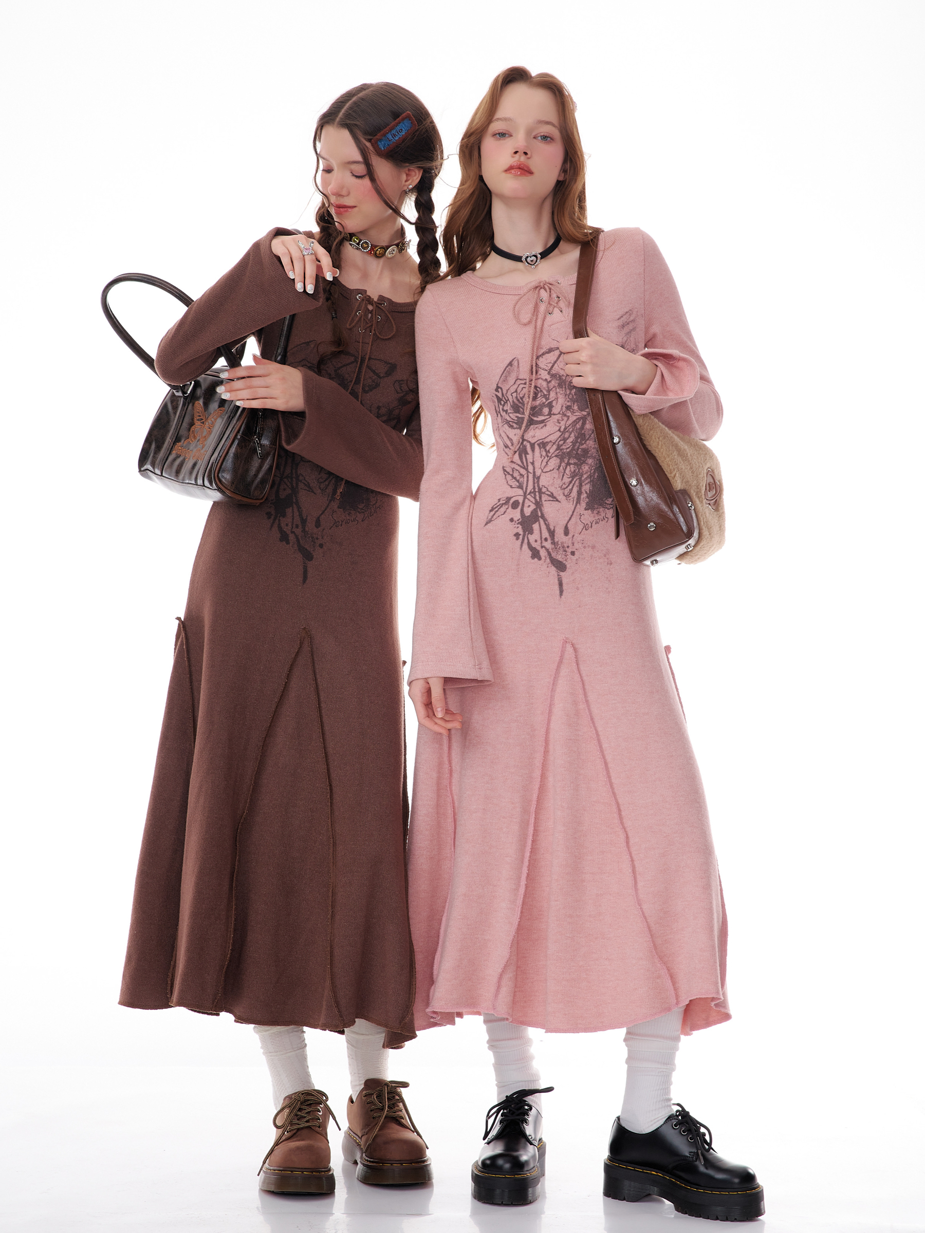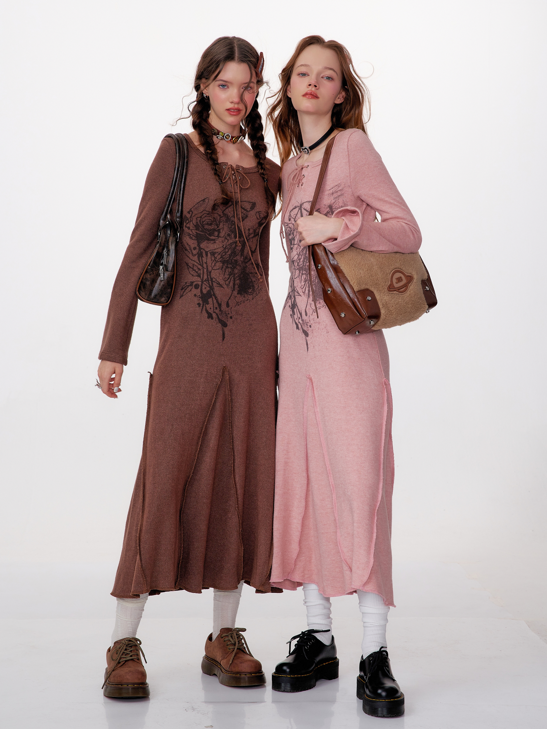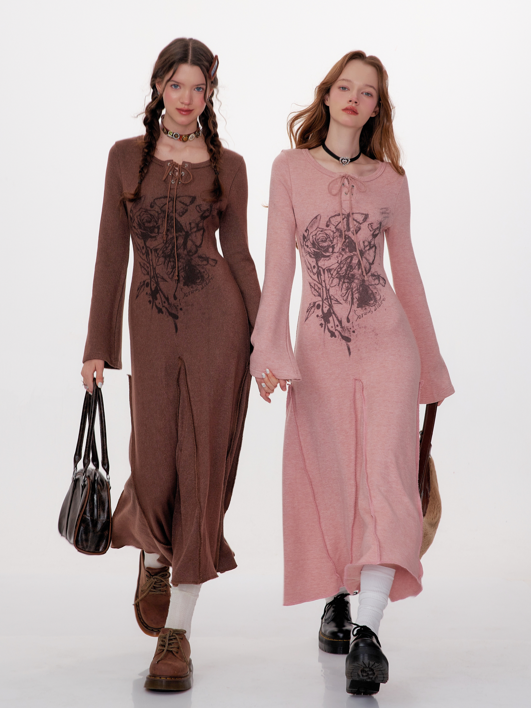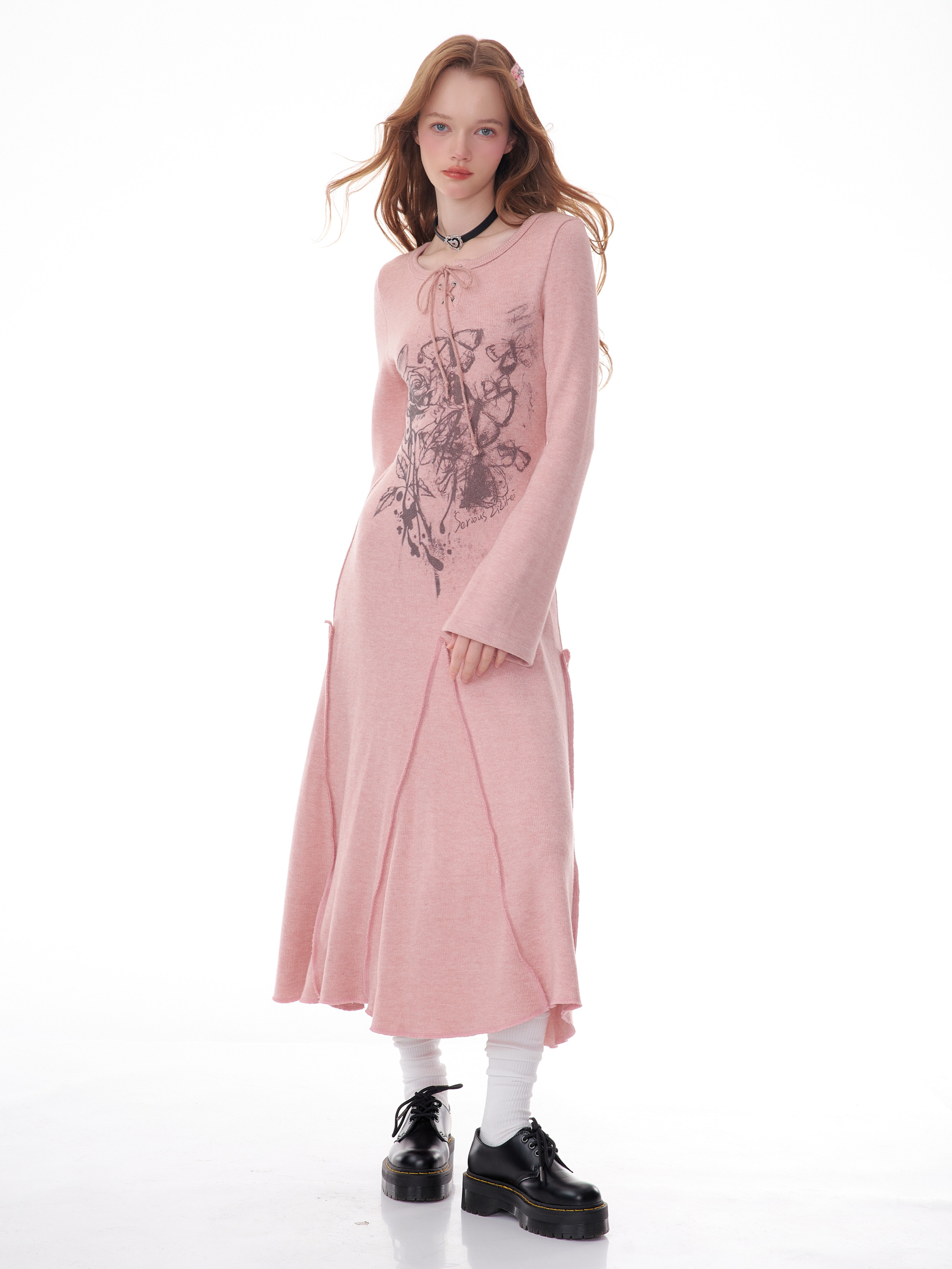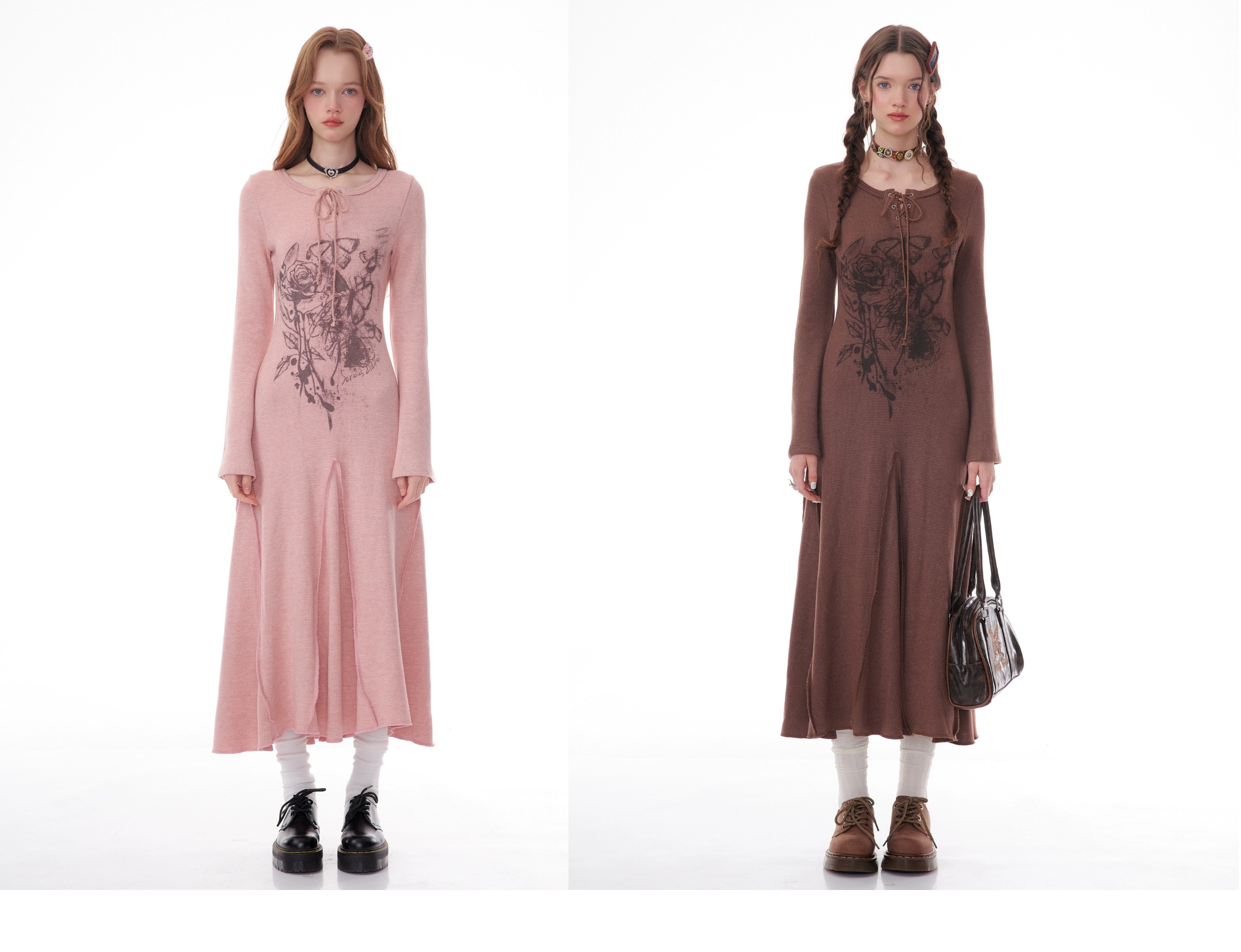 Robe veste slim à imprimé rose | Tricot de laine à manches longues, style automne/hiver