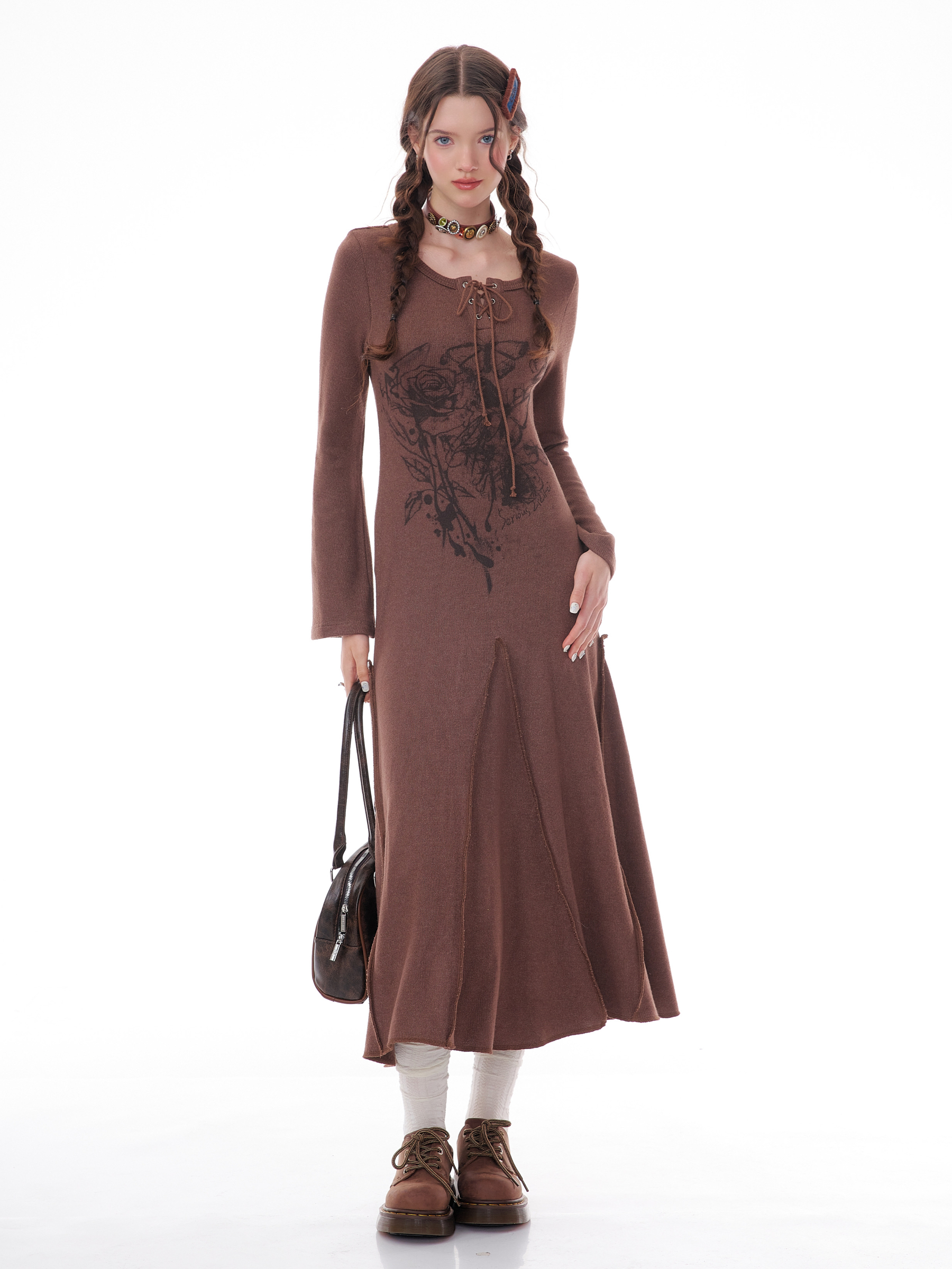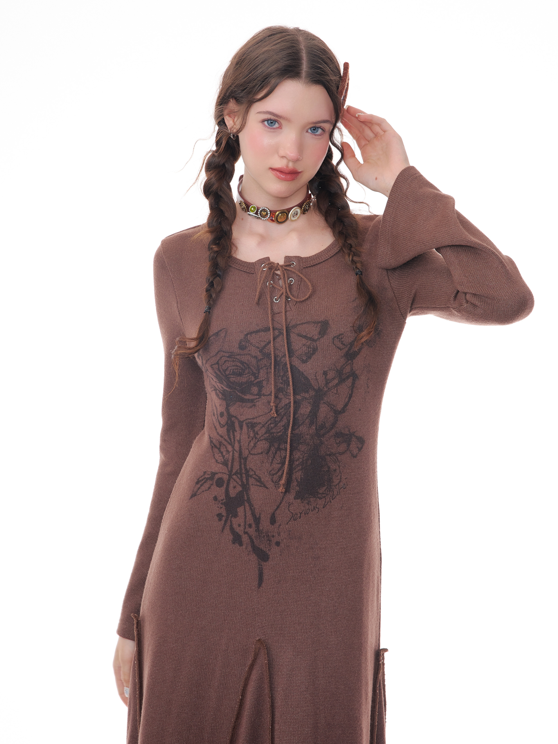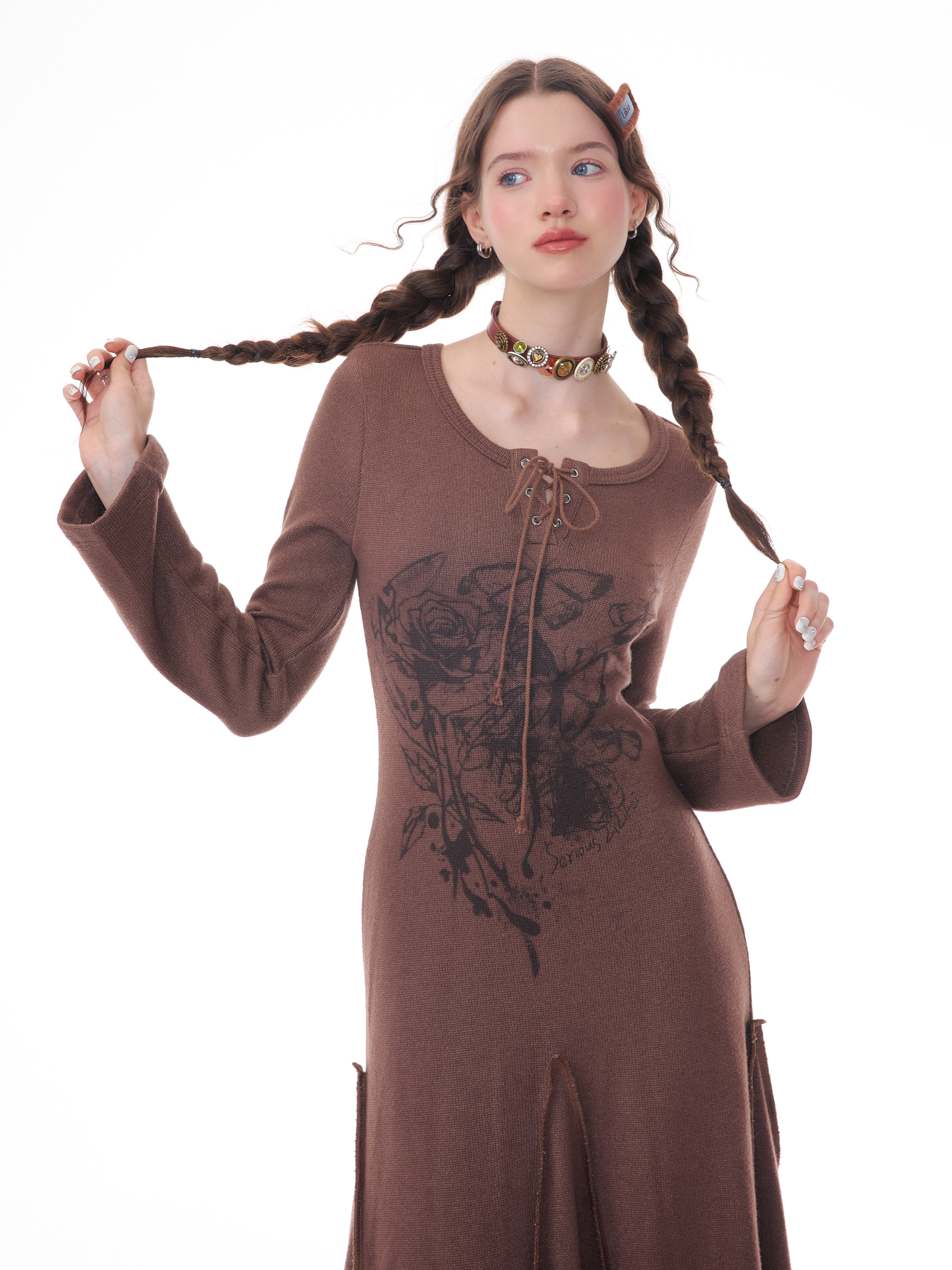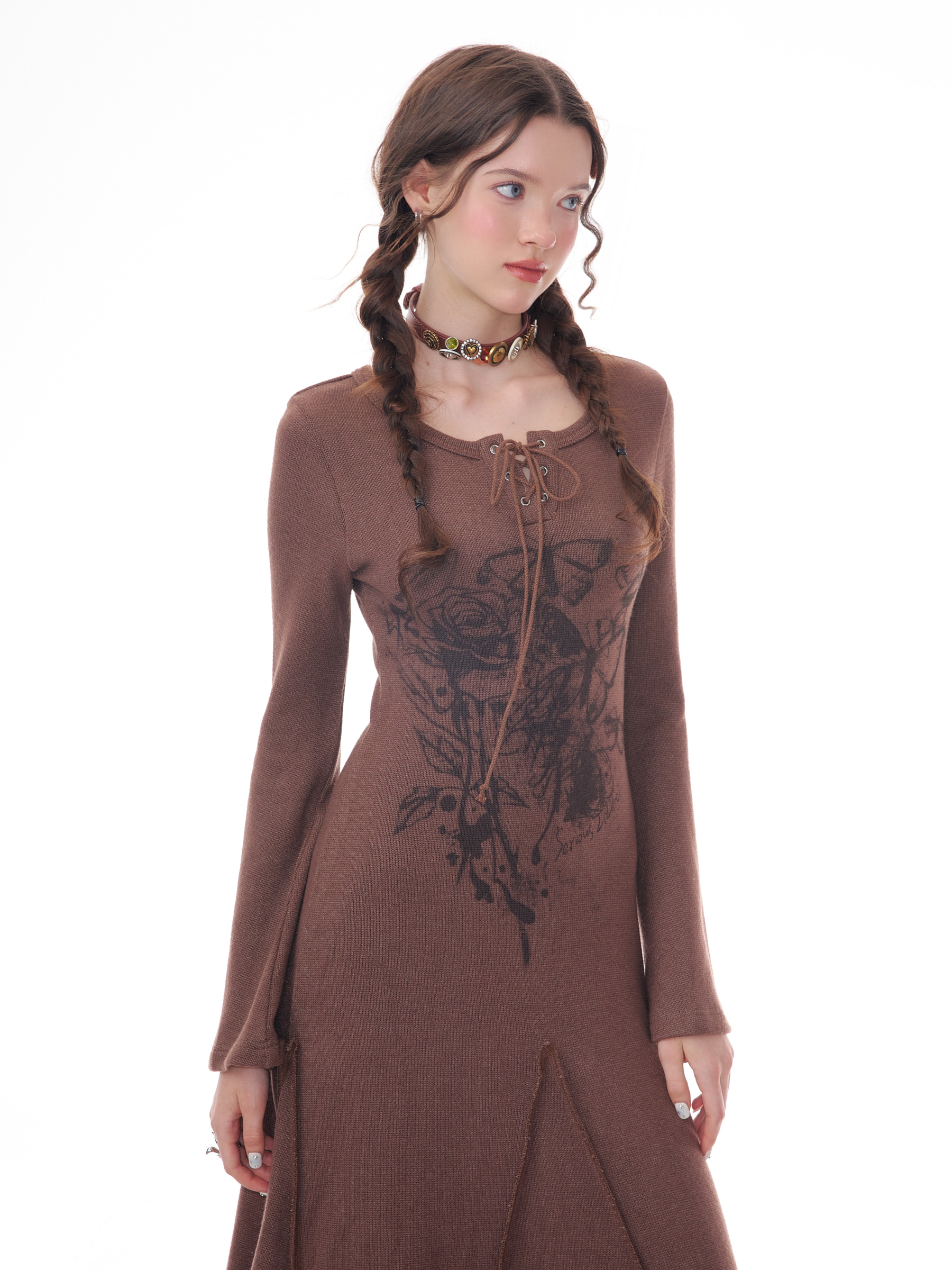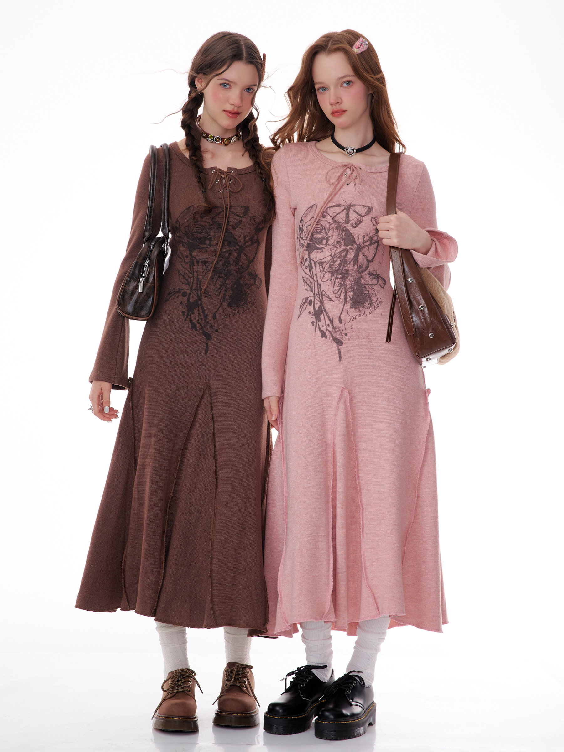 Robe veste slim à imprimé rose | Tricot de laine à manches longues, style automne/hiver