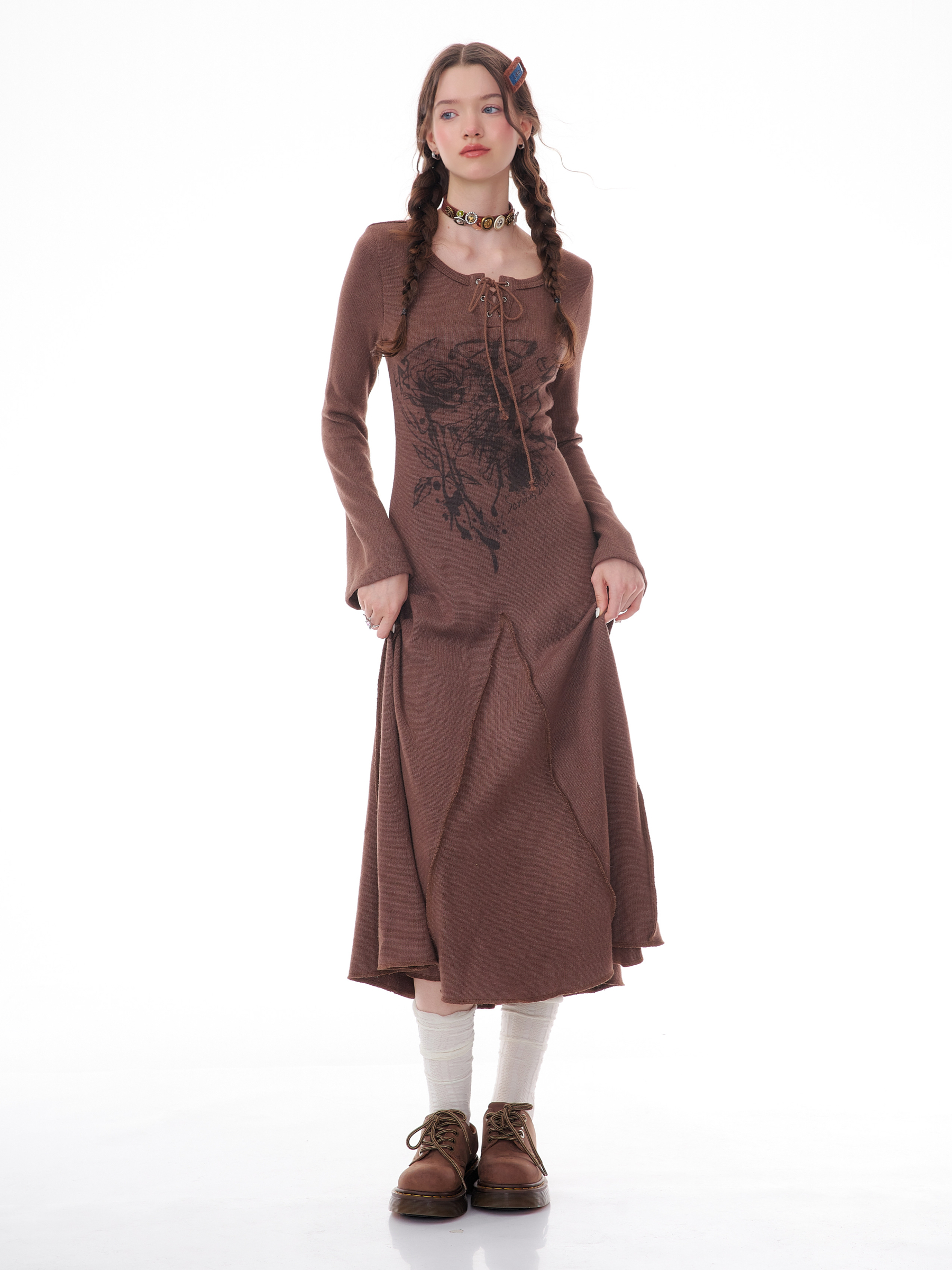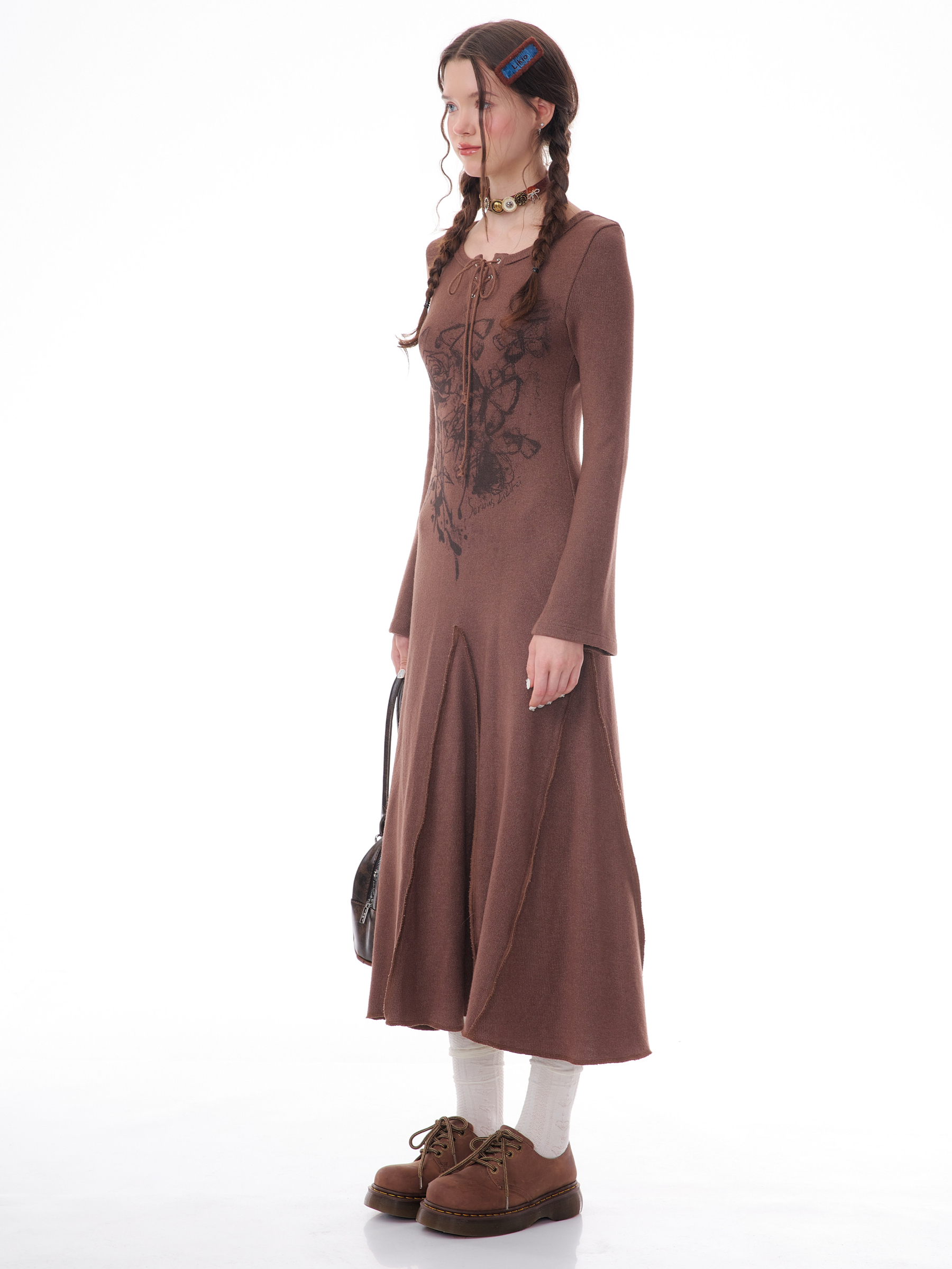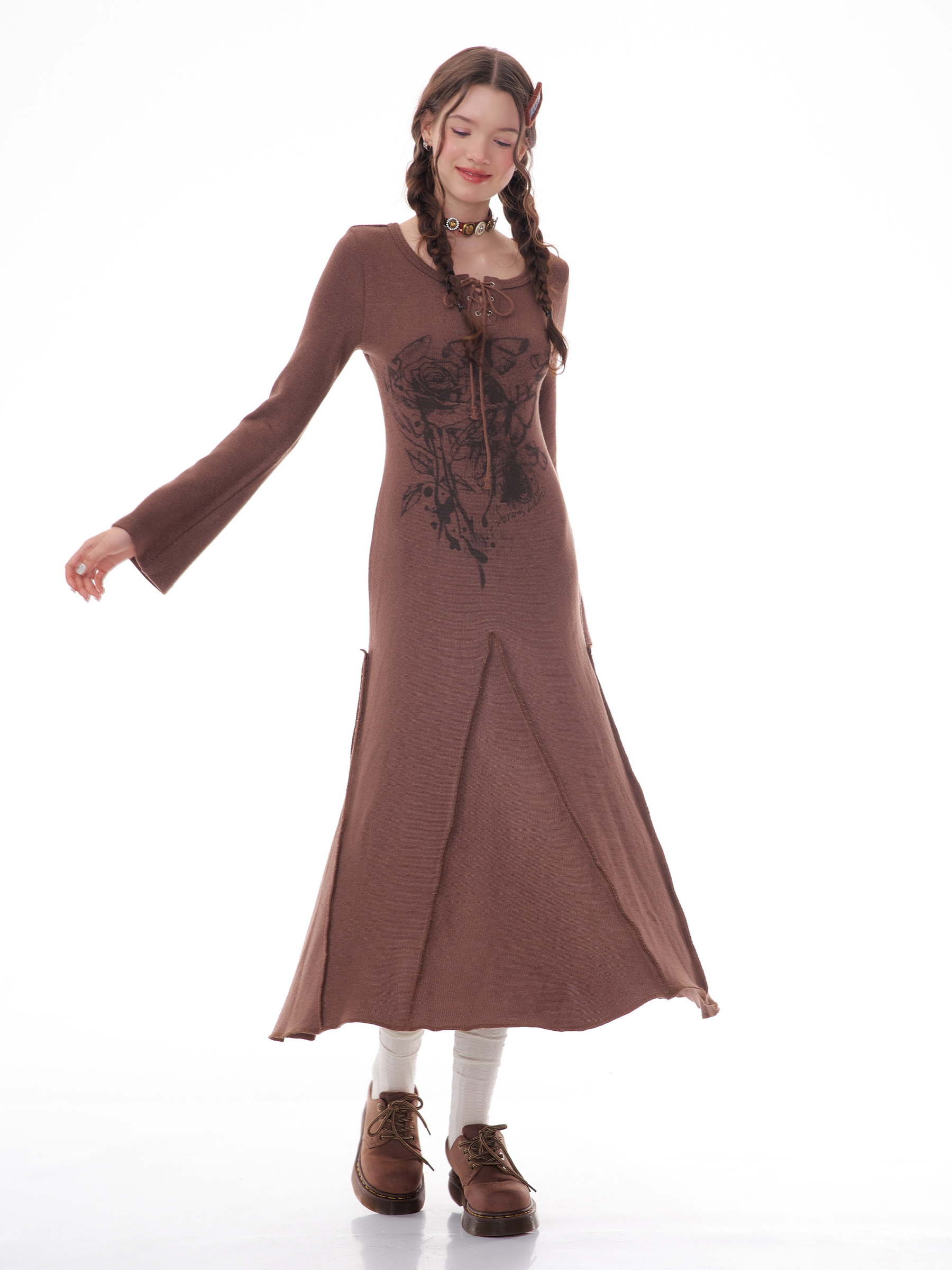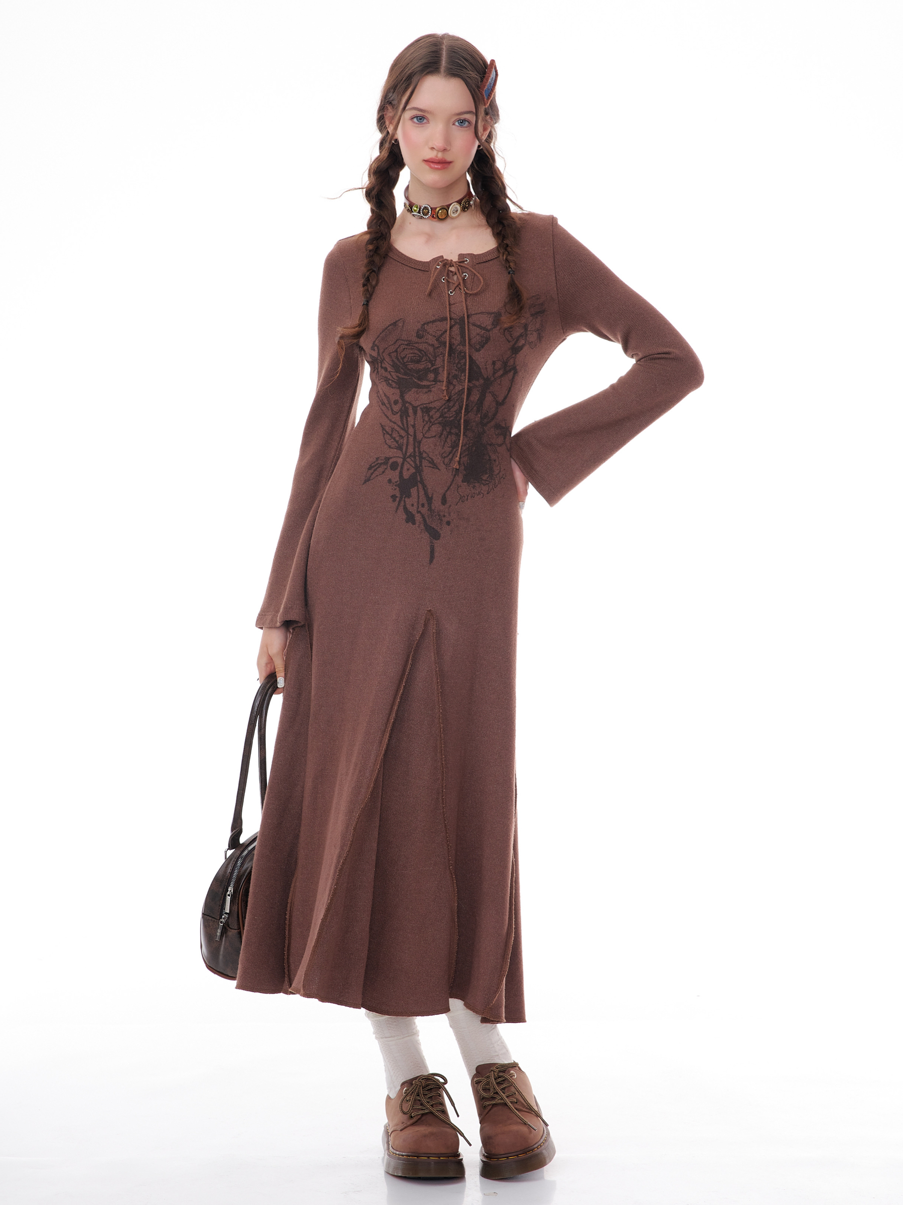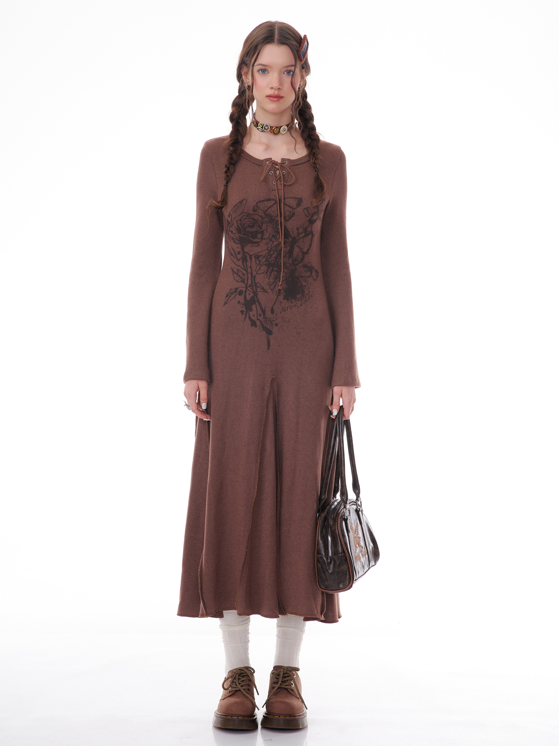 Robe veste slim à imprimé rose | Tricot de laine à manches longues, style automne/hiver