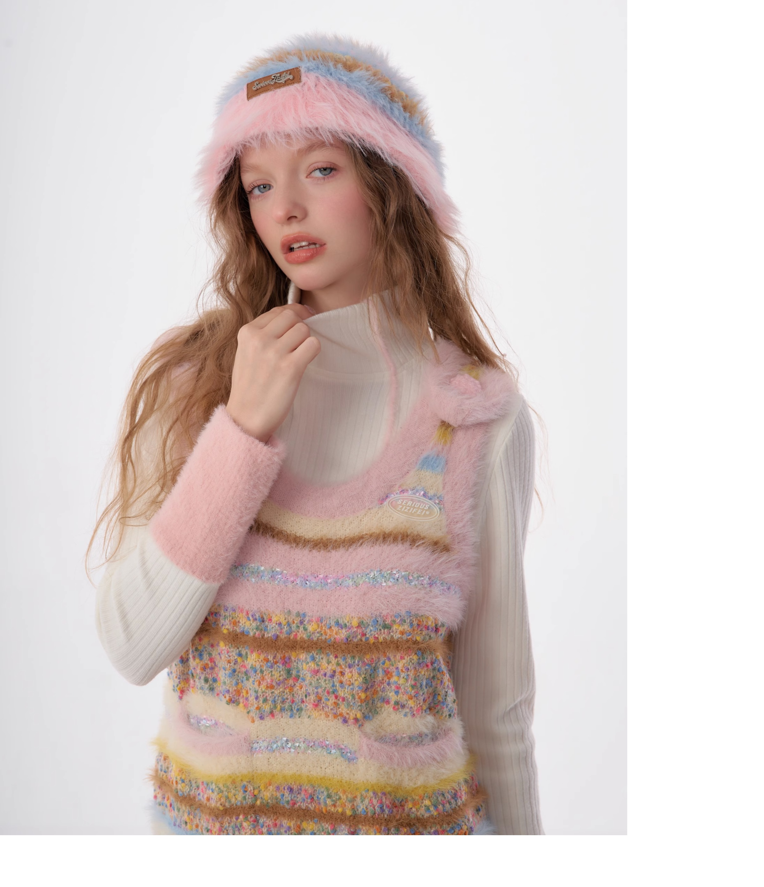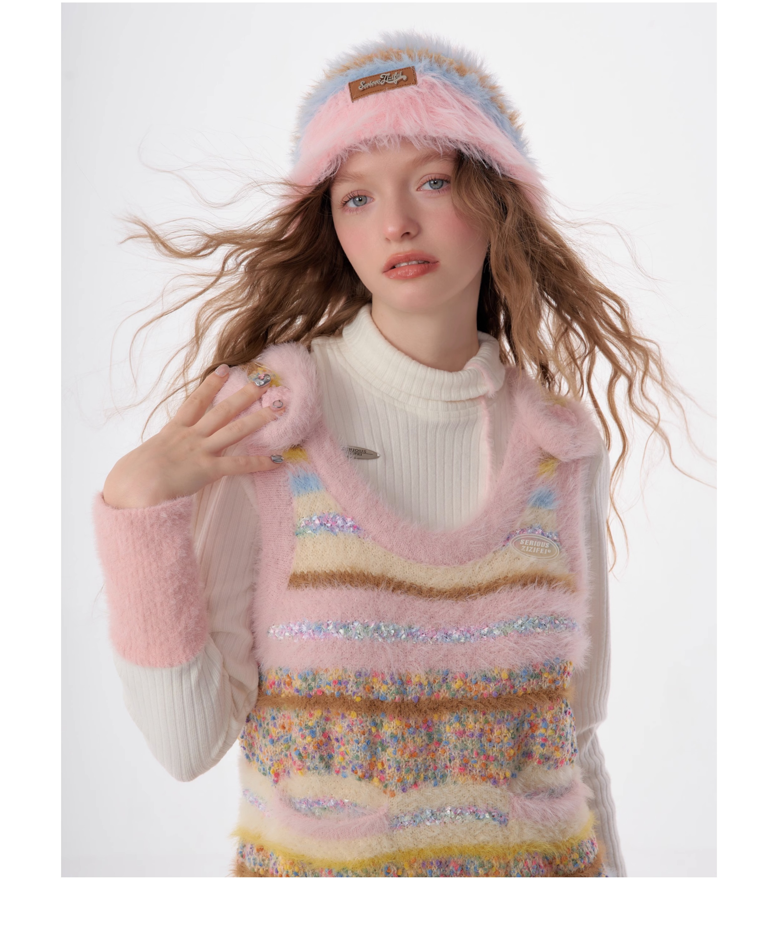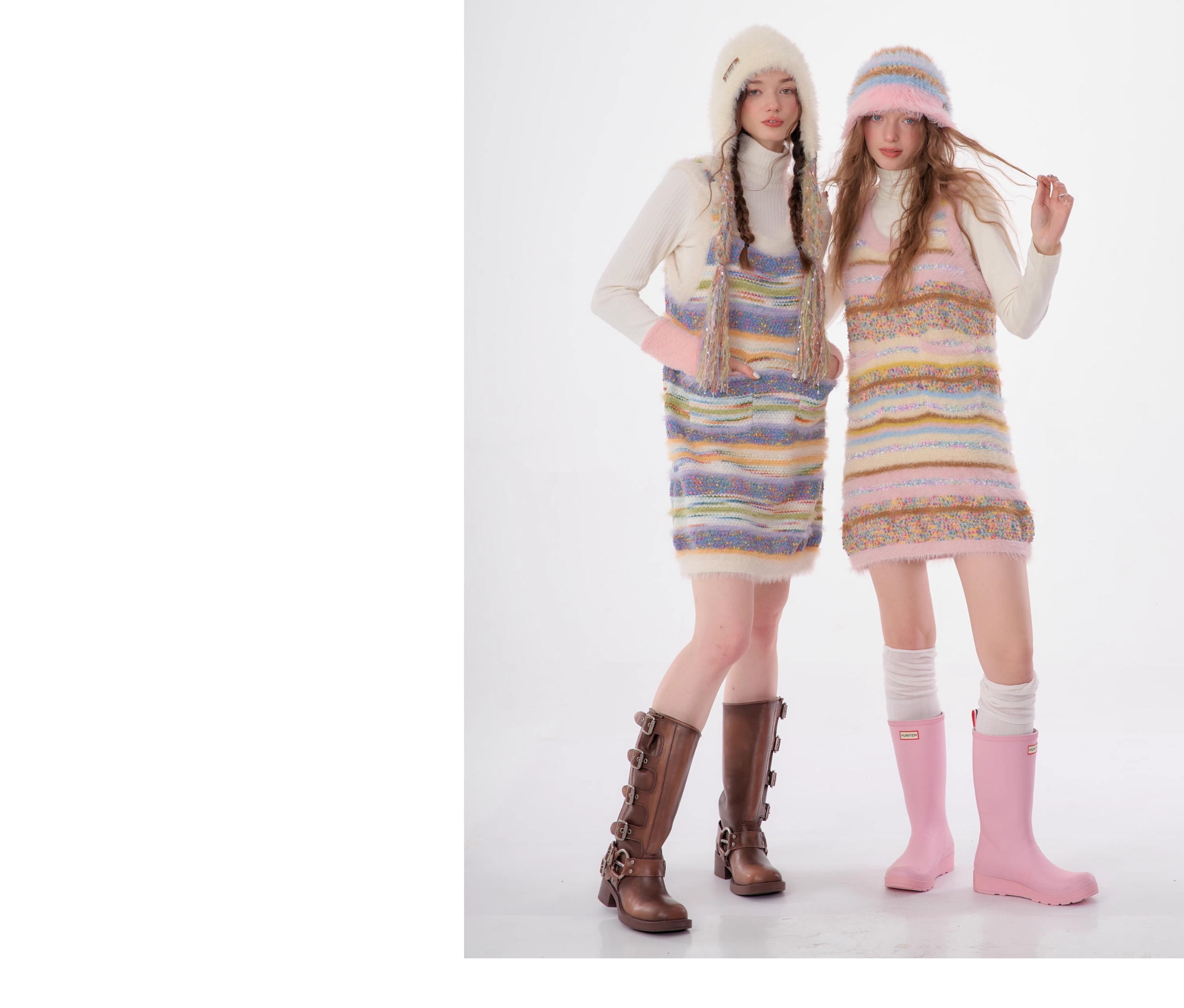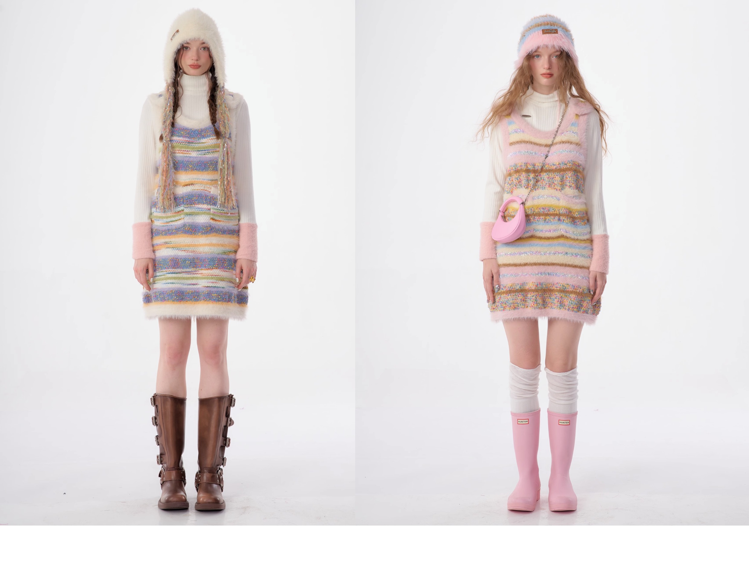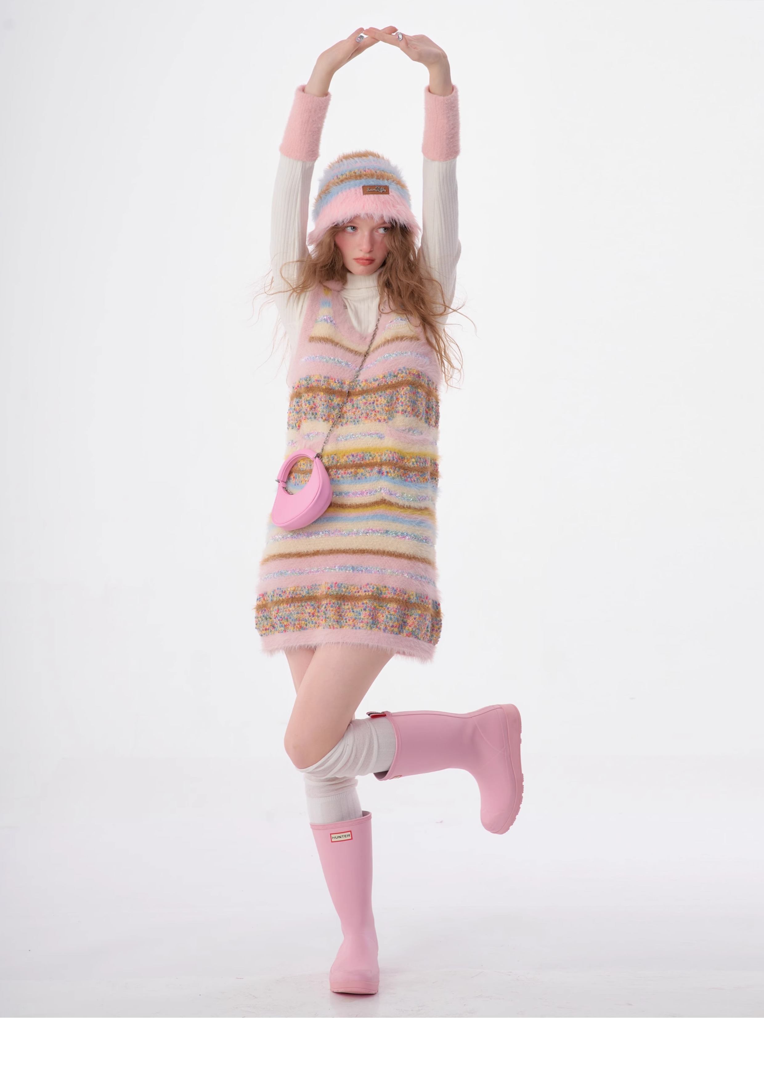 Robe débardeur tricotée à rayures rétro | Jupe longue en peluche sans manches pour l'automne/hiver
