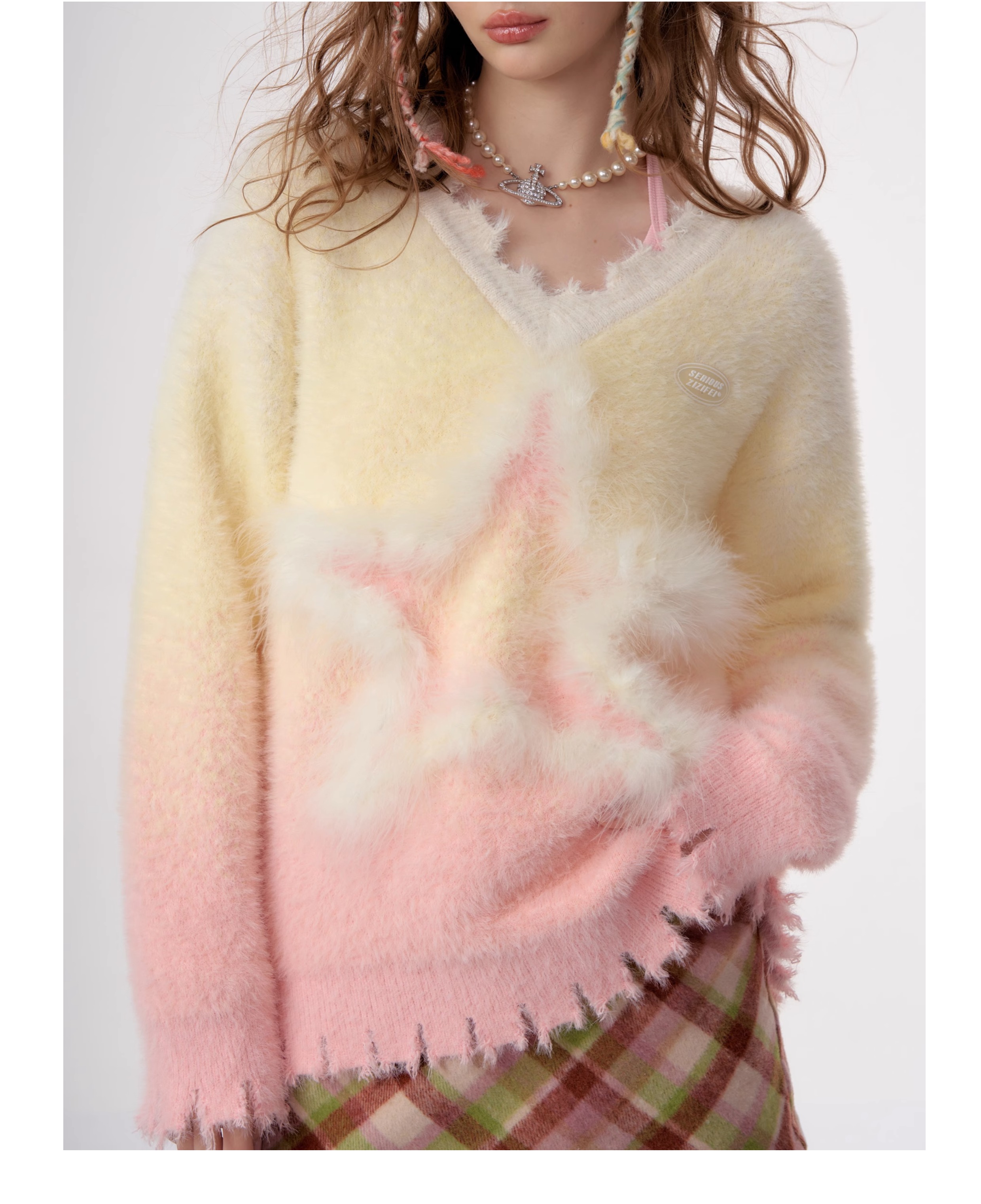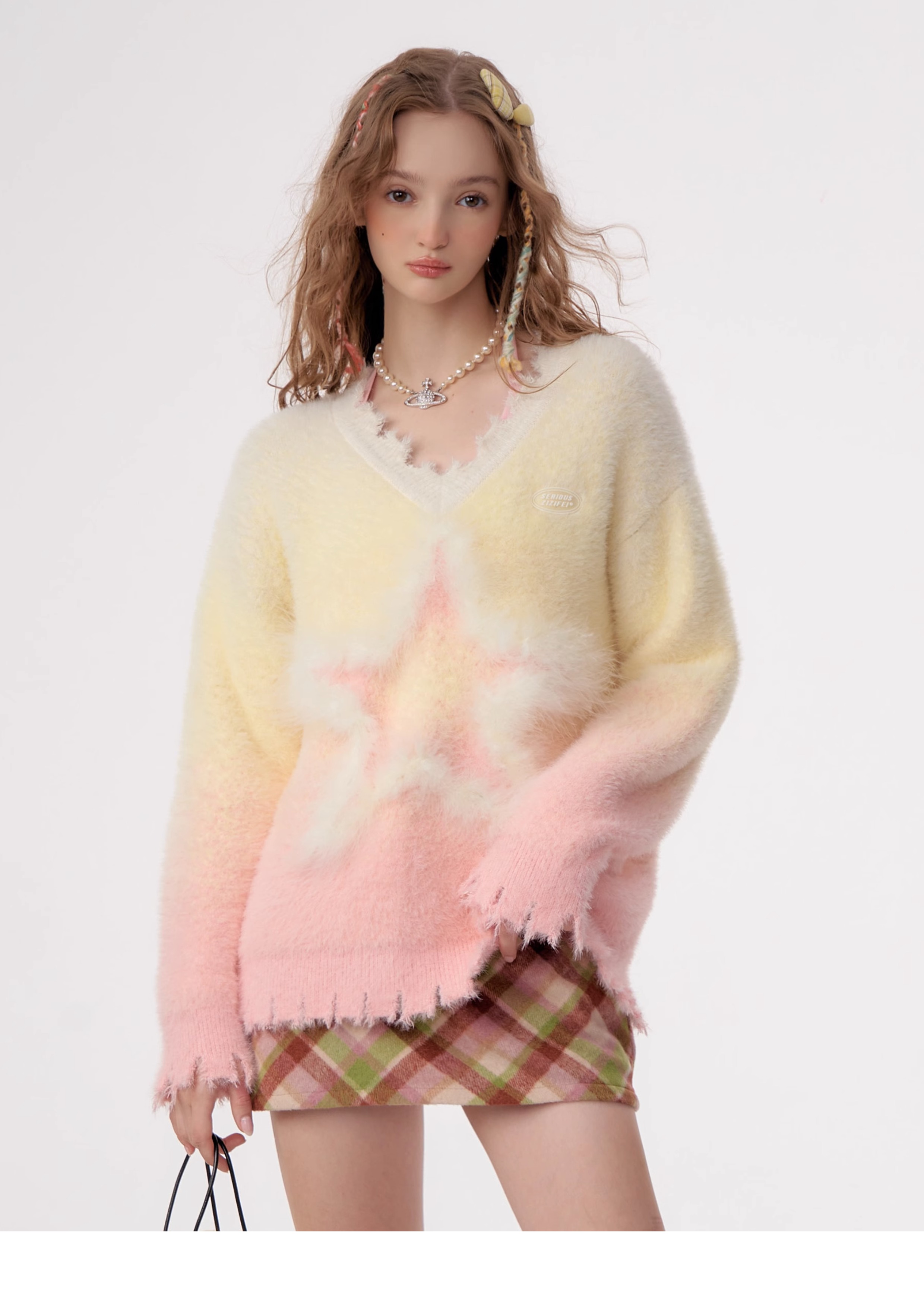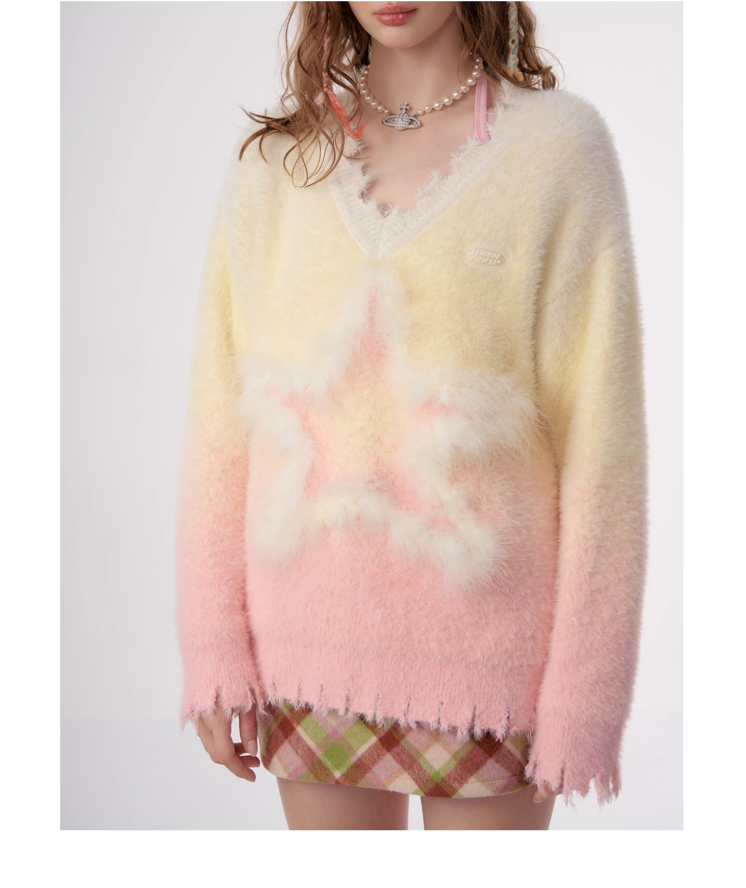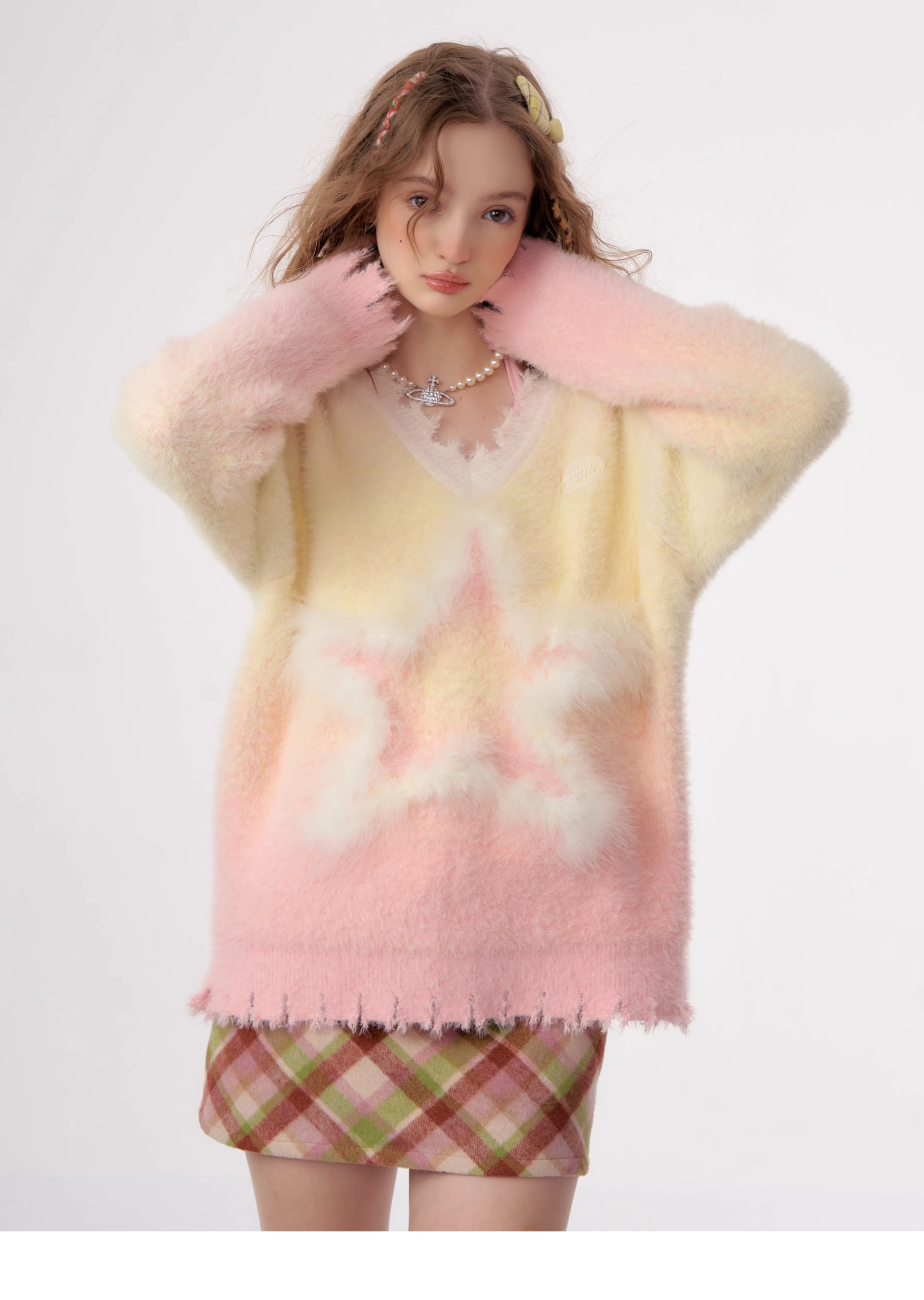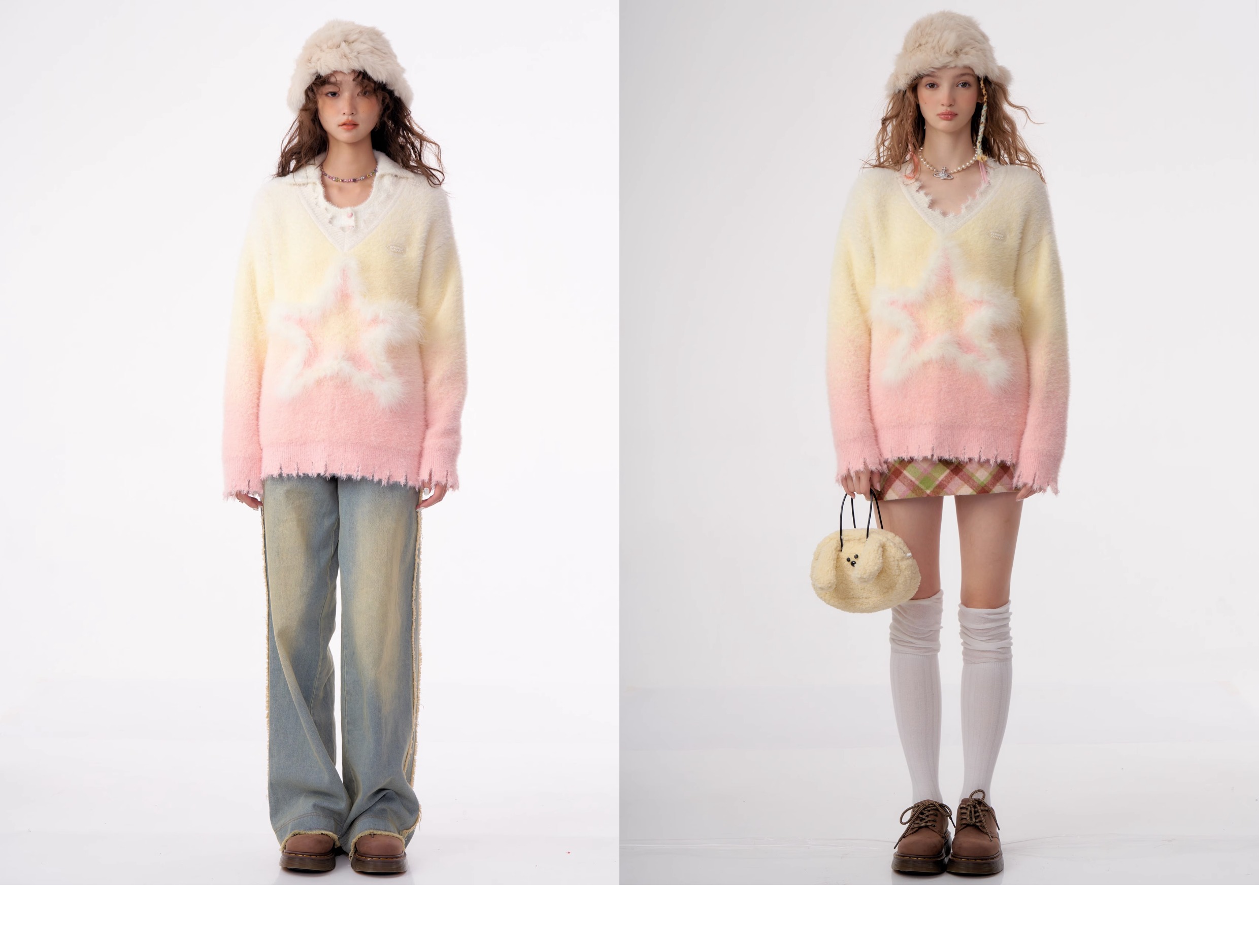 Automne/Hiver Essentiel | Pull à Col en V en Mohair à Motif Étoile Dégradé