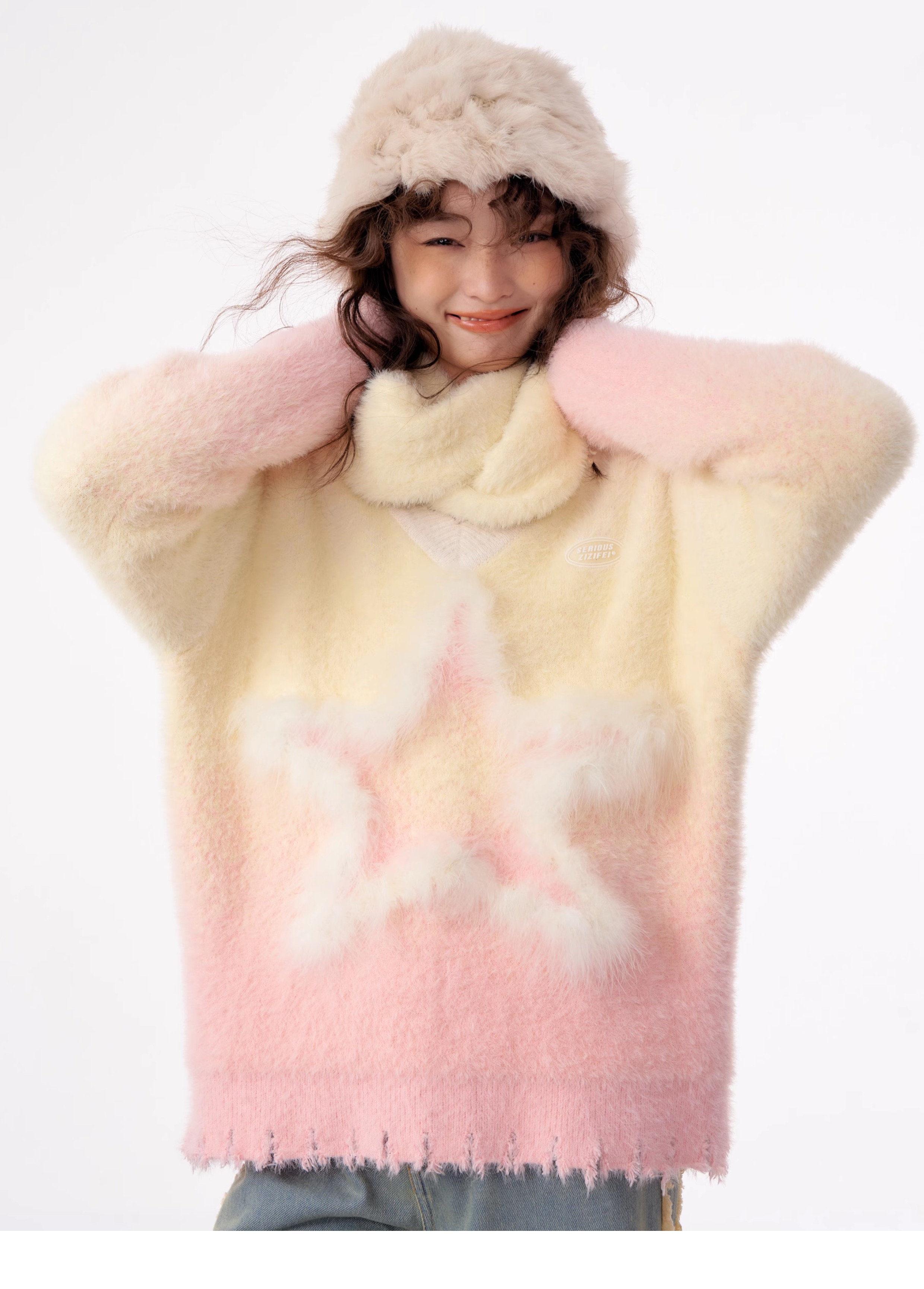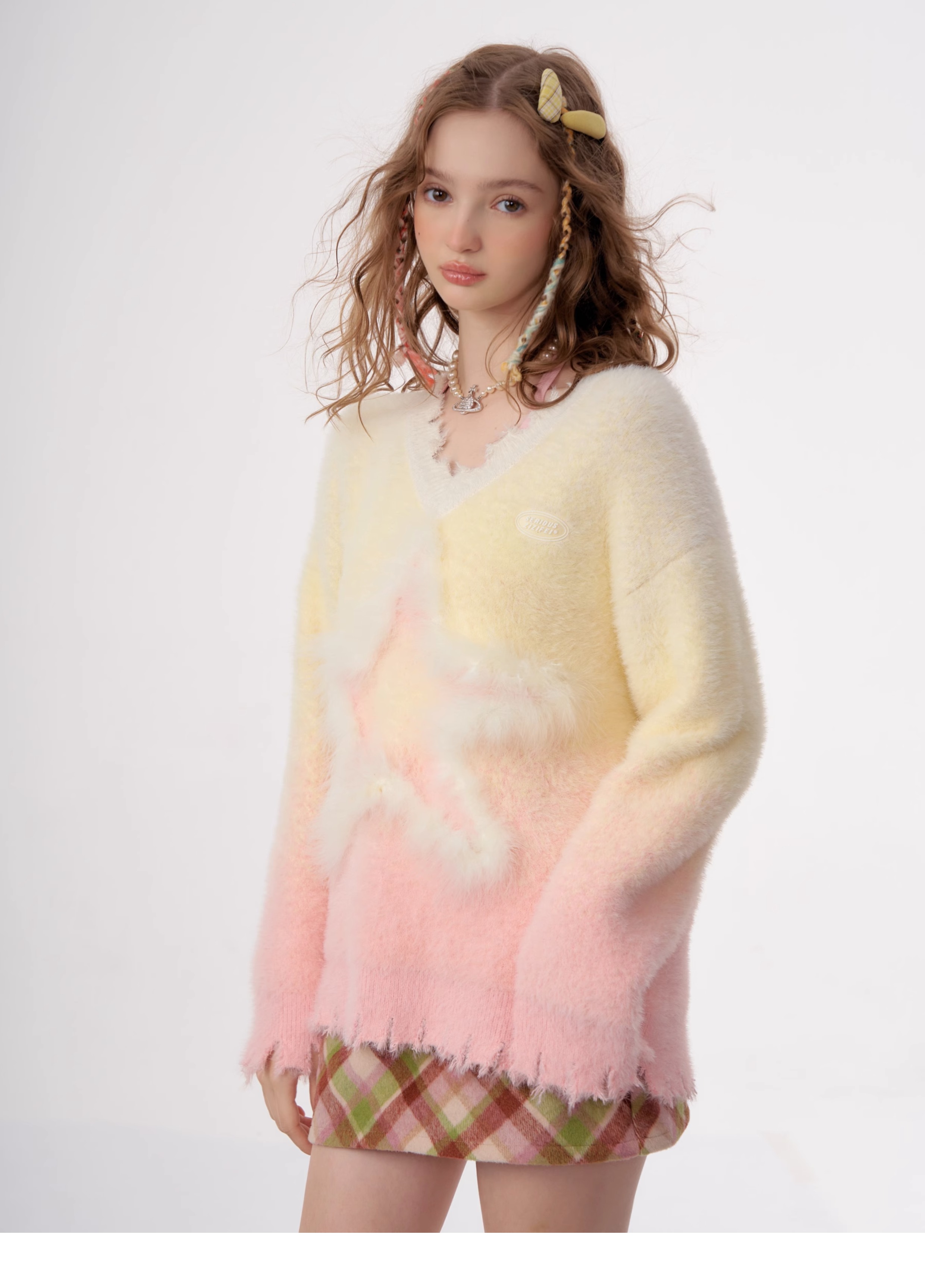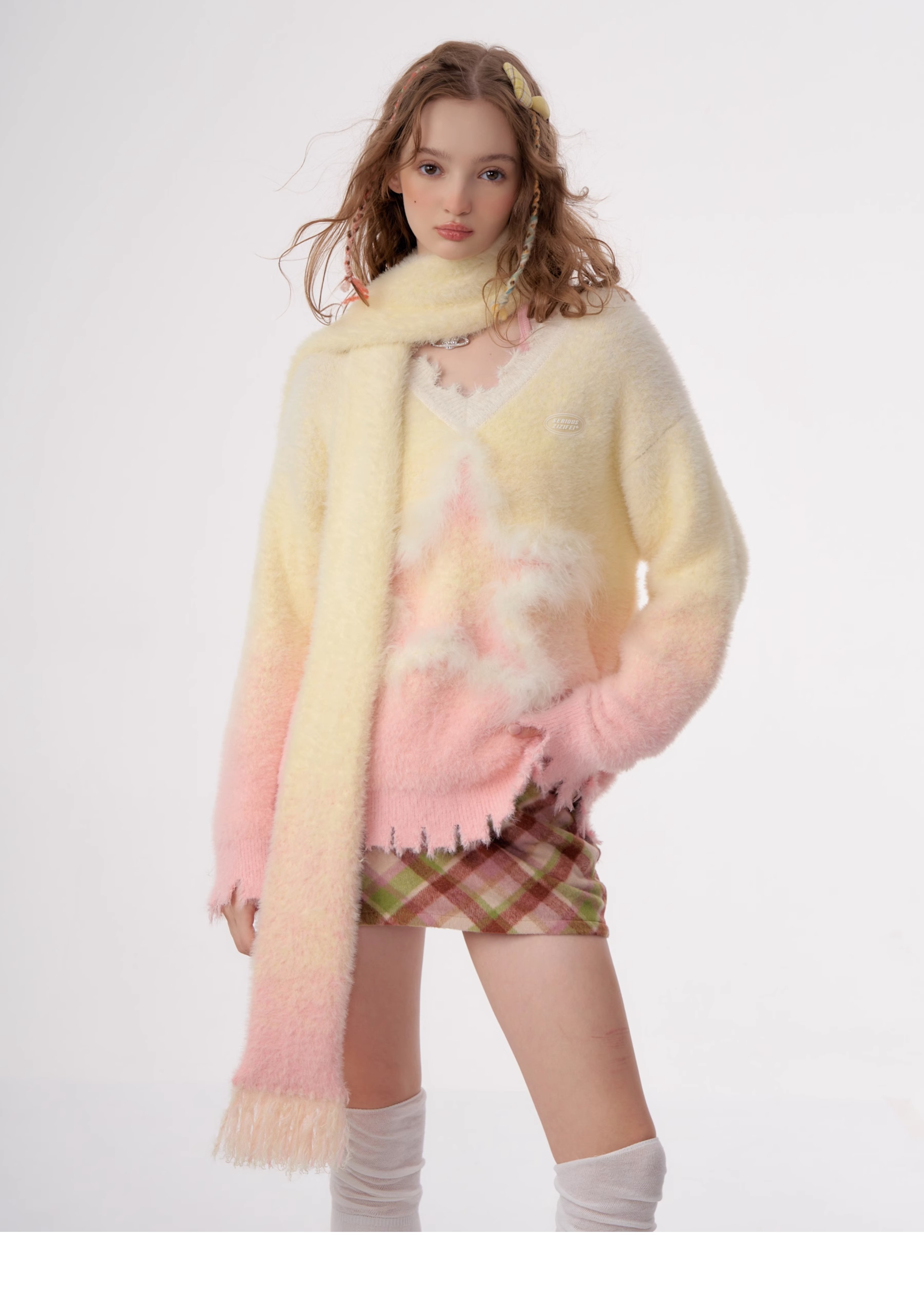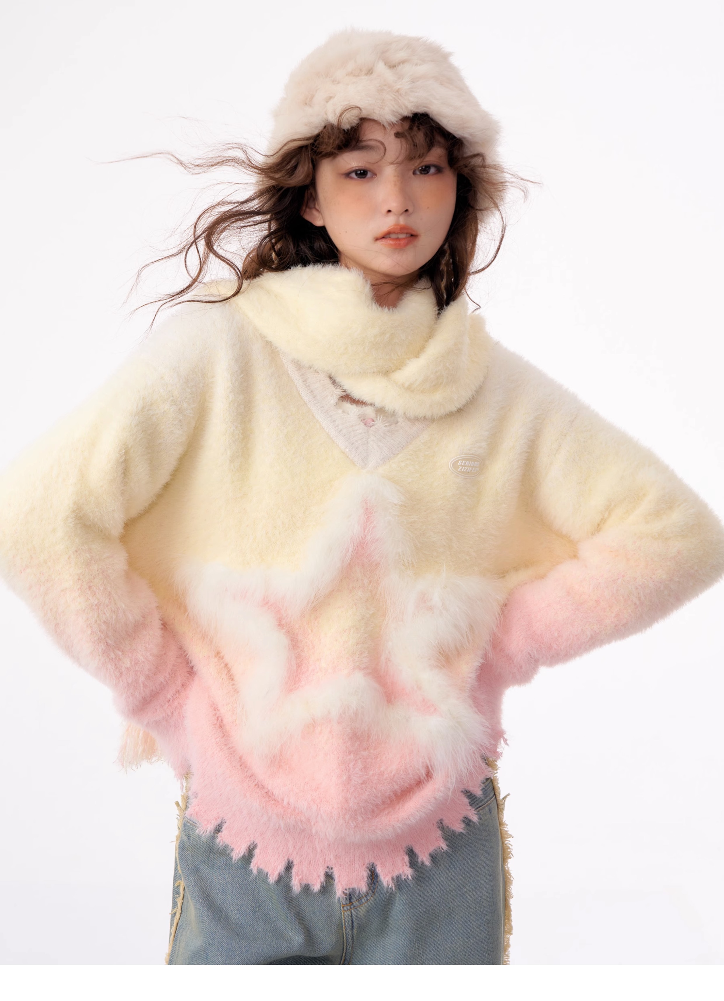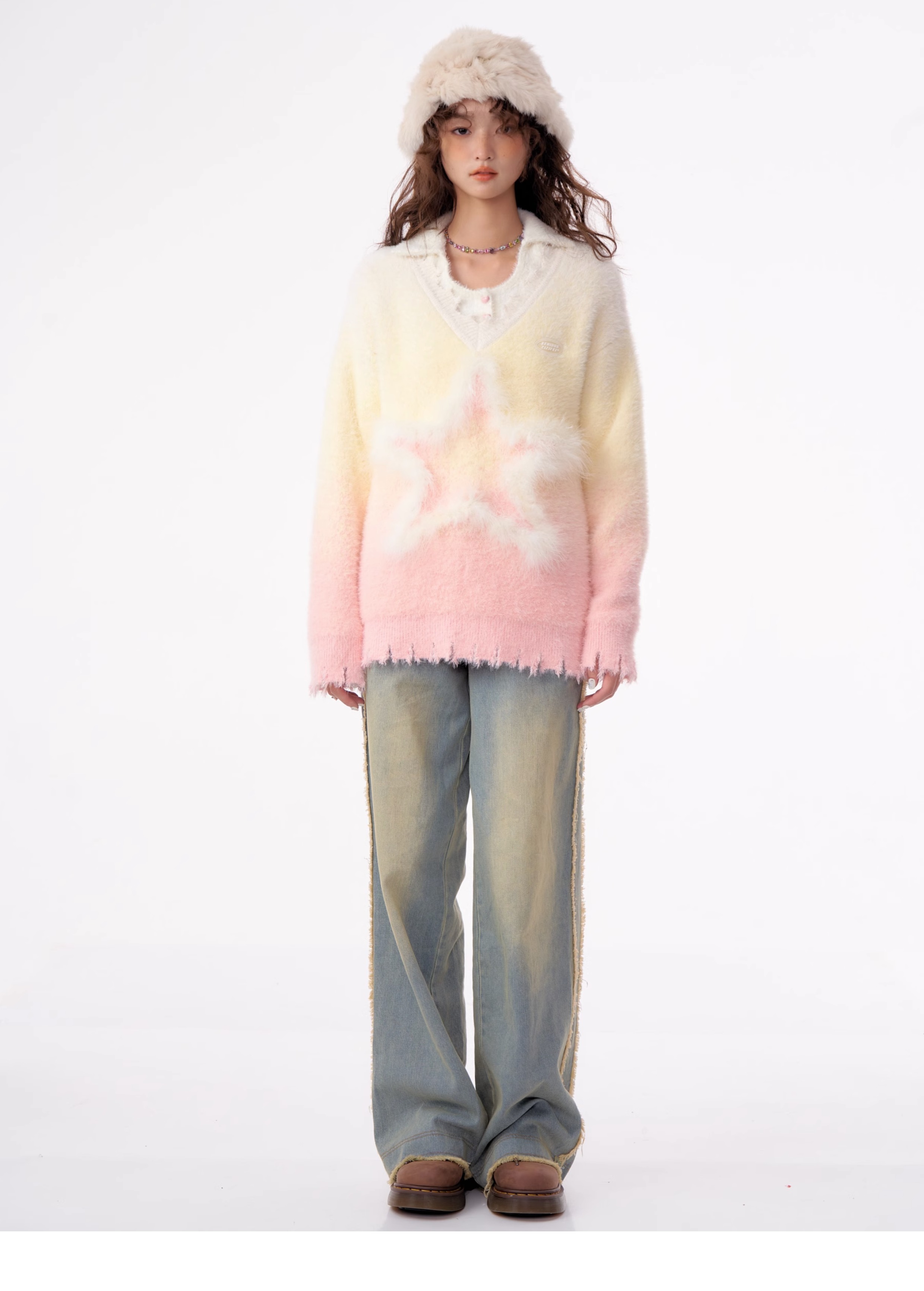 Automne/Hiver Essentiel | Pull à Col en V en Mohair à Motif Étoile Dégradé
