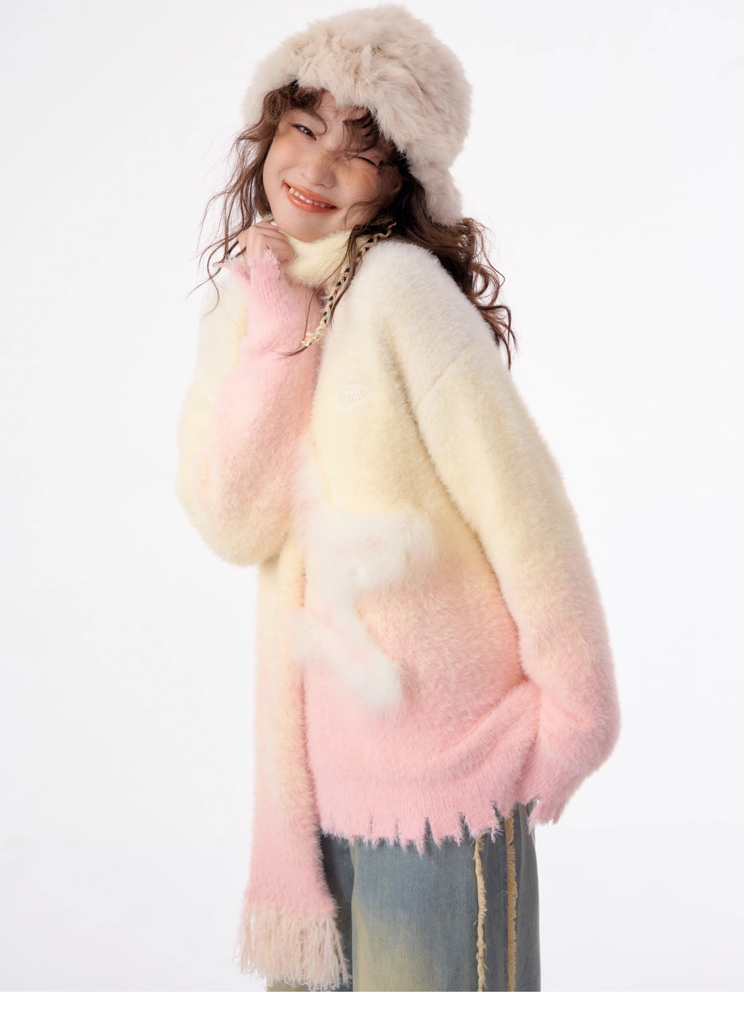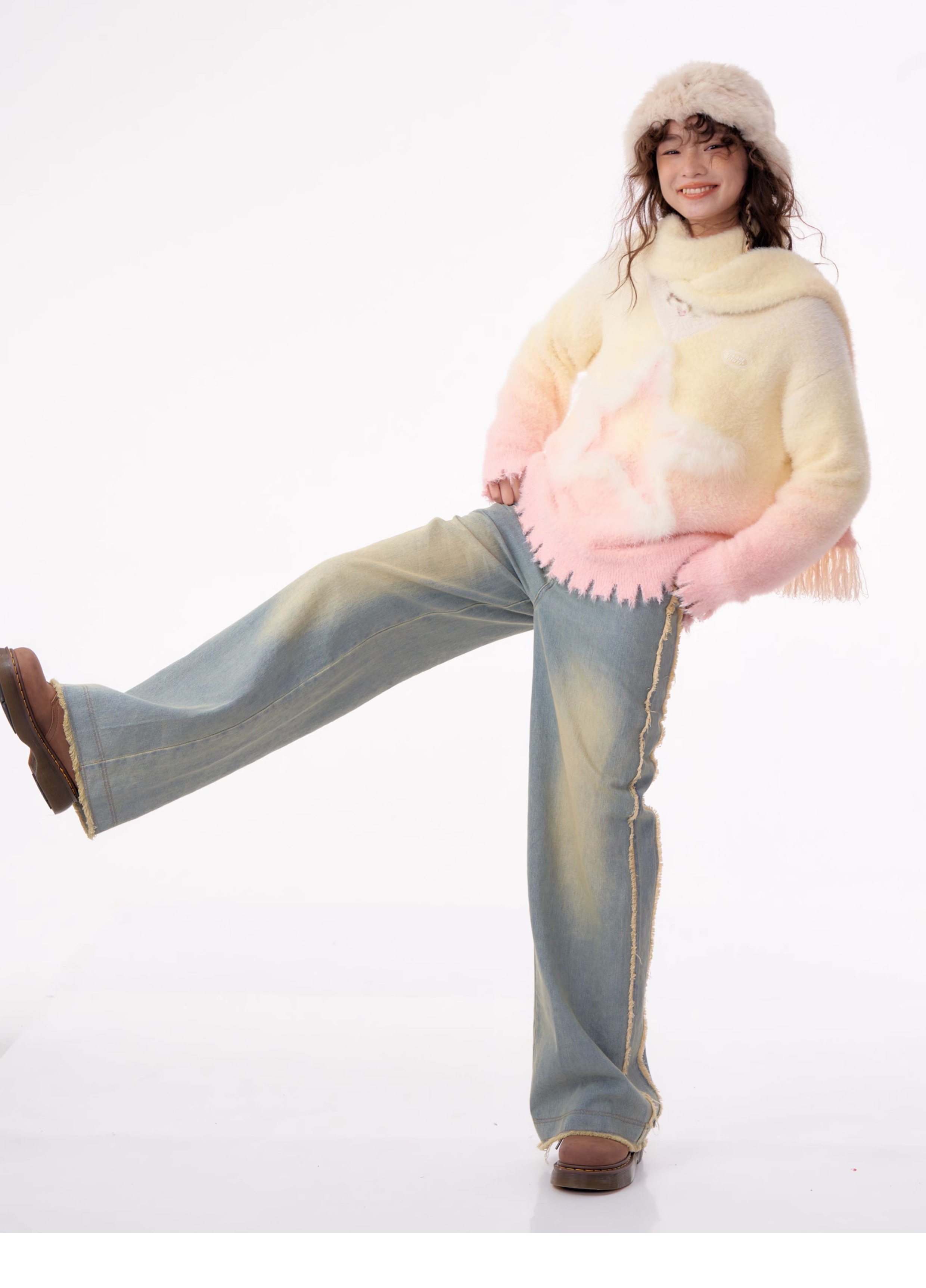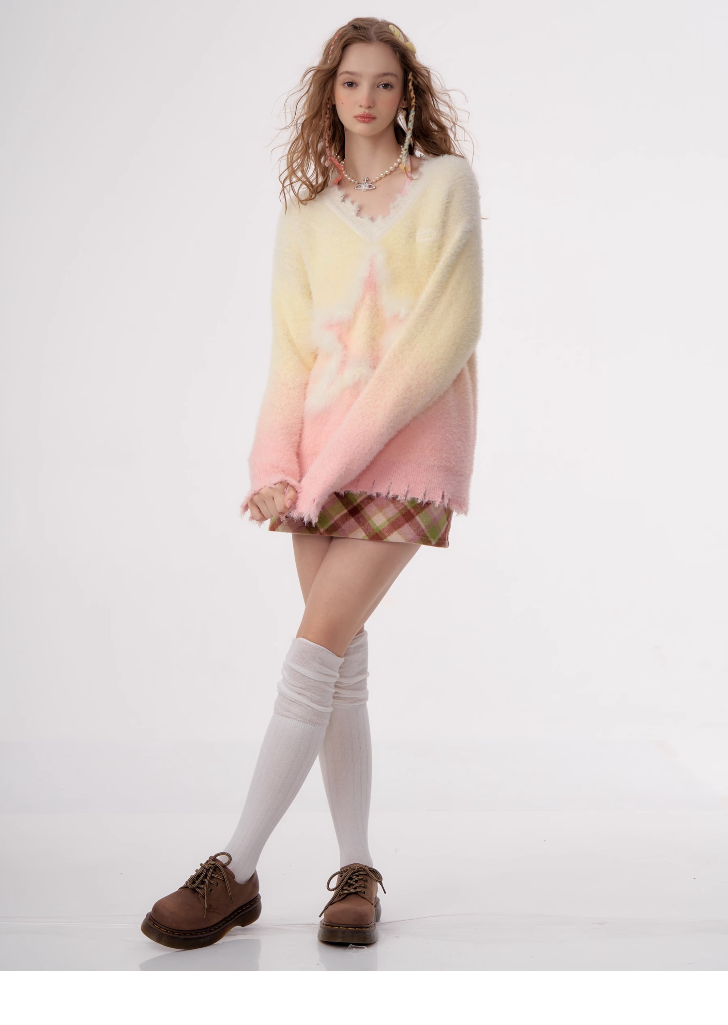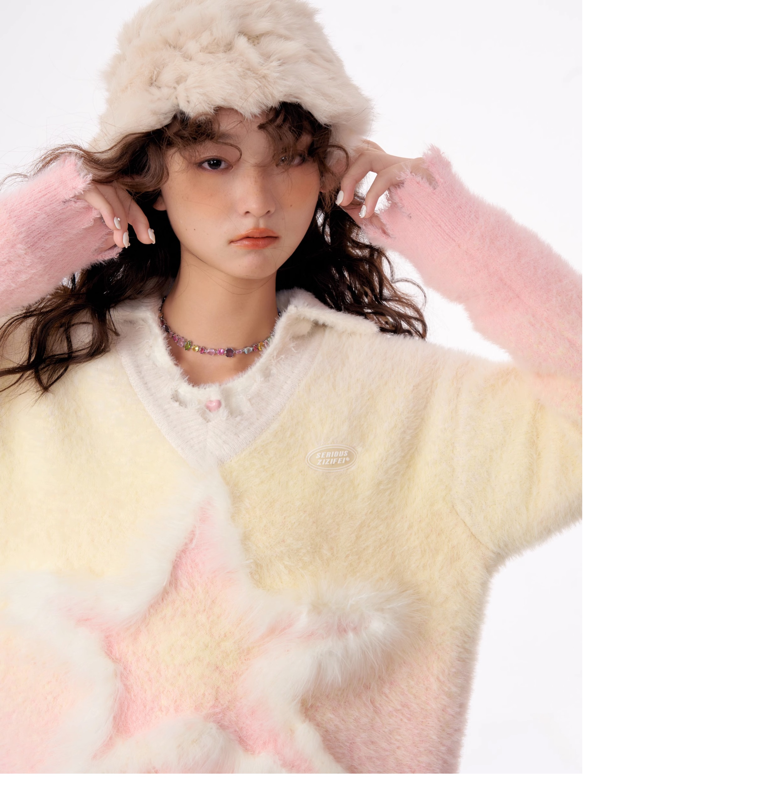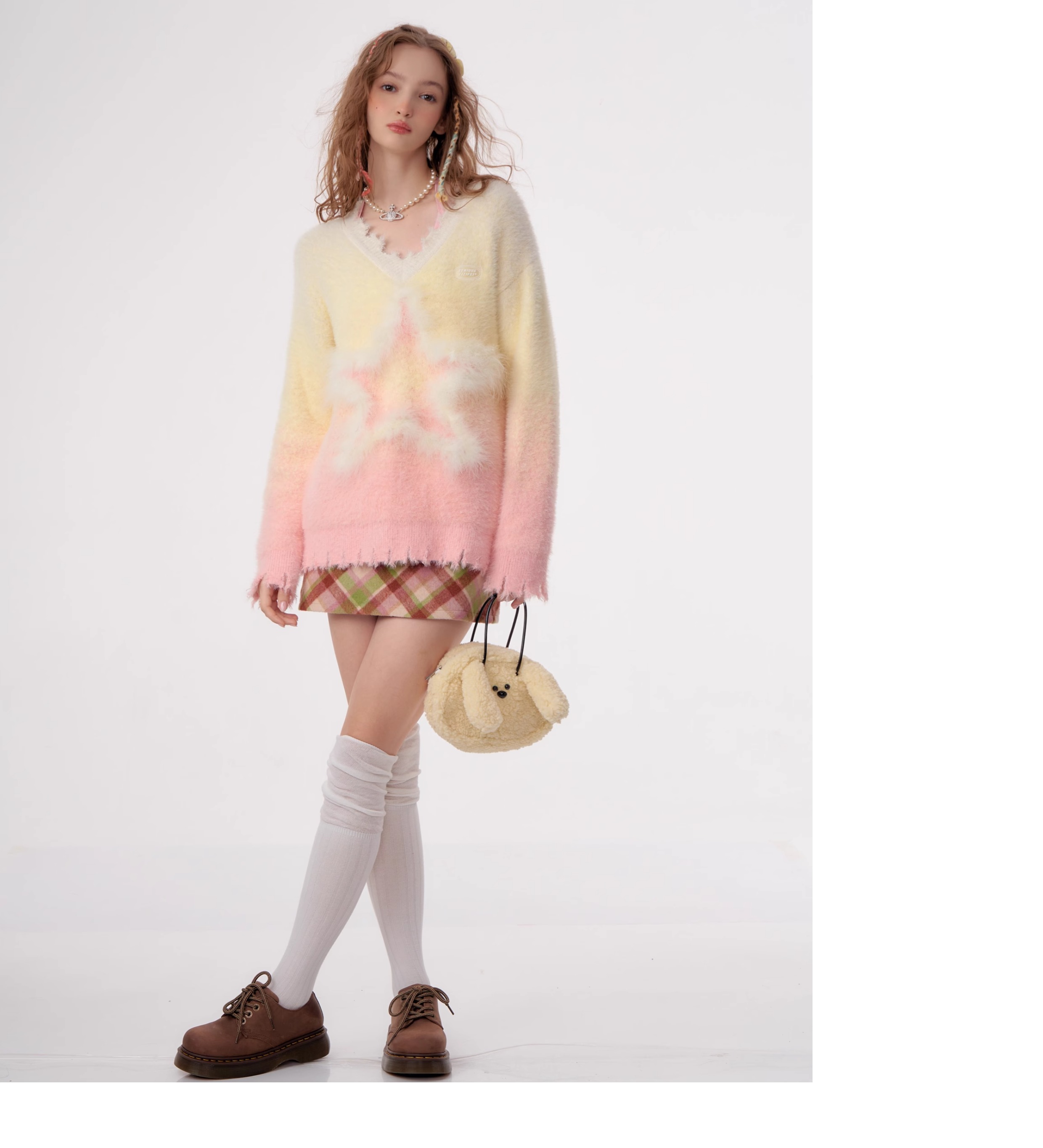 Automne/Hiver Essentiel | Pull à Col en V en Mohair à Motif Étoile Dégradé