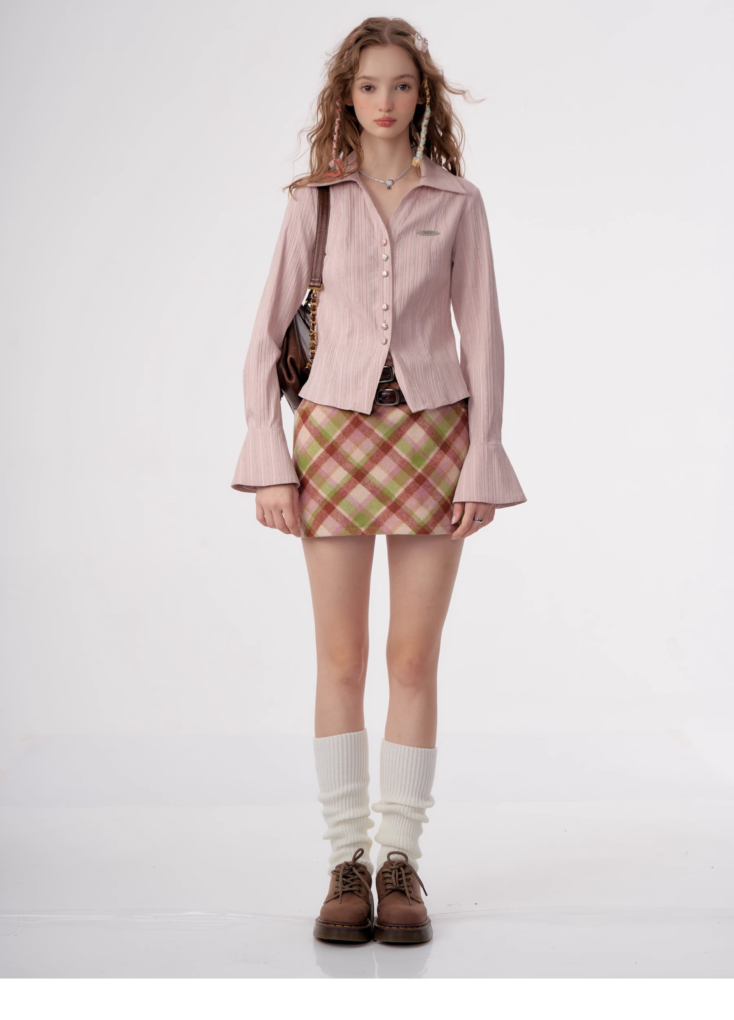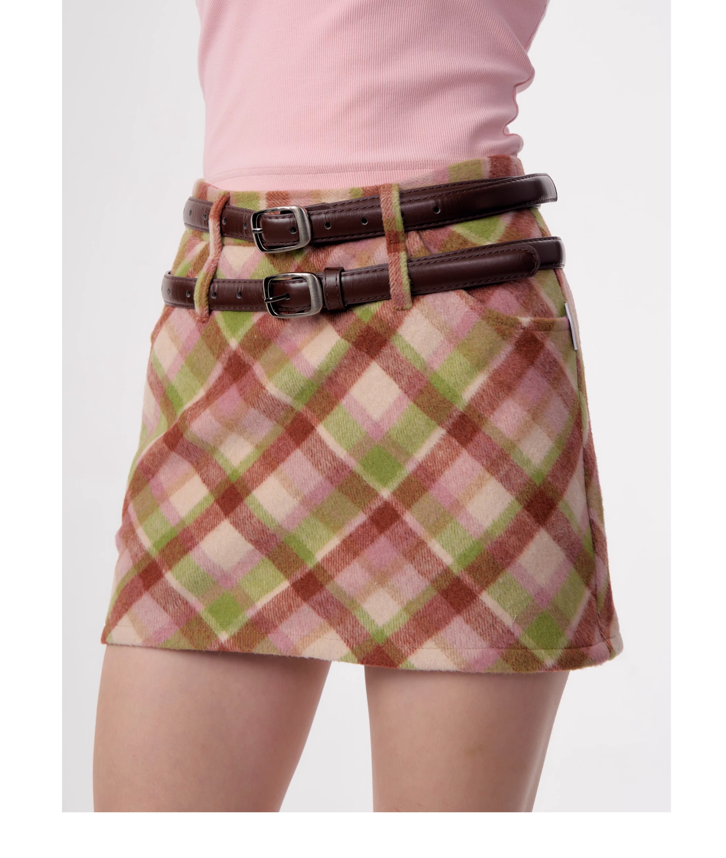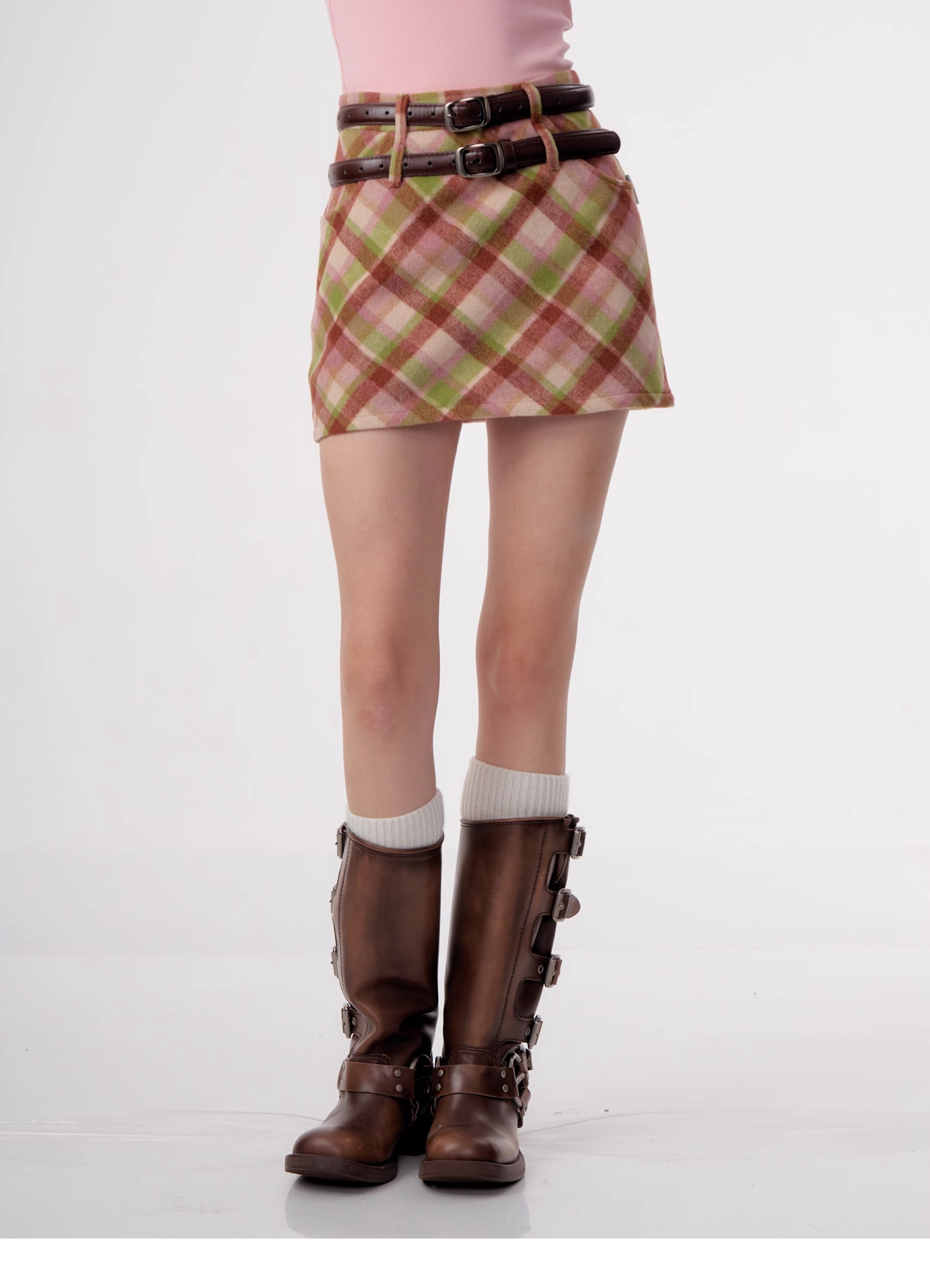 Jupe à carreaux en laine | Taille haute, coupe ajustée, Style rétro américain pour l'automne/hiver