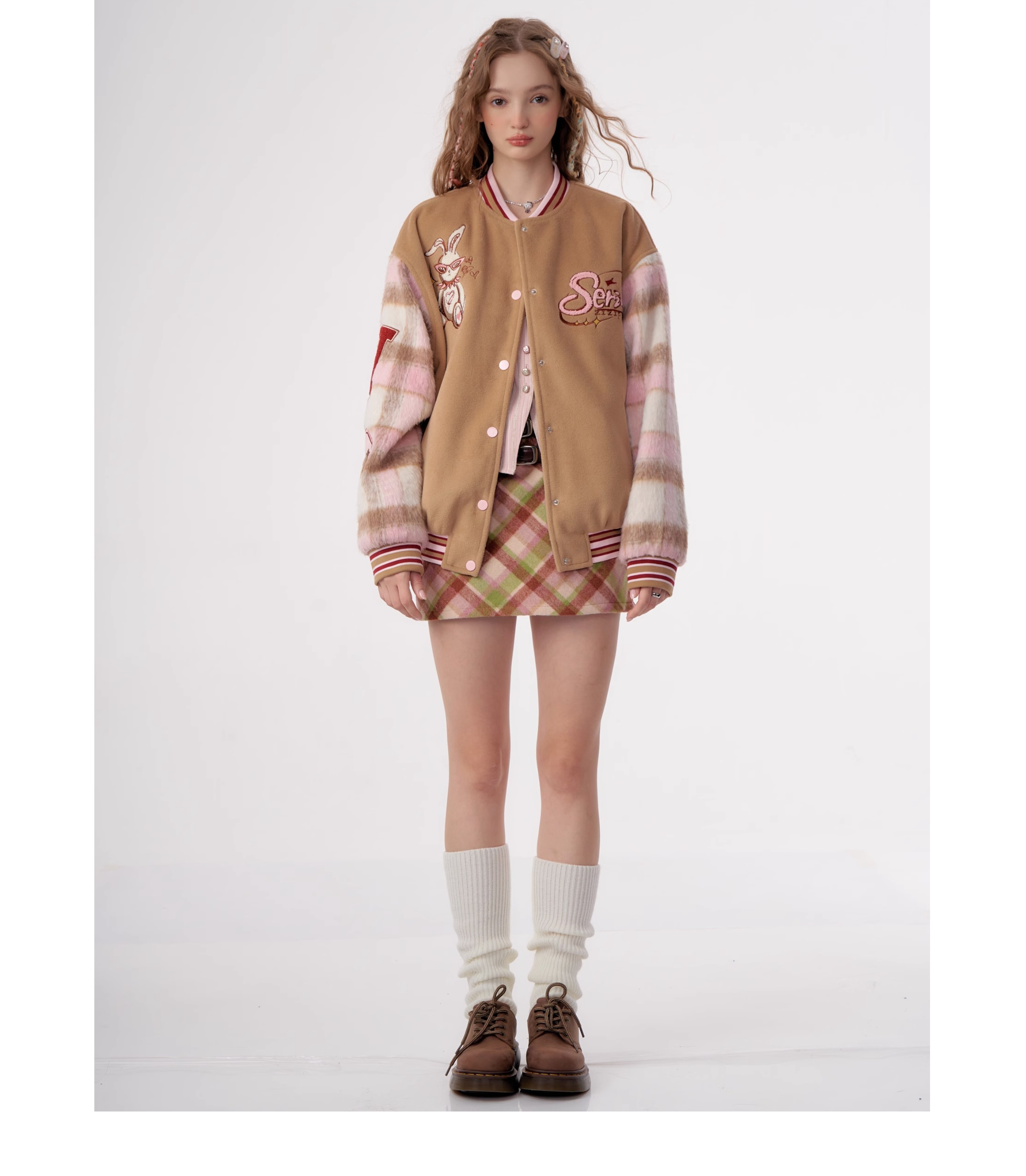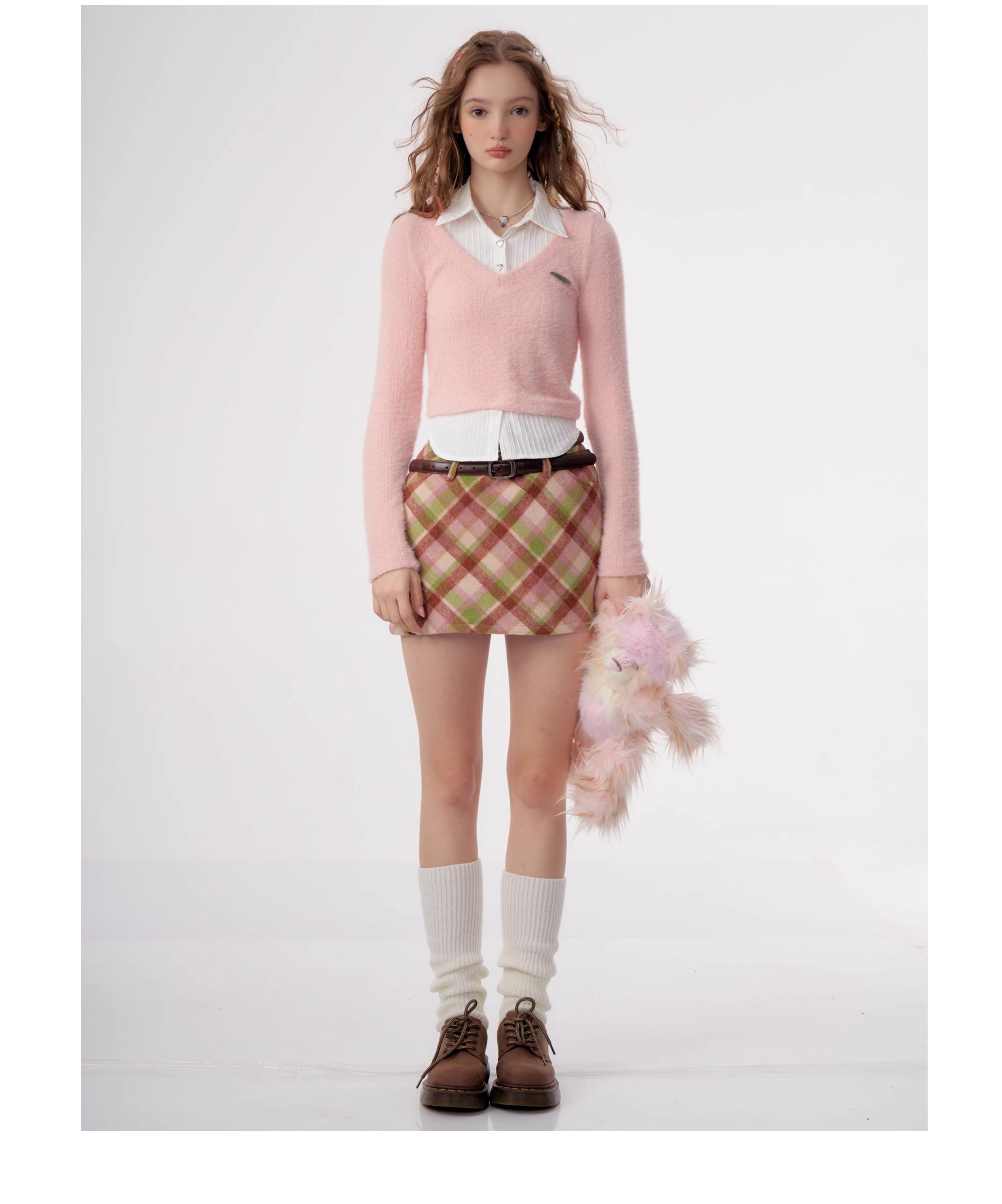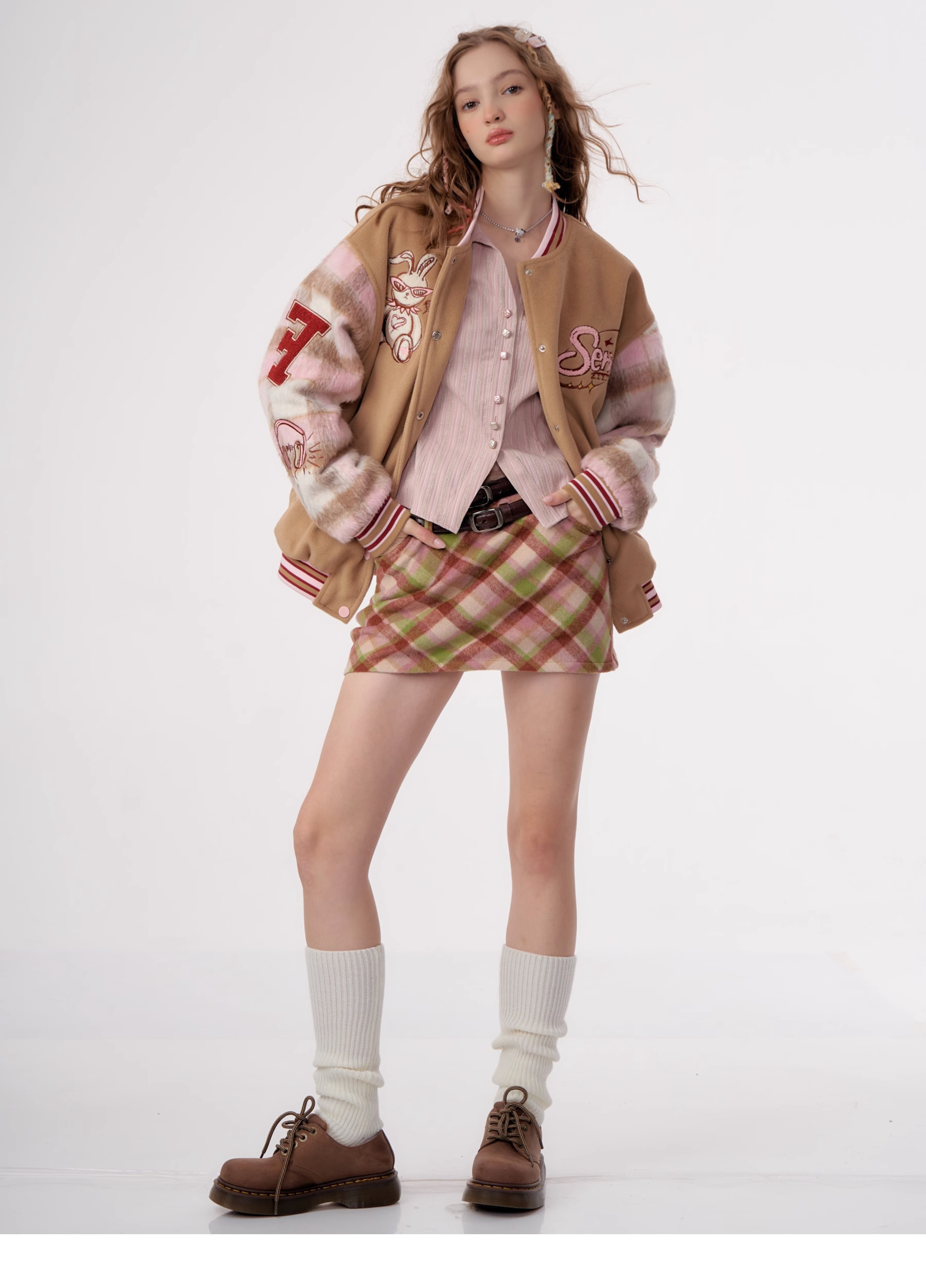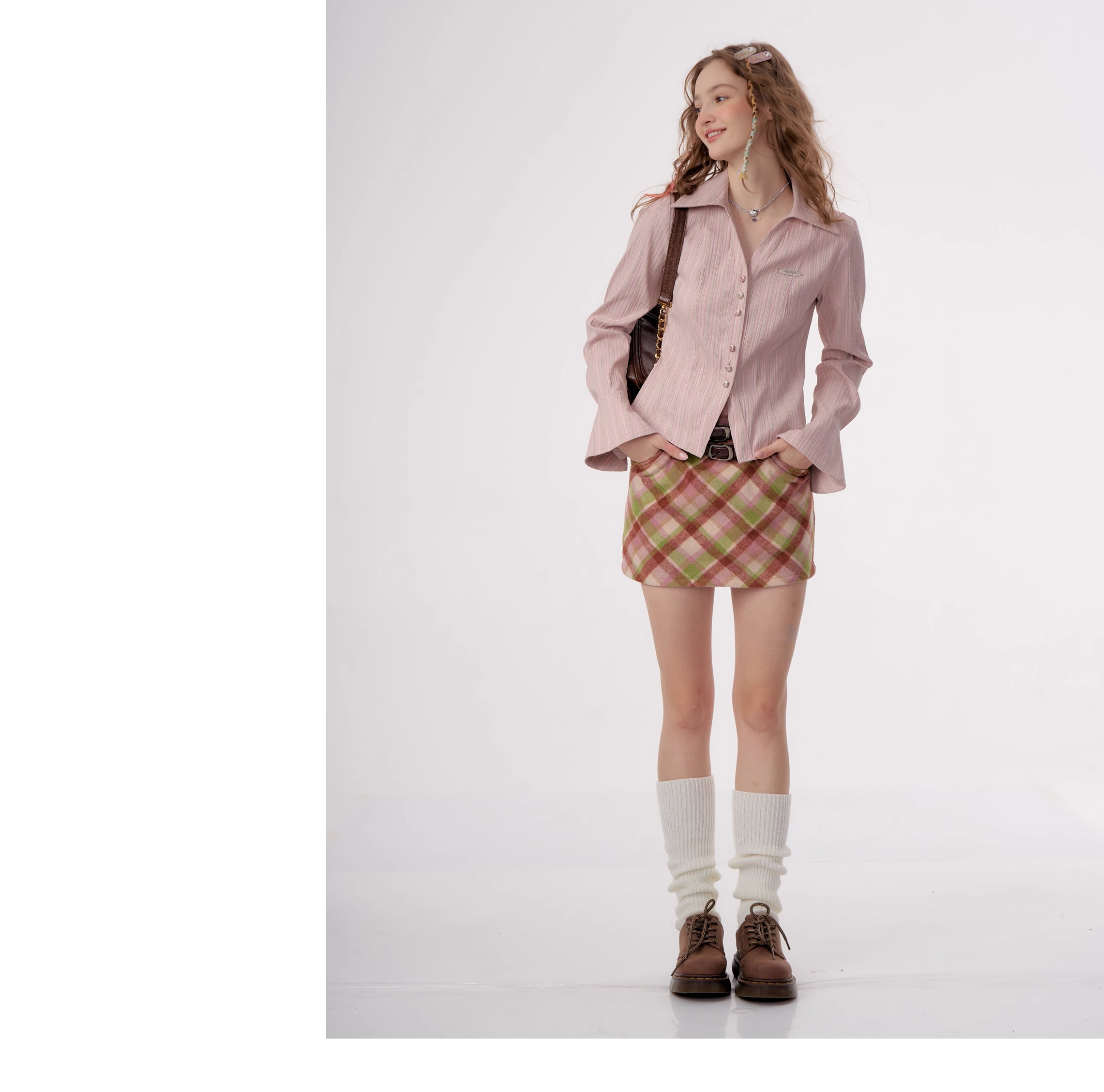 Jupe à carreaux en laine | Taille haute, coupe ajustée, Style rétro américain pour l'automne/hiver
