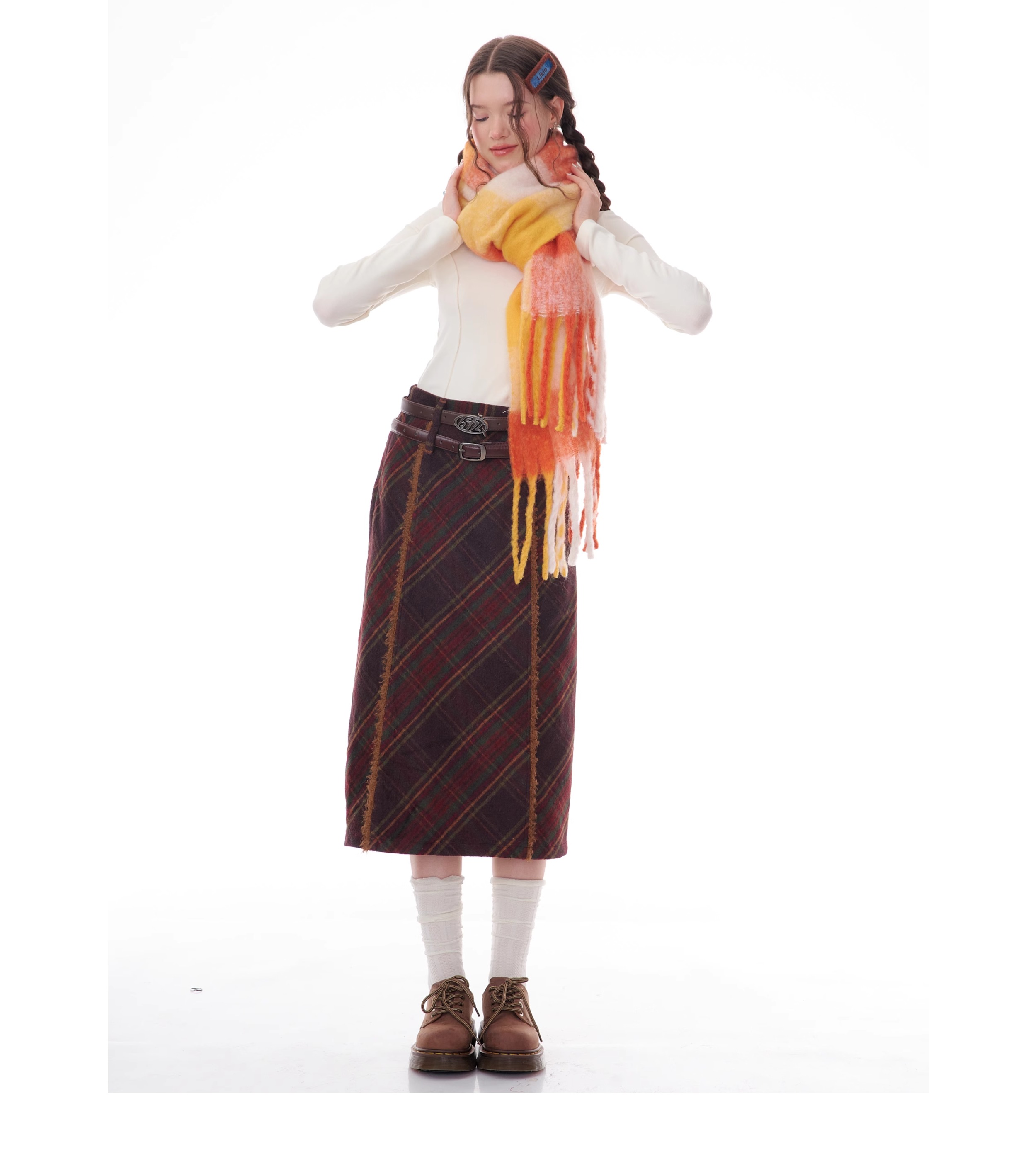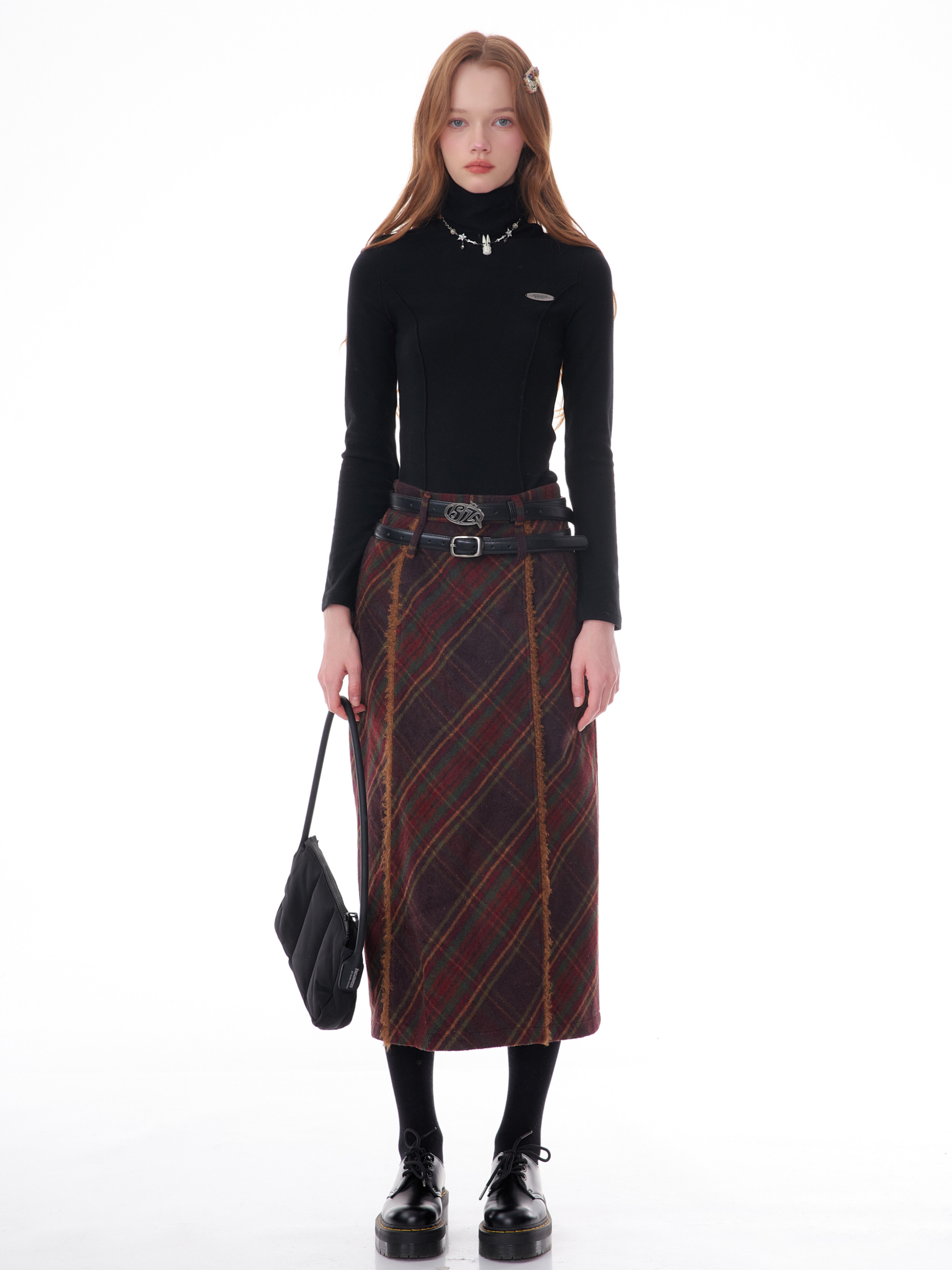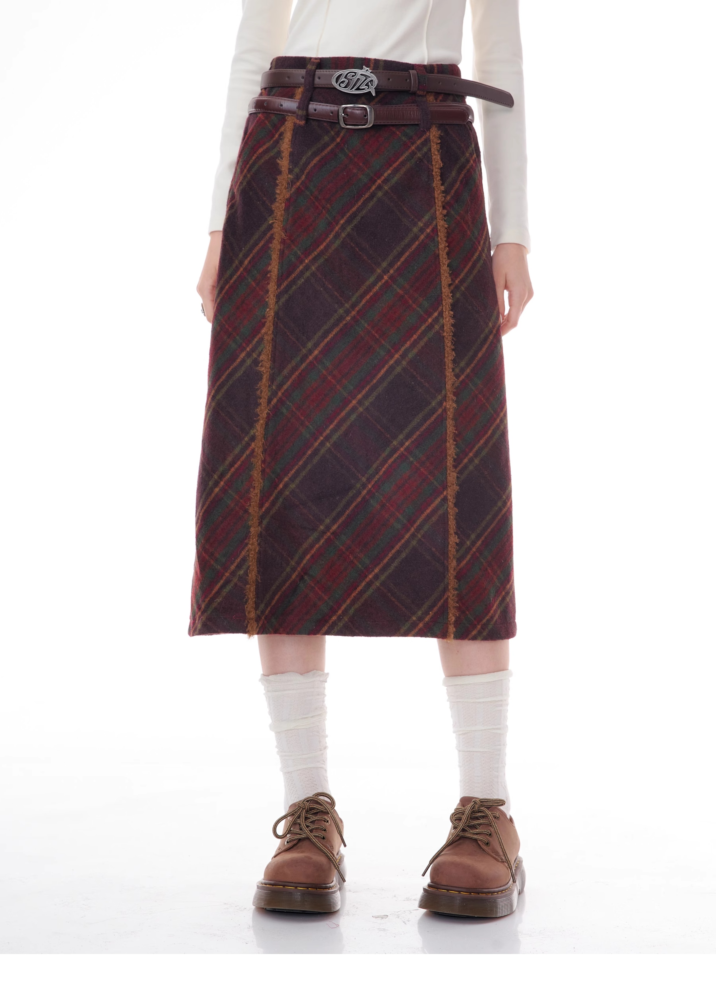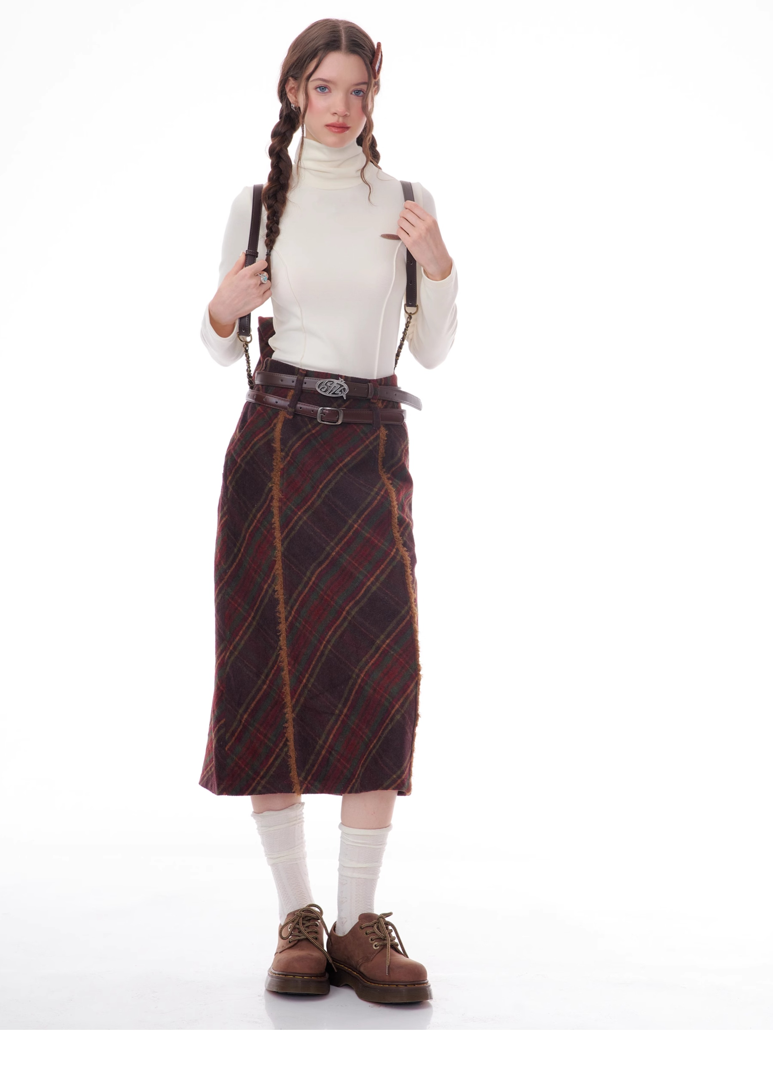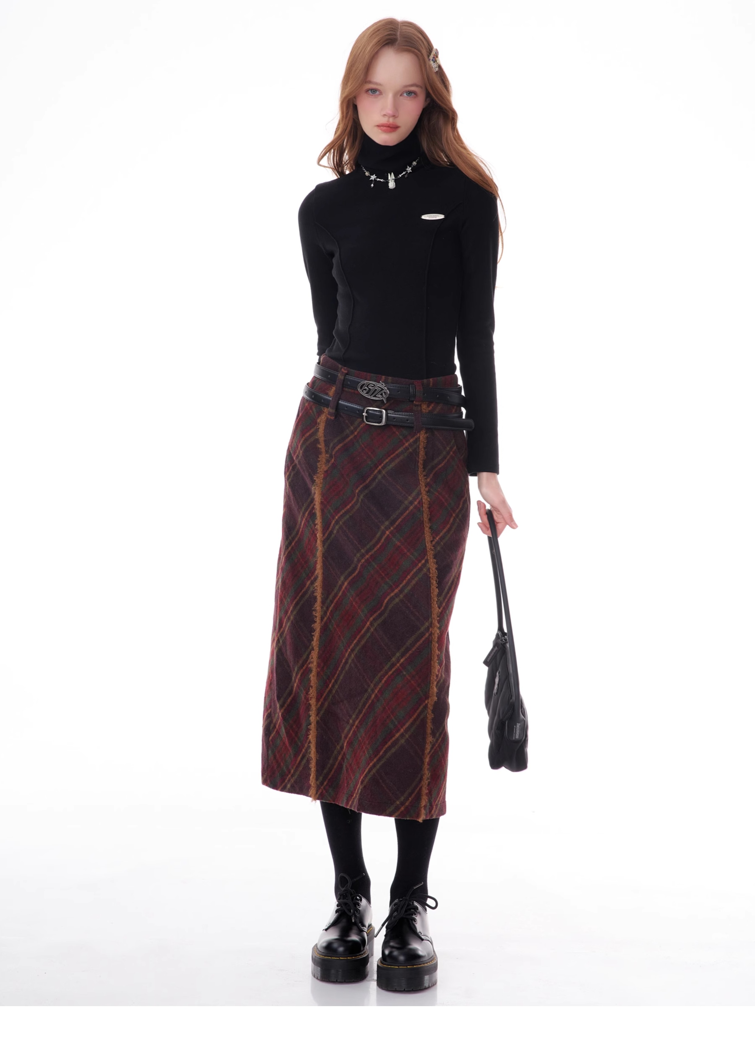 Jupe en laine à carreaux rouges | Taille haute rétro Slim Fit pour l’automne/hiver