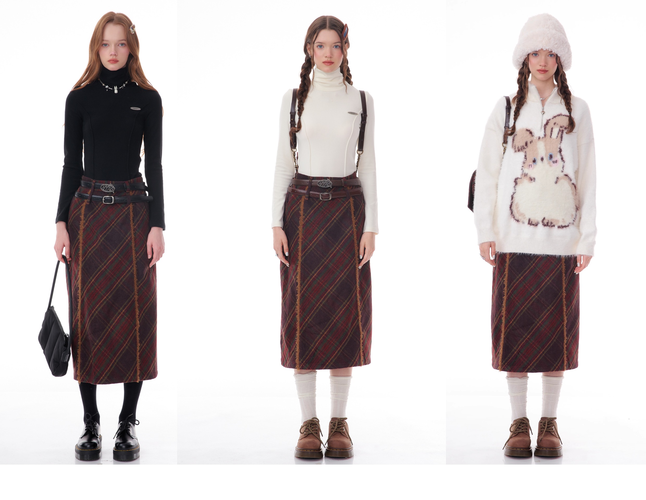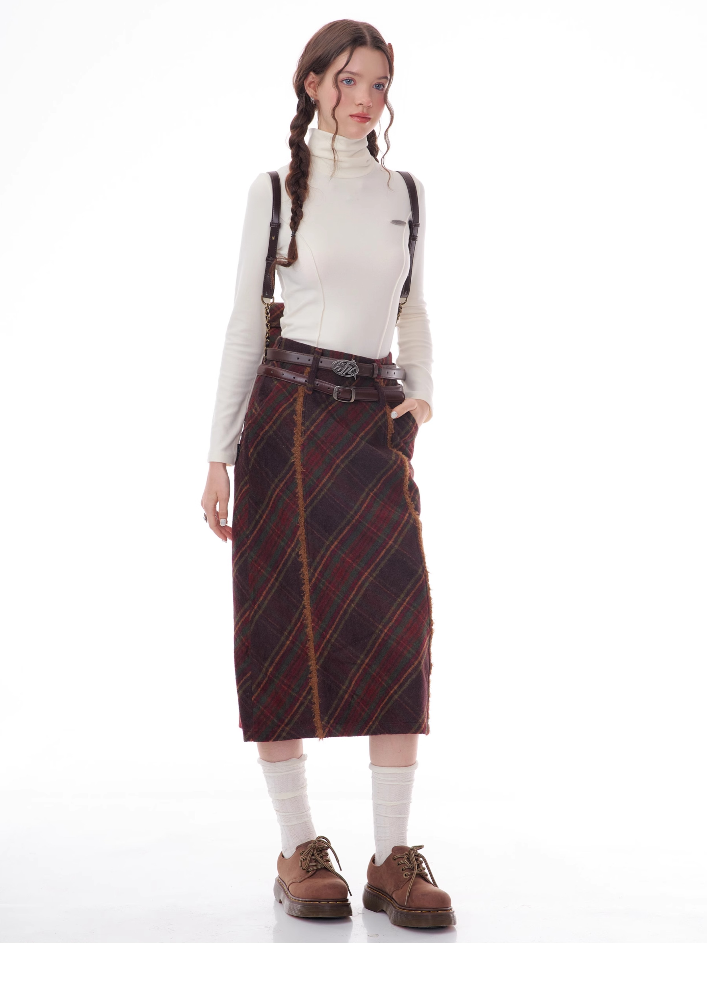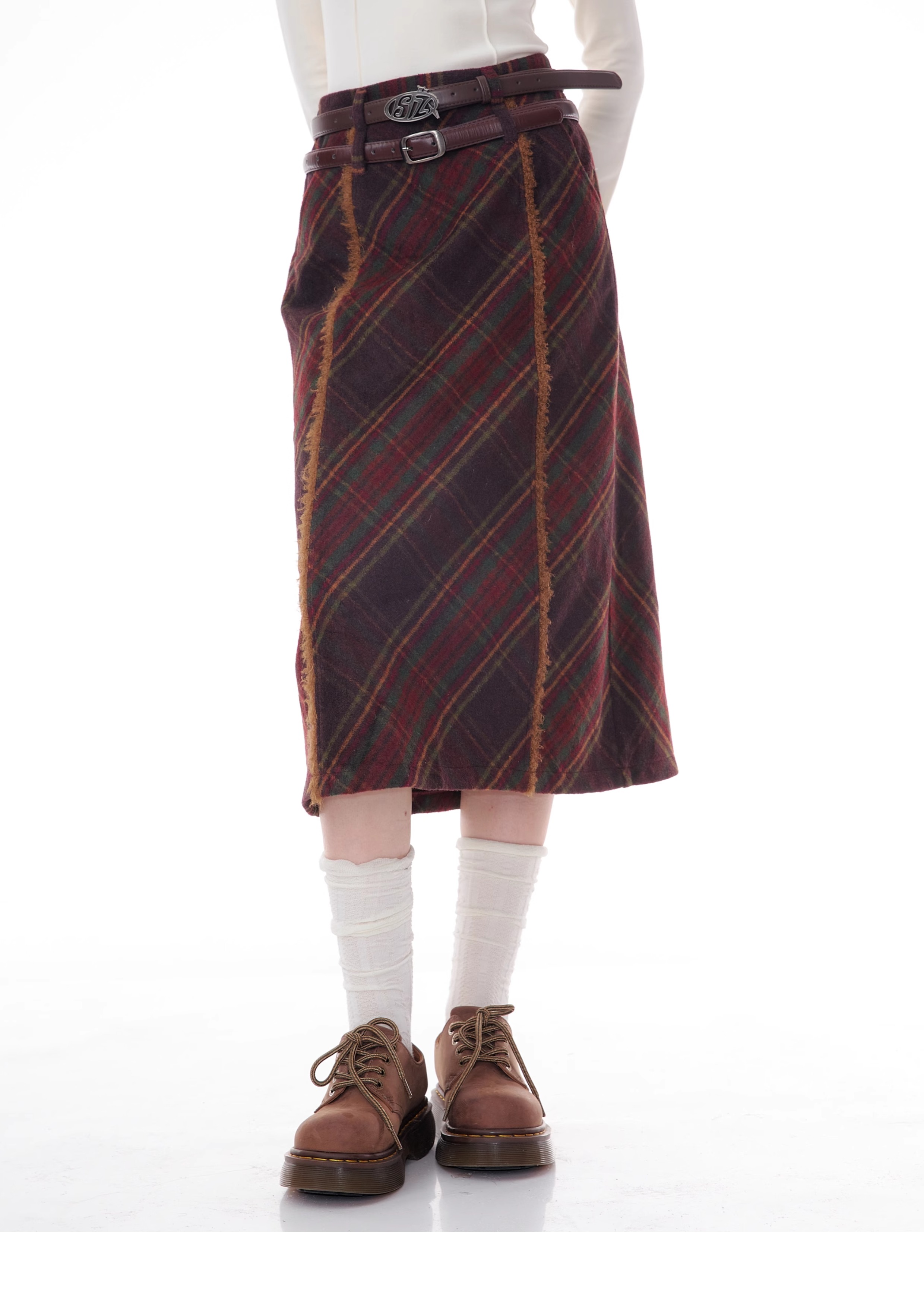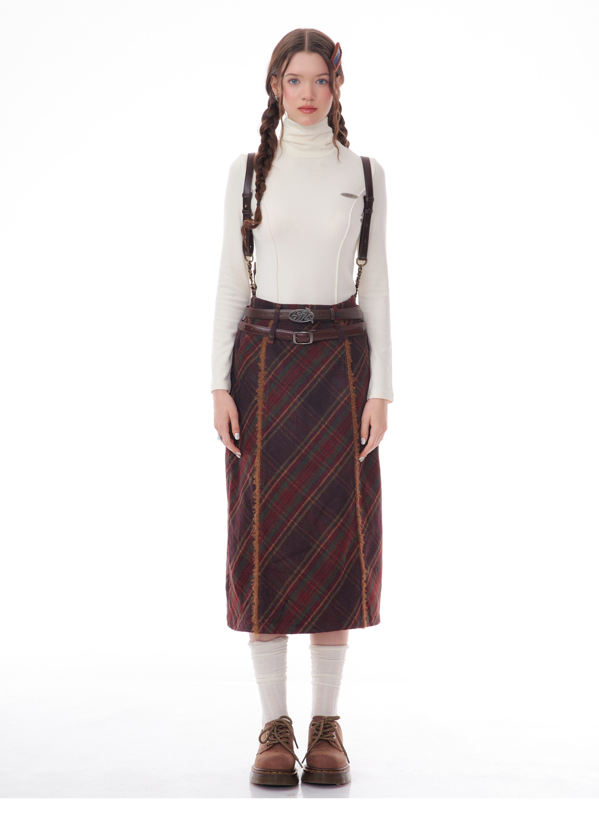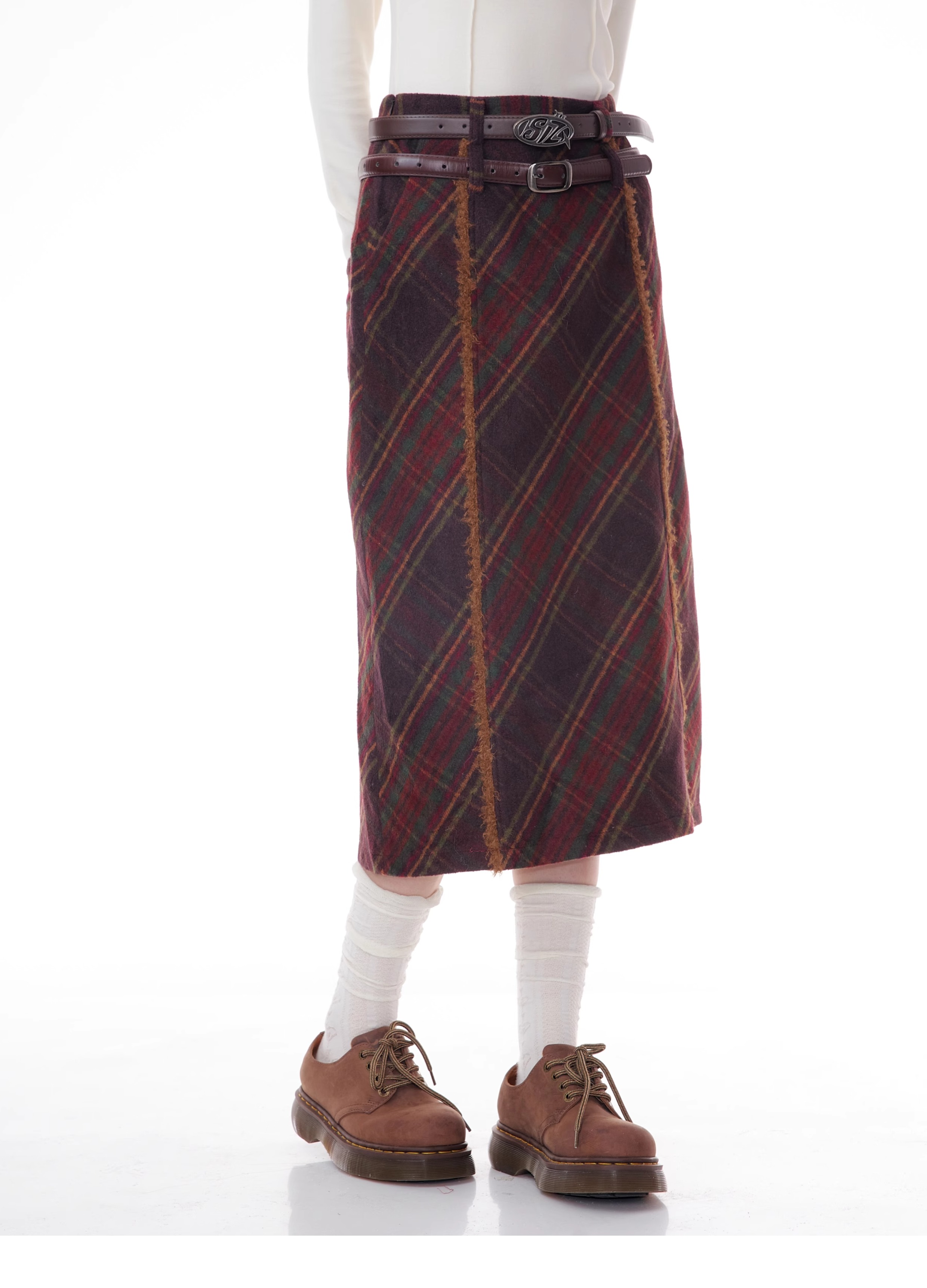 Jupe en laine à carreaux rouges | Taille haute rétro Slim Fit pour l’automne/hiver