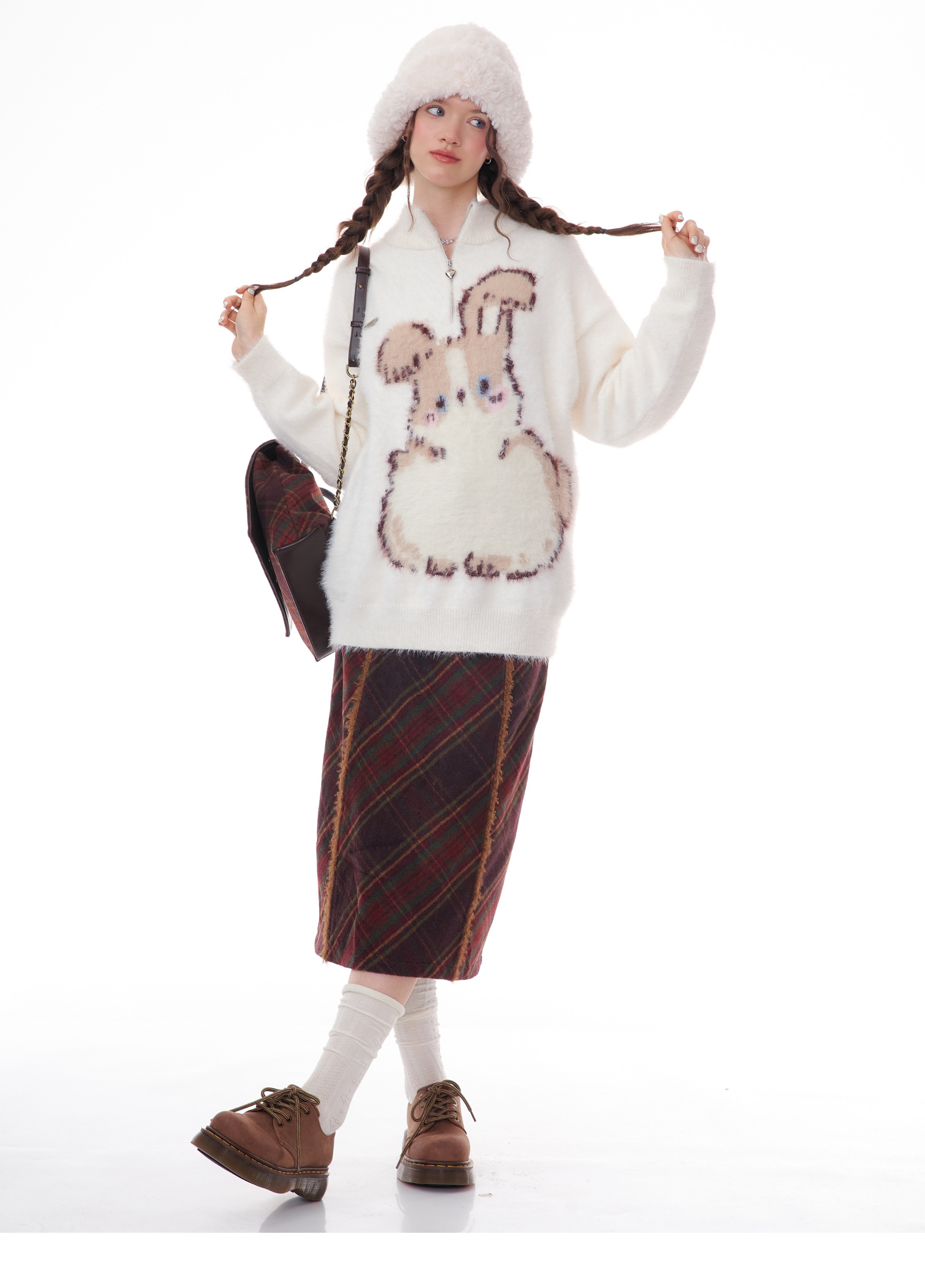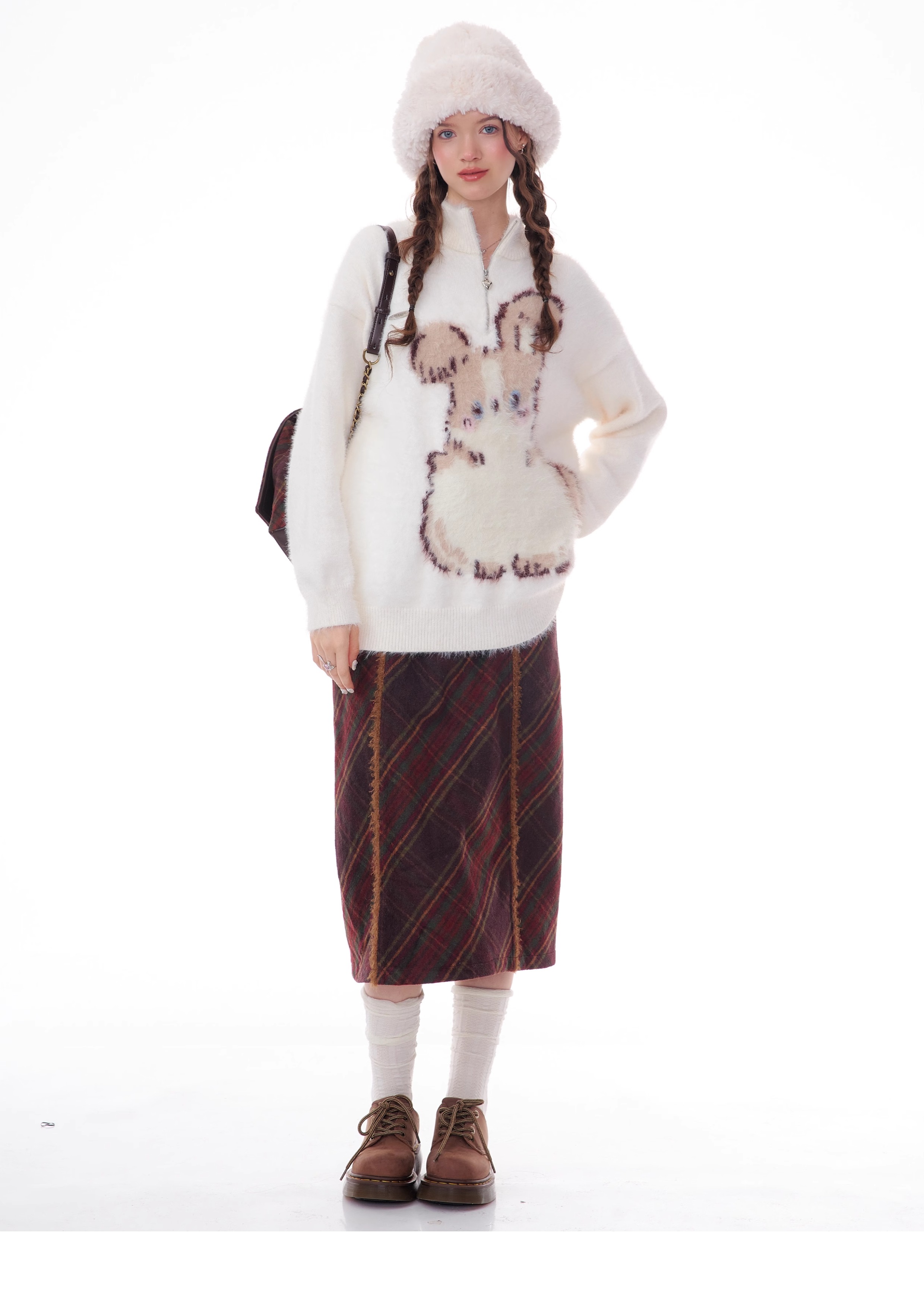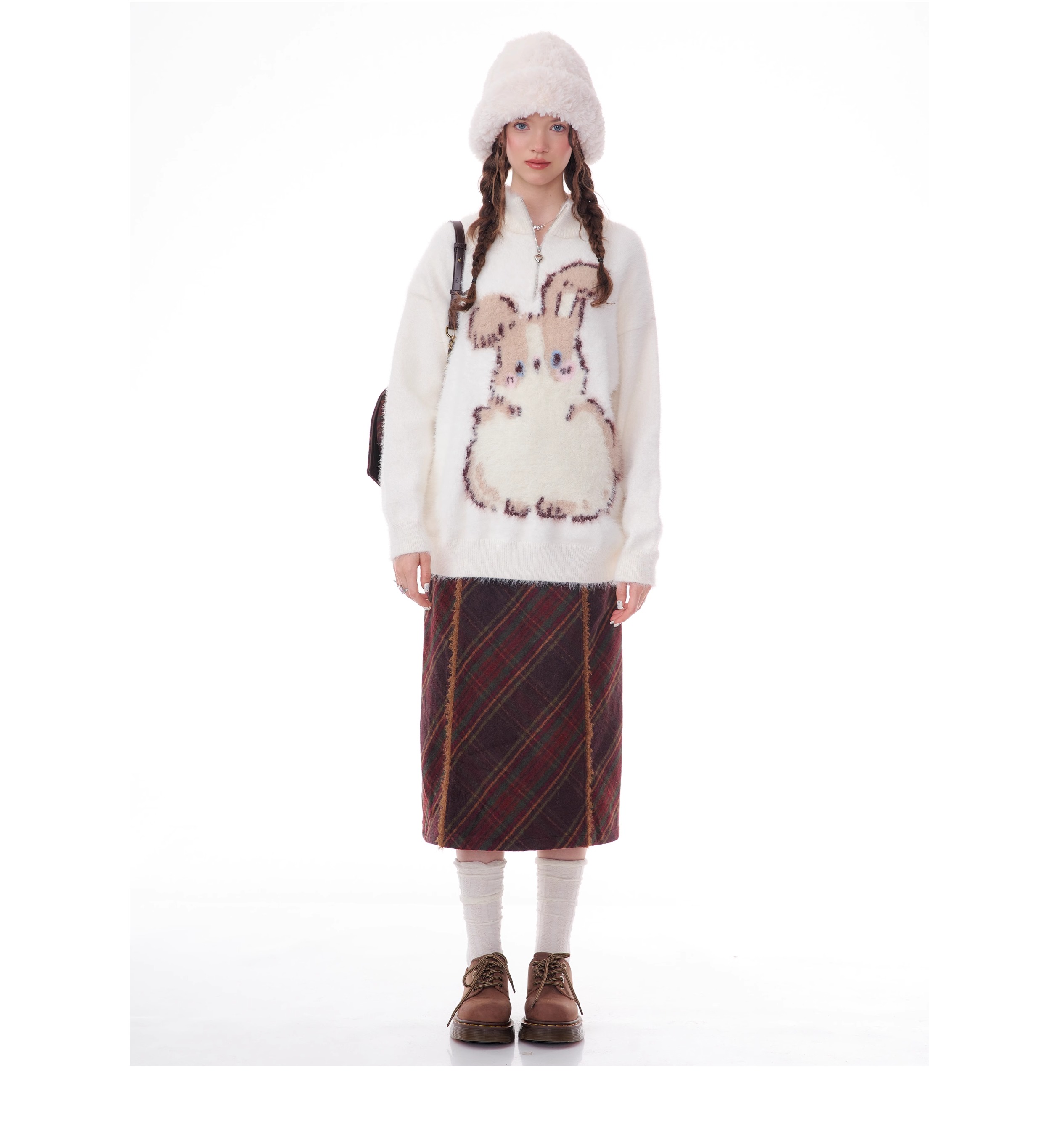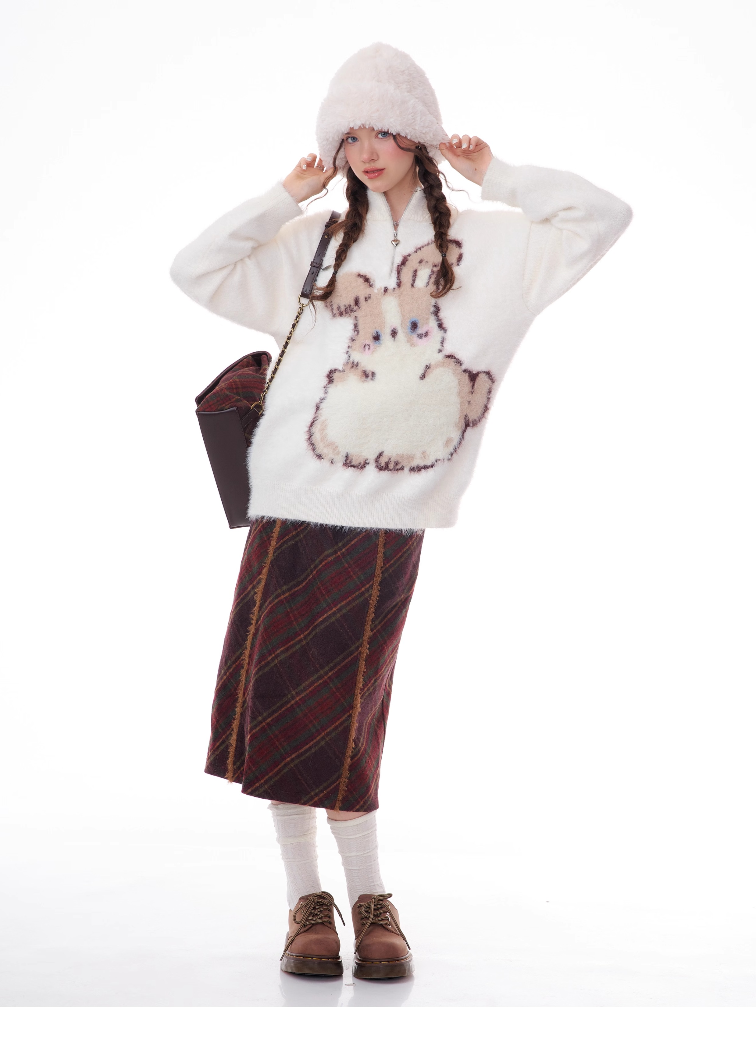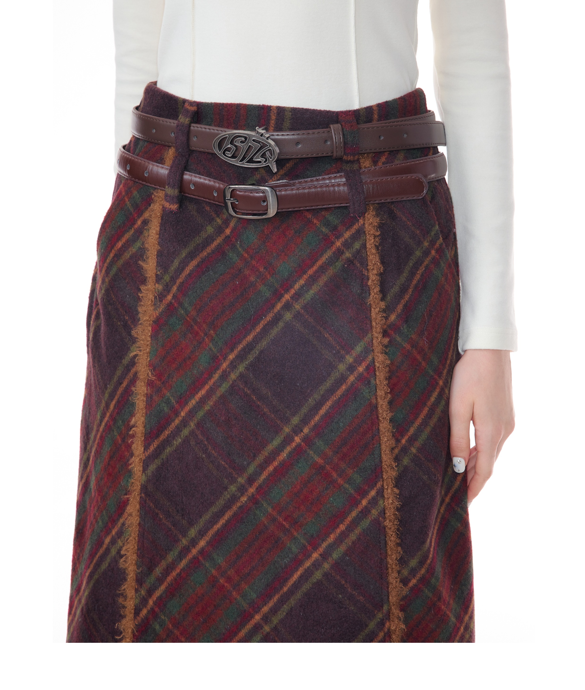Jupe en laine à carreaux rouges | Taille haute rétro Slim Fit pour l’automne/hiver