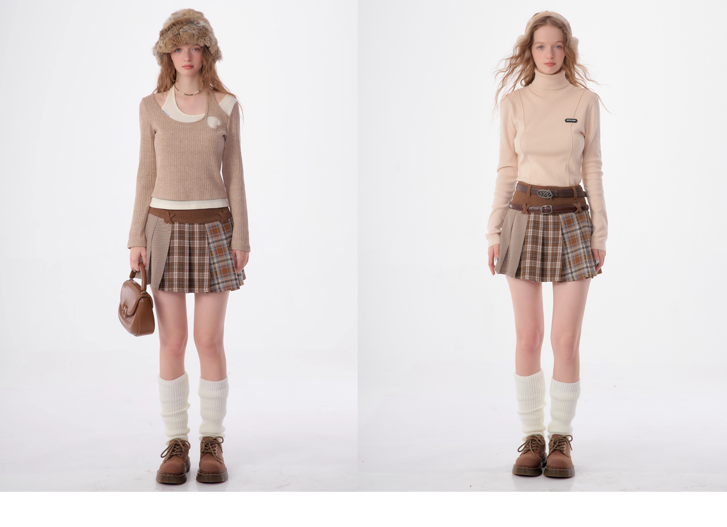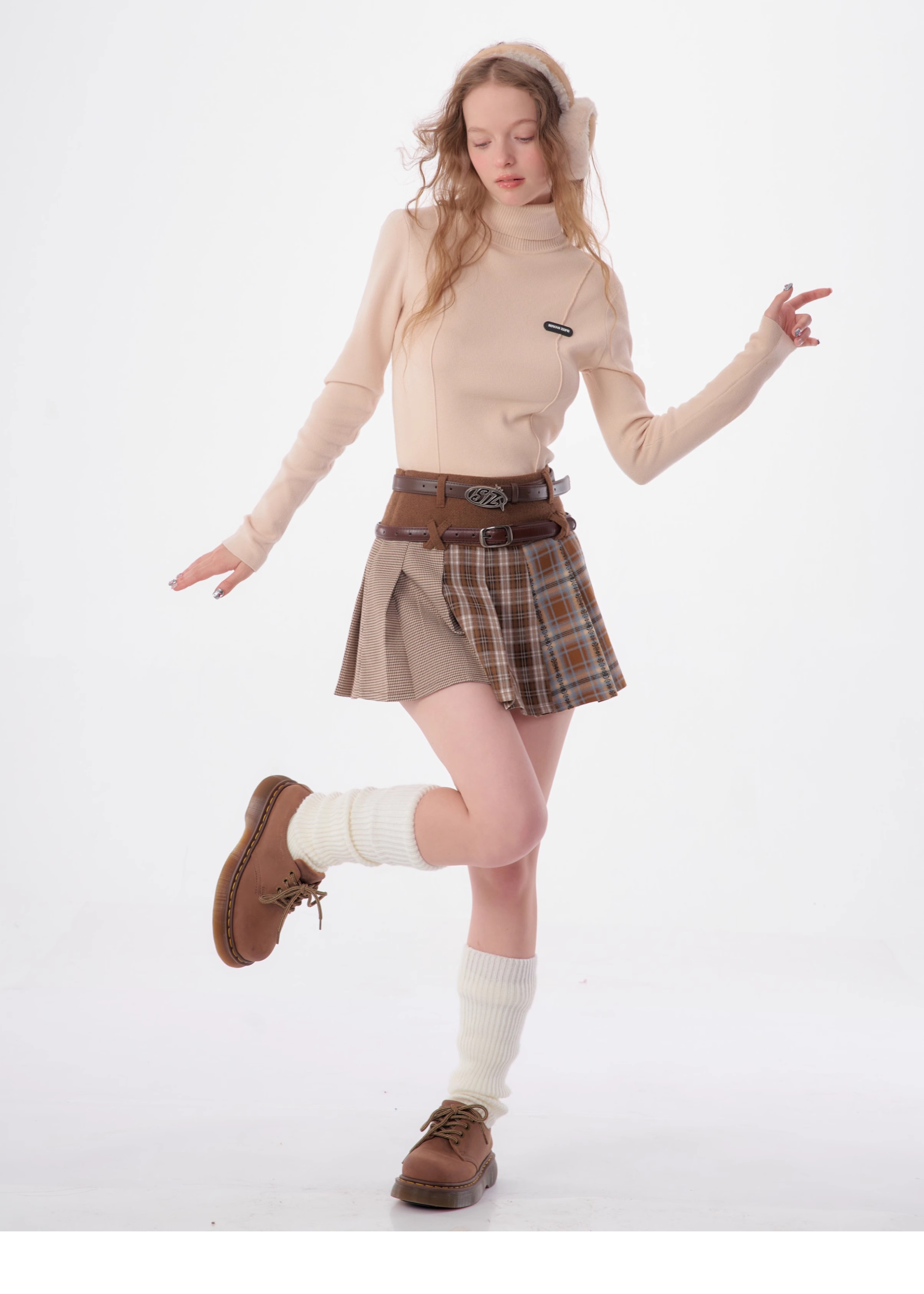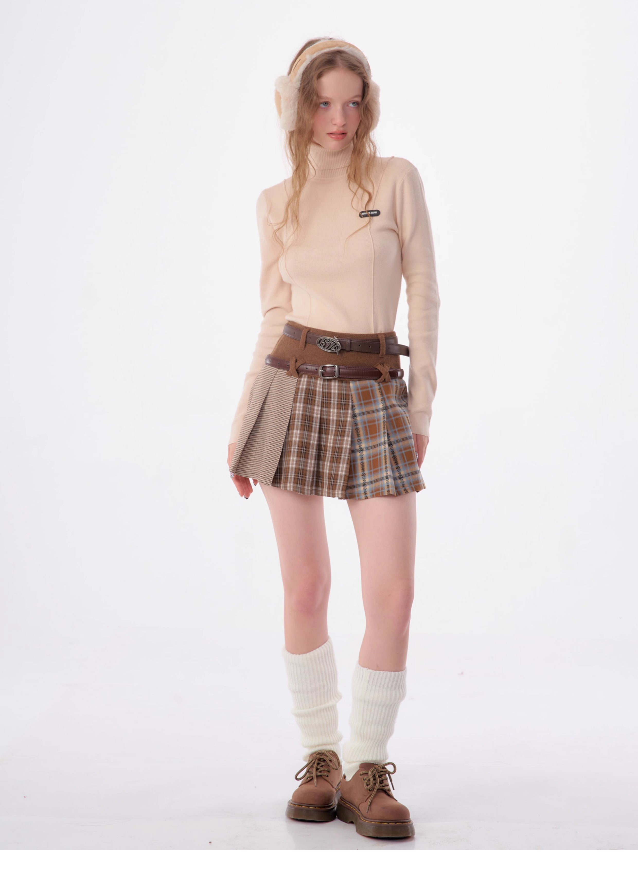 Jupe à volants à carreaux irréguliers | Design rétro en laine pour l'automne/hiver