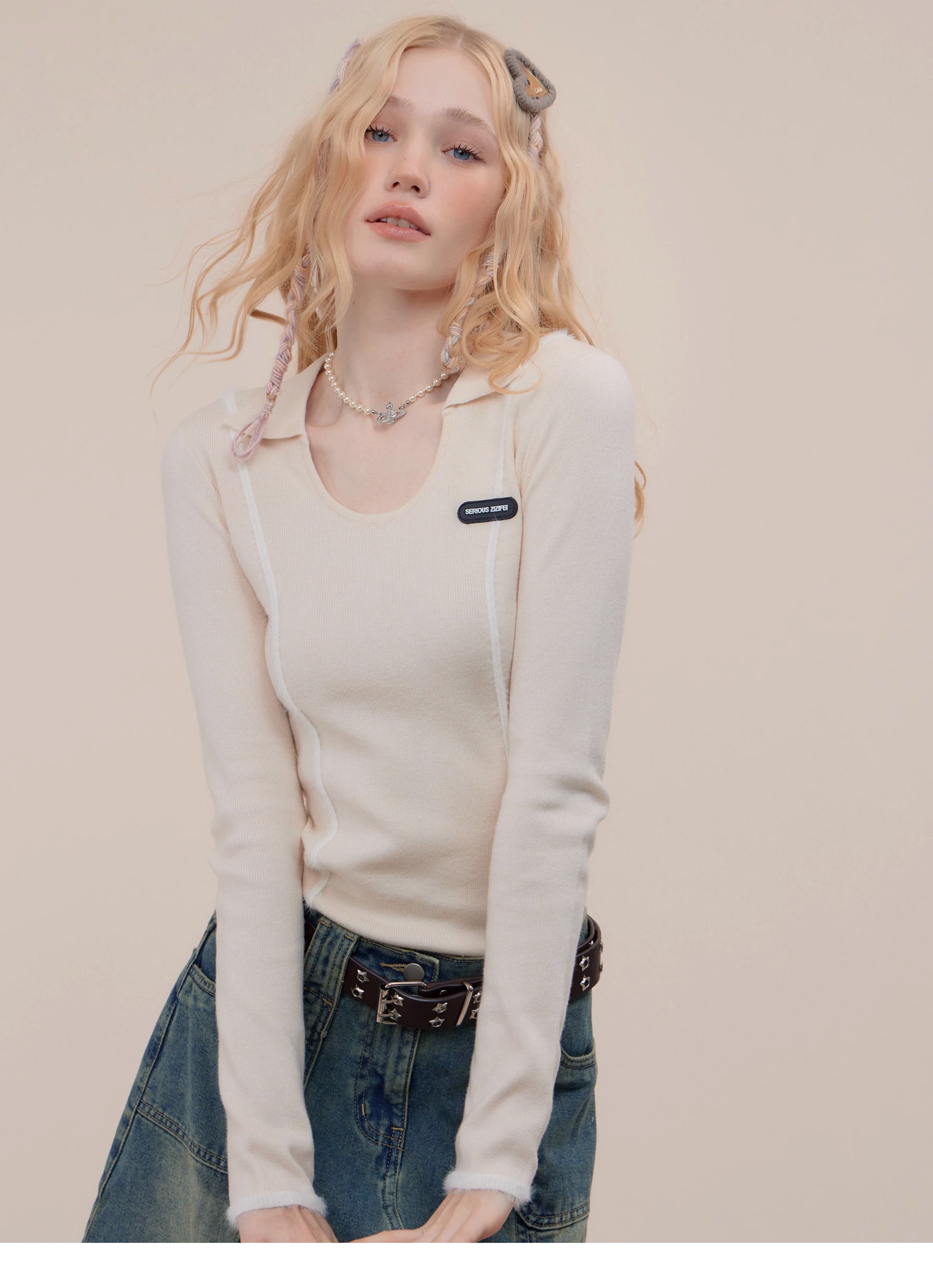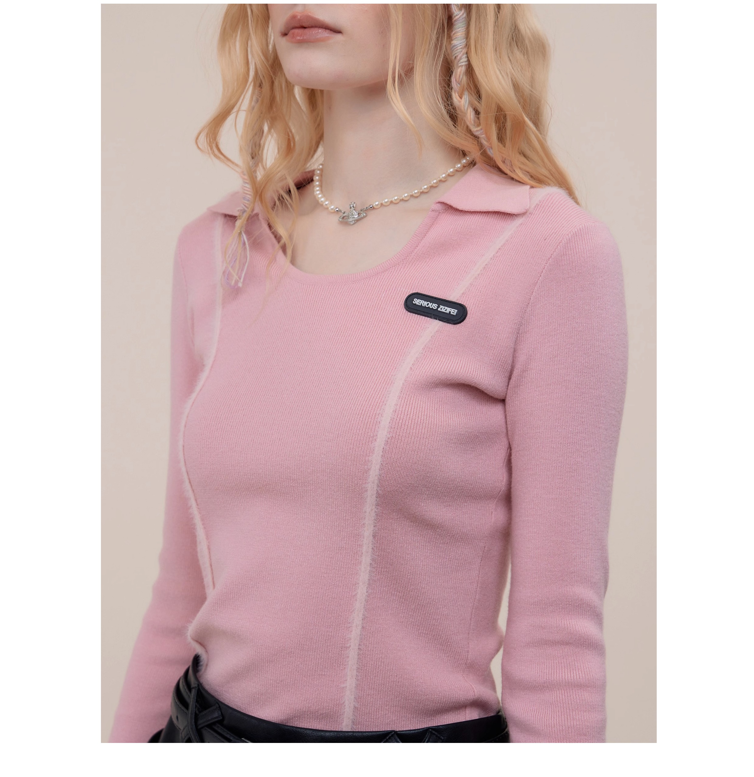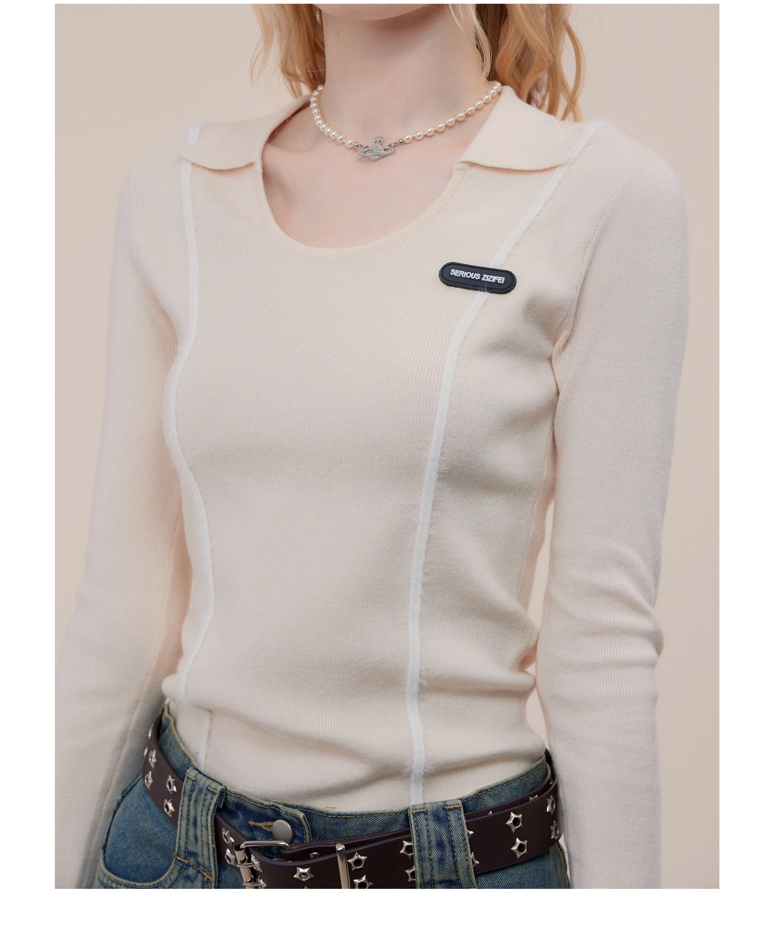 Polo rétro à col en U et manches longues, coupe ajustée pour l'automne/hiver