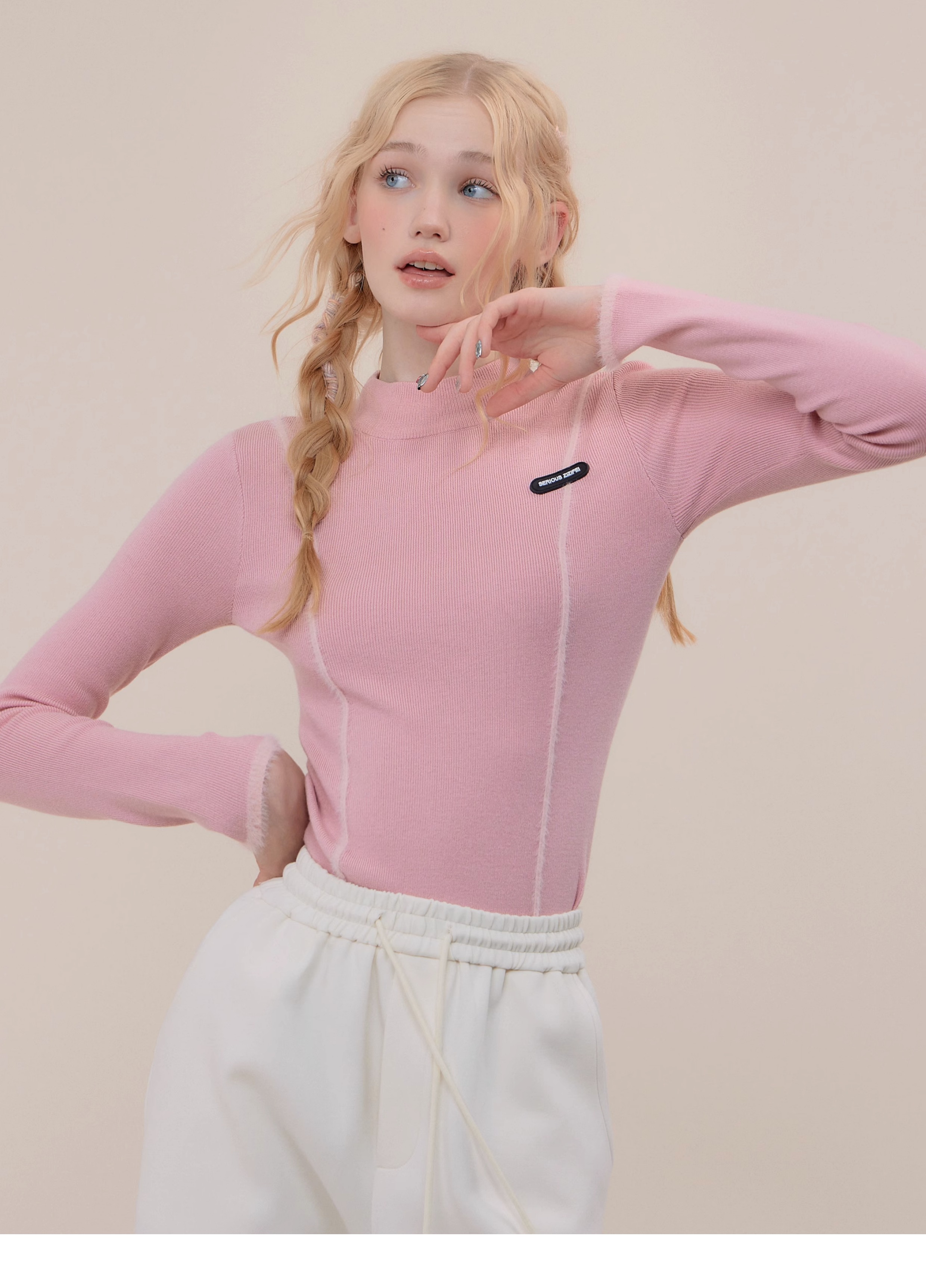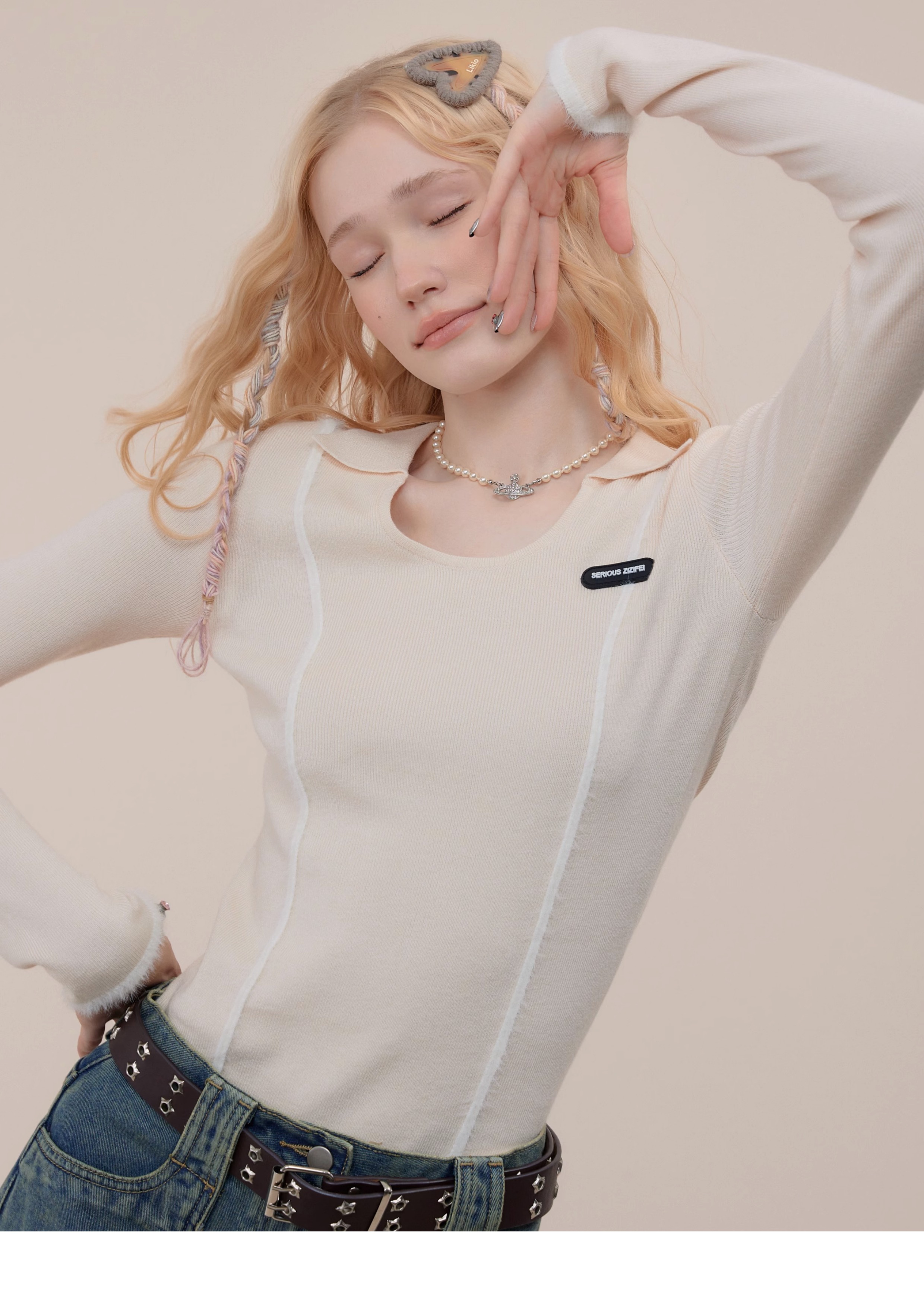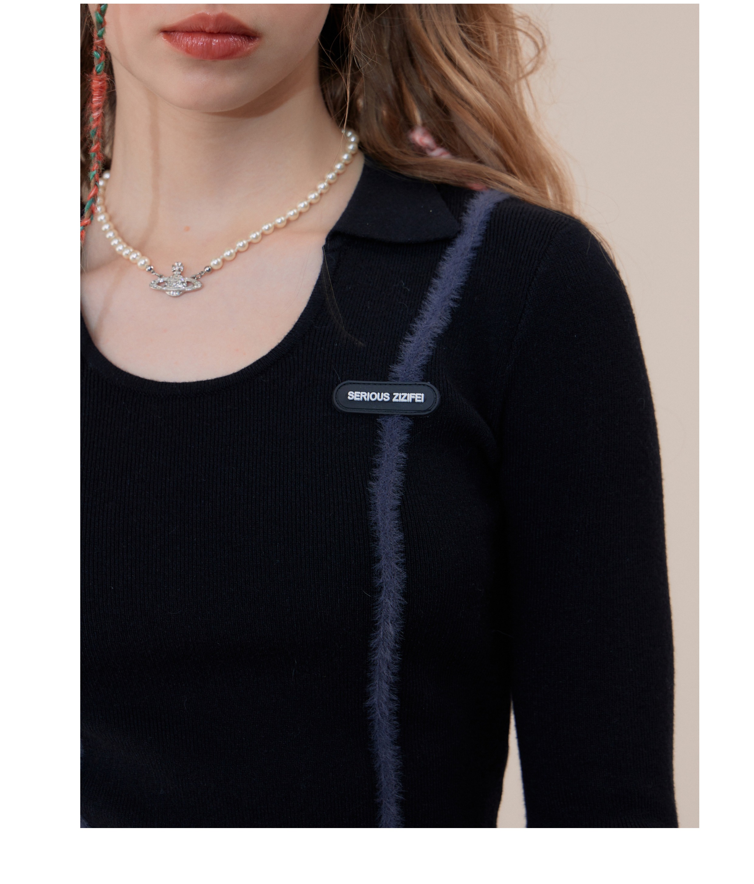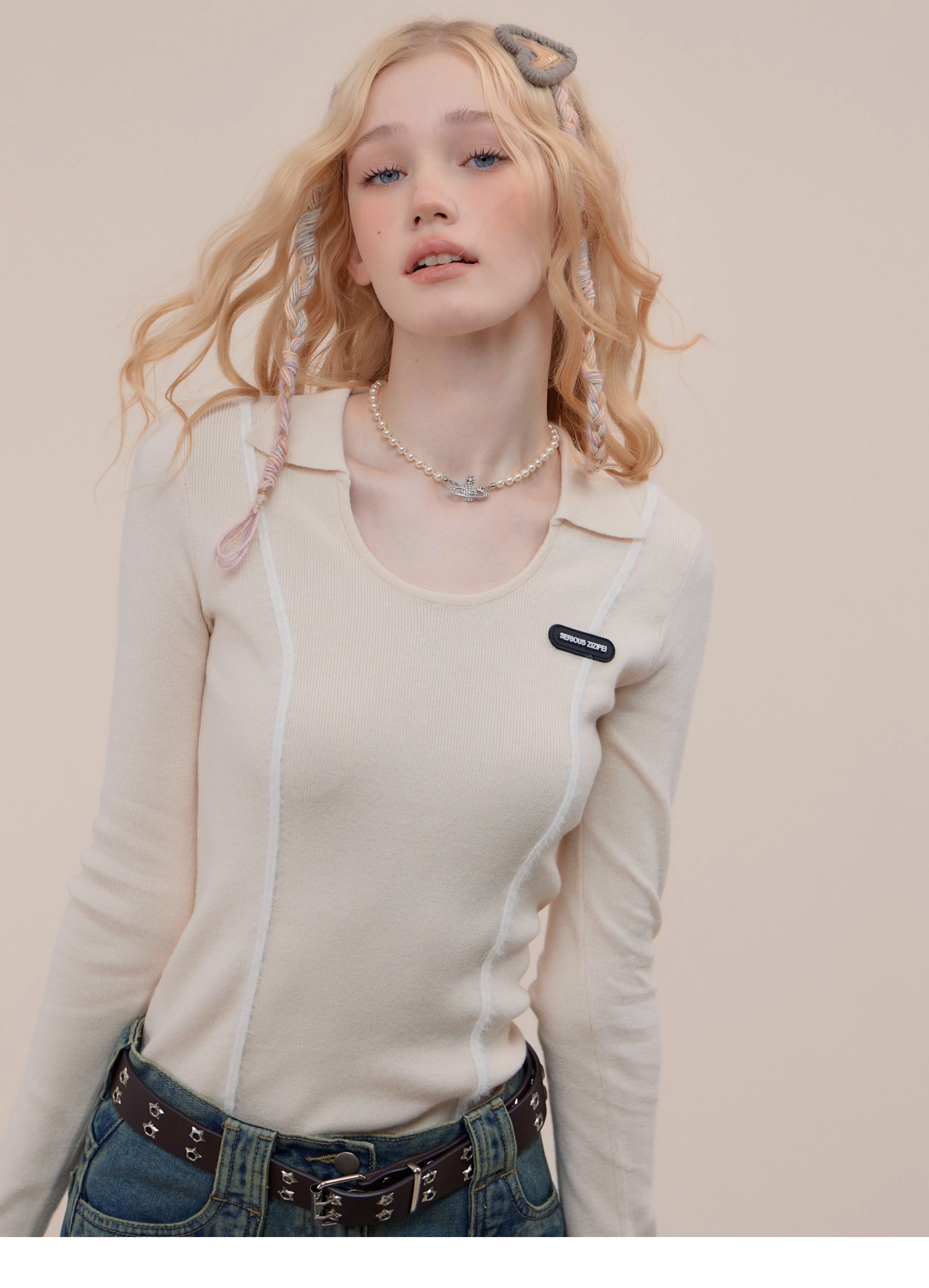 Polo rétro à col en U et manches longues, coupe ajustée pour l'automne/hiver