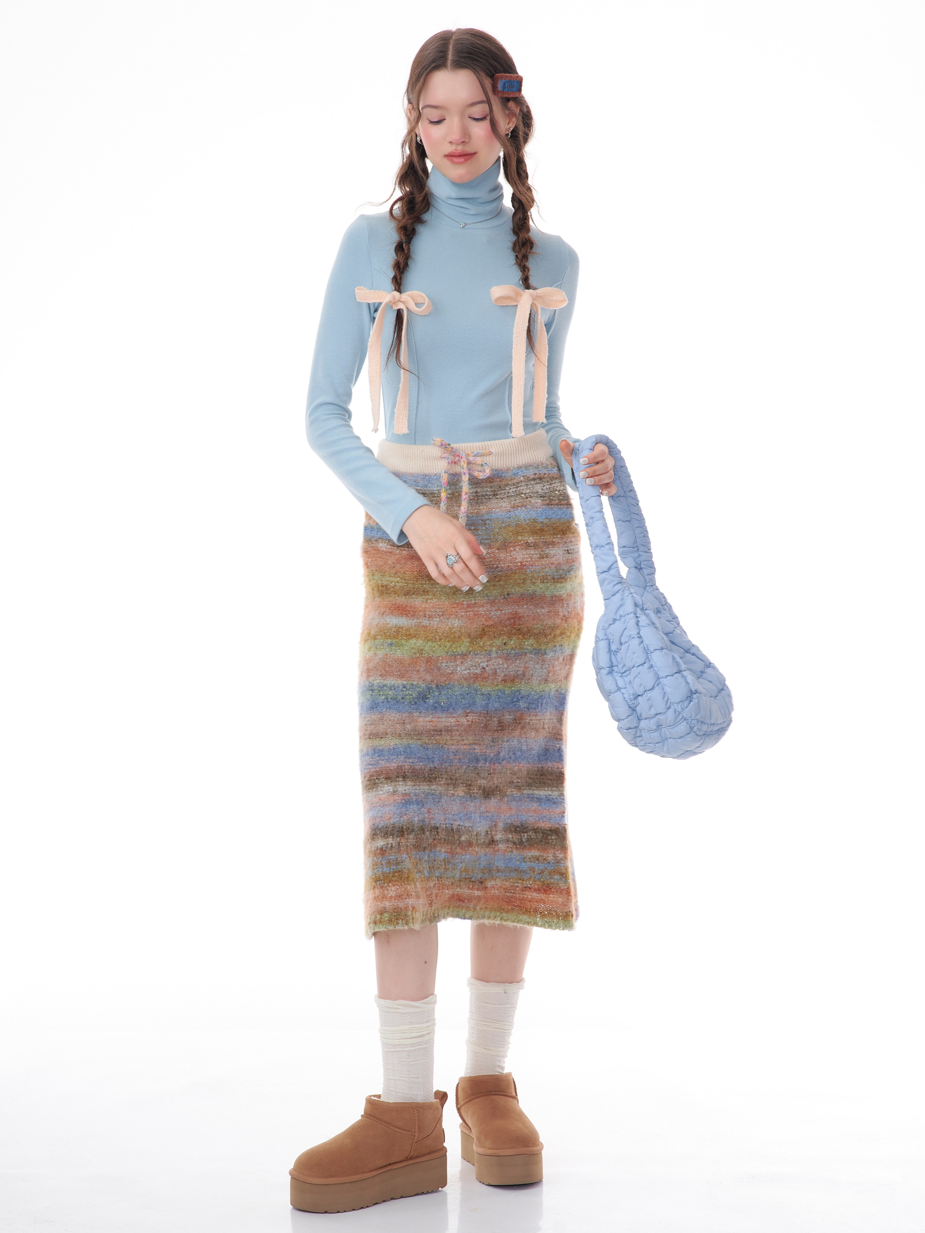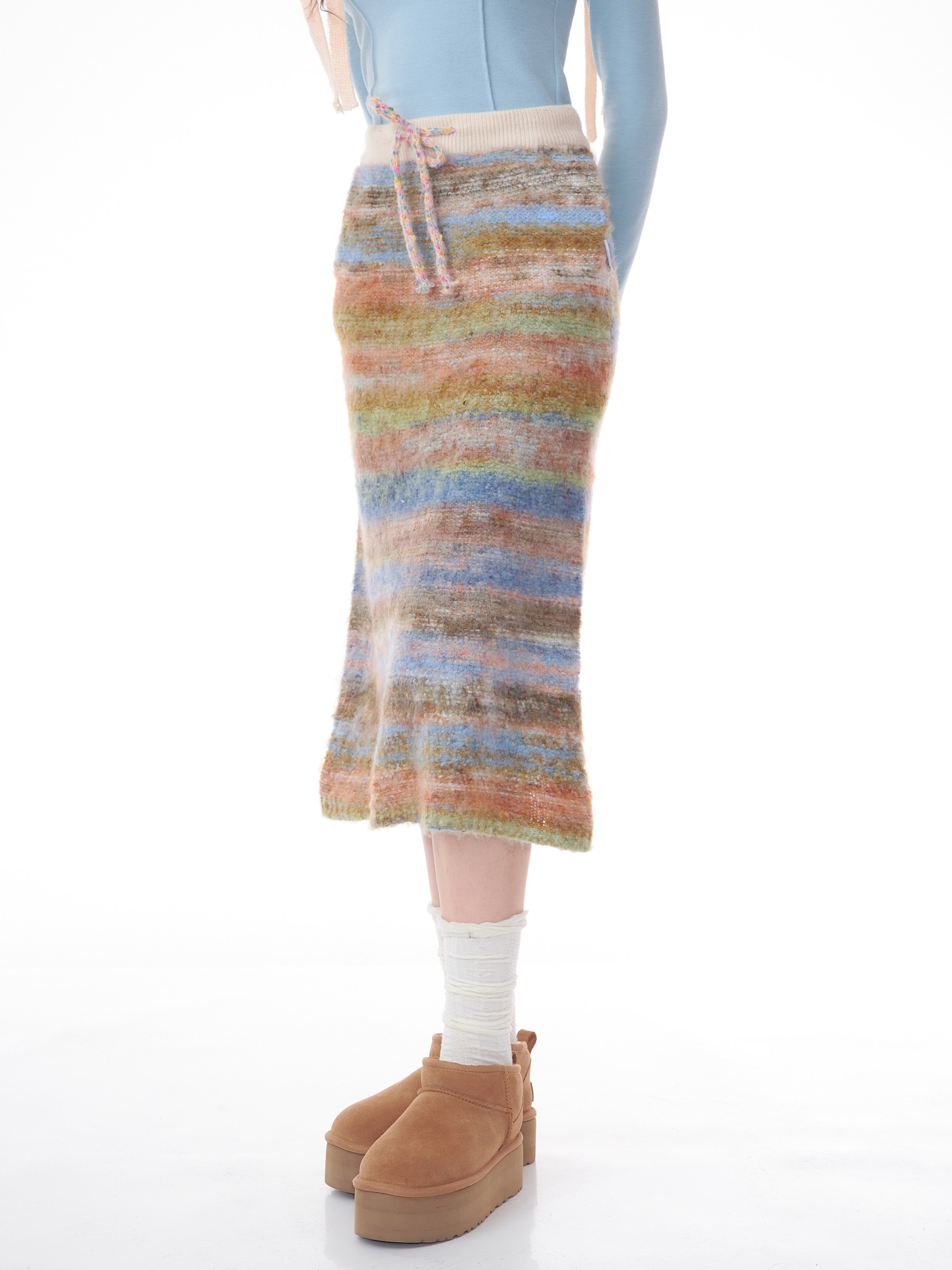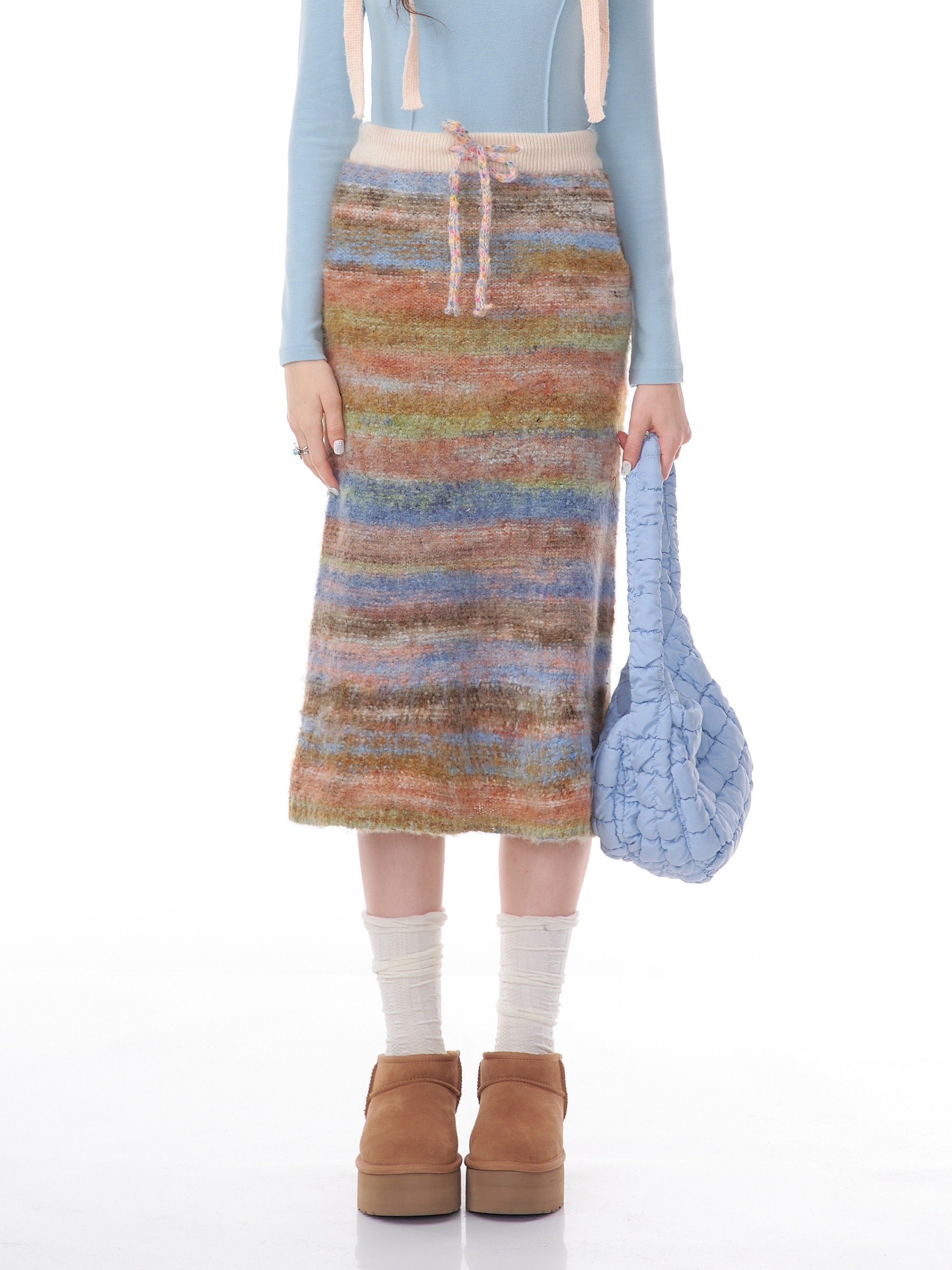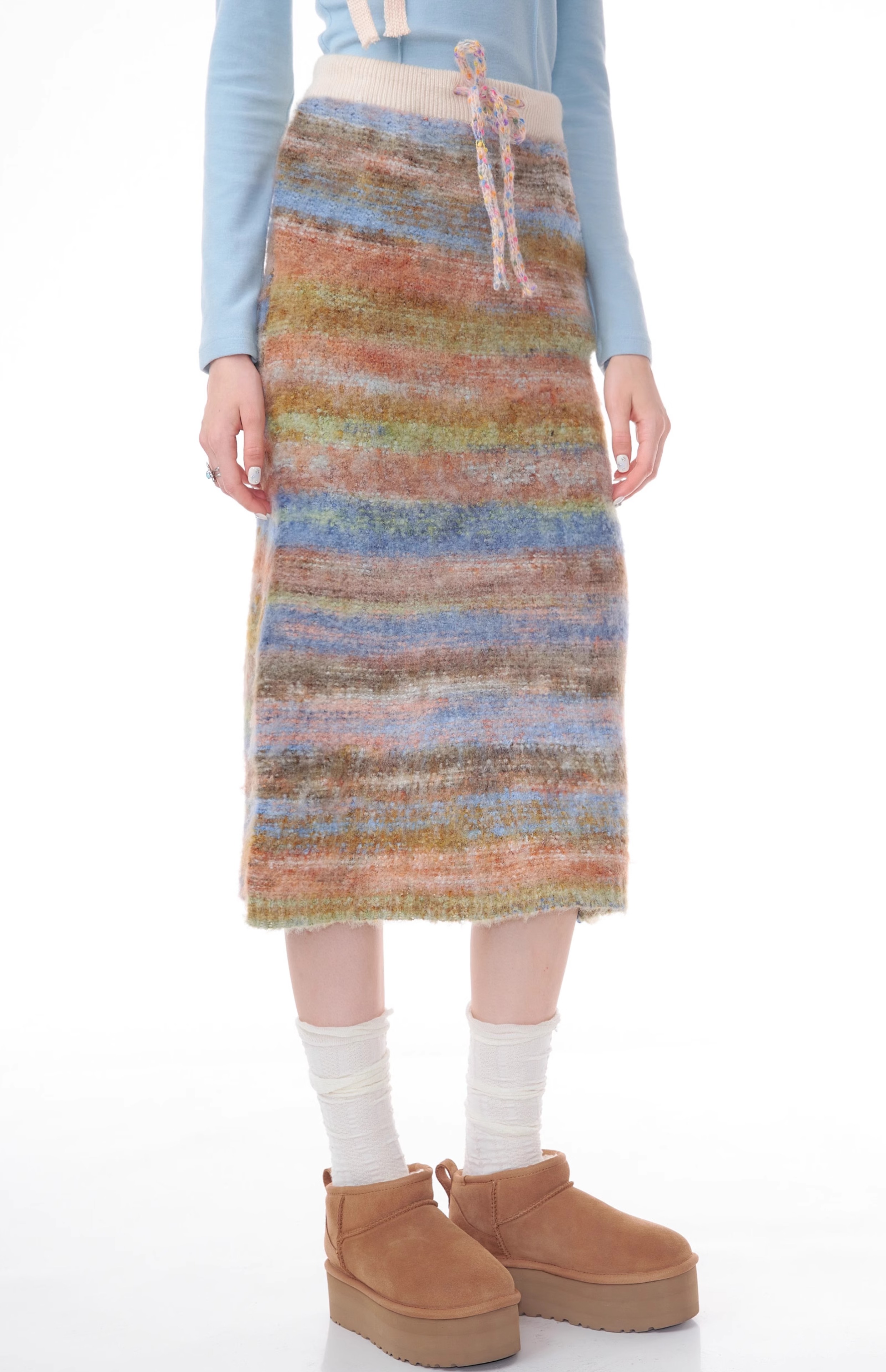 Jupe demi-queue de poisson tricotée à rayures rétro | Coupe ajustée, taille haute, pour l'automne/hiver