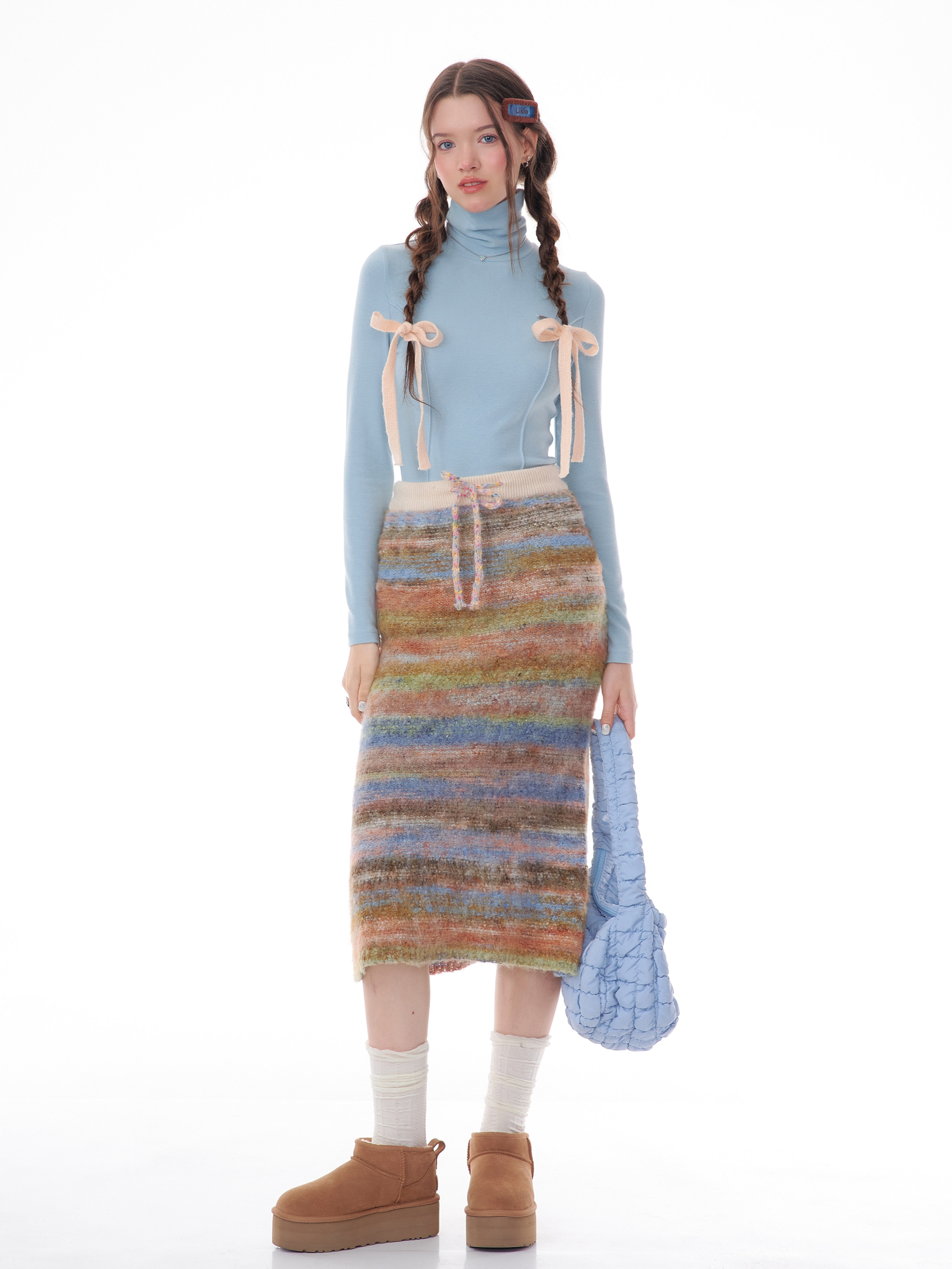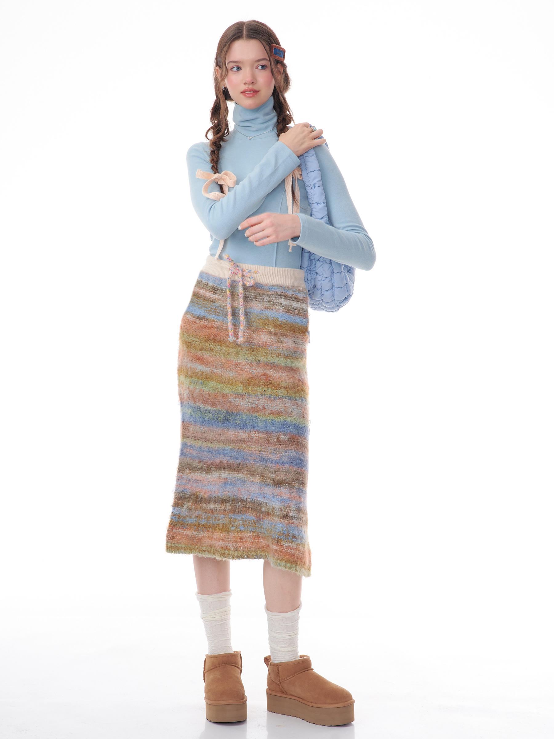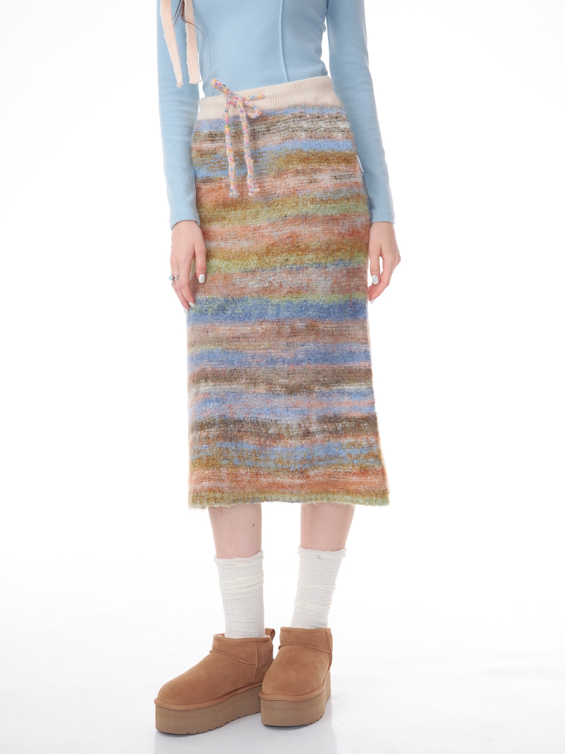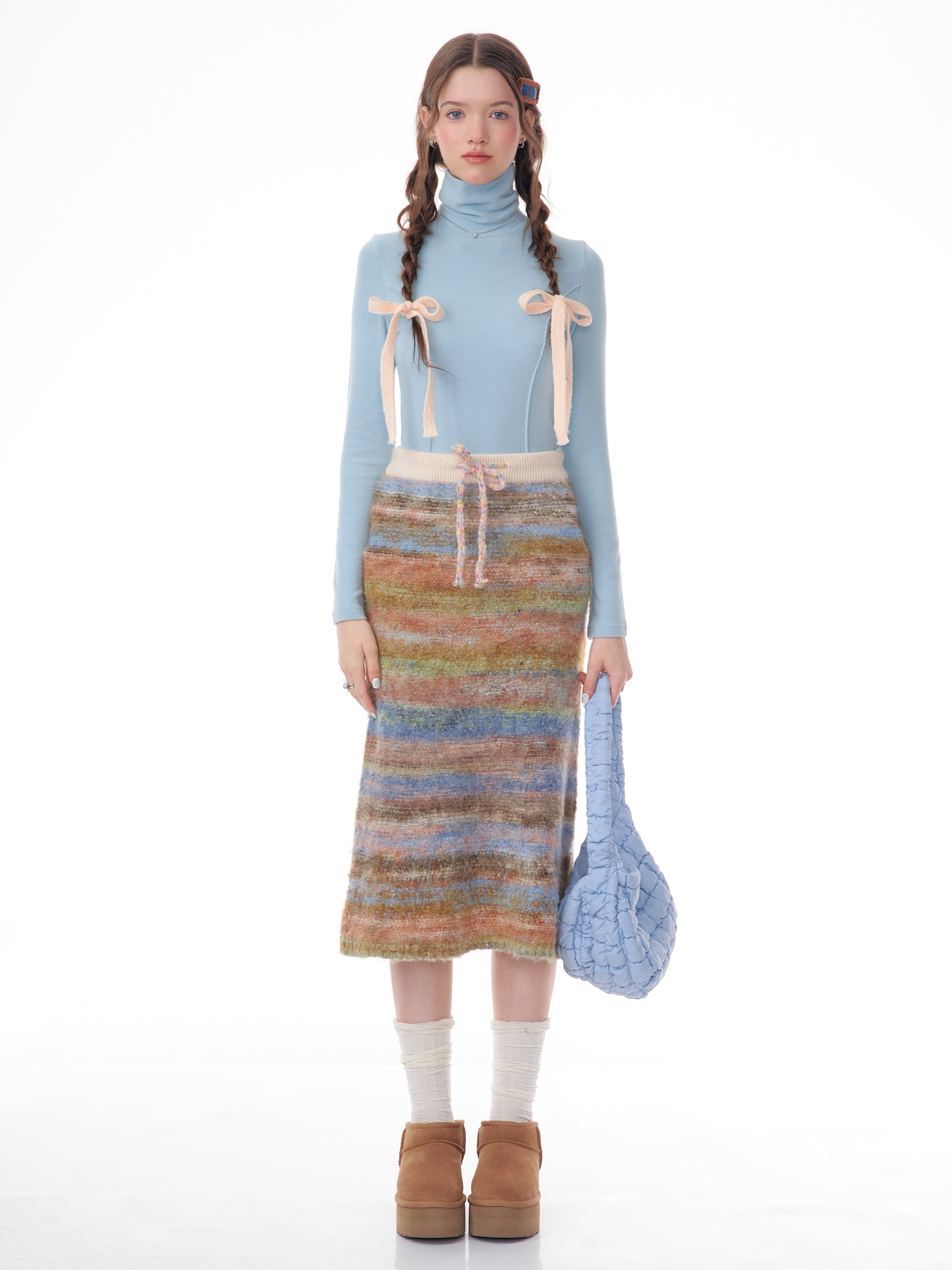Jupe demi-queue de poisson tricotée à rayures rétro | Coupe ajustée, taille haute, pour l'automne/hiver