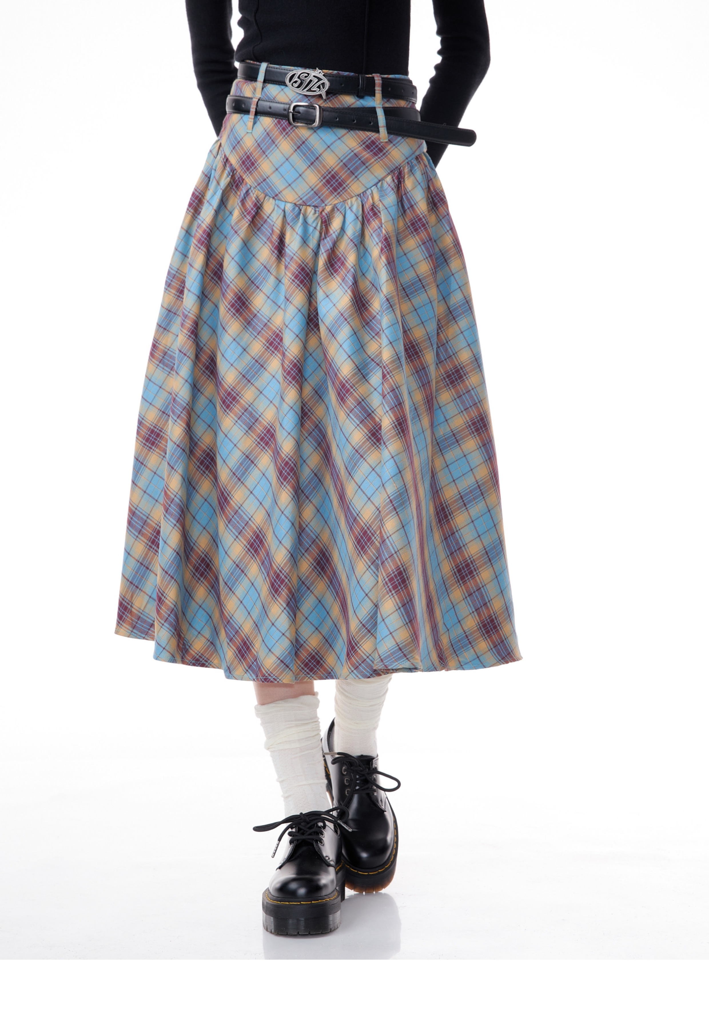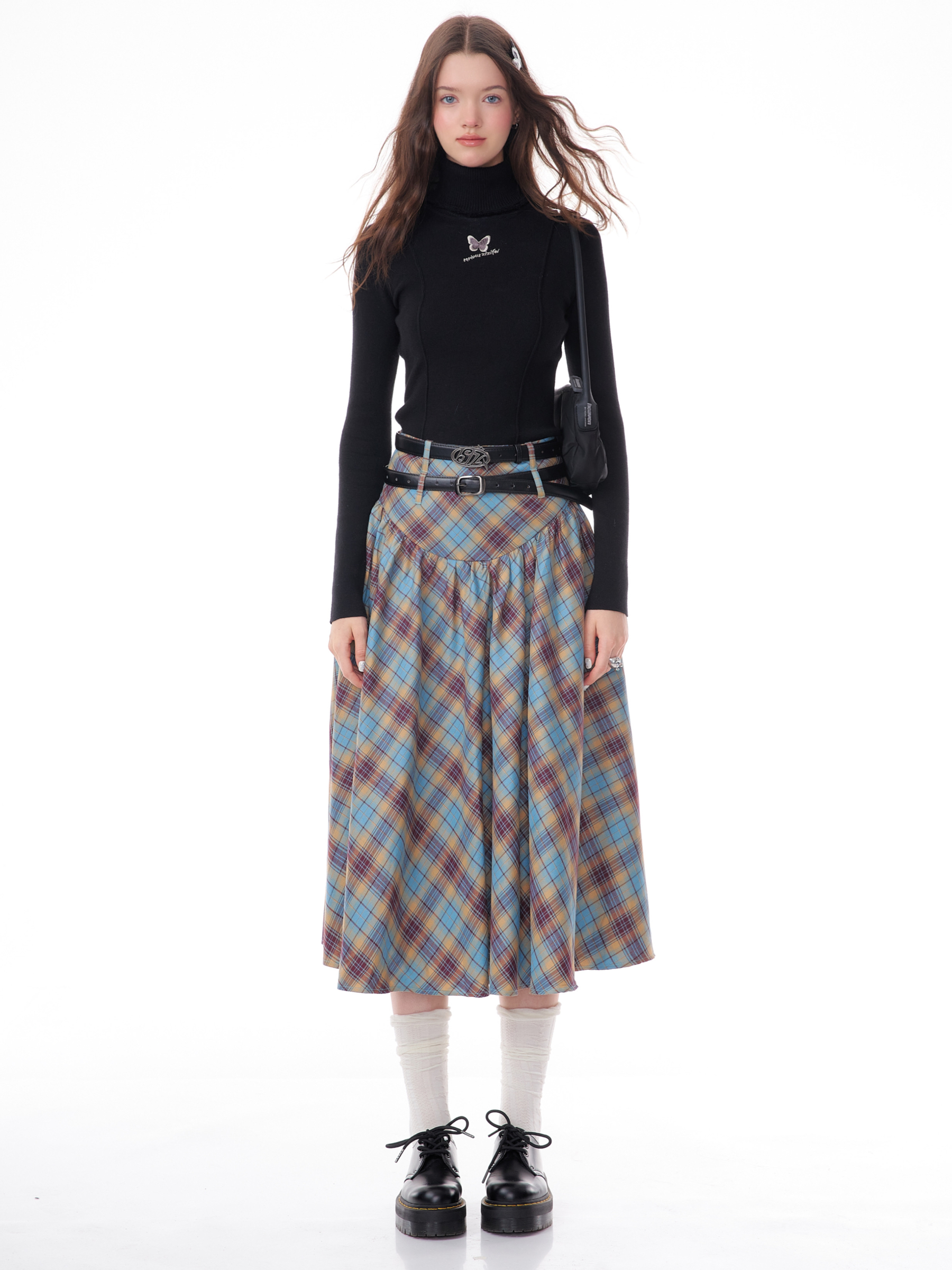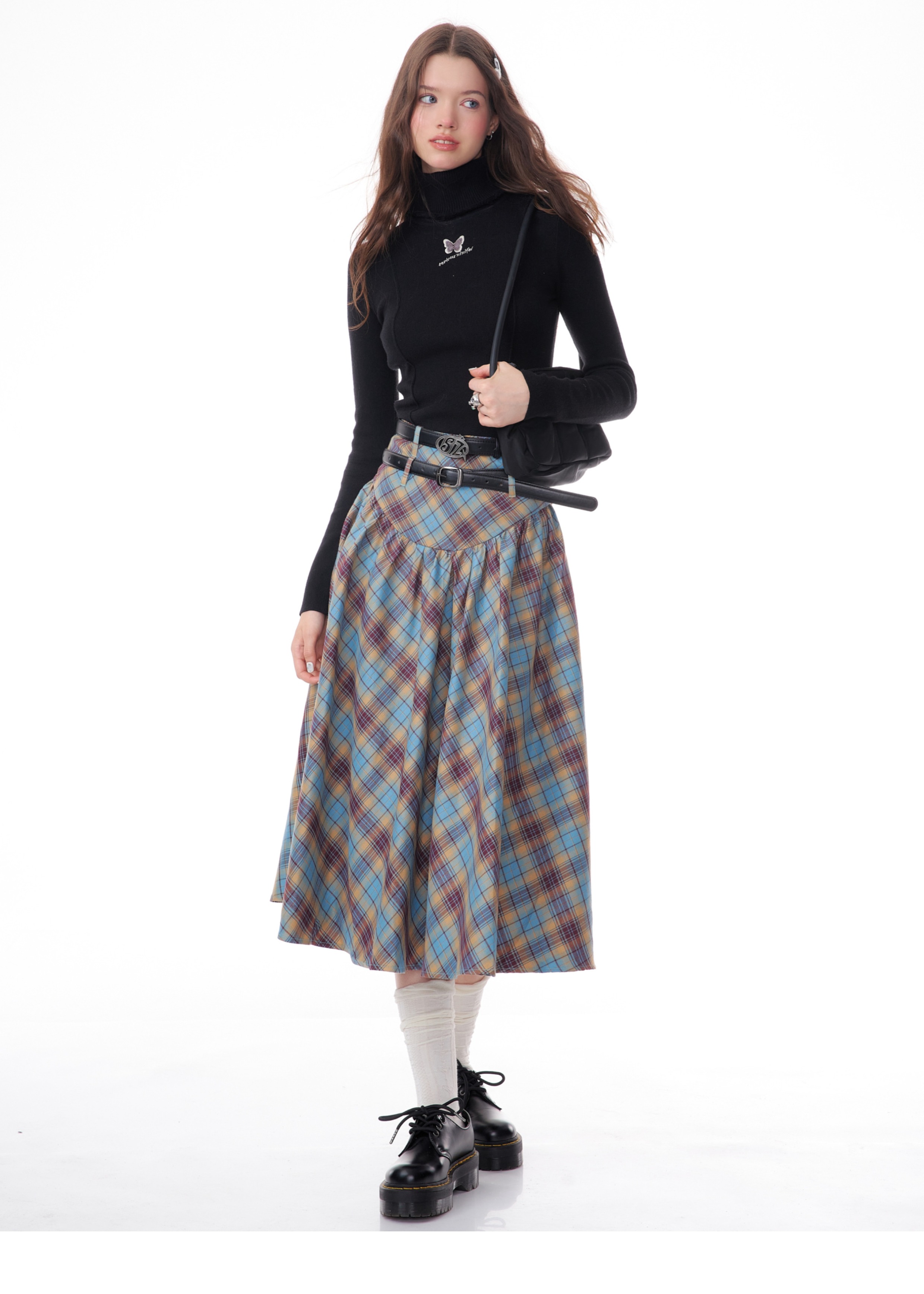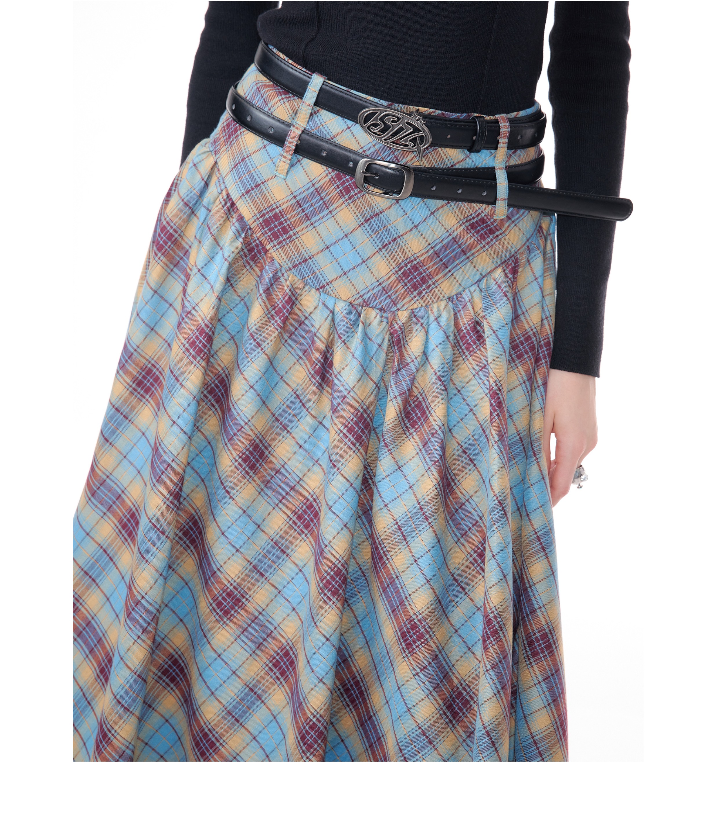 Jupe plissée à carreaux bleus | Taille haute, coupe ajustée, Design rétro pour l'automne/hiver