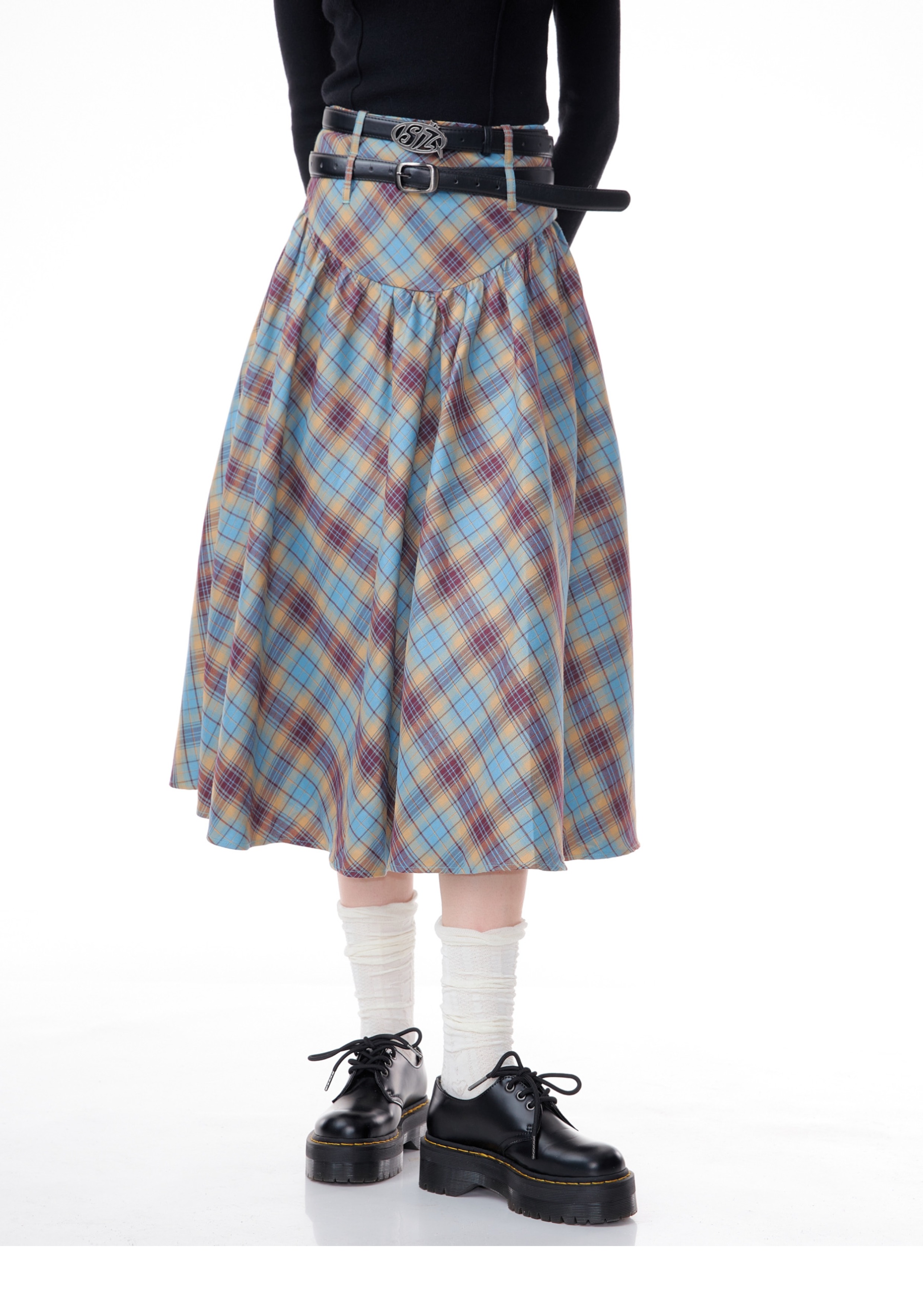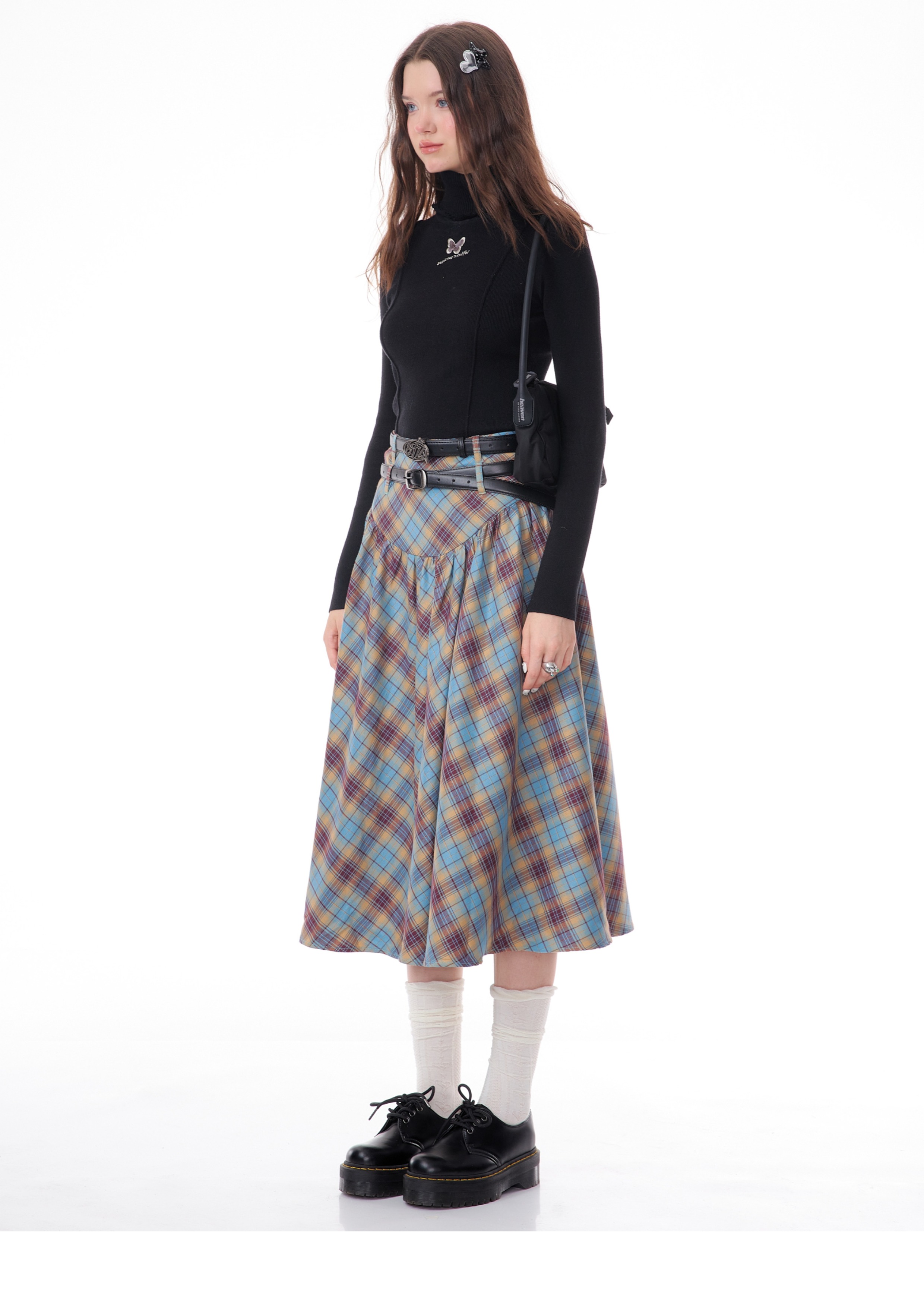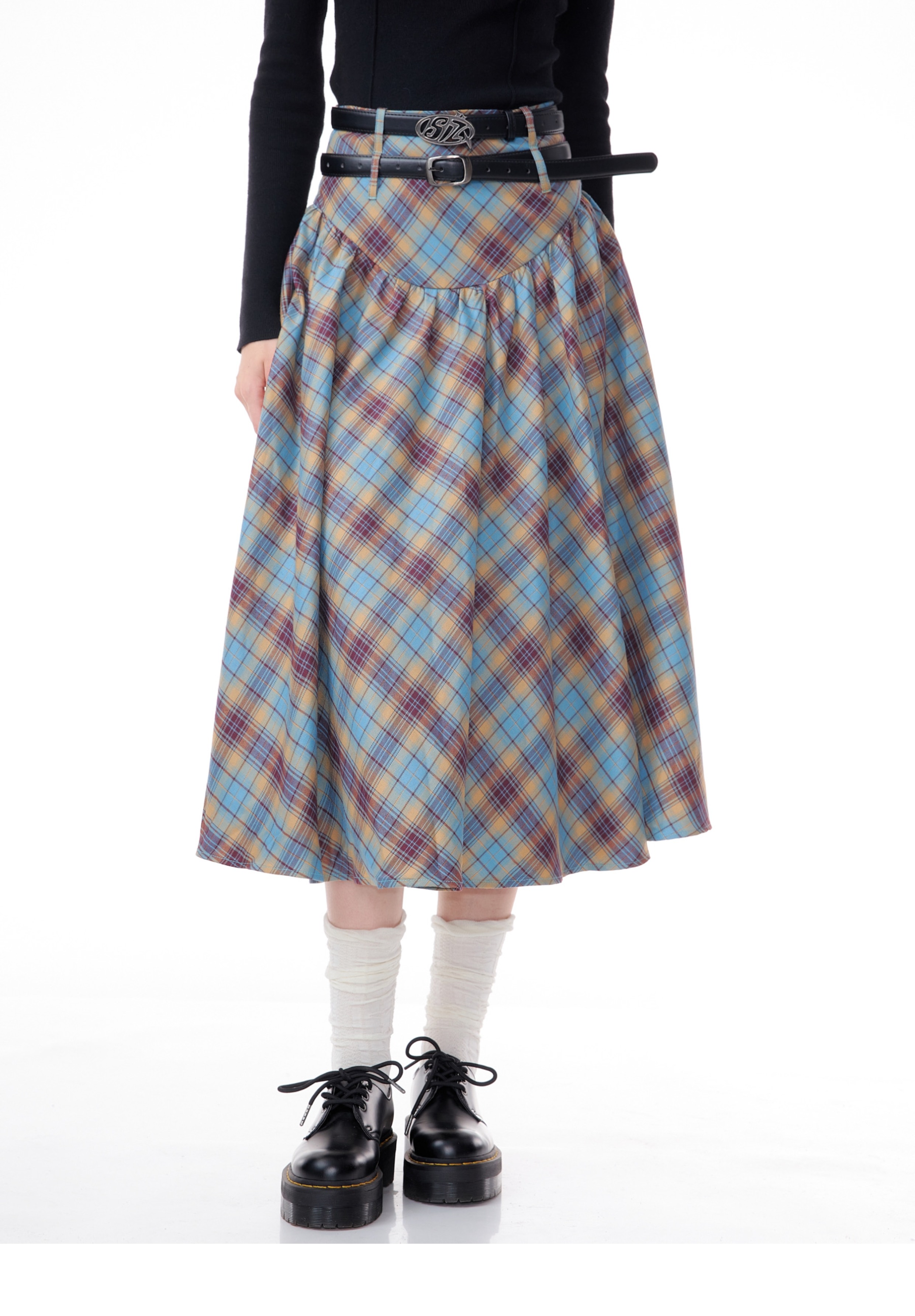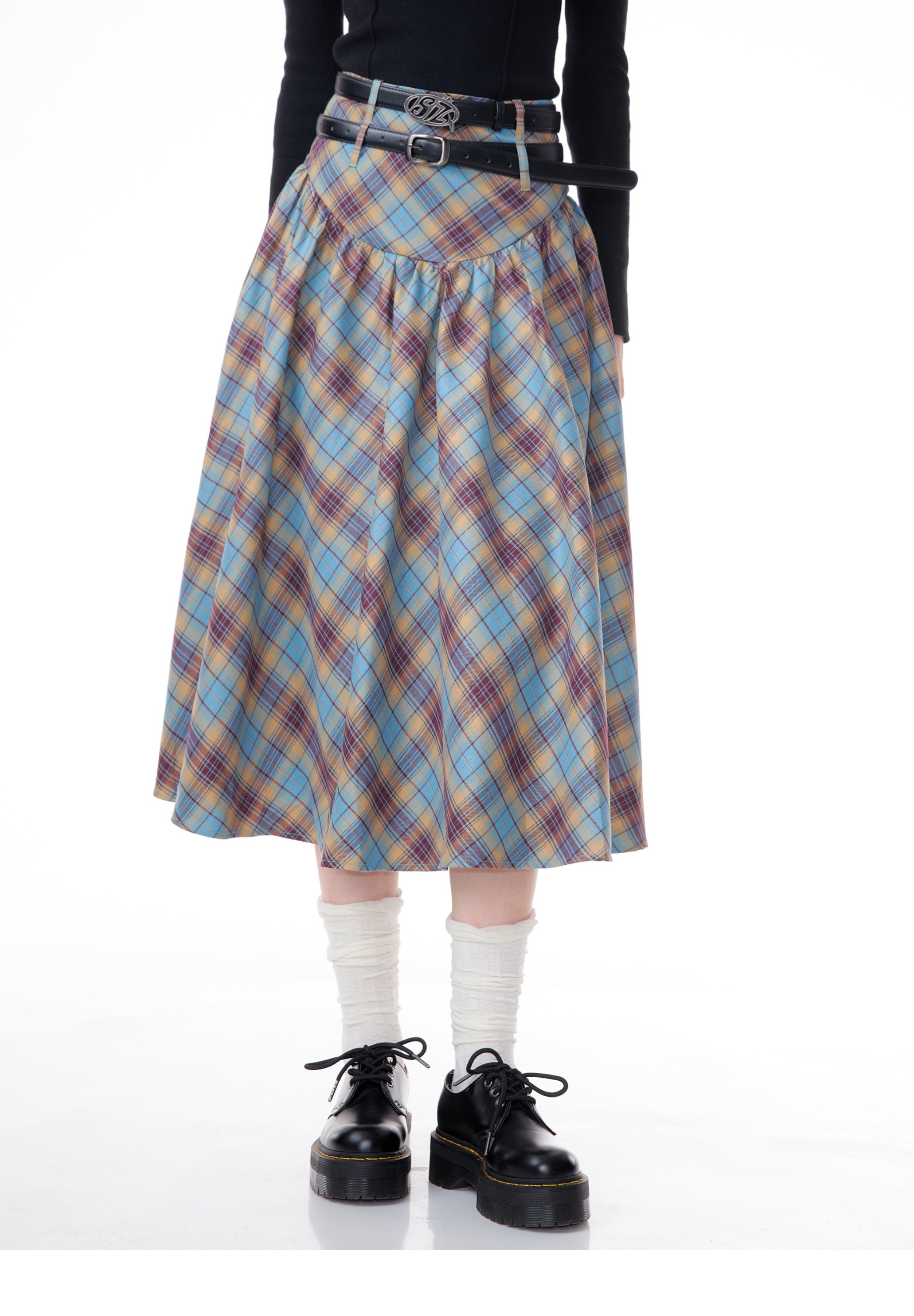 Jupe plissée à carreaux bleus | Taille haute, coupe ajustée, Design rétro pour l'automne/hiver