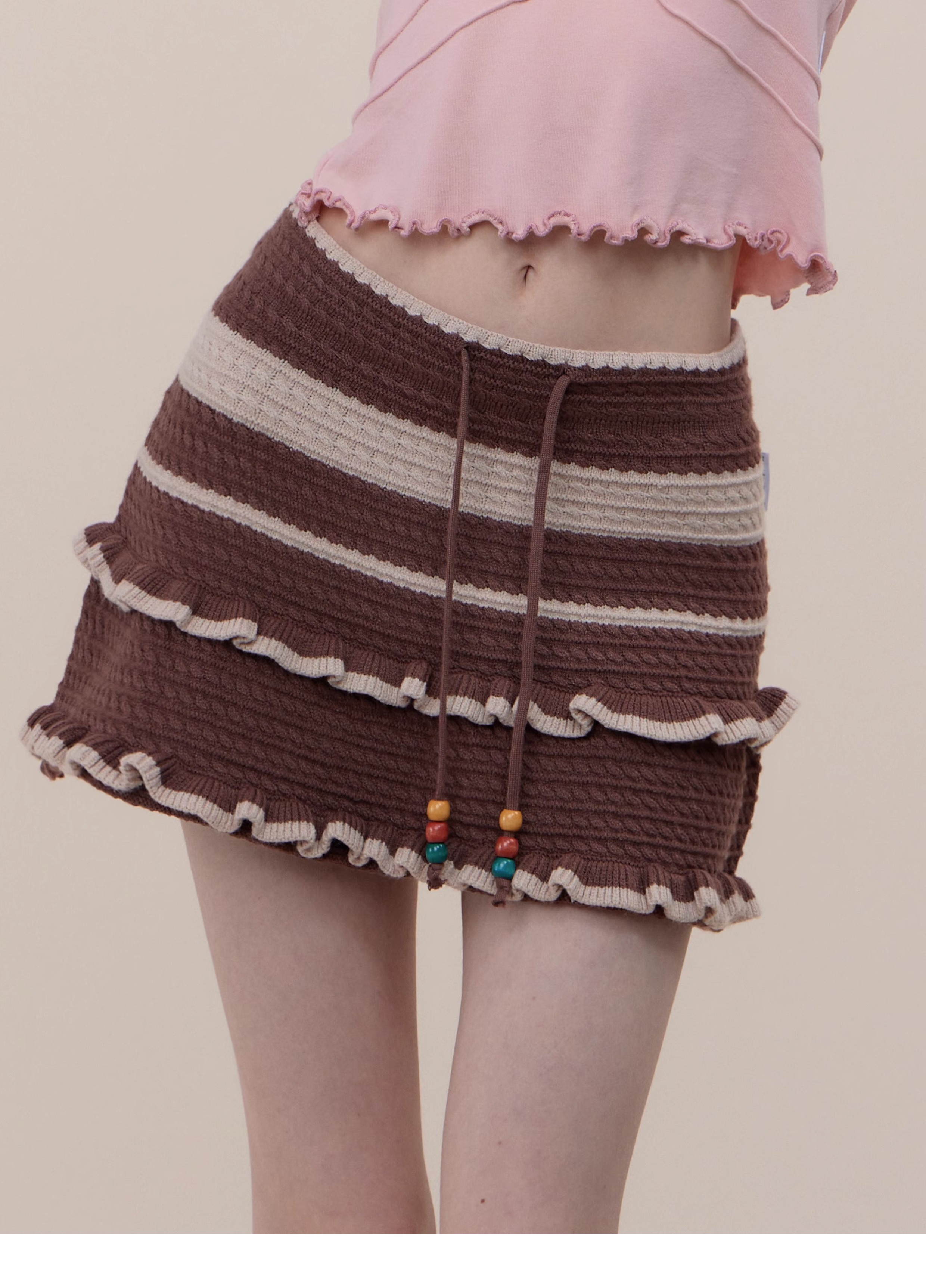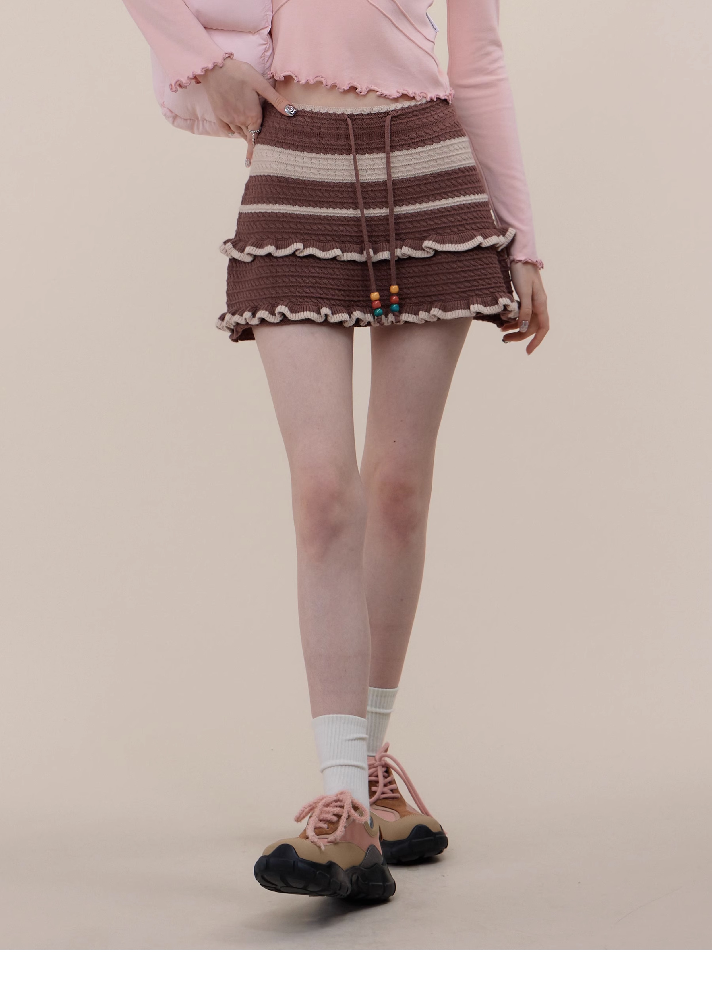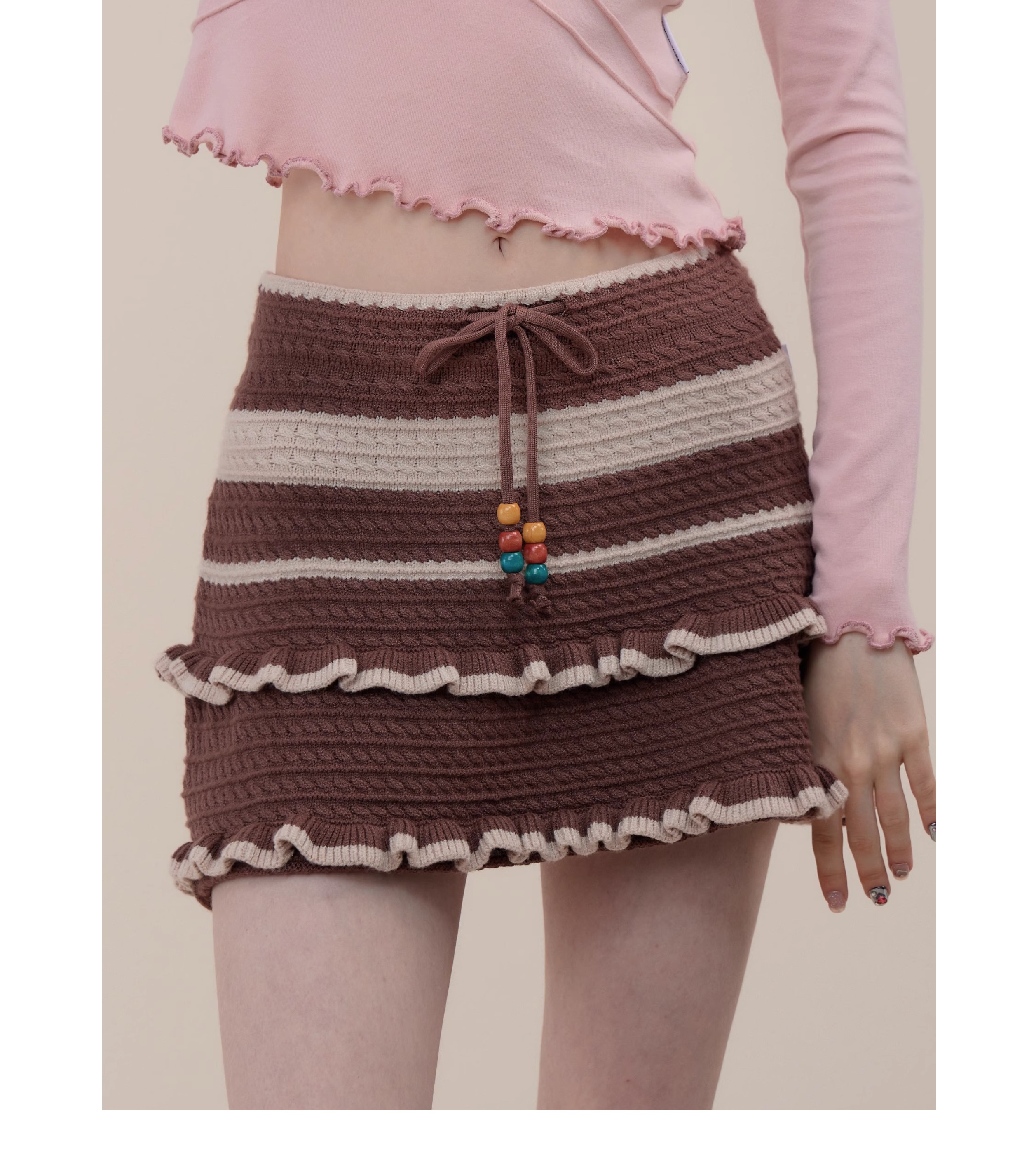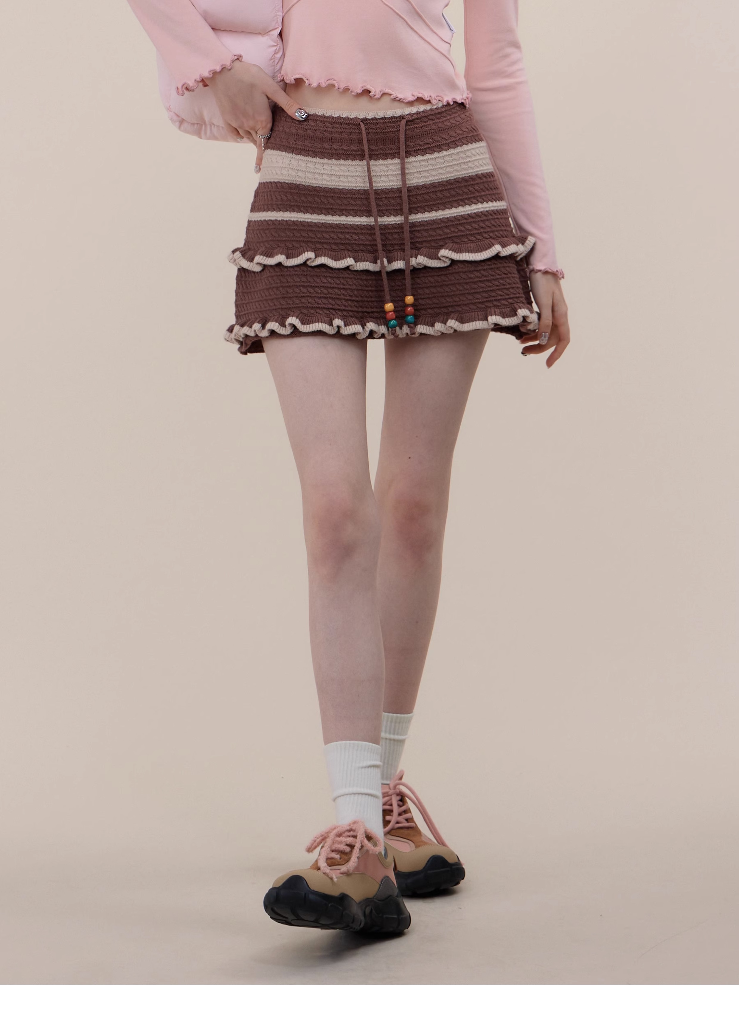 Jupe en laine trapèze à rayures marron | Coupe ajustée, taille haute, conception en tricot pour l'automne/hiver