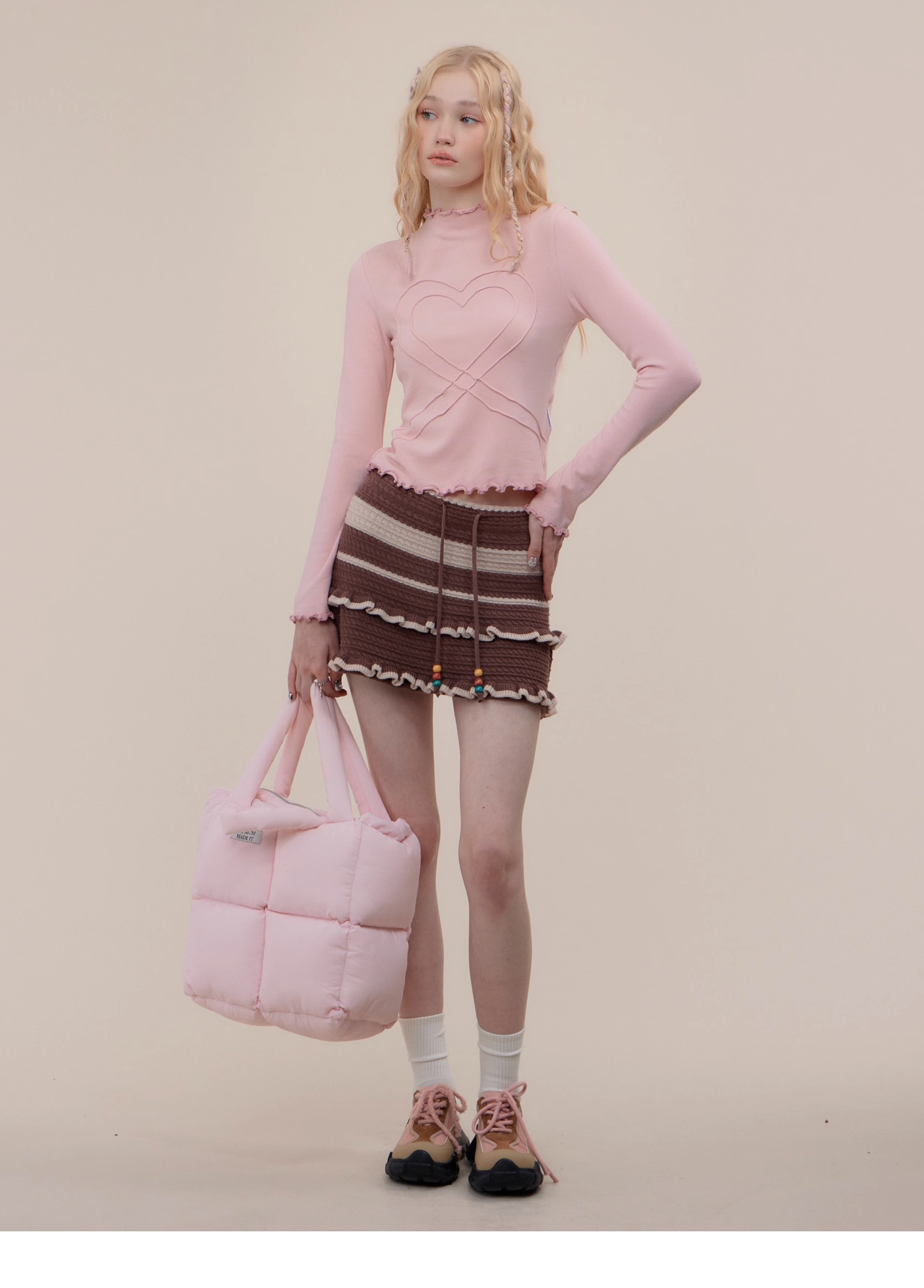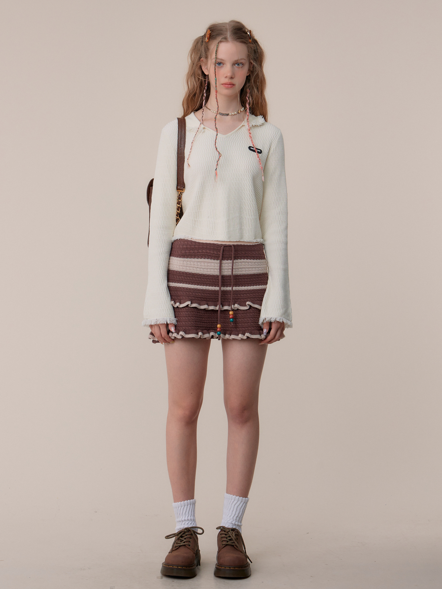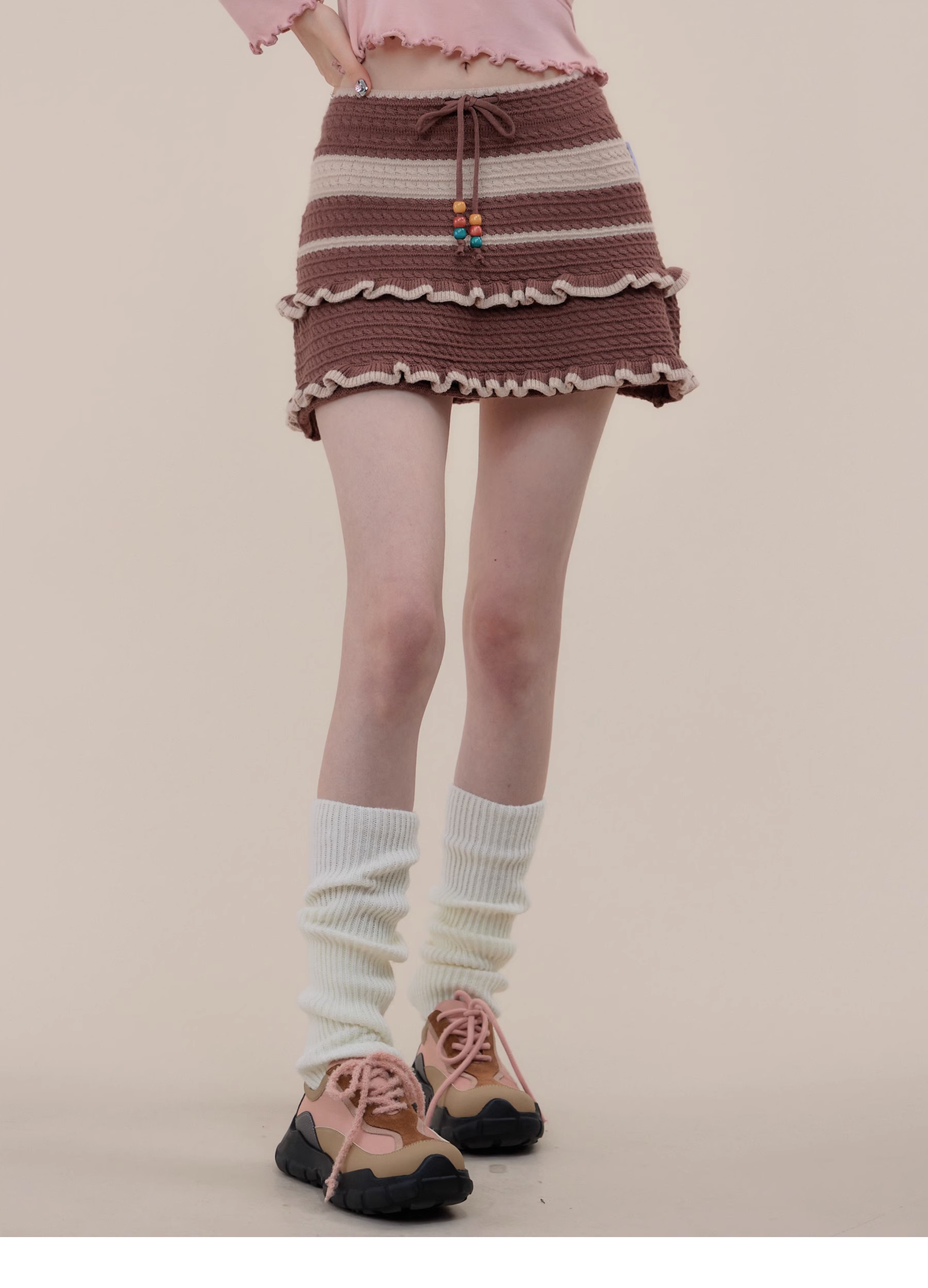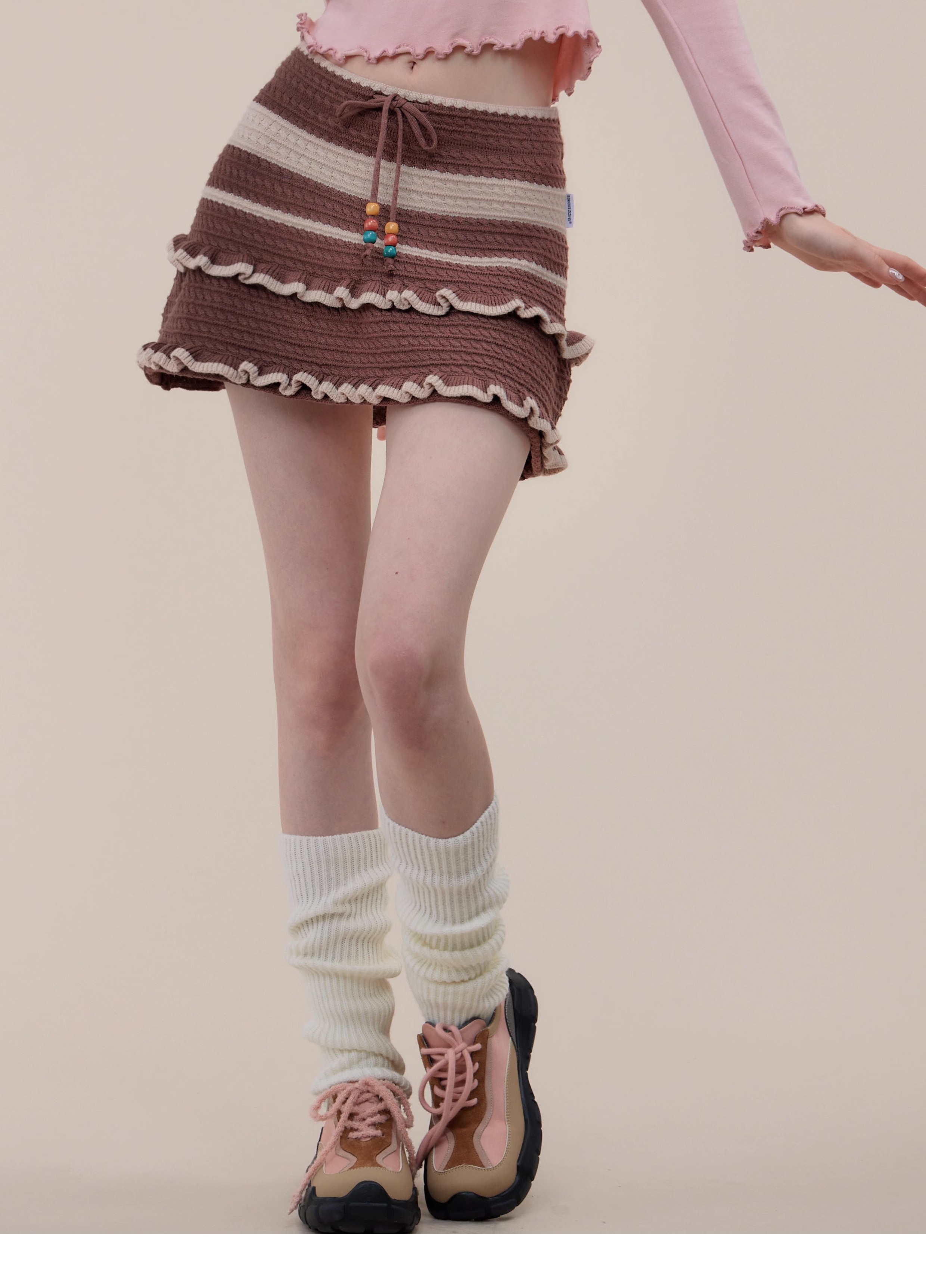Jupe en laine trapèze à rayures marron | Coupe ajustée, taille haute, conception en tricot pour l'automne/hiver