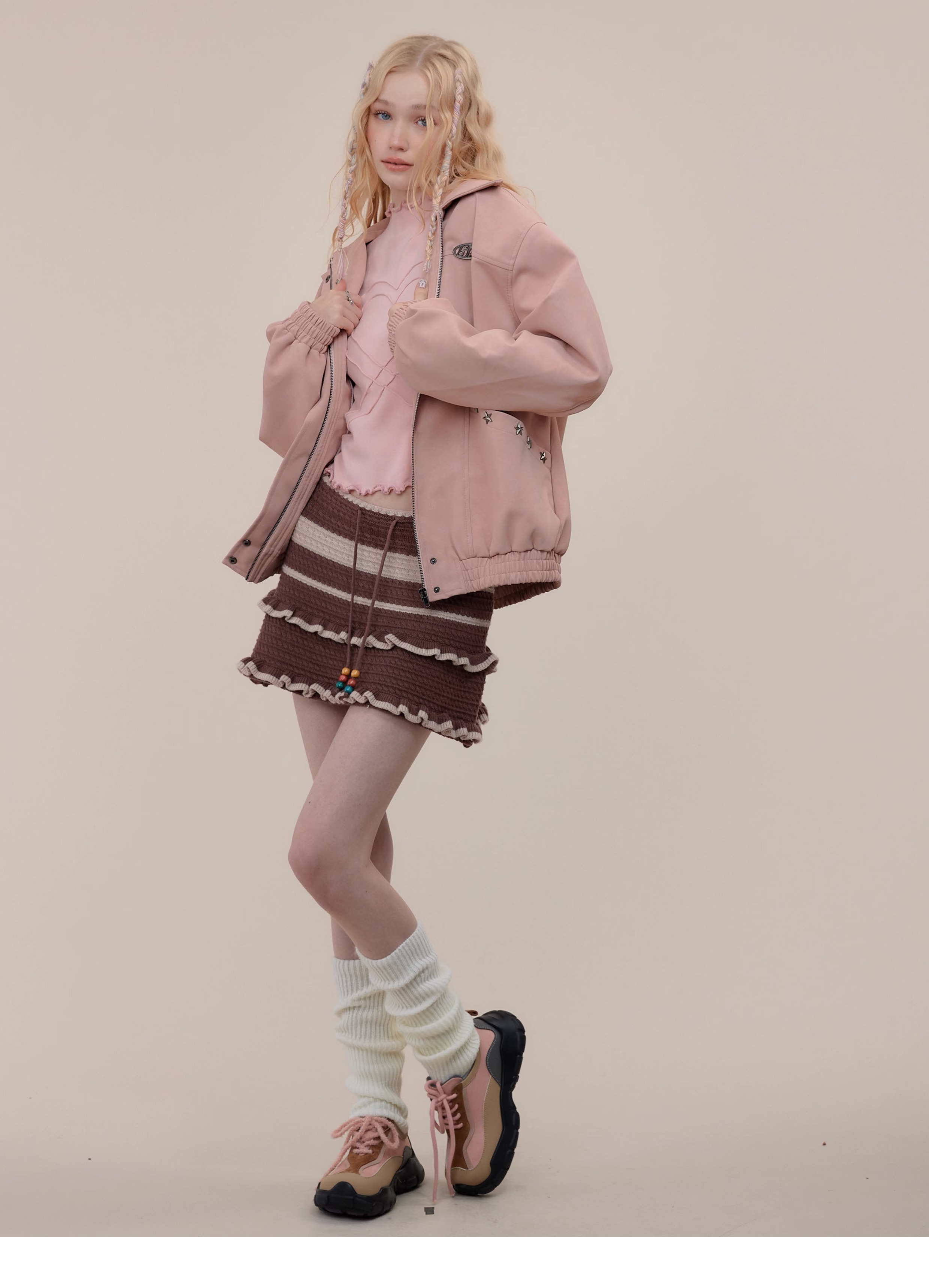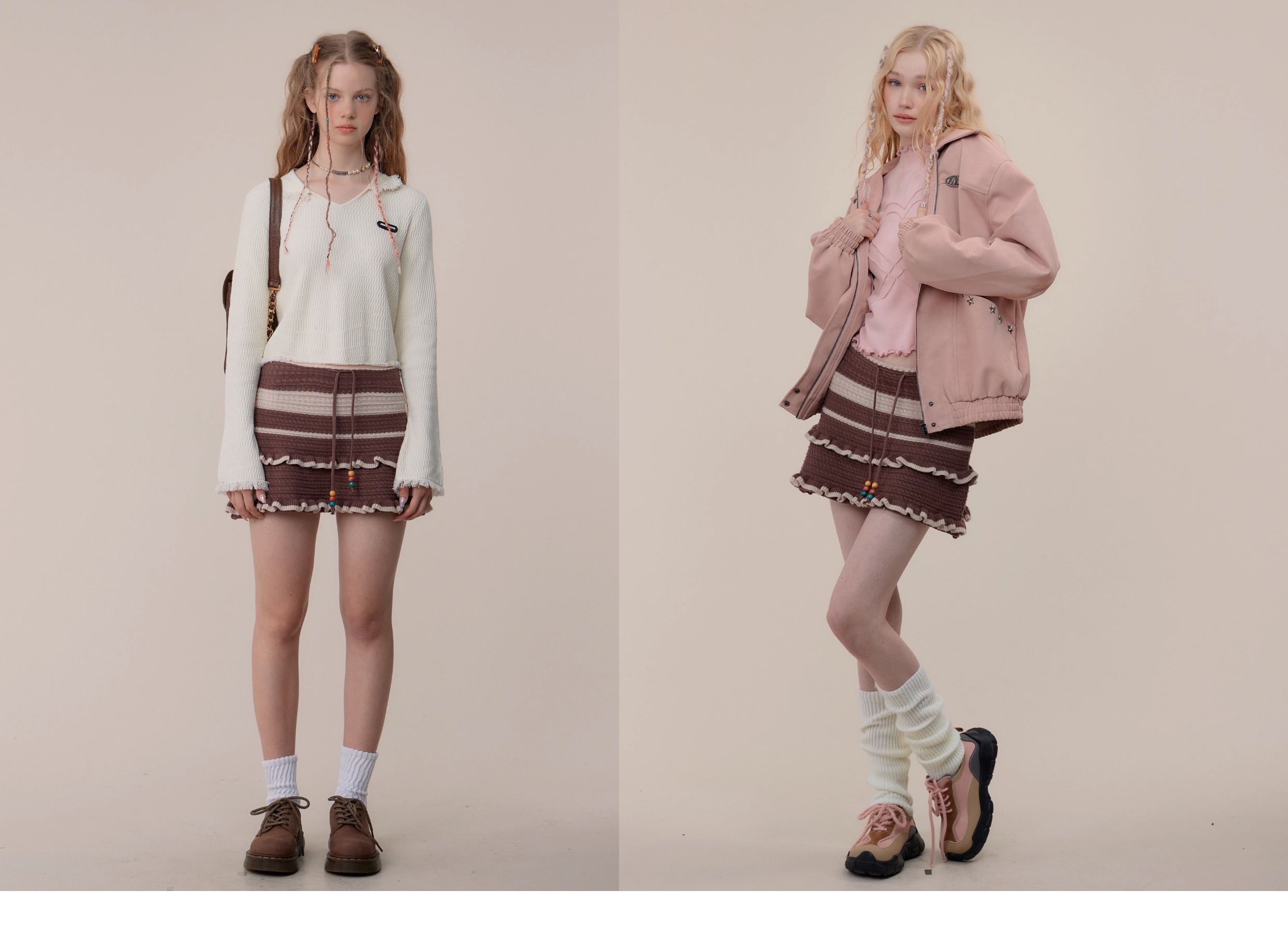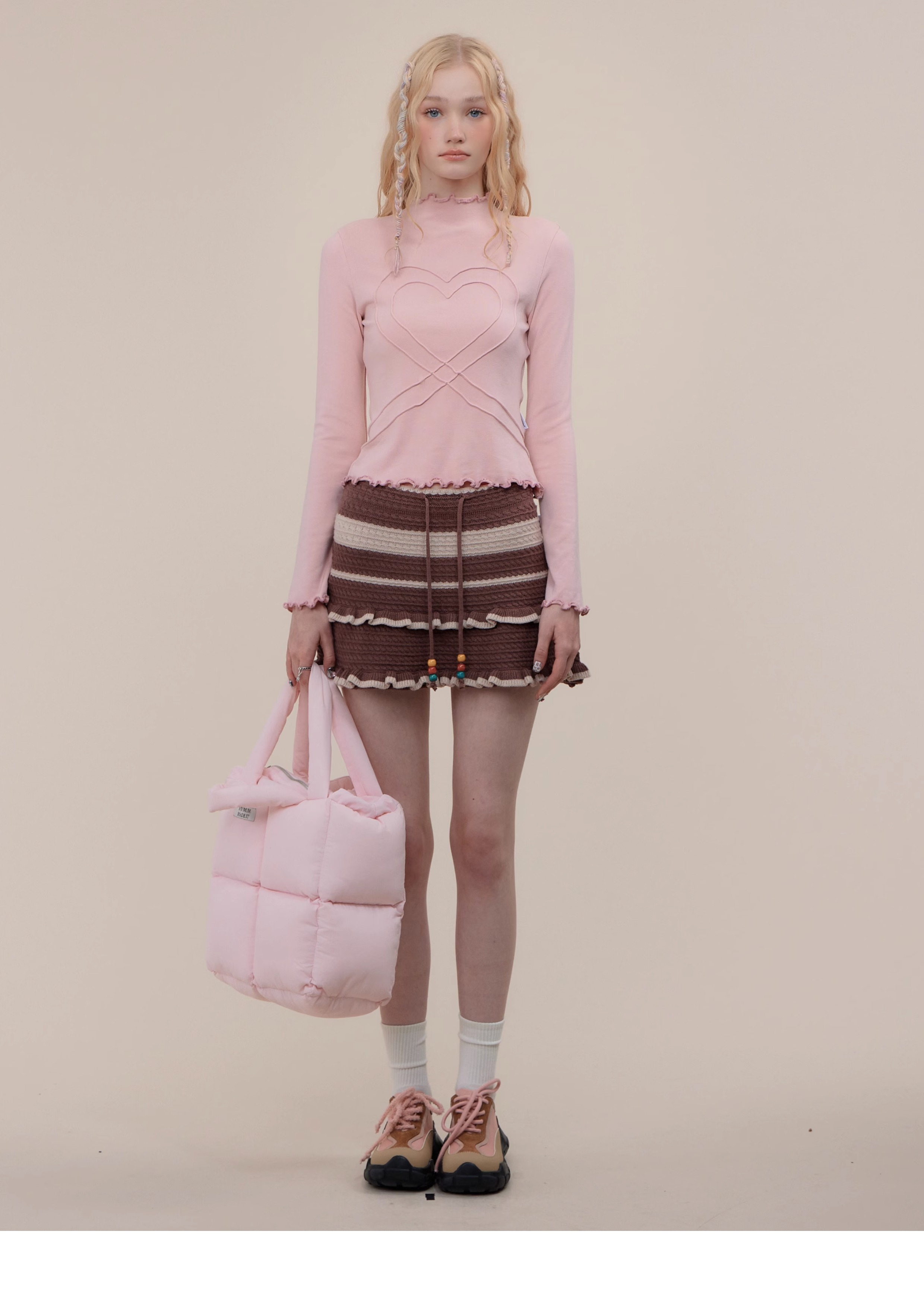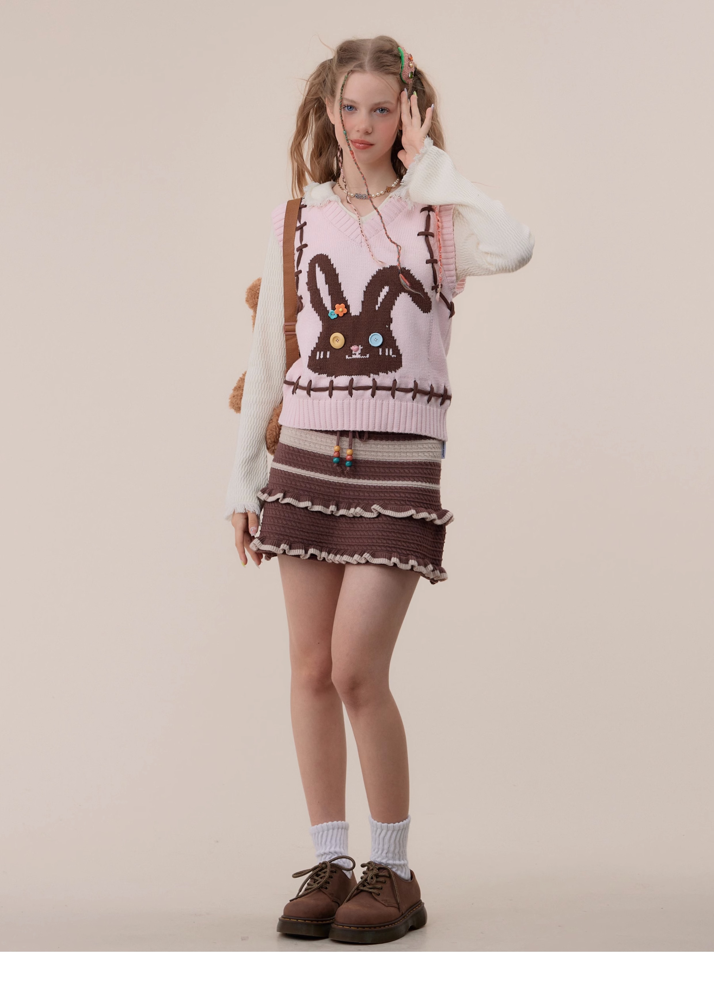 Jupe en laine trapèze à rayures marron | Coupe ajustée, taille haute, conception en tricot pour l'automne/hiver