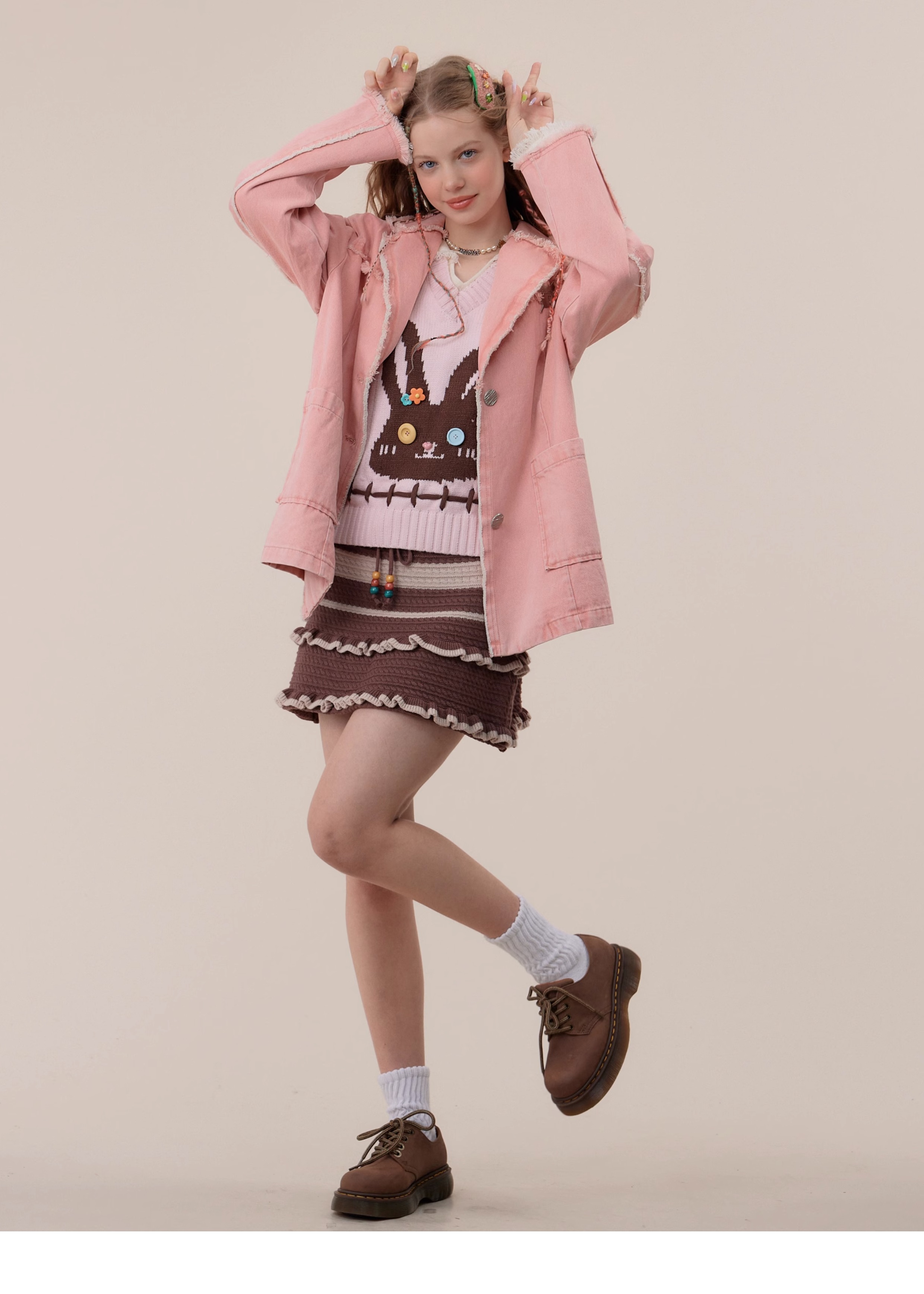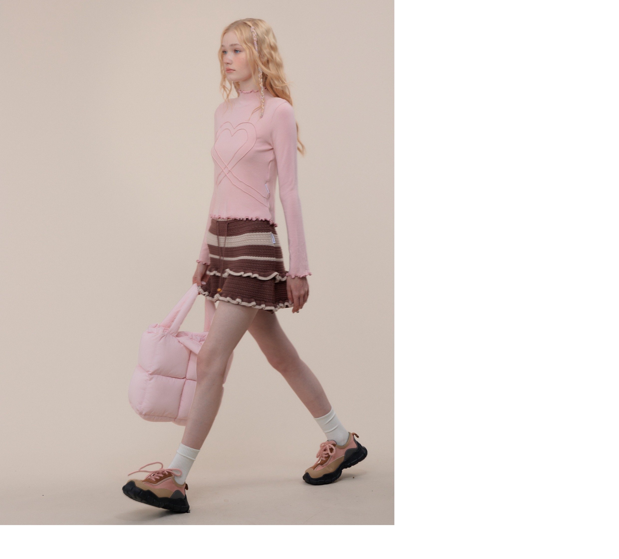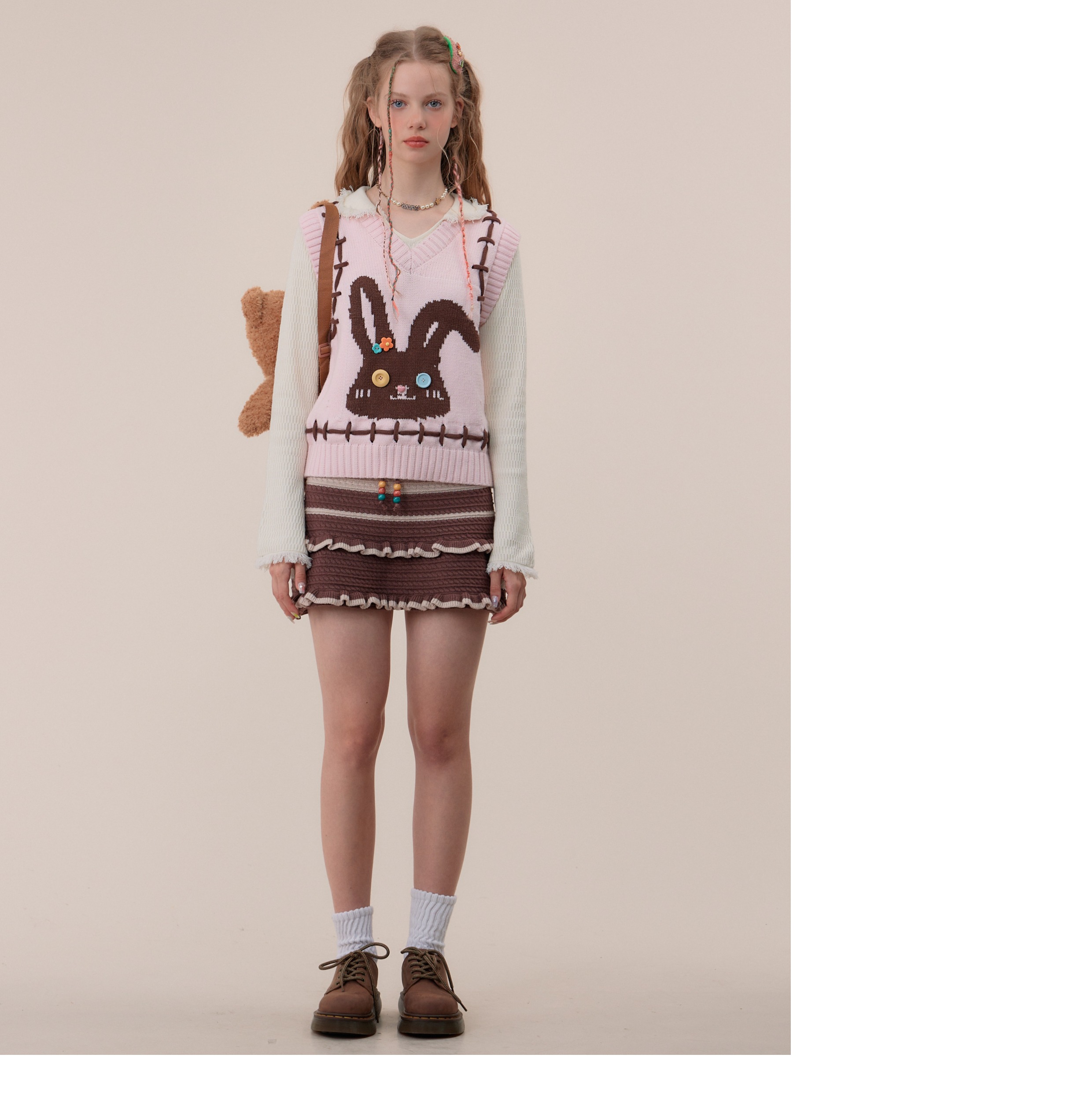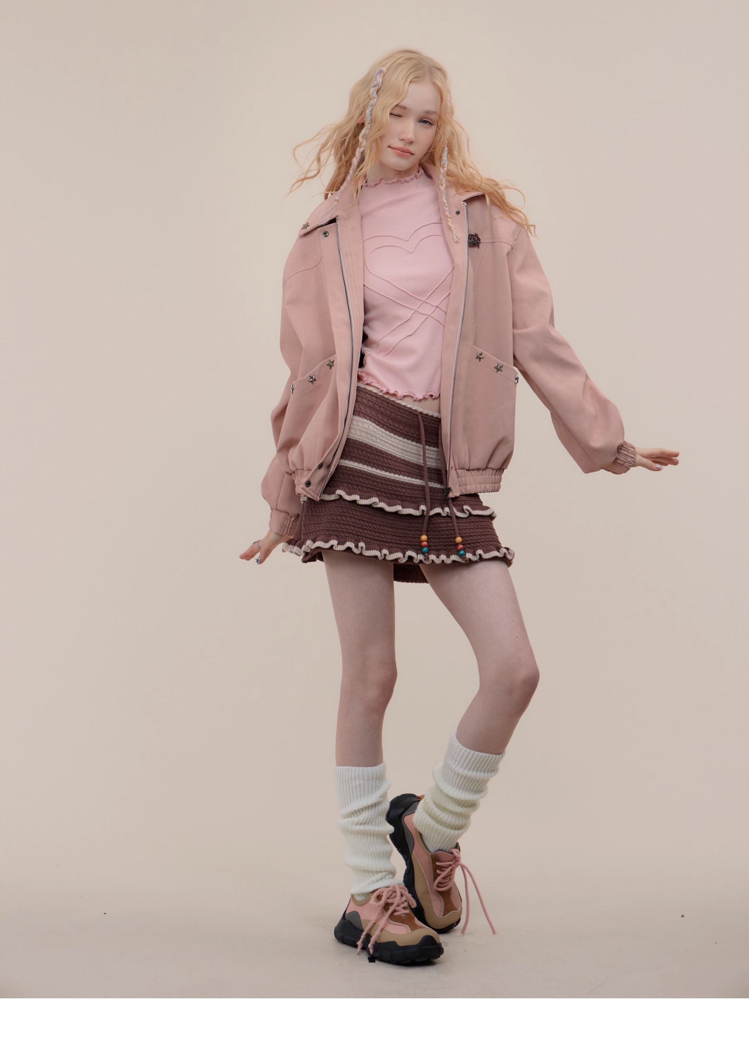 Jupe en laine trapèze à rayures marron | Coupe ajustée, taille haute, conception en tricot pour l'automne/hiver