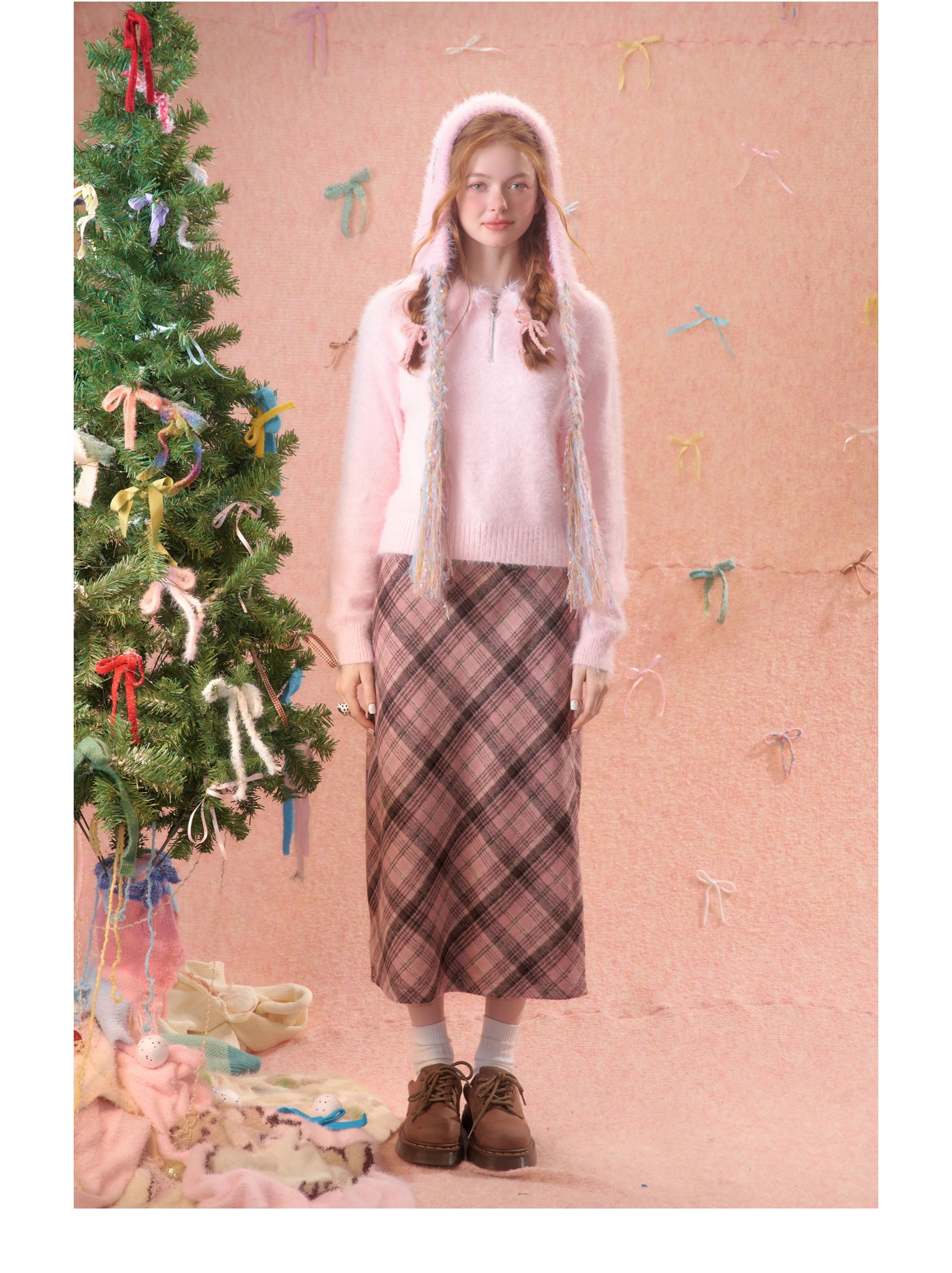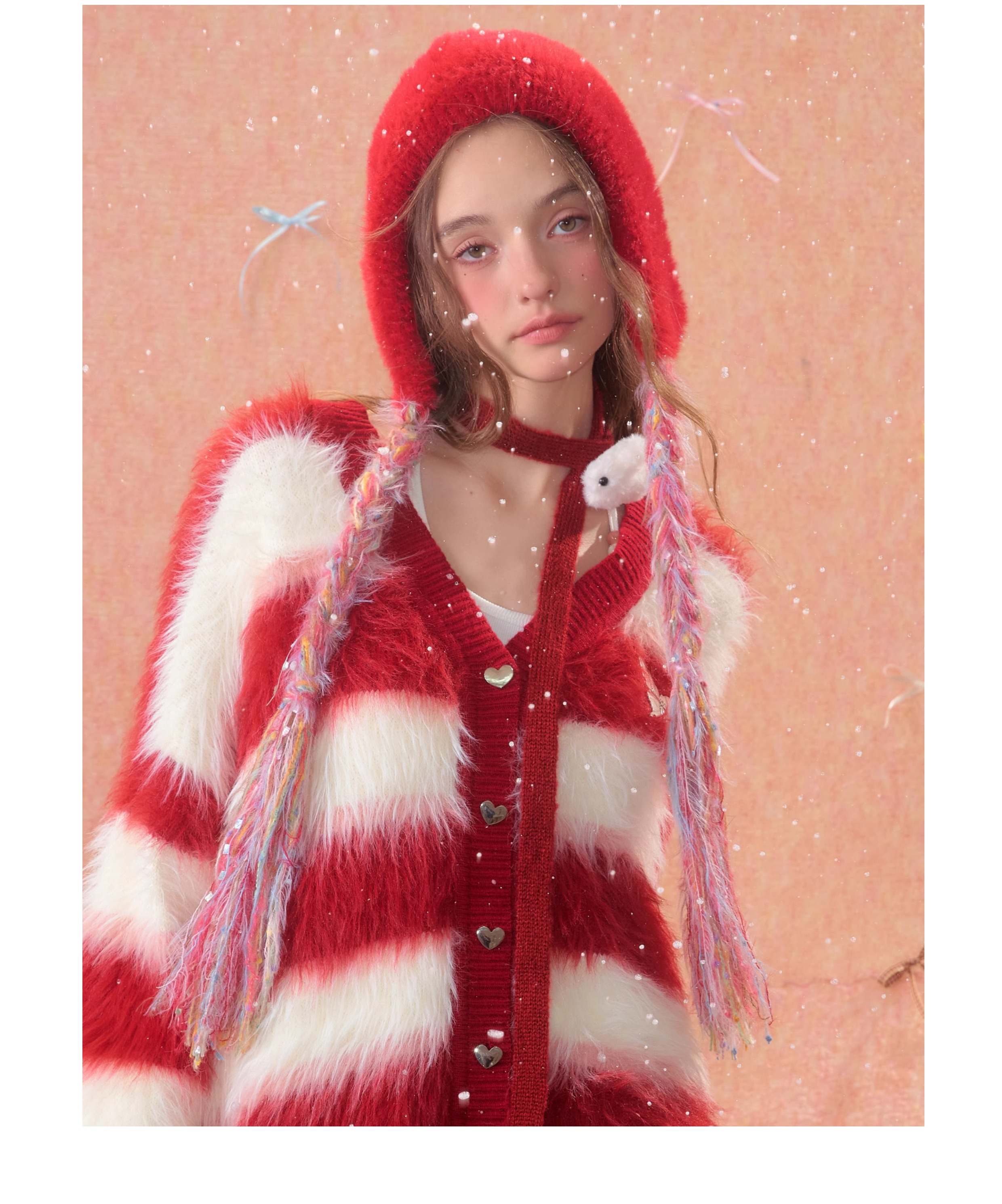 Chapeau tricoté en velours rouge festif | Spécial Nouvel An/Noël chaleureux et confortable