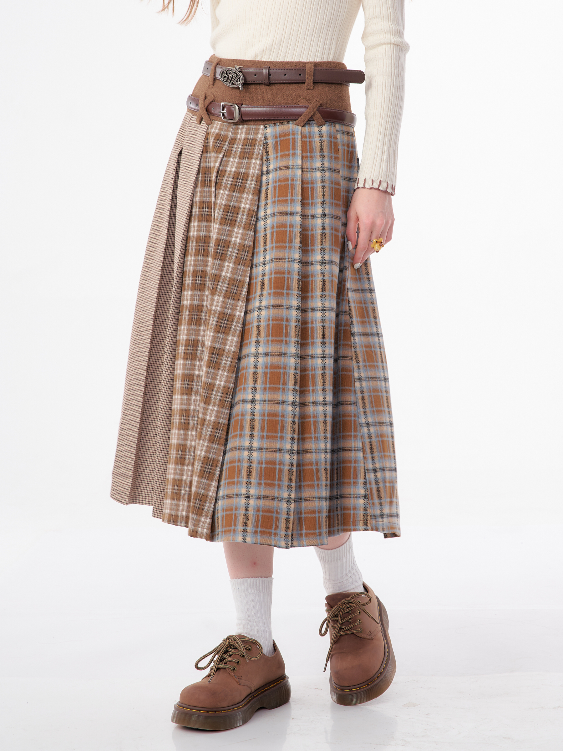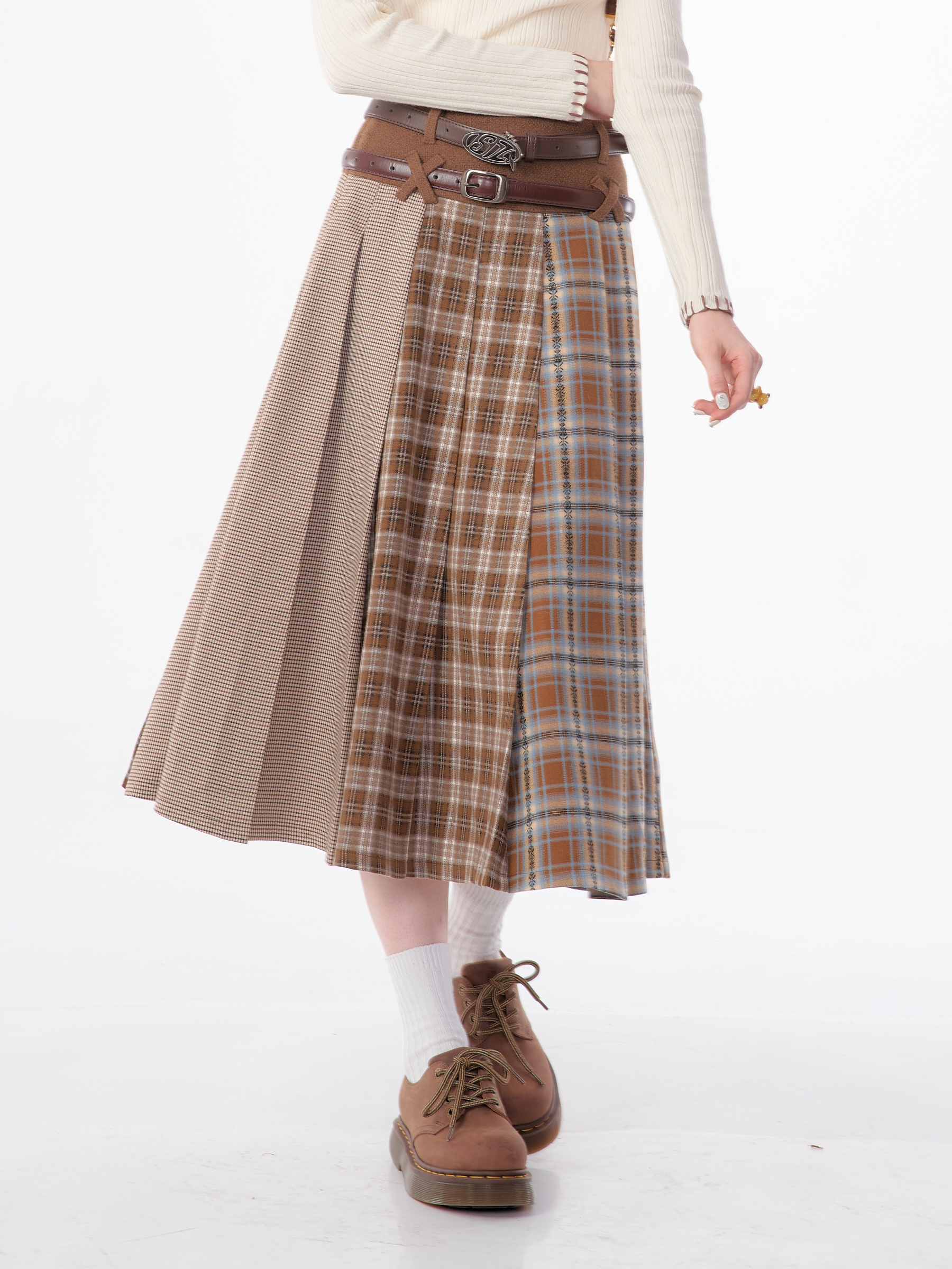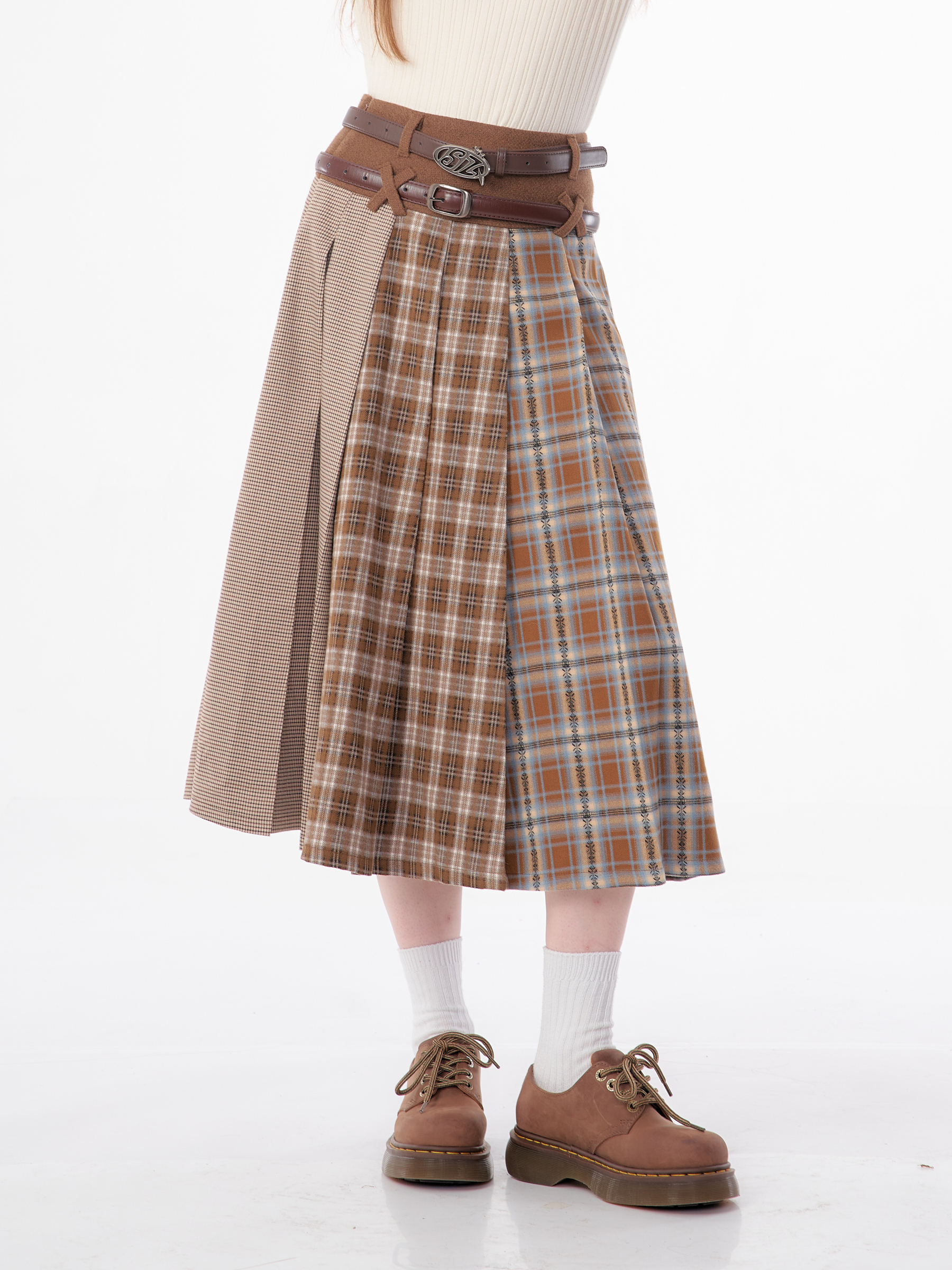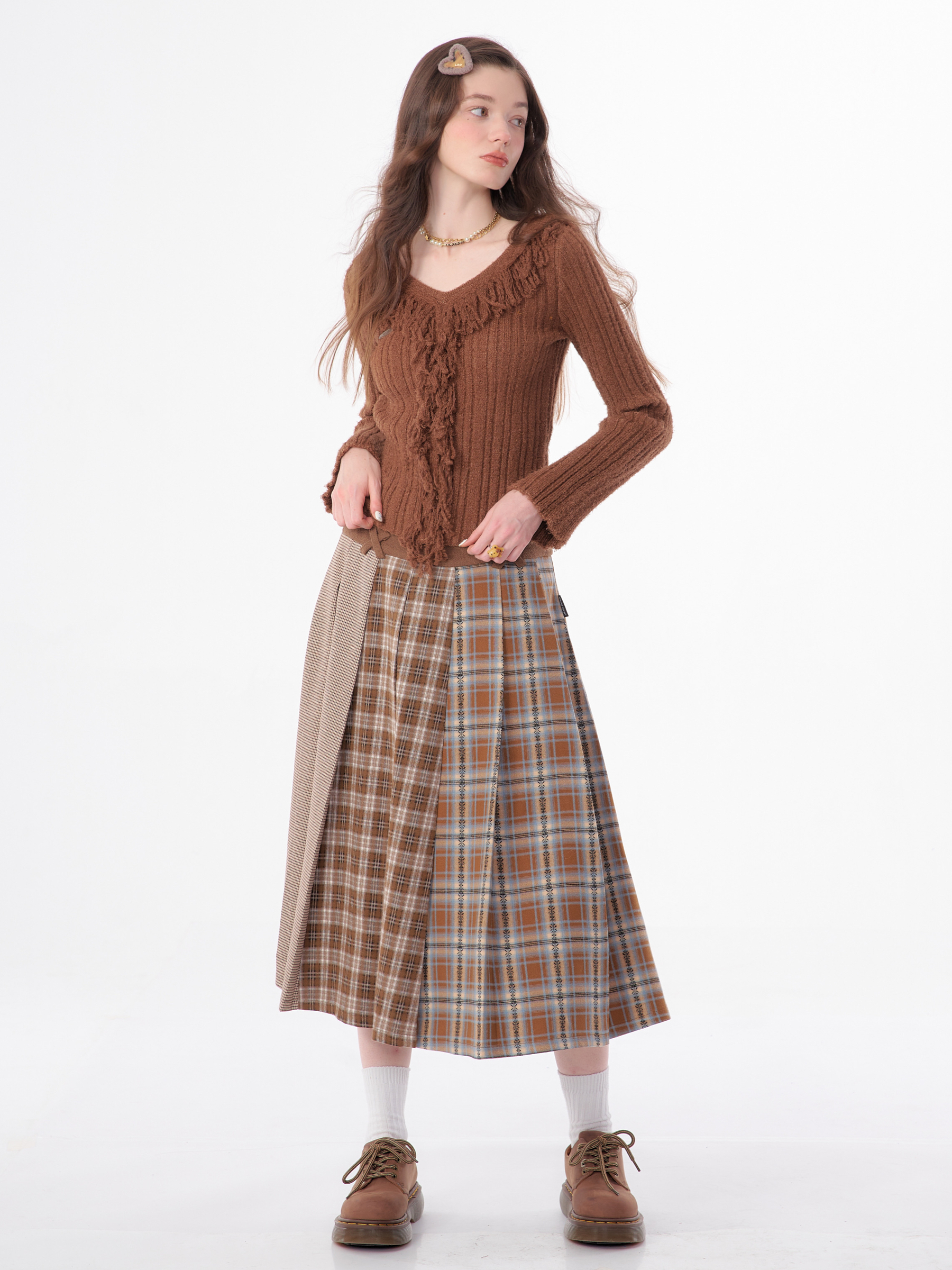 Jupe plissée en laine à carreaux | Design rétro épissé pour l'automne/hiver