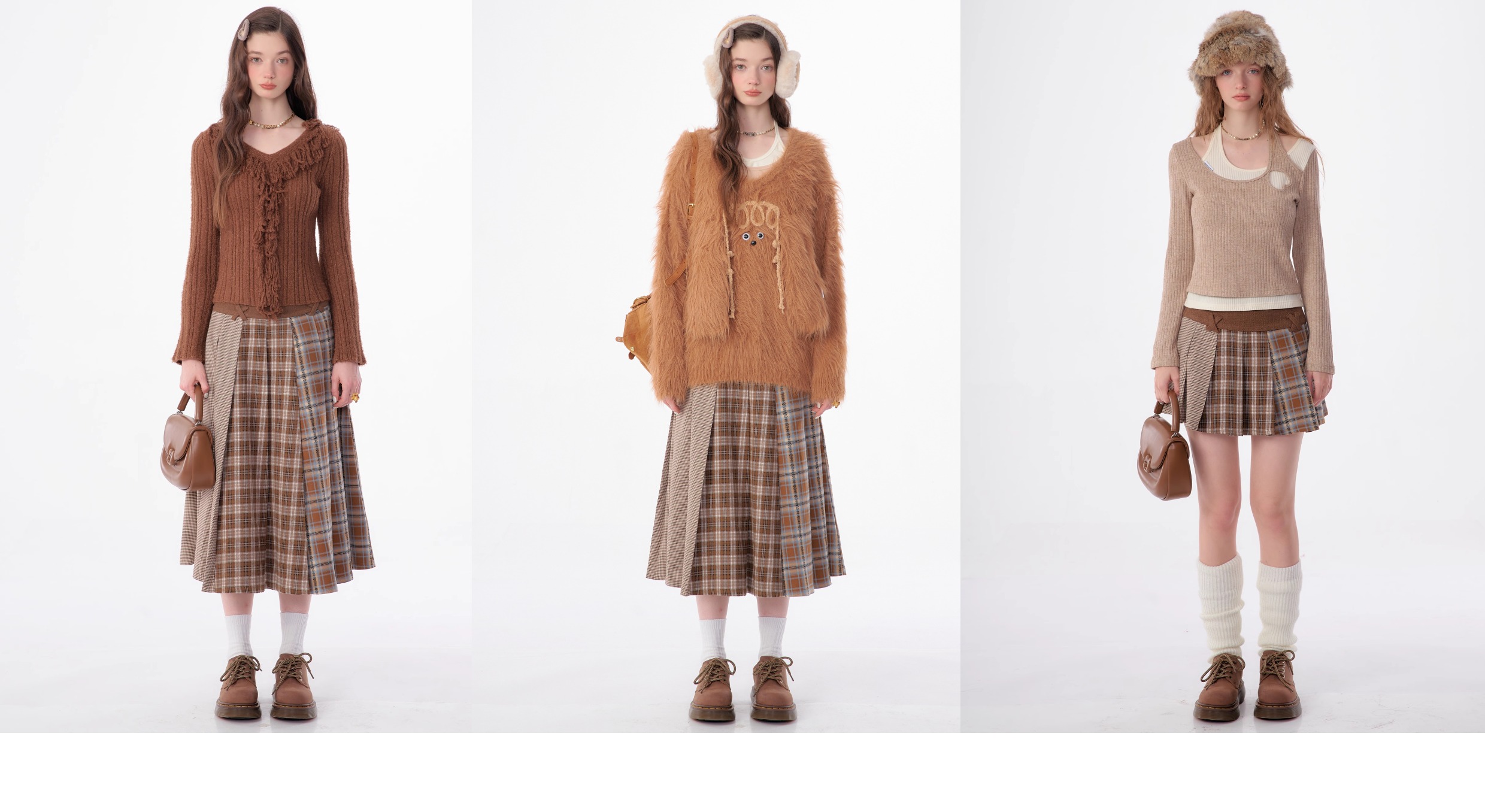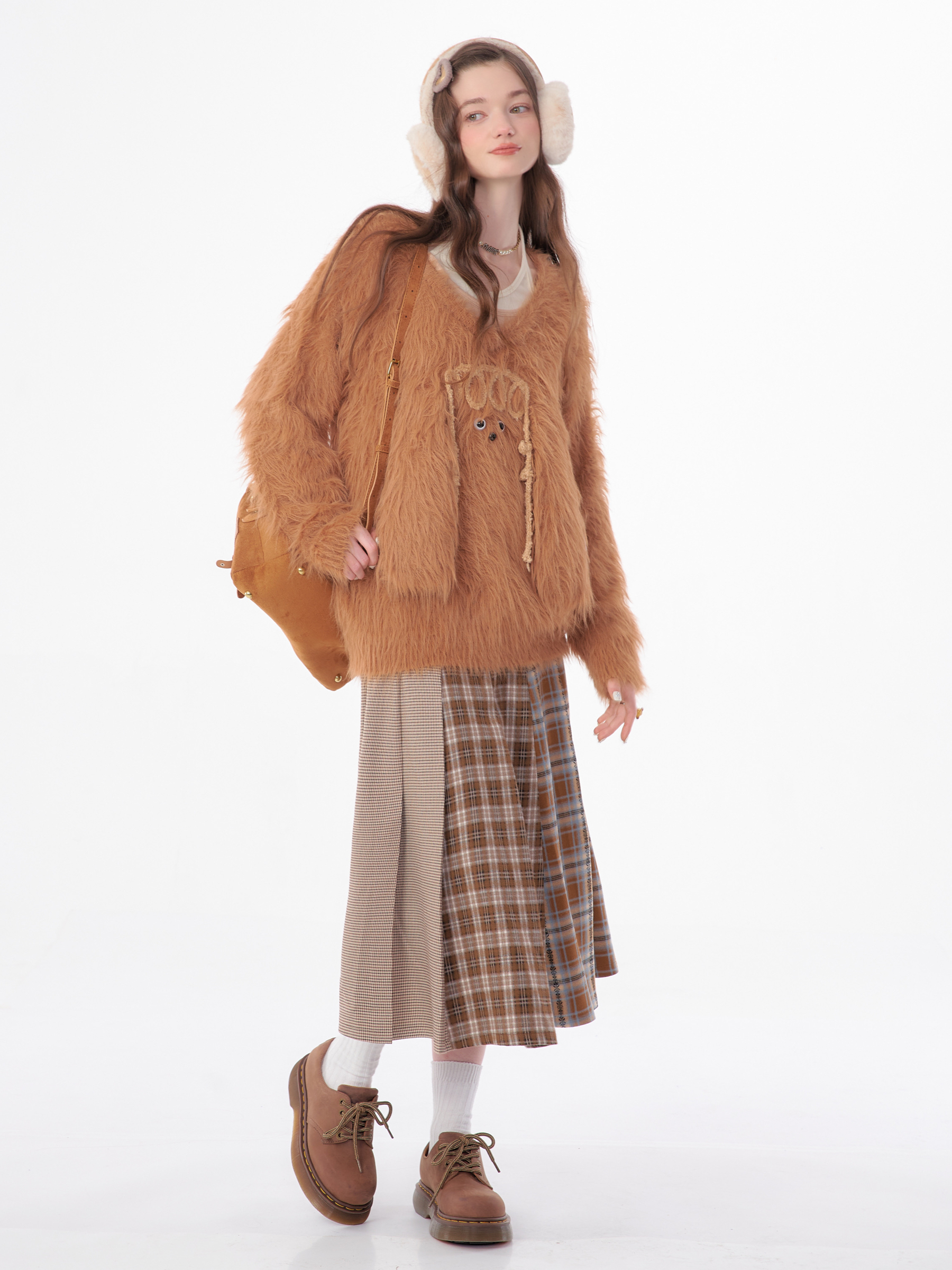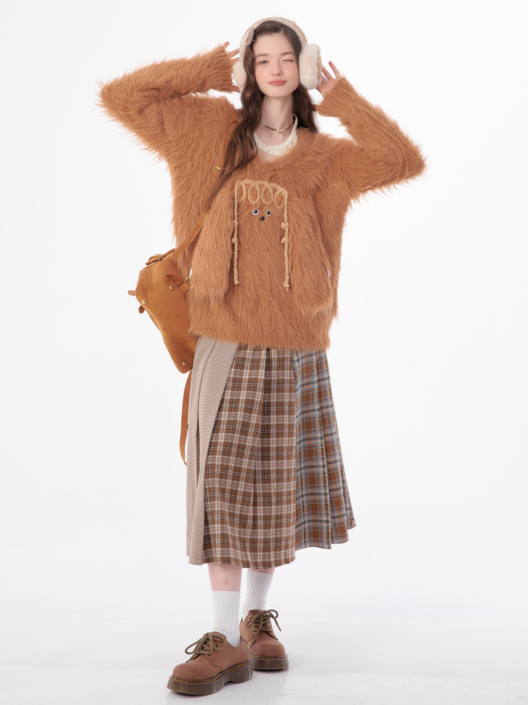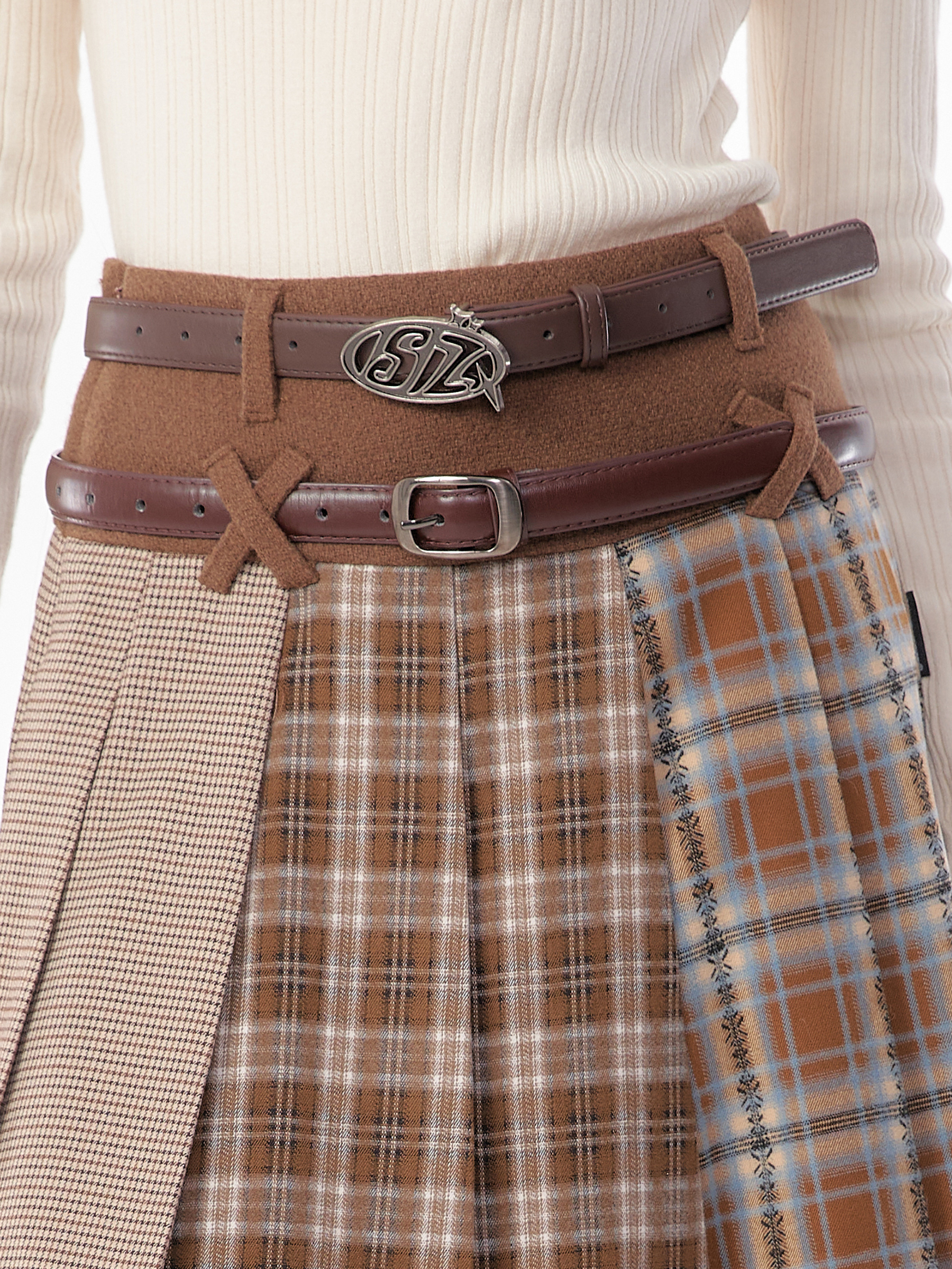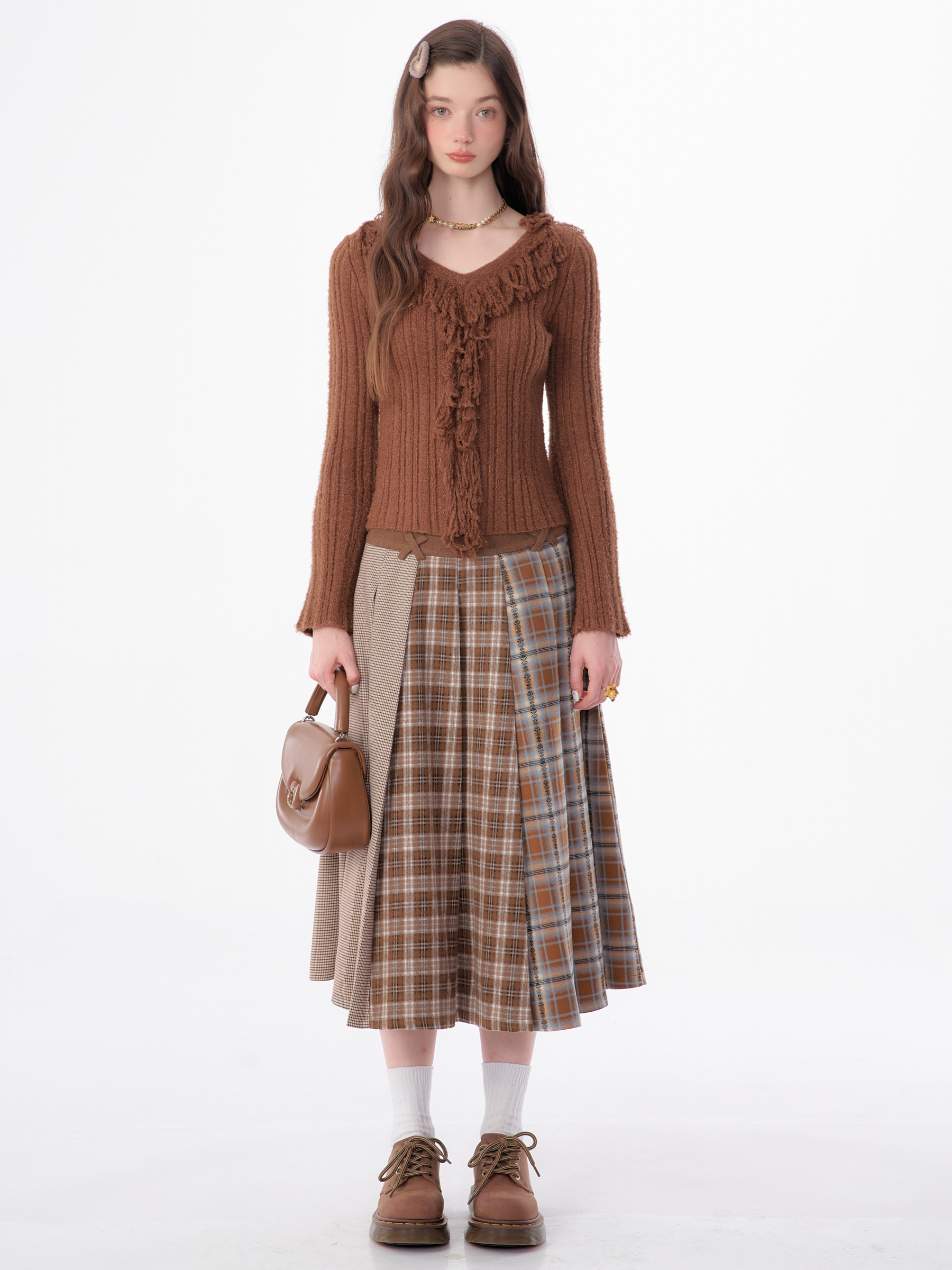 Jupe plissée en laine à carreaux | Design rétro épissé pour l'automne/hiver