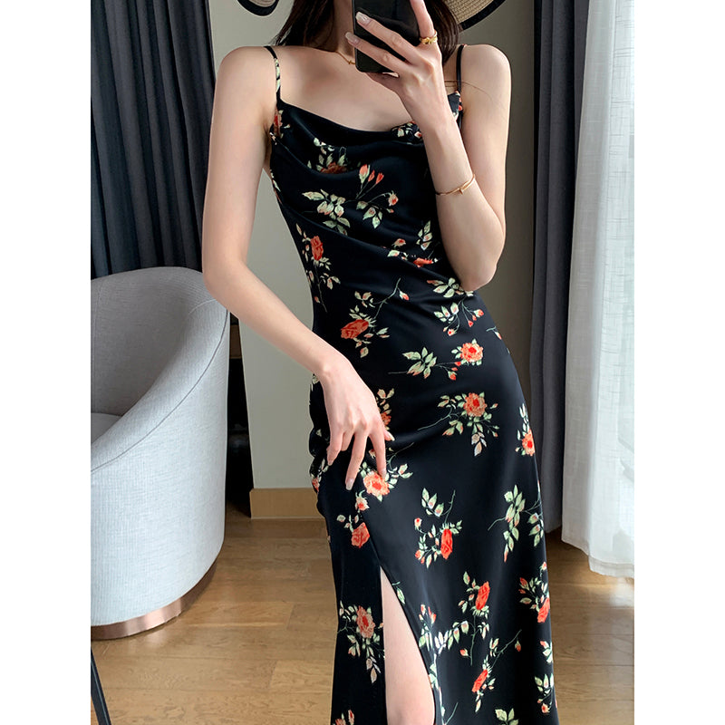 Jupe divisée en satin noir