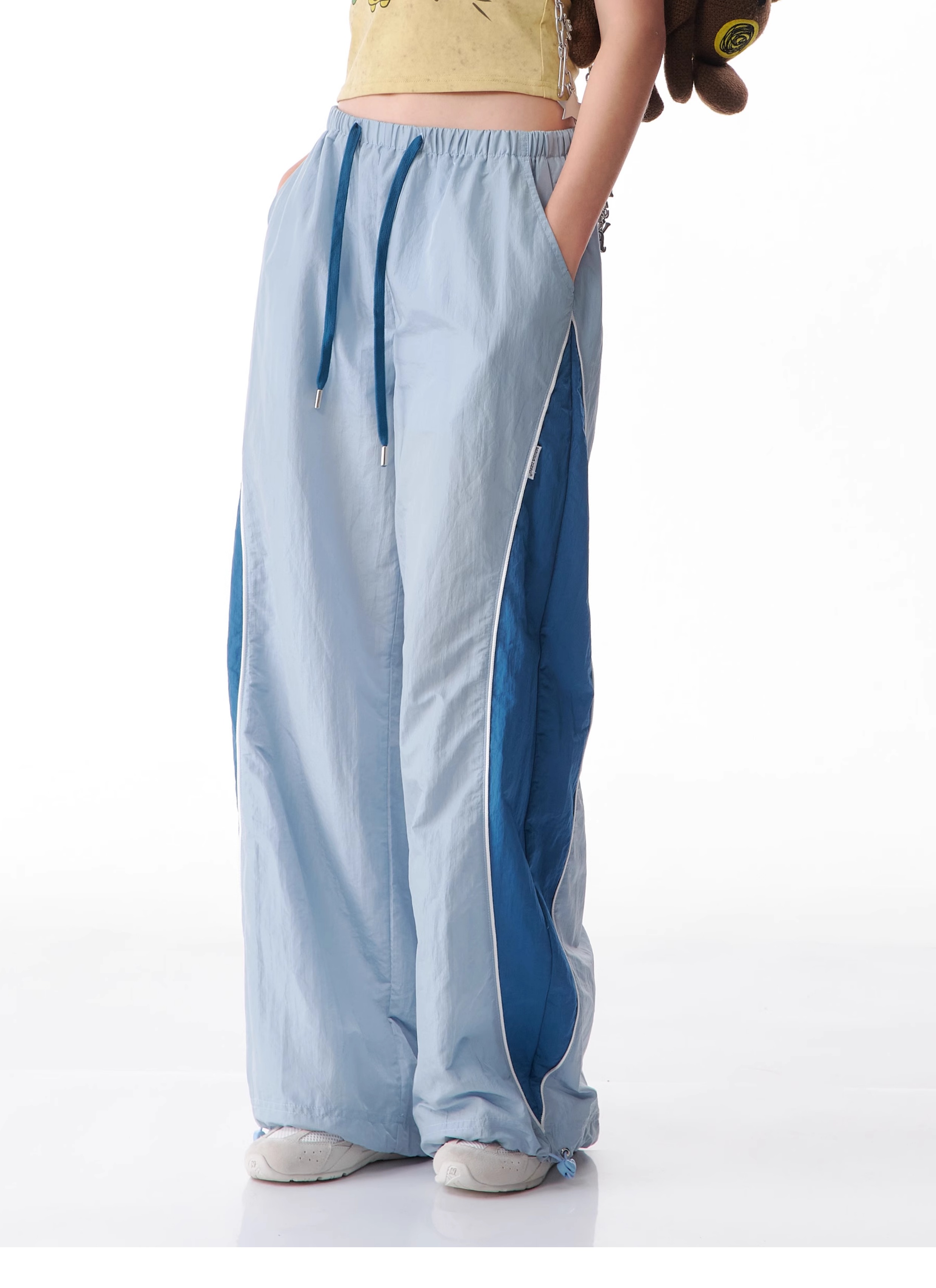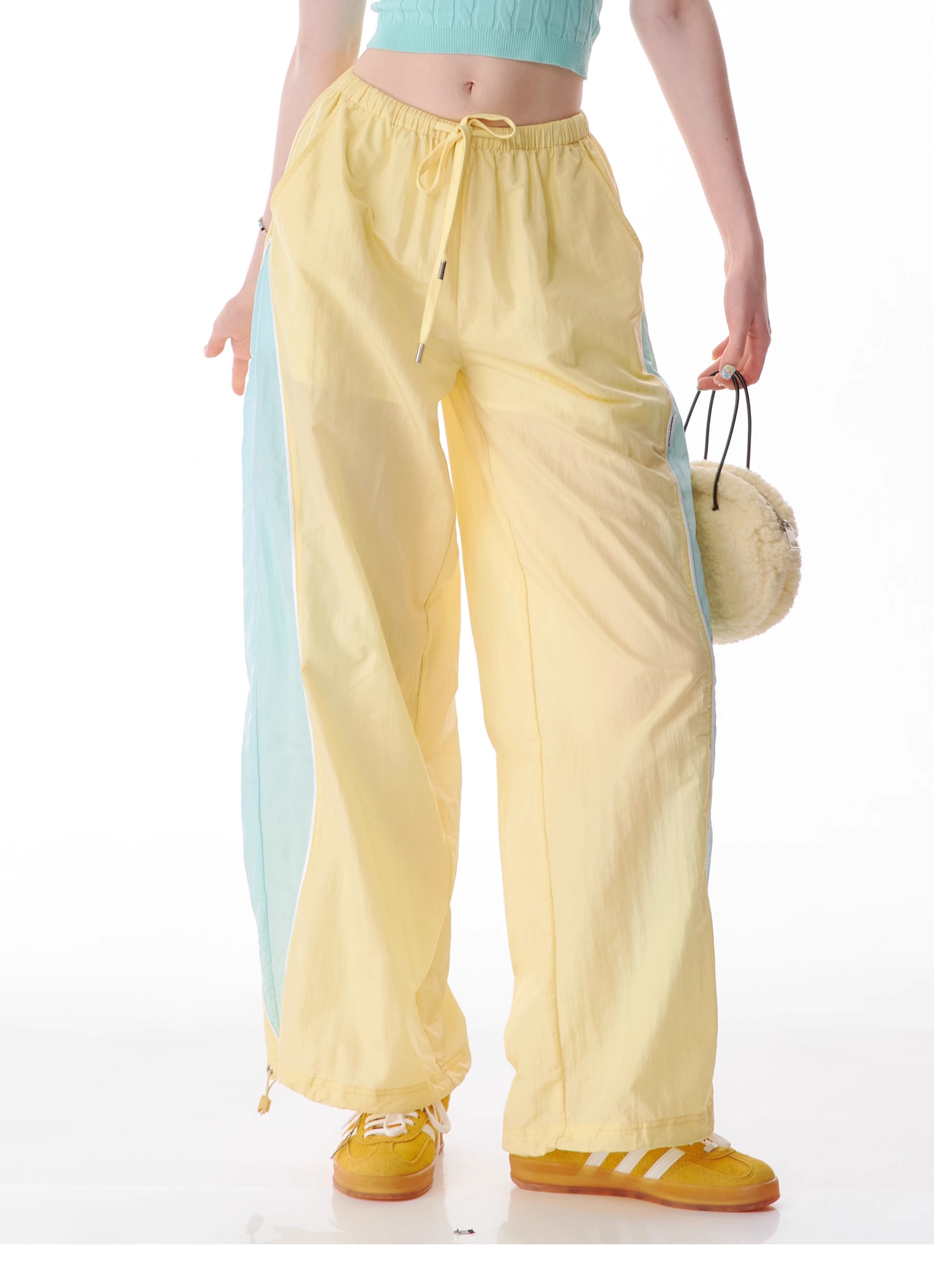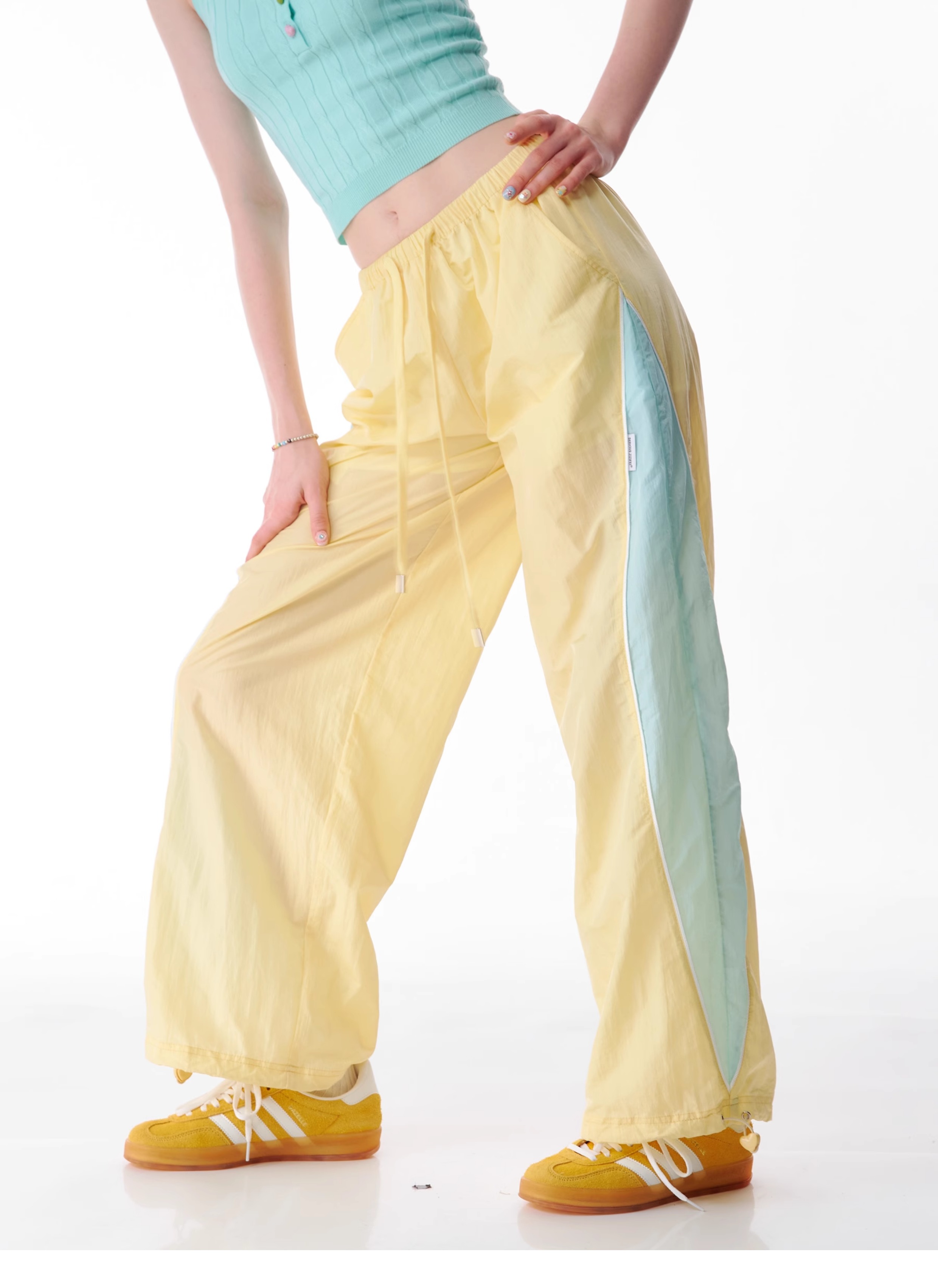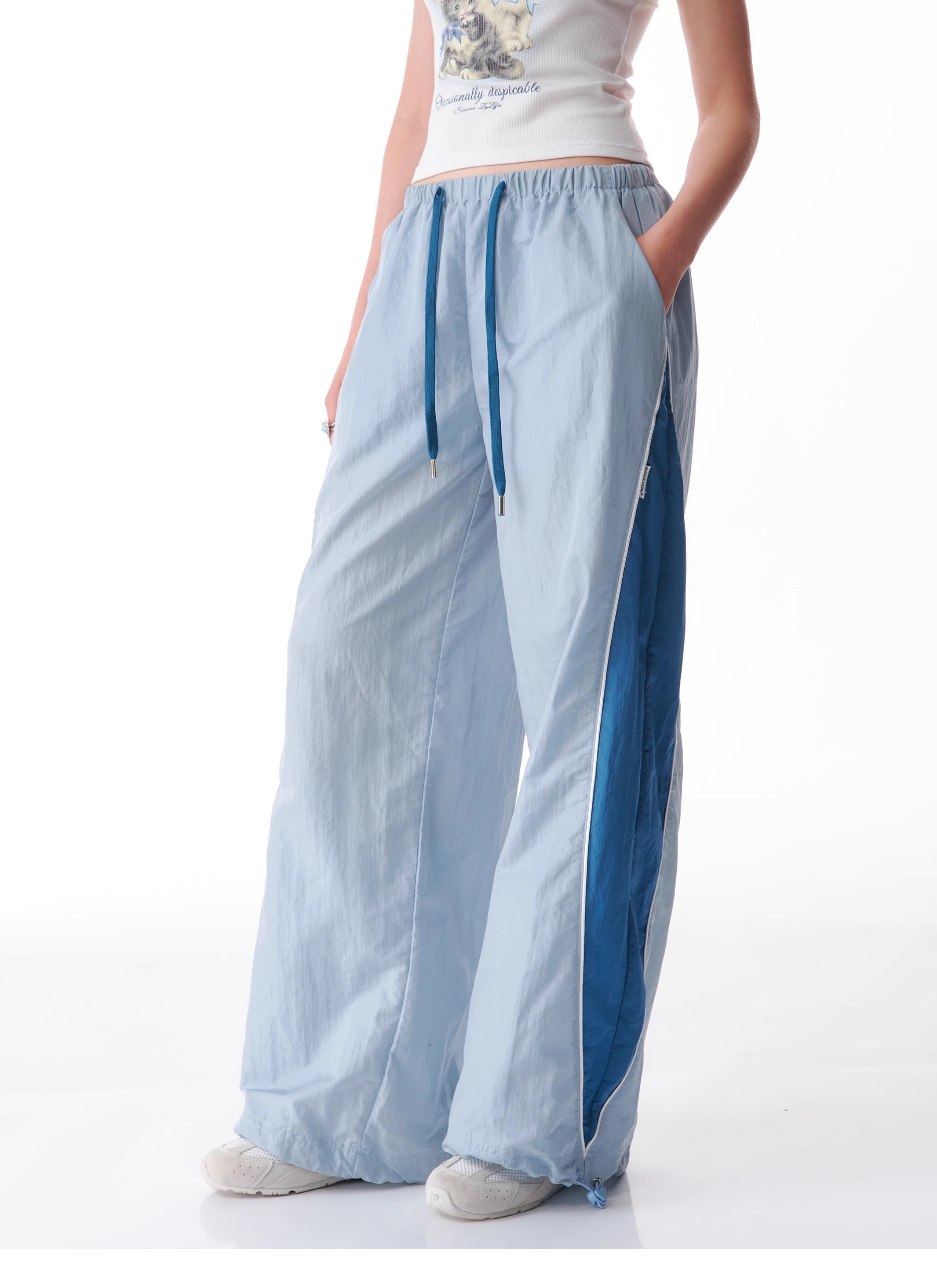 Pantalon de sport à jambes larges contrastées, coupe ajustée, style rétro américain à séchage rapide